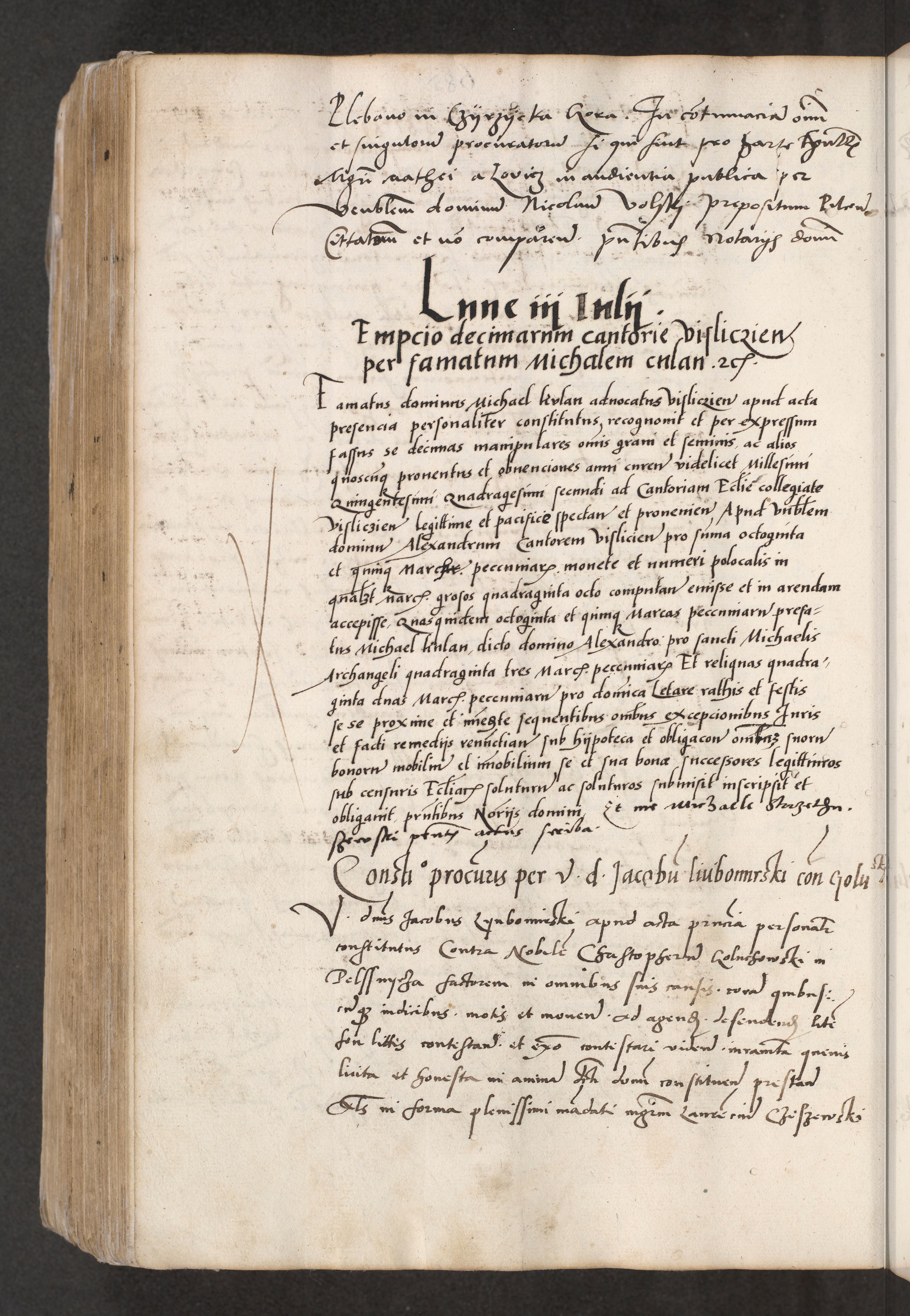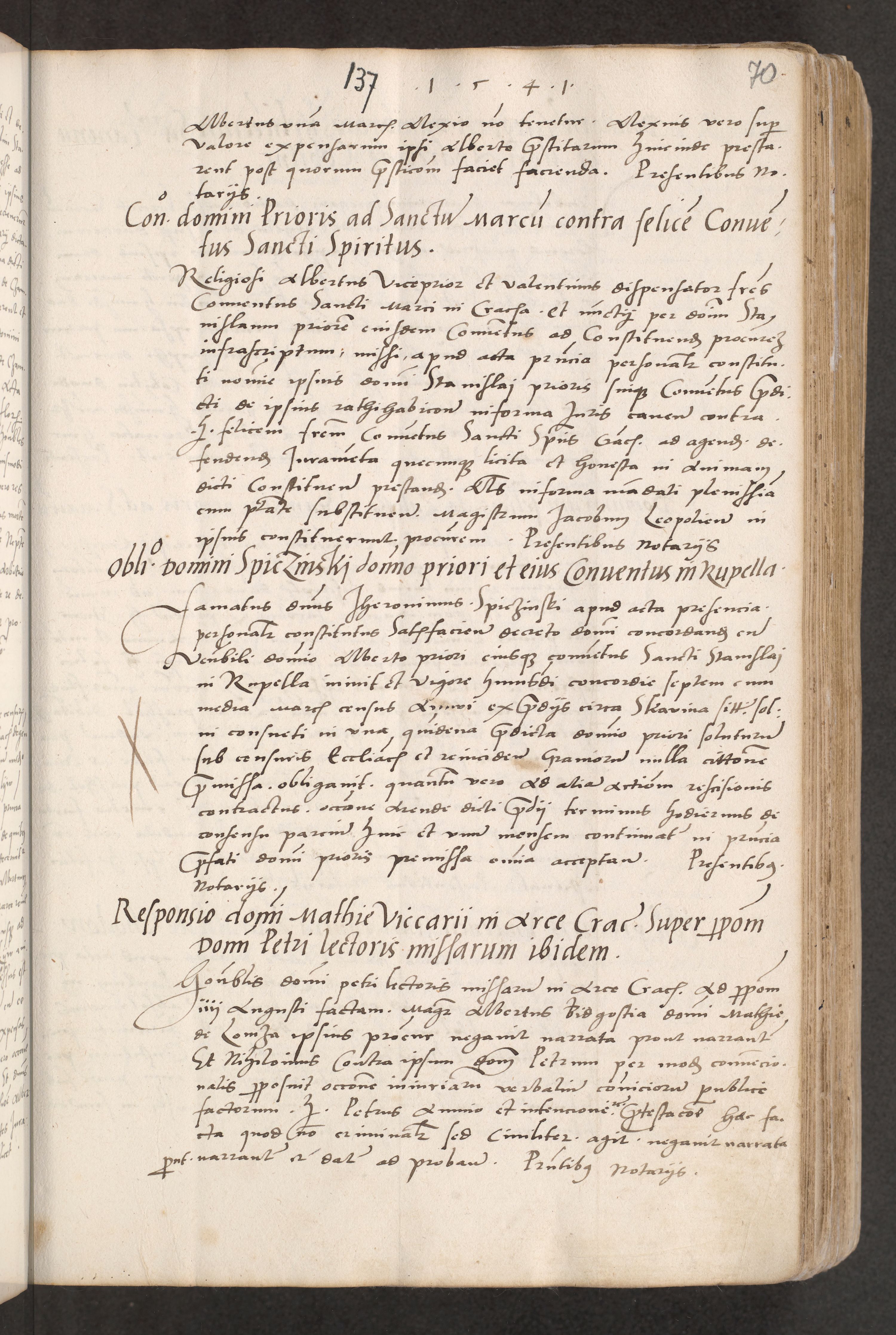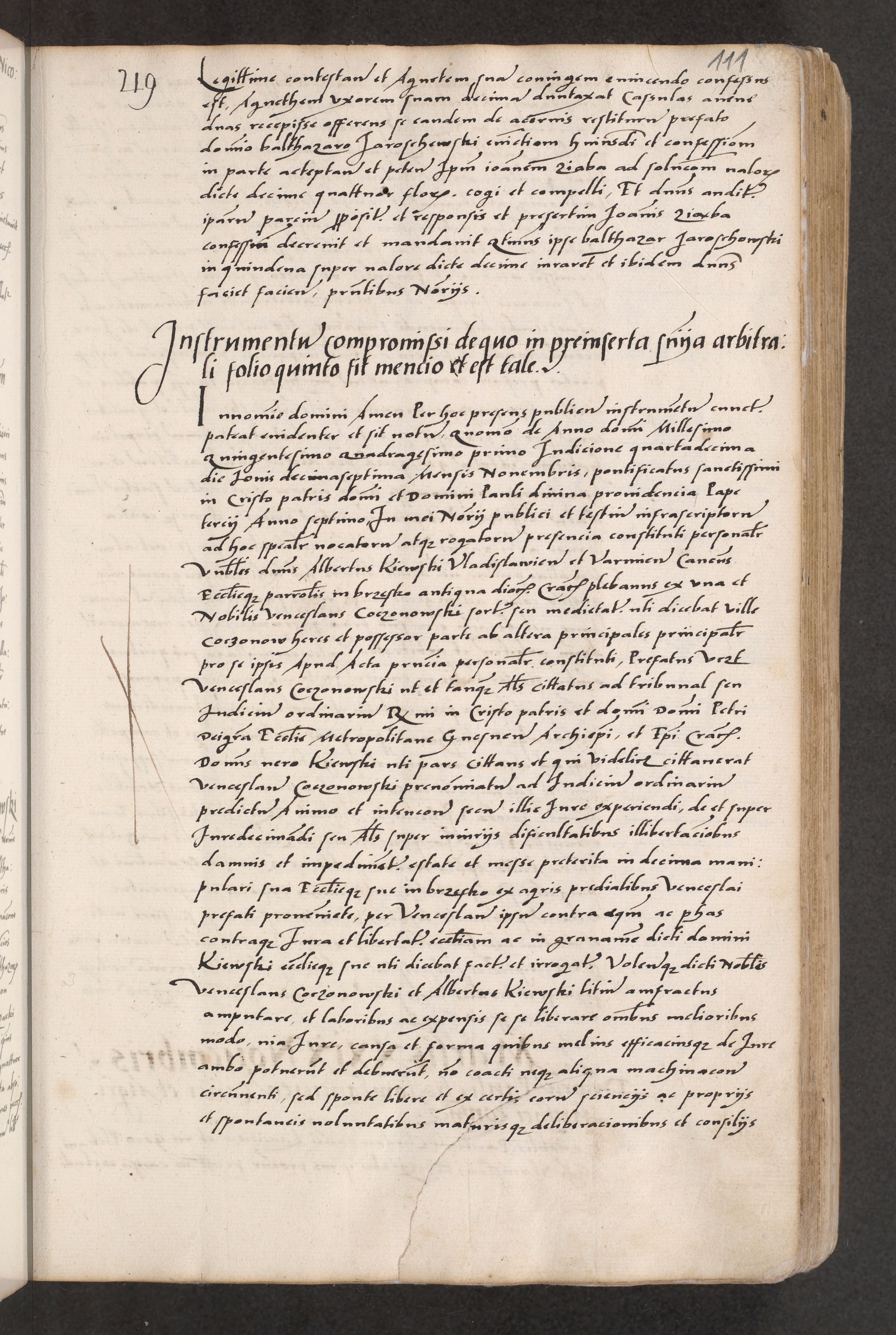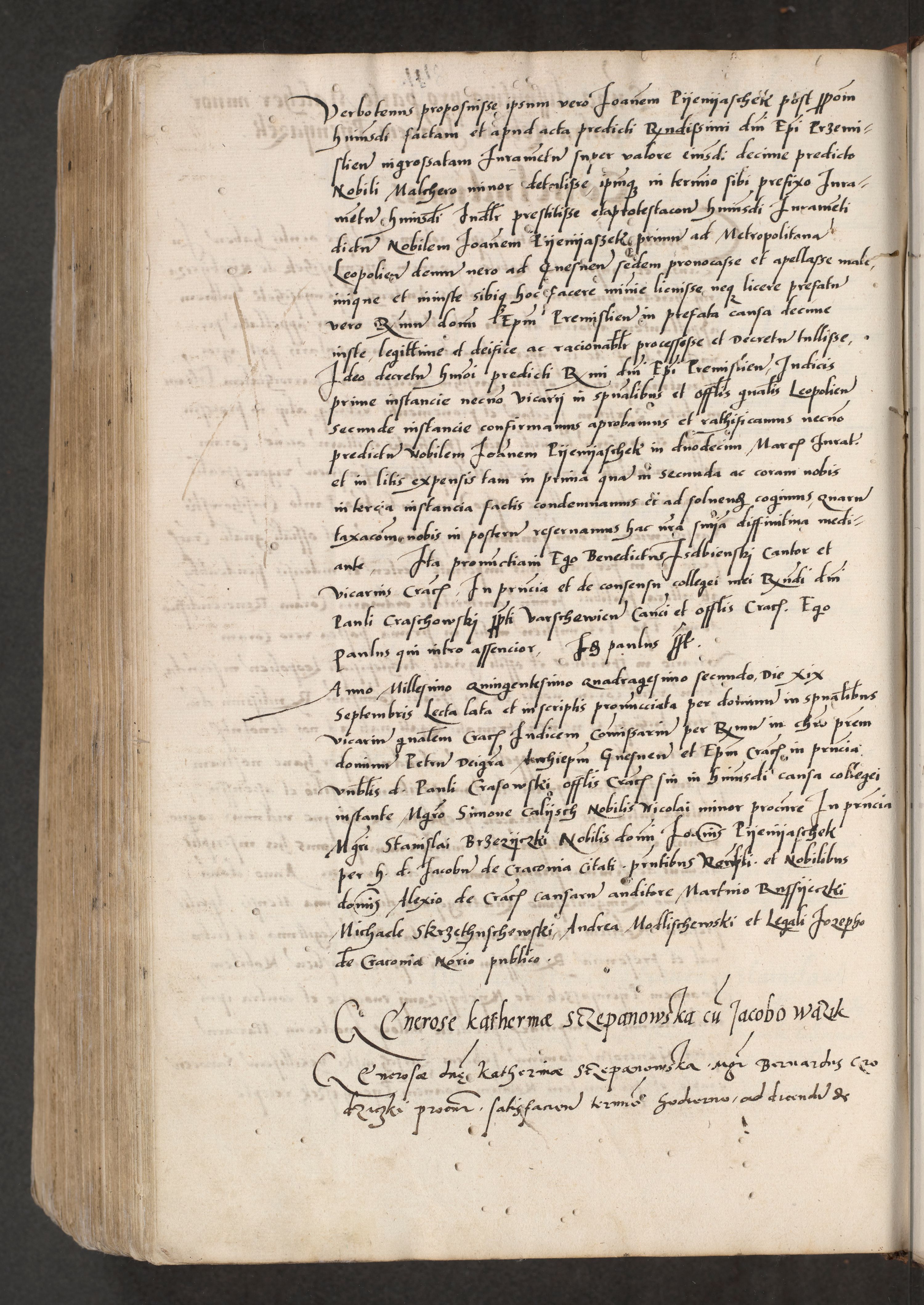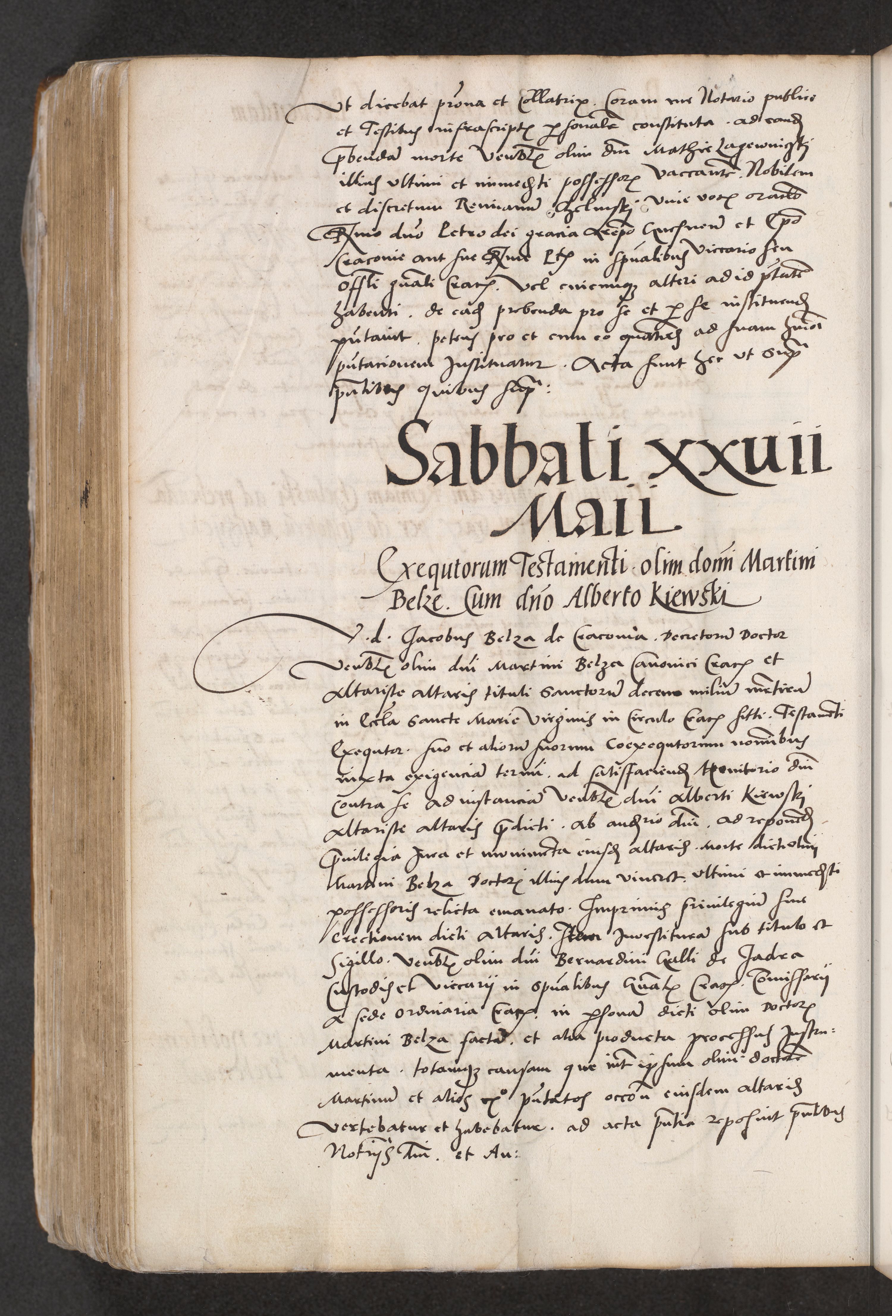 Acta actorum coram reverendo patre domino Benedicto Isdbienski cancellario Gnesnesi, canonico et reverendissimi in Christo patris et domini domini Petri Dei gratia archiepiscopi Gnesnensis et episcopi Cracoviensis sedisque apostolice legati nati et primatis Regni Polonie, vicarioque in spiritualibus generali Cracoviensi ad annum Domini millesimum quingentisimum quadragesimum primum, cuius indictio est quatuordecima, pontificatus sanctissimi in Christo patris et domini nostri domini Pauli divina providencia pape tercii, anno ipsius septimo, feliciter continuantur. Dii cepta secundent
