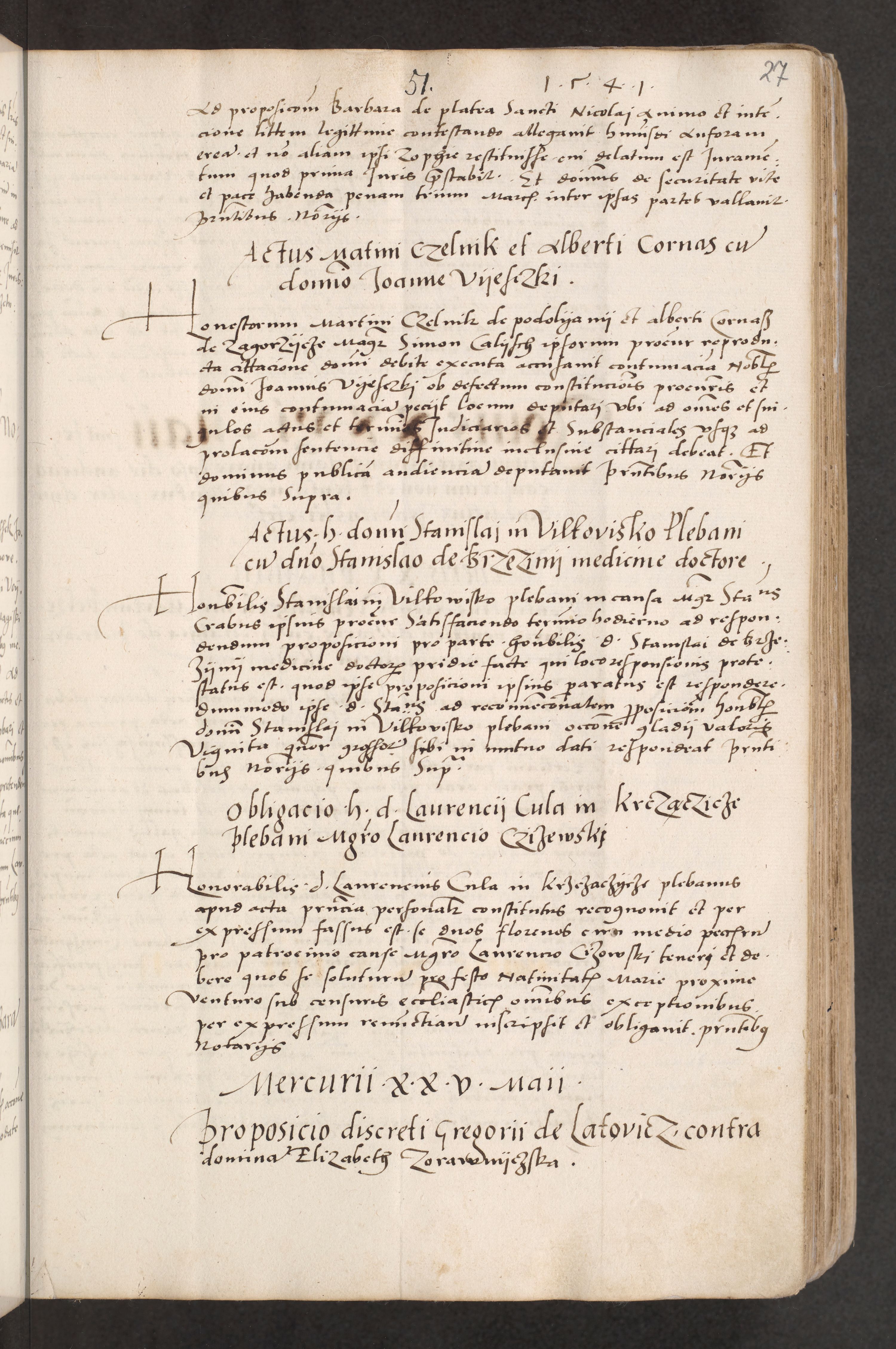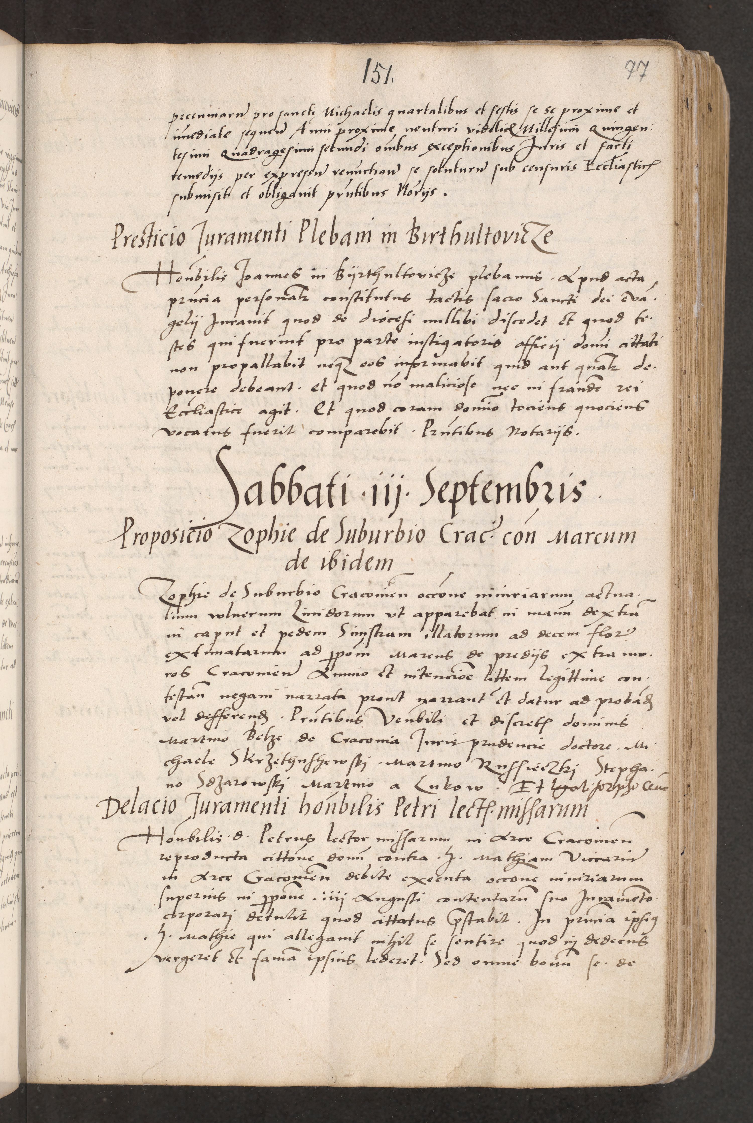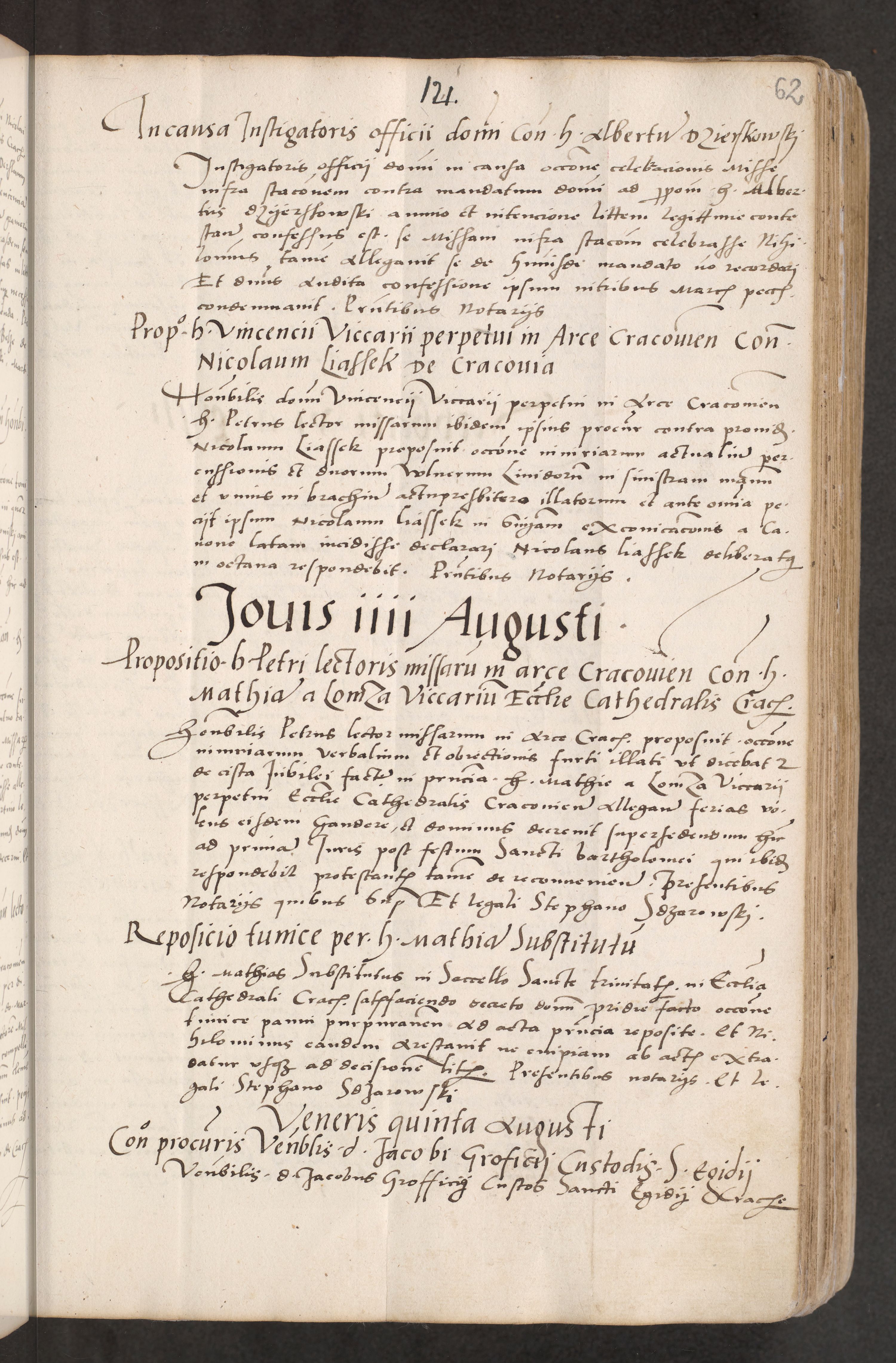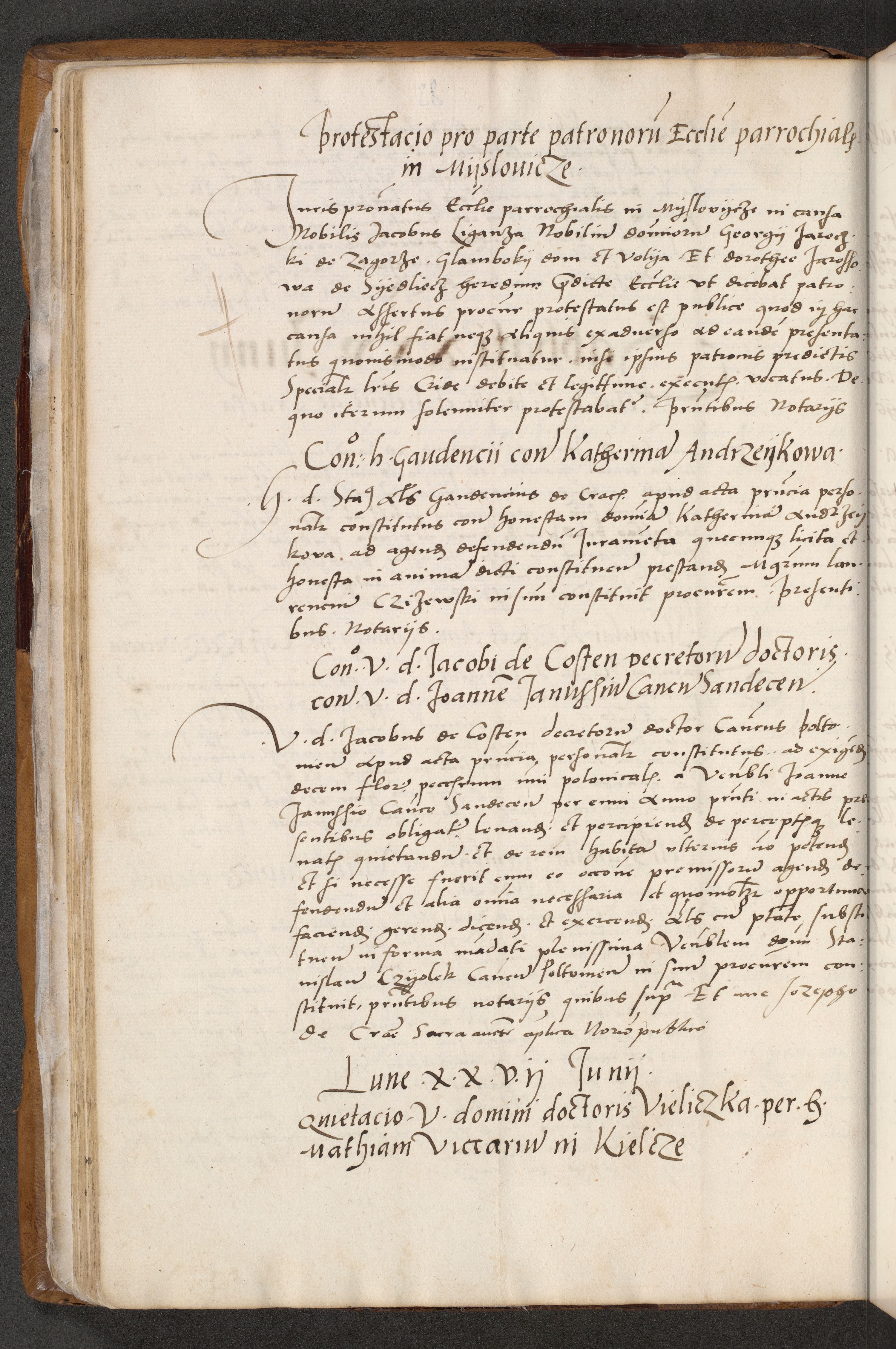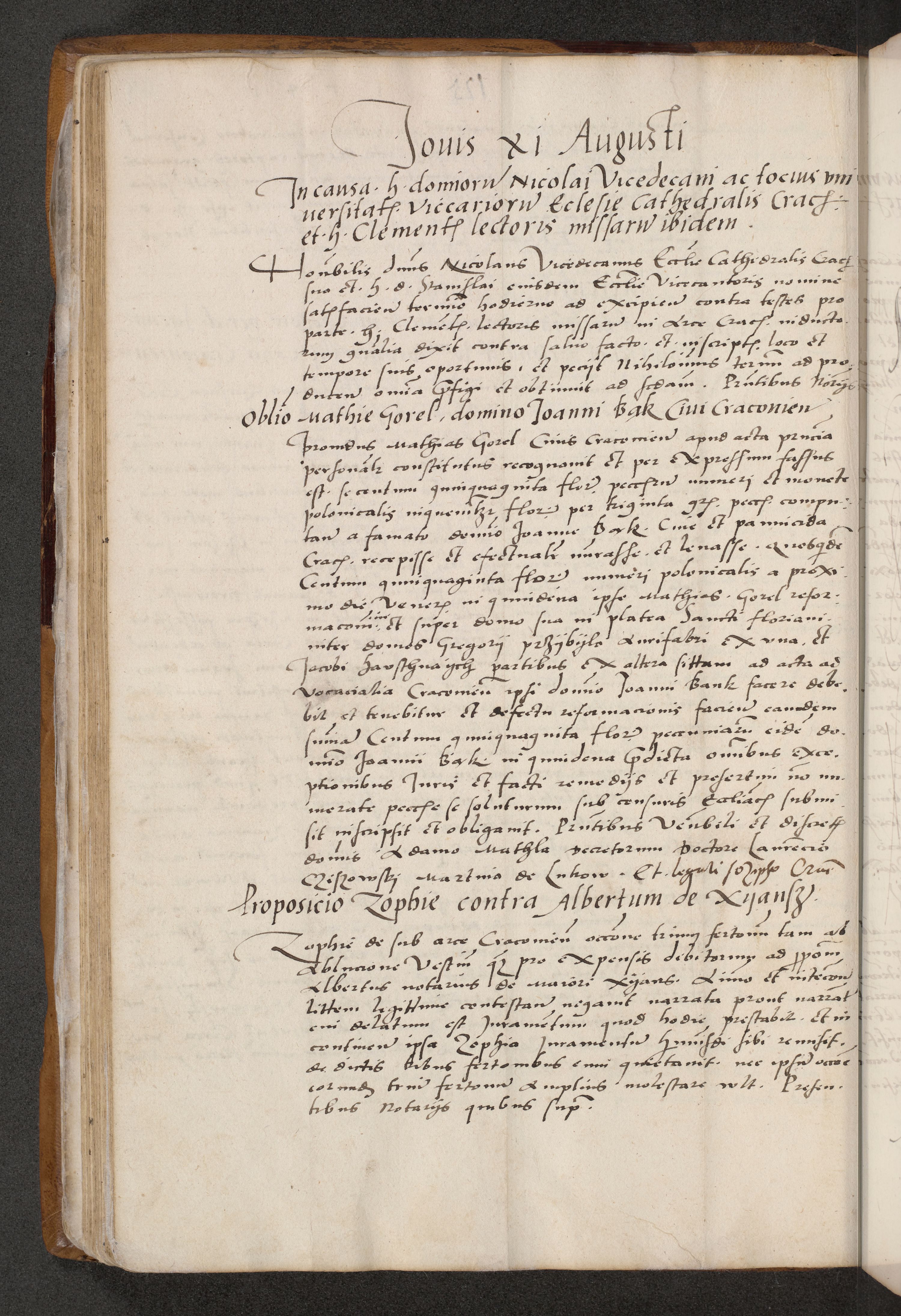 Acta actorum coram reverendo patre domino Benedicto Isdbienski cancellario Gnesnesi, canonico et reverendissimi in Christo patris et domini domini Petri Dei gratia archiepiscopi Gnesnensis et episcopi Cracoviensis sedisque apostolice legati nati et primatis Regni Polonie, vicarioque in spiritualibus generali Cracoviensi ad annum Domini millesimum quingentisimum quadragesimum primum, cuius indictio est quatuordecima, pontificatus sanctissimi in Christo patris et domini nostri domini Pauli divina providencia pape tercii, anno ipsius septimo, feliciter continuantur. Dii cepta secundent