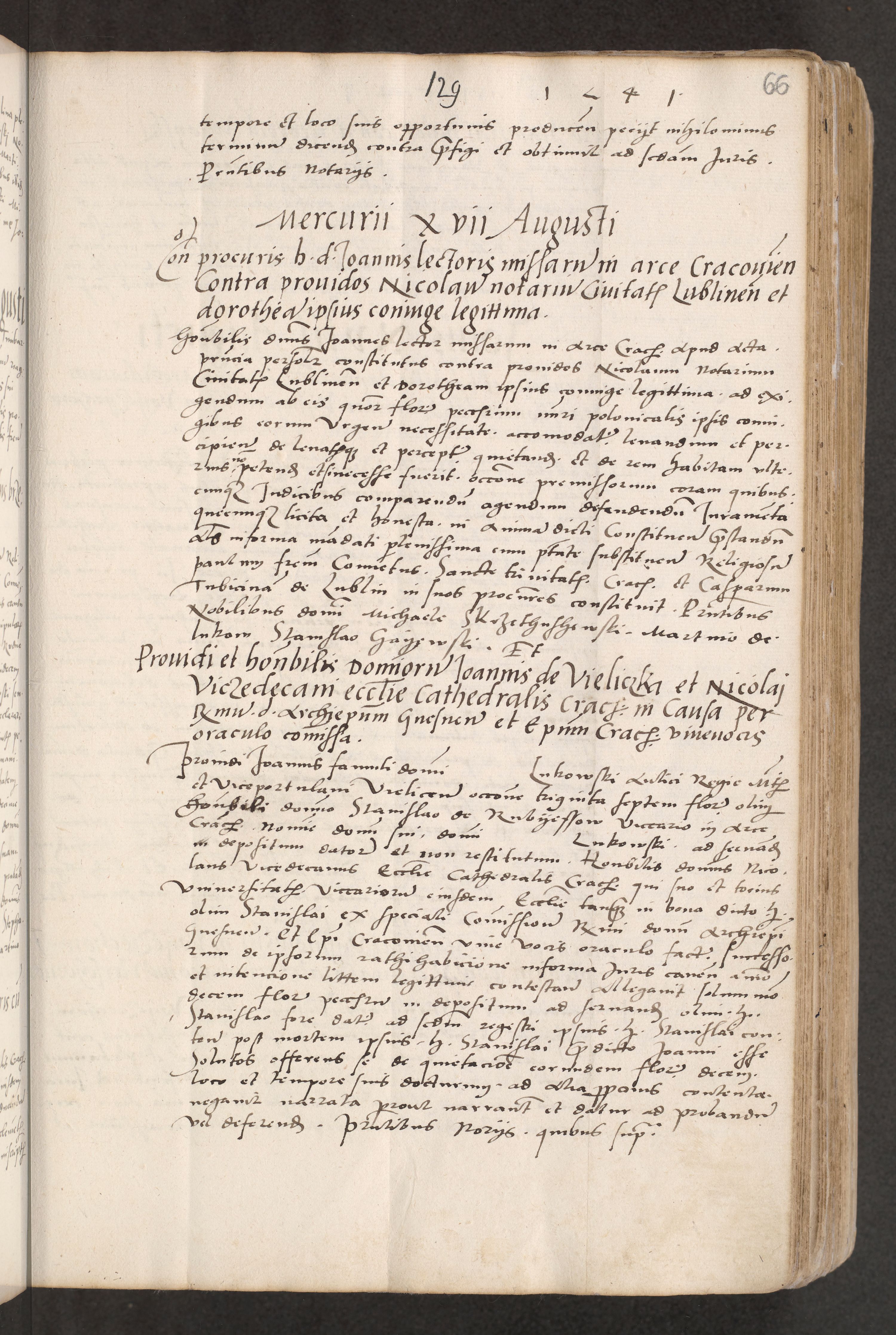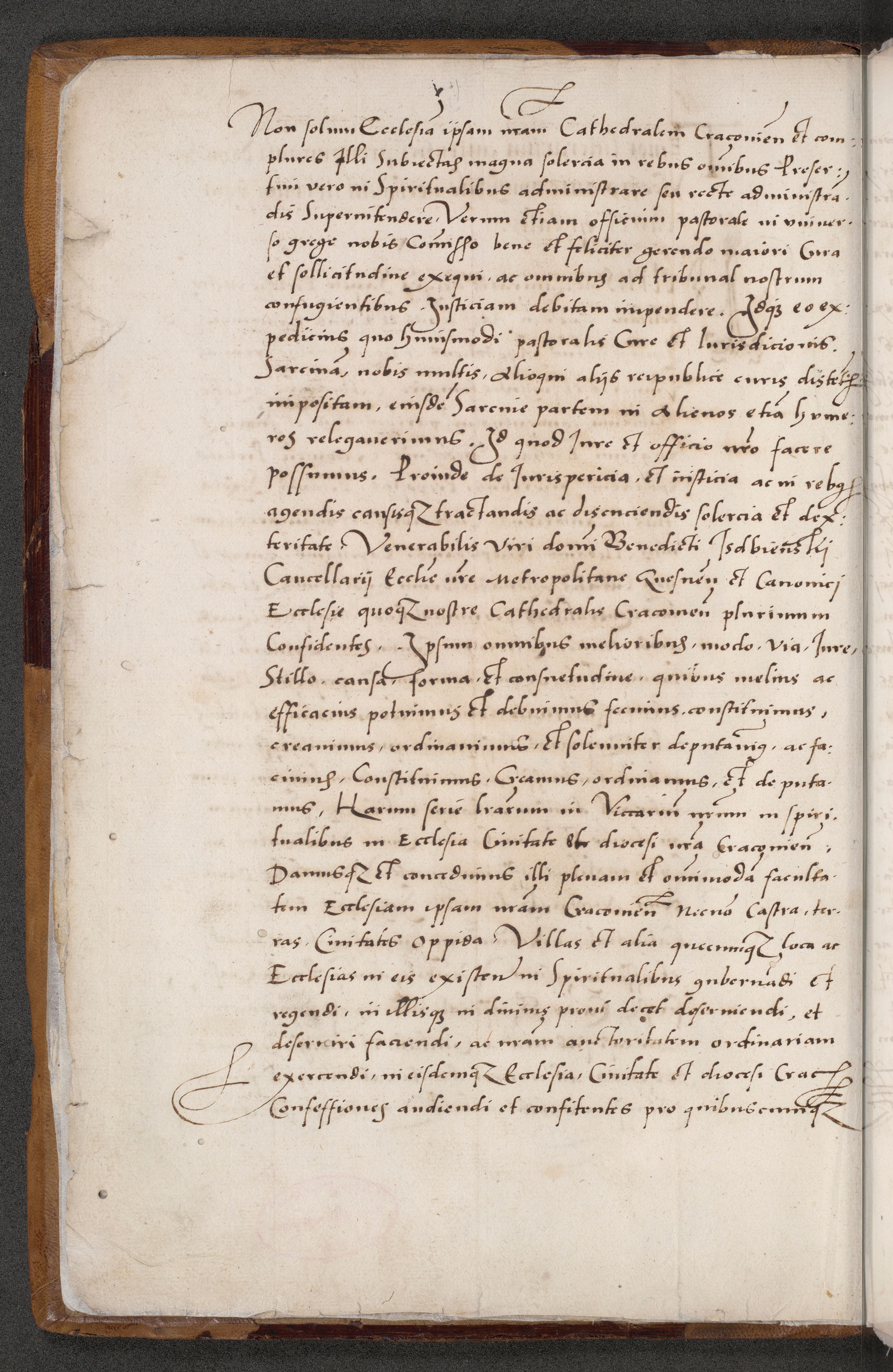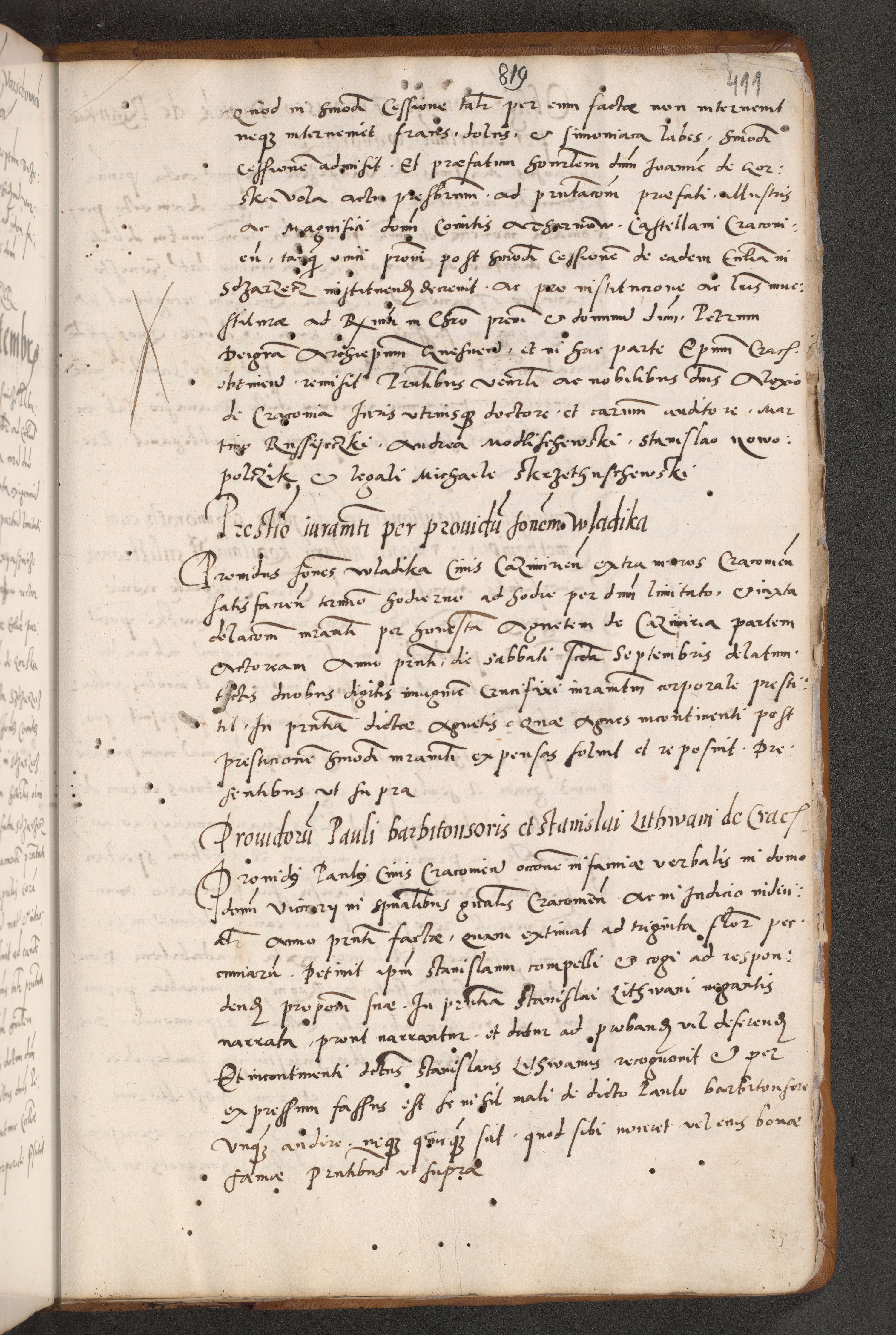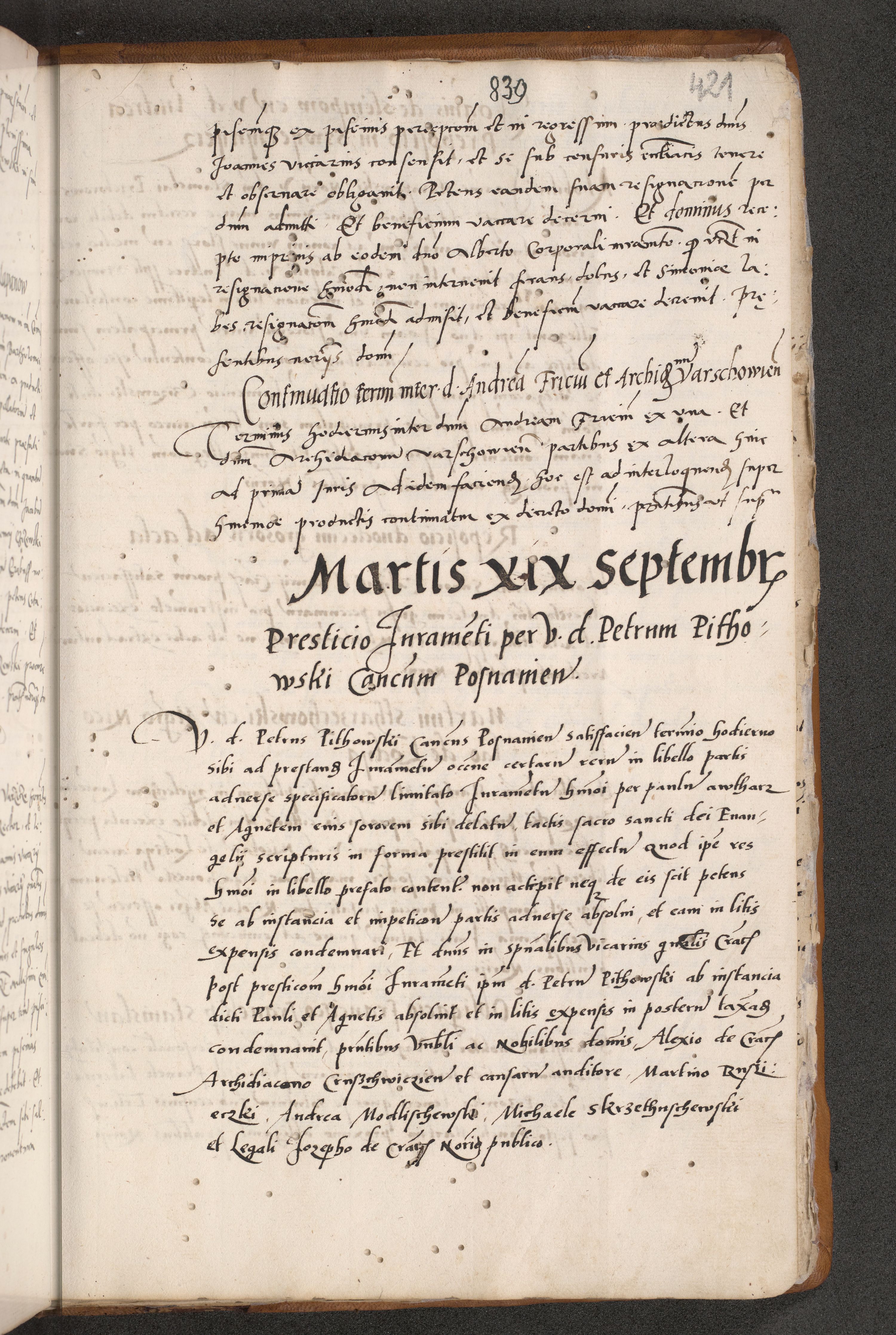 Acta actorum coram reverendo patre domino Benedicto Isdbienski cancellario Gnesnesi, canonico et reverendissimi in Christo patris et domini domini Petri Dei gratia archiepiscopi Gnesnensis et episcopi Cracoviensis sedisque apostolice legati nati et primatis Regni Polonie, vicarioque in spiritualibus generali Cracoviensi ad annum Domini millesimum quingentisimum quadragesimum primum, cuius indictio est quatuordecima, pontificatus sanctissimi in Christo patris et domini nostri domini Pauli divina providencia pape tercii, anno ipsius septimo, feliciter continuantur. Dii cepta secundent