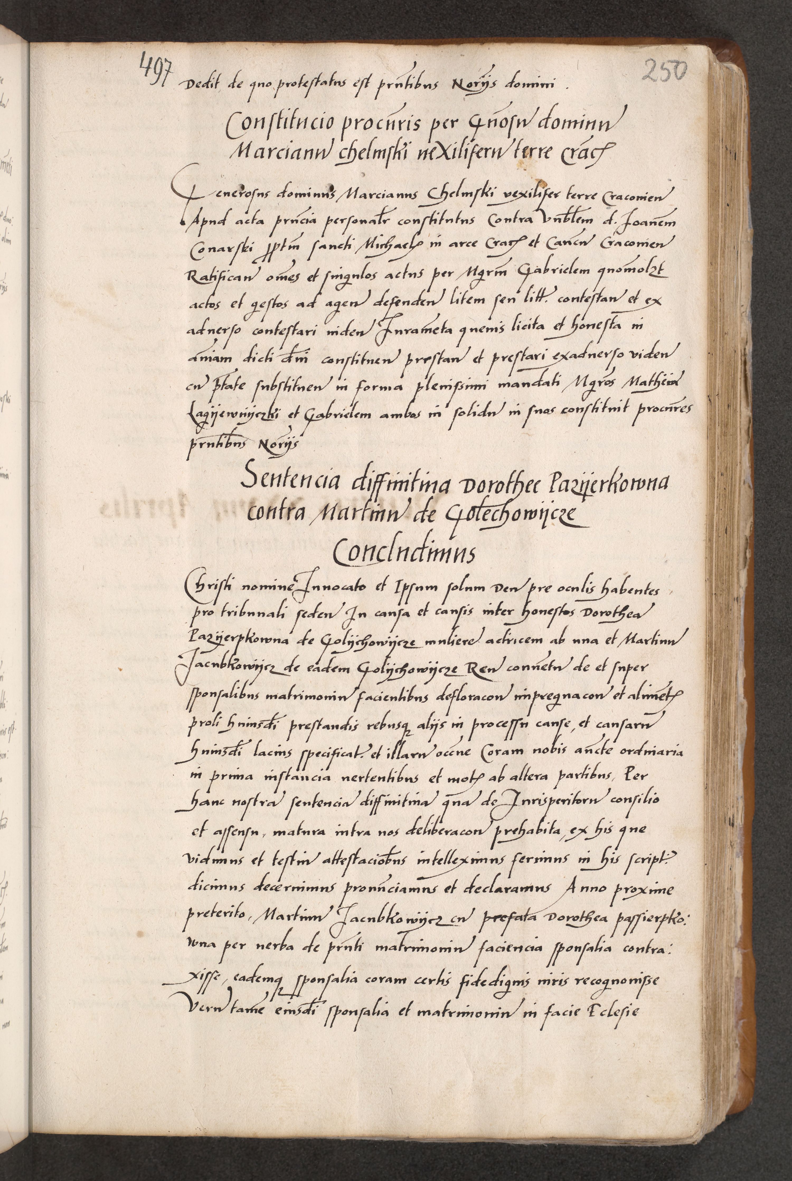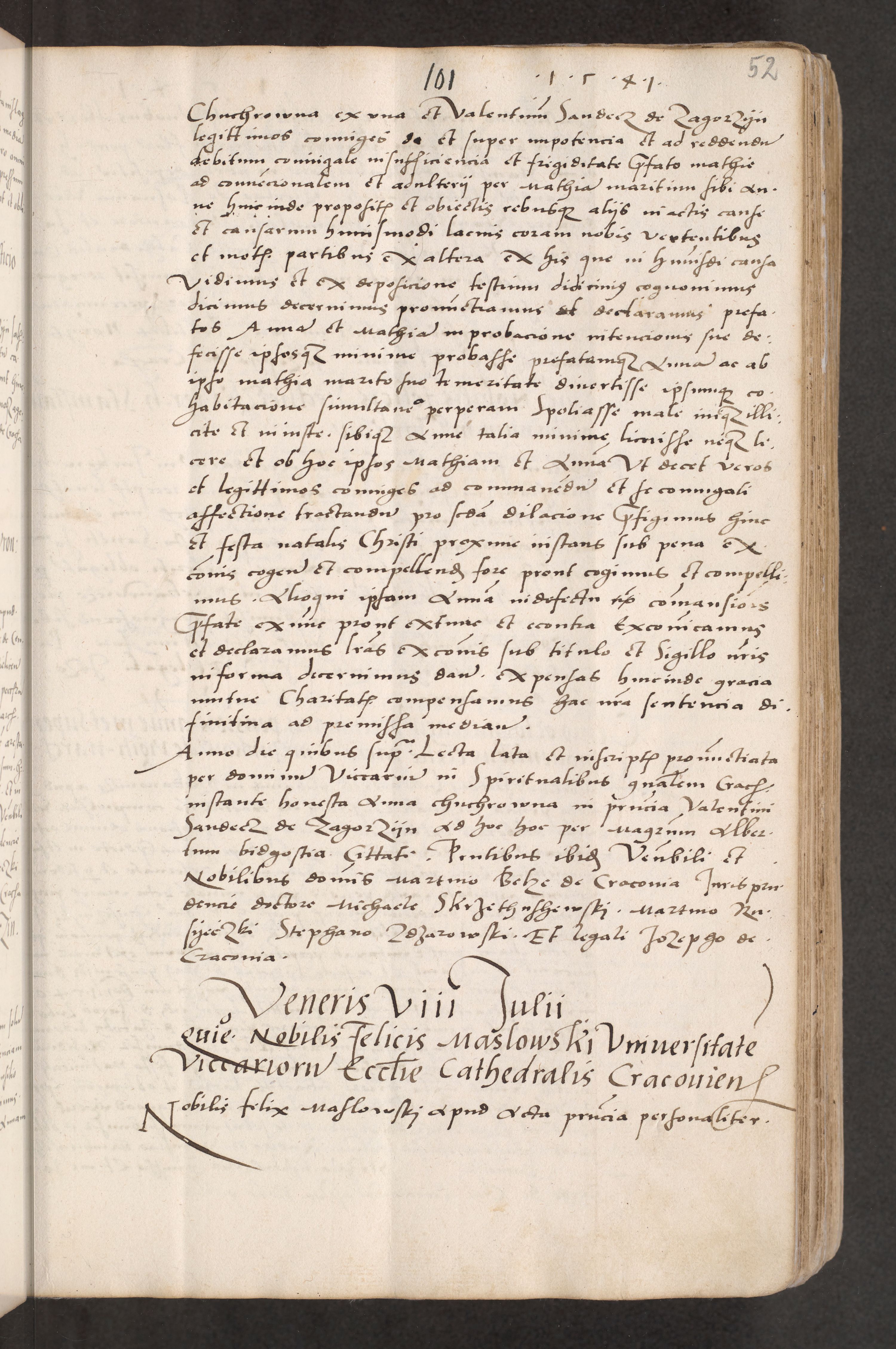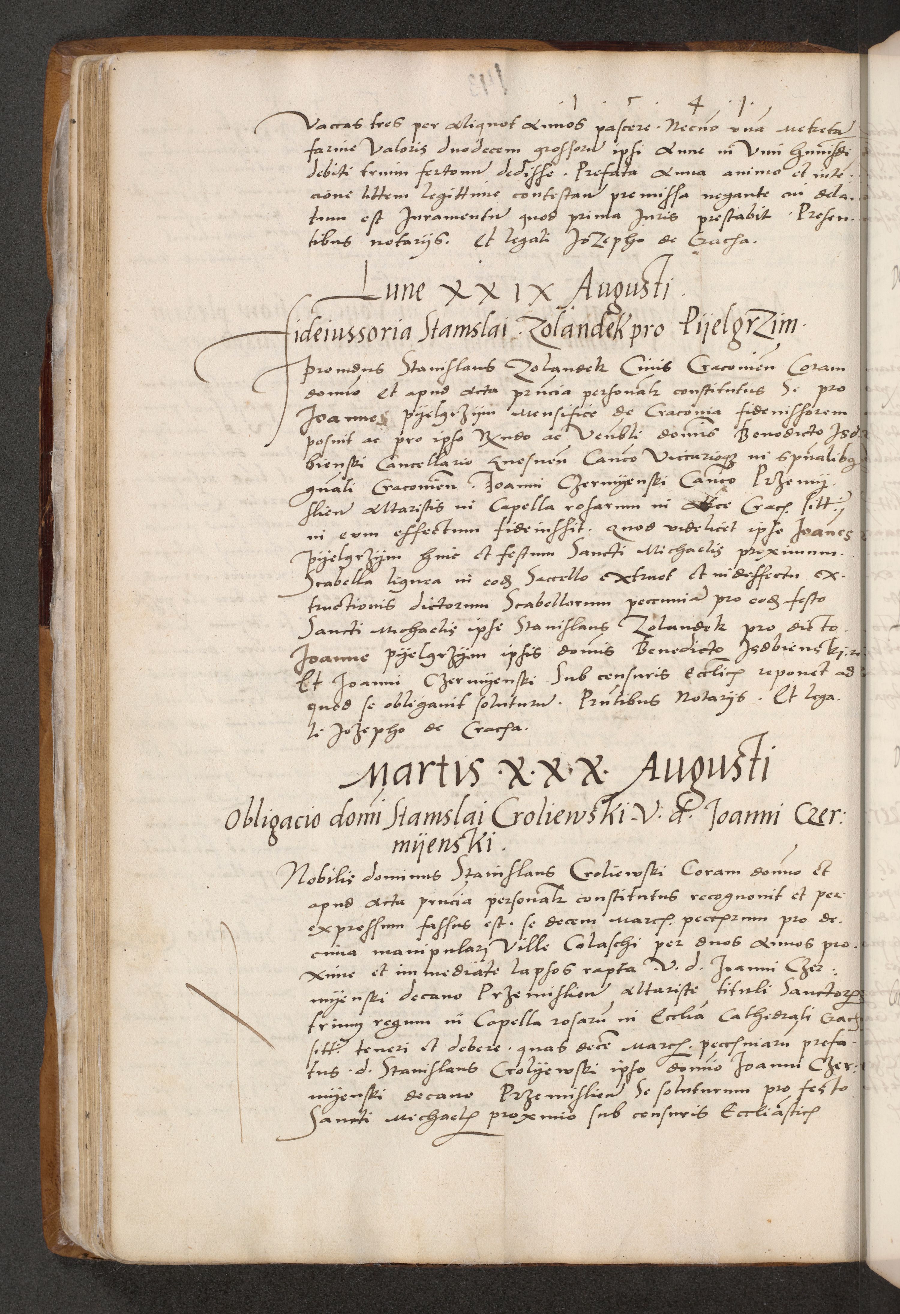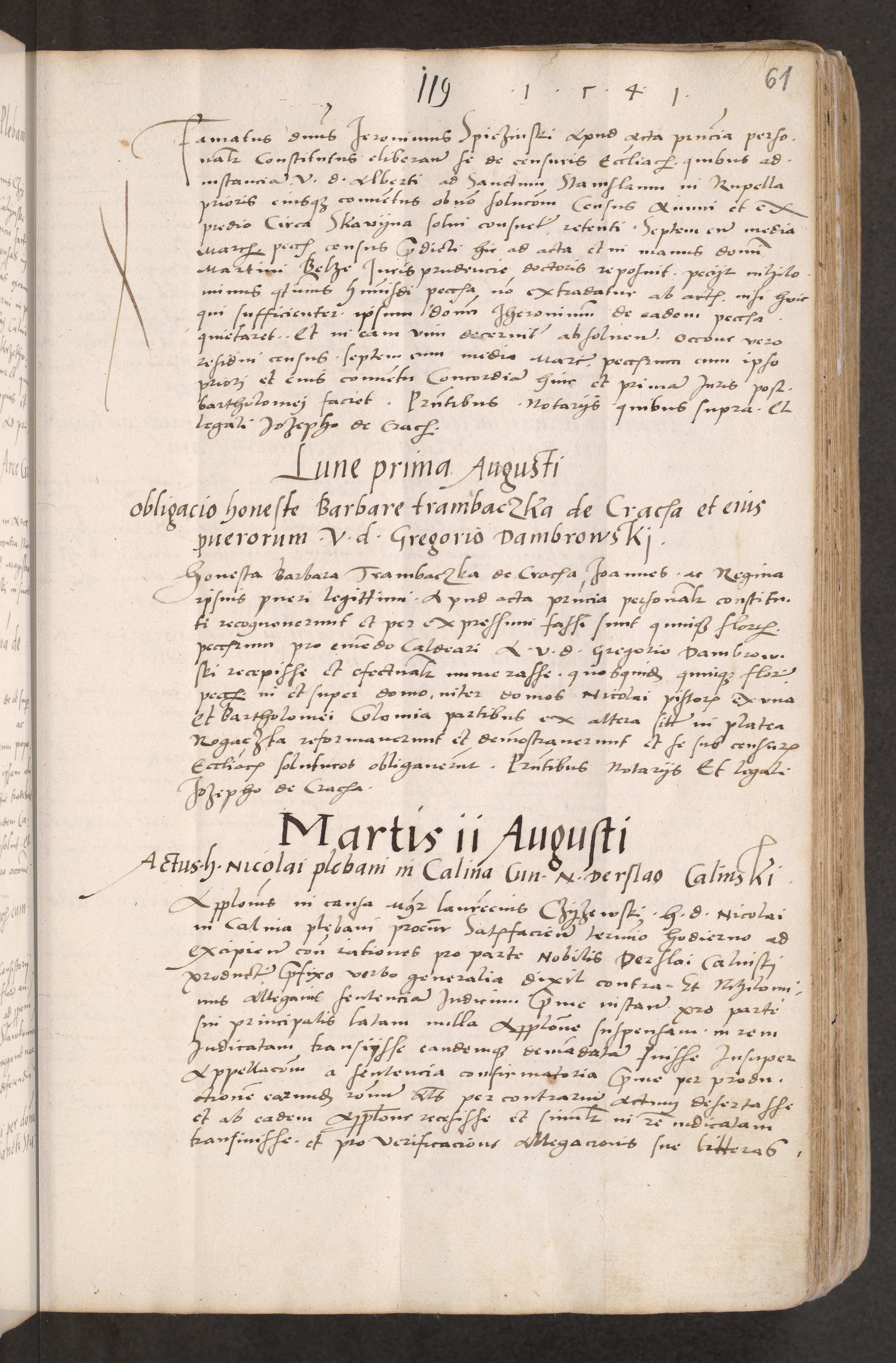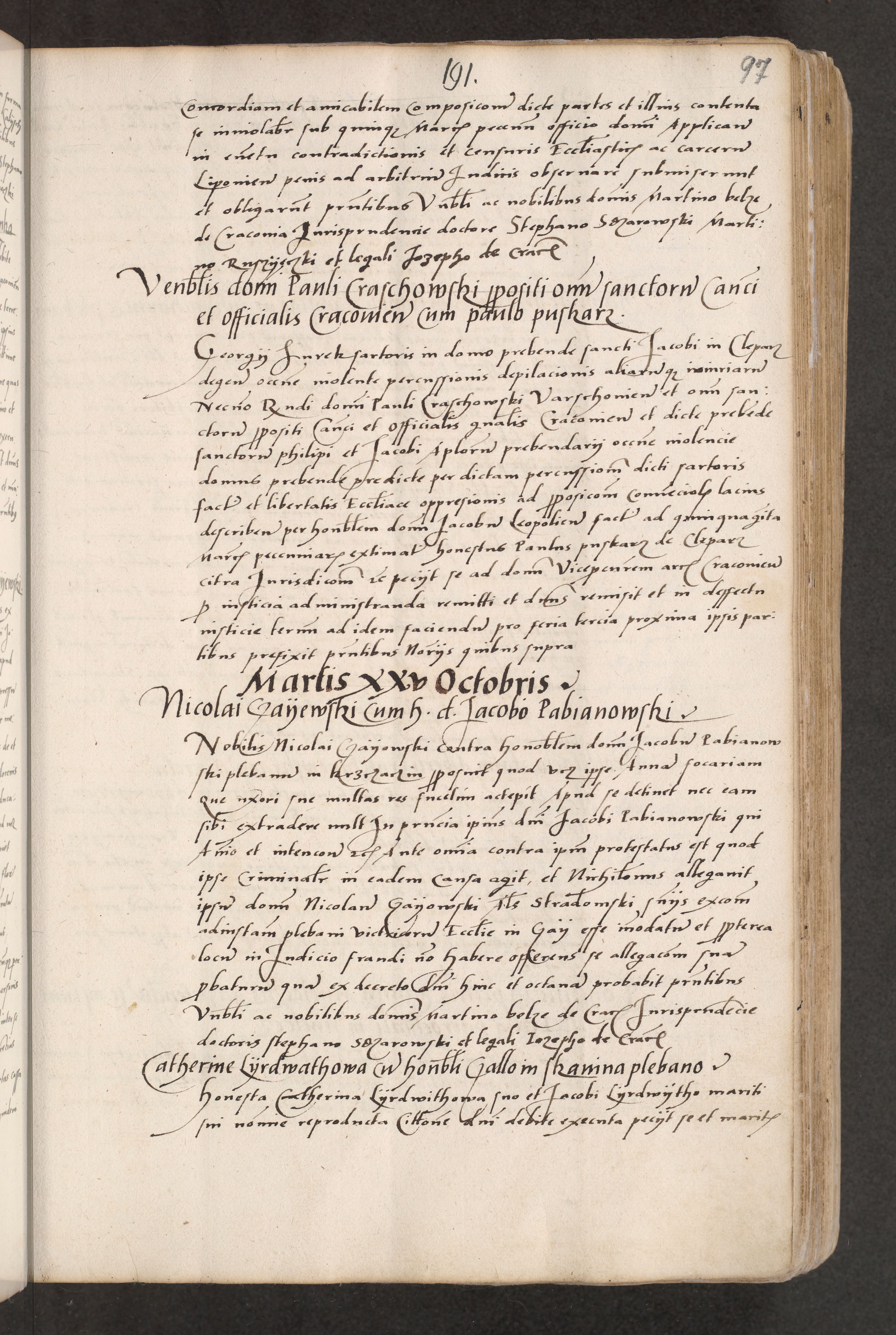 Acta actorum coram reverendo patre domino Benedicto Isdbienski cancellario Gnesnesi, canonico et reverendissimi in Christo patris et domini domini Petri Dei gratia archiepiscopi Gnesnensis et episcopi Cracoviensis sedisque apostolice legati nati et primatis Regni Polonie, vicarioque in spiritualibus generali Cracoviensi ad annum Domini millesimum quingentisimum quadragesimum primum, cuius indictio est quatuordecima, pontificatus sanctissimi in Christo patris et domini nostri domini Pauli divina providencia pape tercii, anno ipsius septimo, feliciter continuantur. Dii cepta secundent