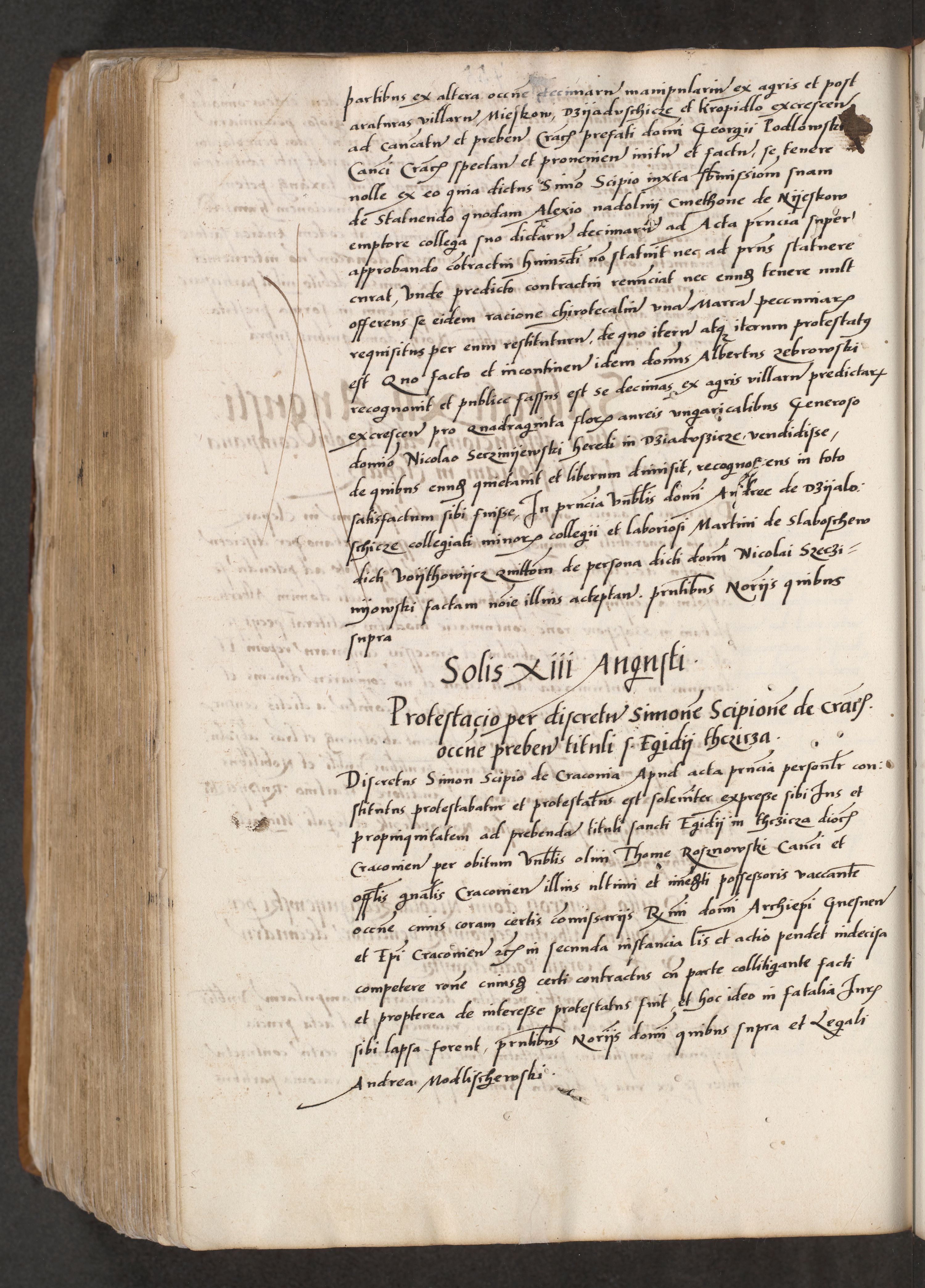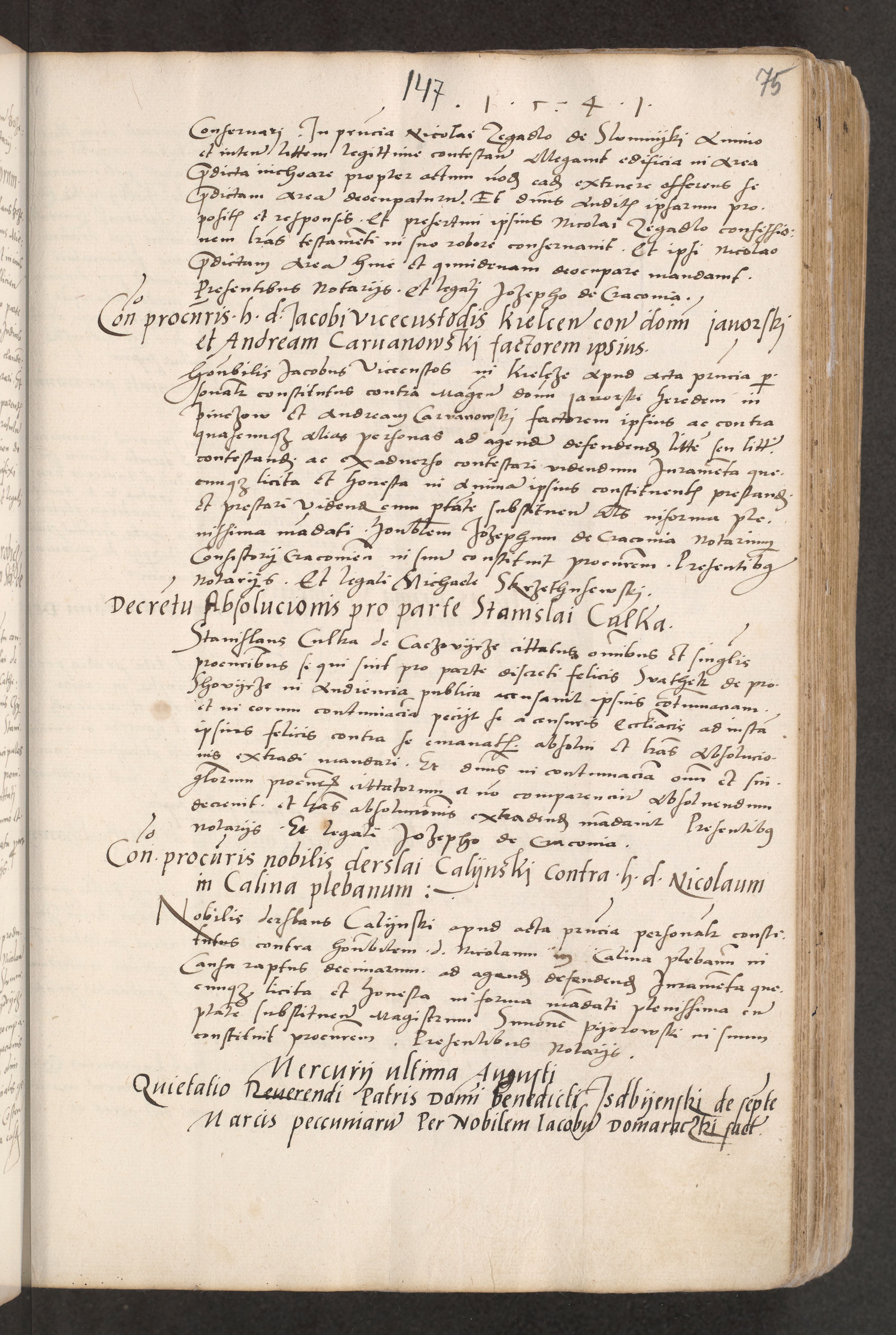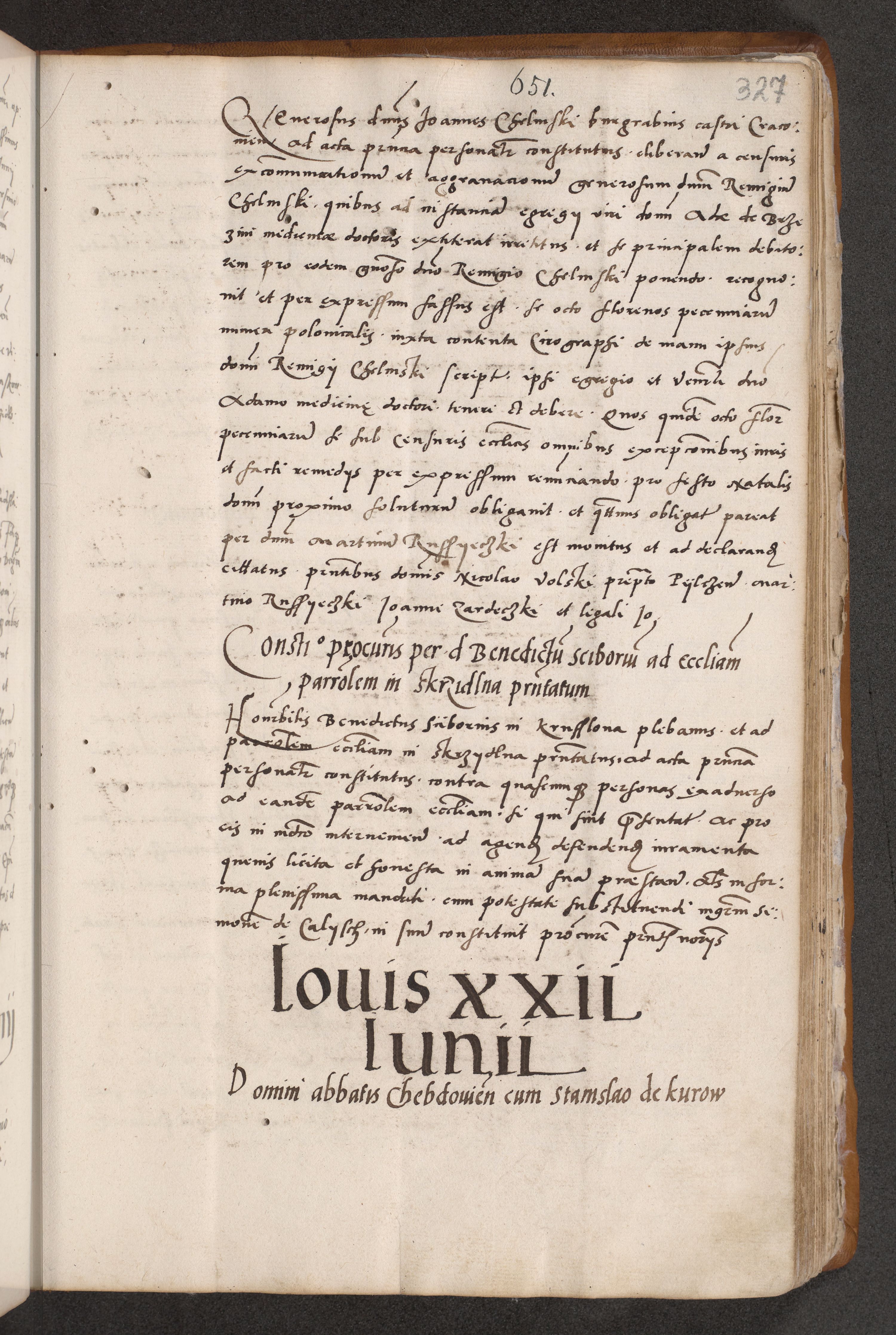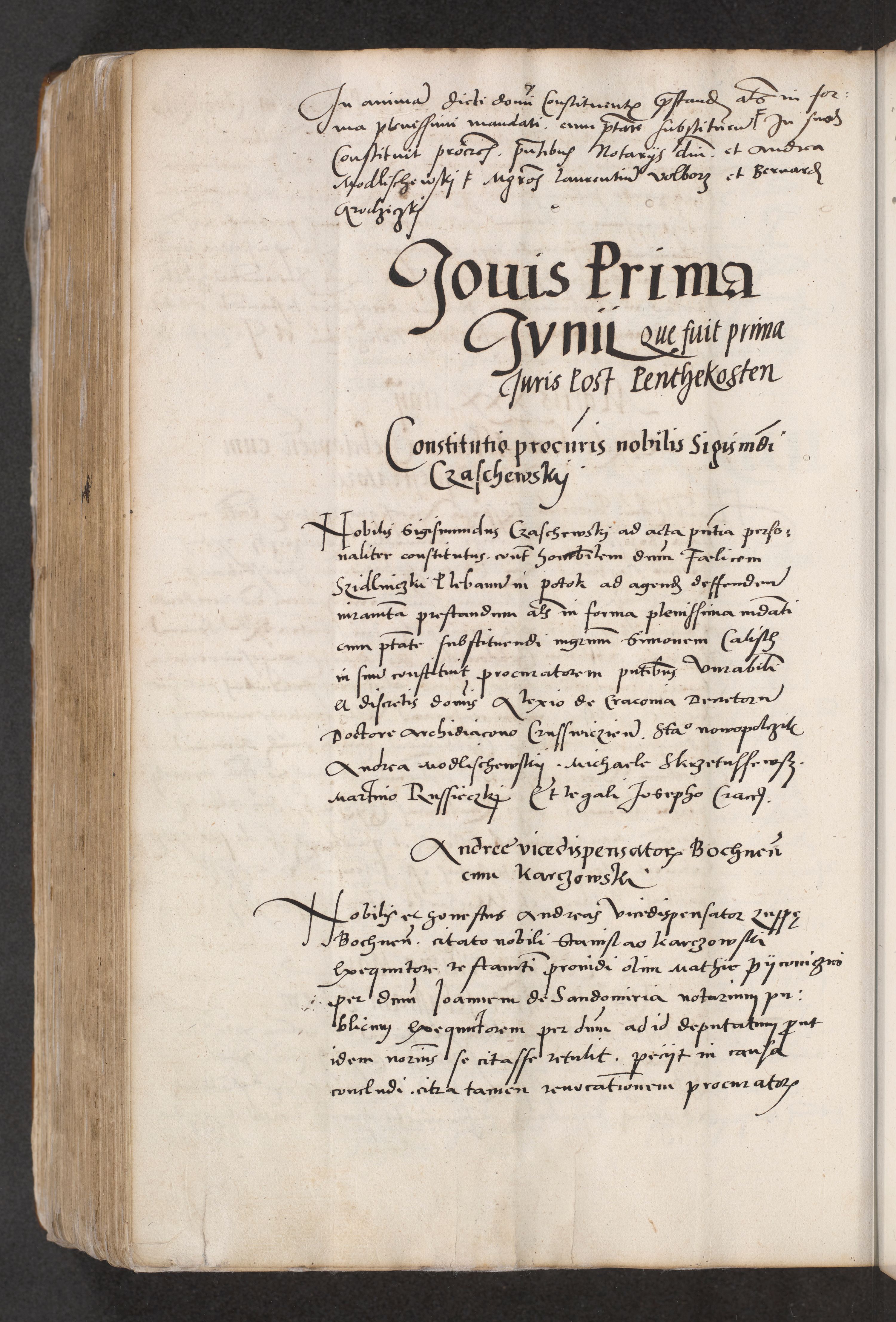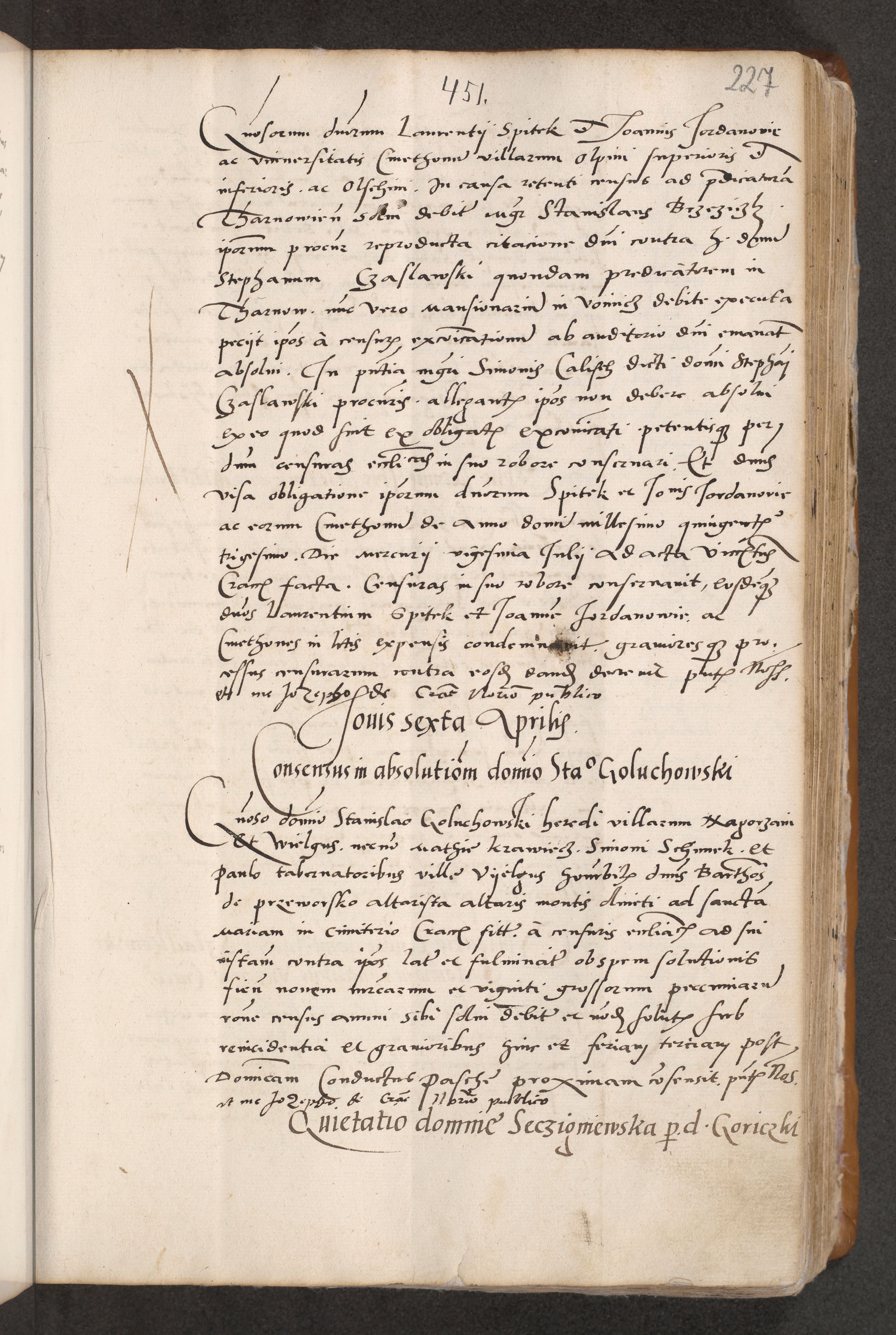 Acta actorum coram reverendo patre domino Benedicto Isdbienski cancellario Gnesnesi, canonico et reverendissimi in Christo patris et domini domini Petri Dei gratia archiepiscopi Gnesnensis et episcopi Cracoviensis sedisque apostolice legati nati et primatis Regni Polonie, vicarioque in spiritualibus generali Cracoviensi ad annum Domini millesimum quingentisimum quadragesimum primum, cuius indictio est quatuordecima, pontificatus sanctissimi in Christo patris et domini nostri domini Pauli divina providencia pape tercii, anno ipsius septimo, feliciter continuantur. Dii cepta secundent