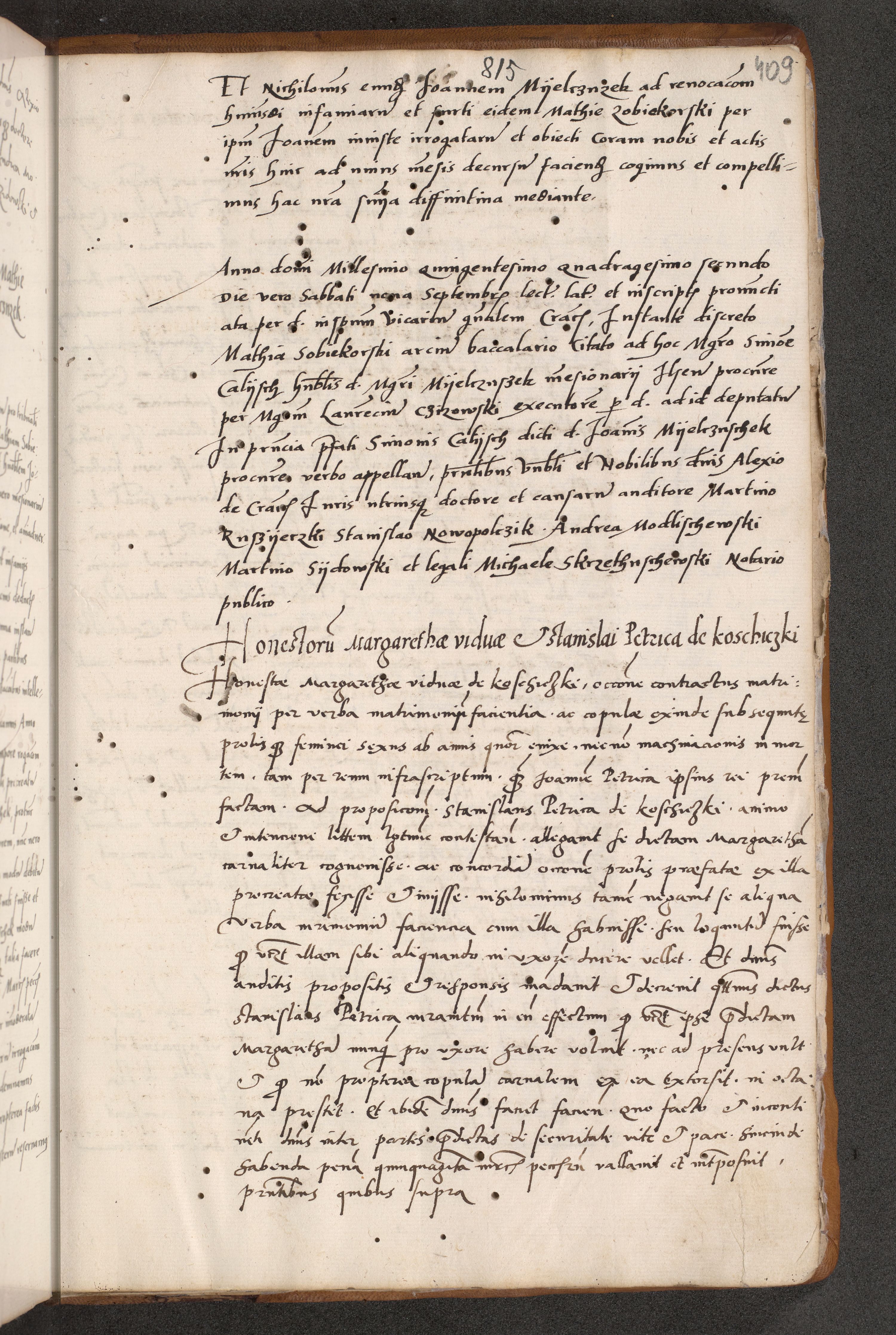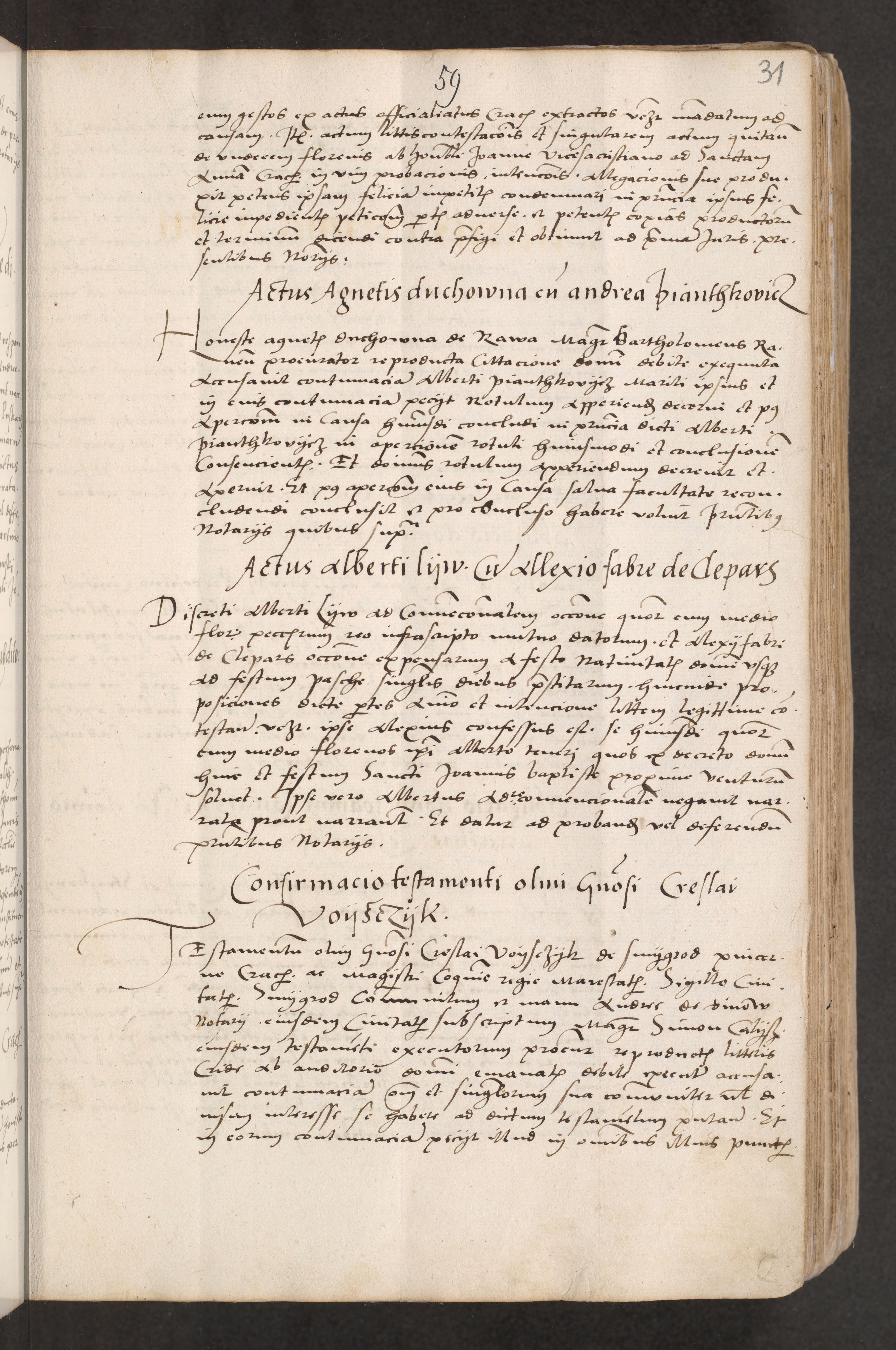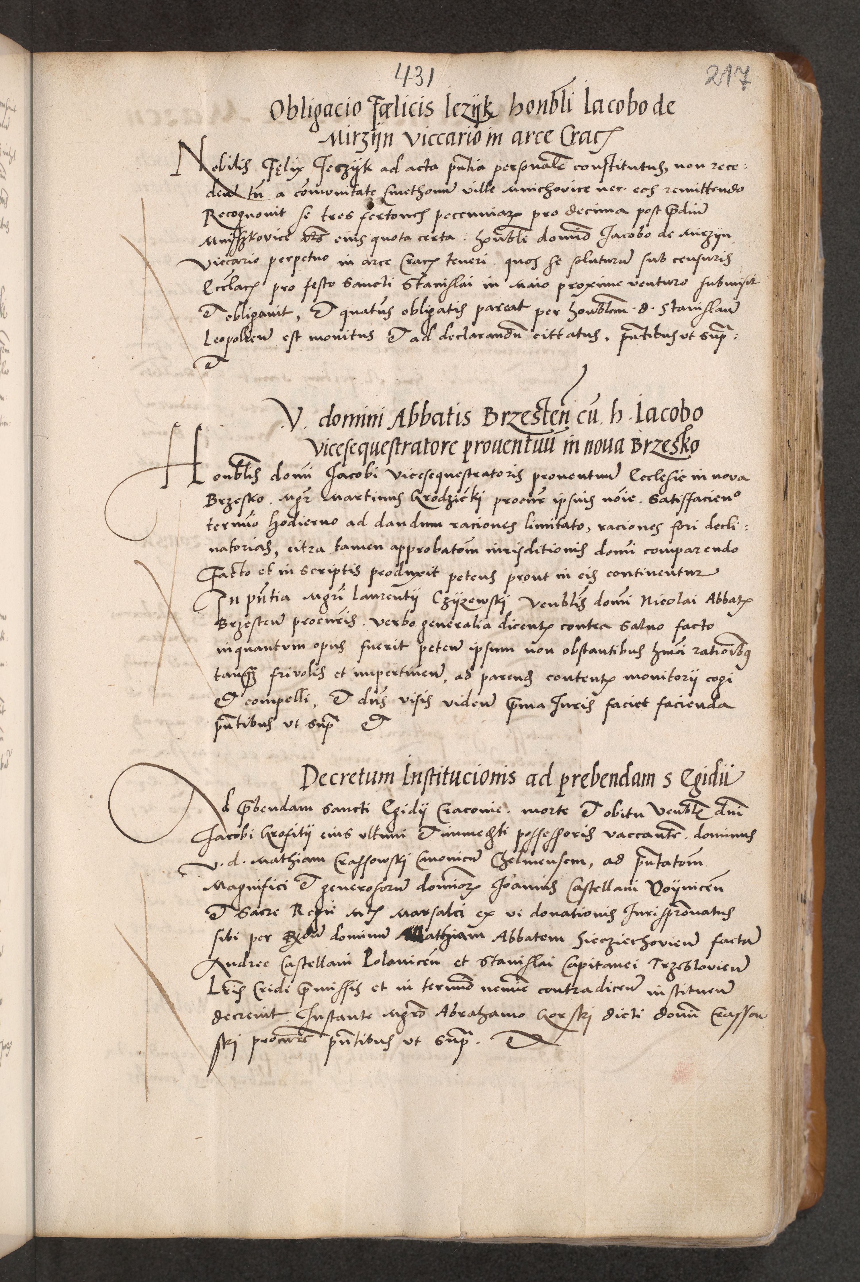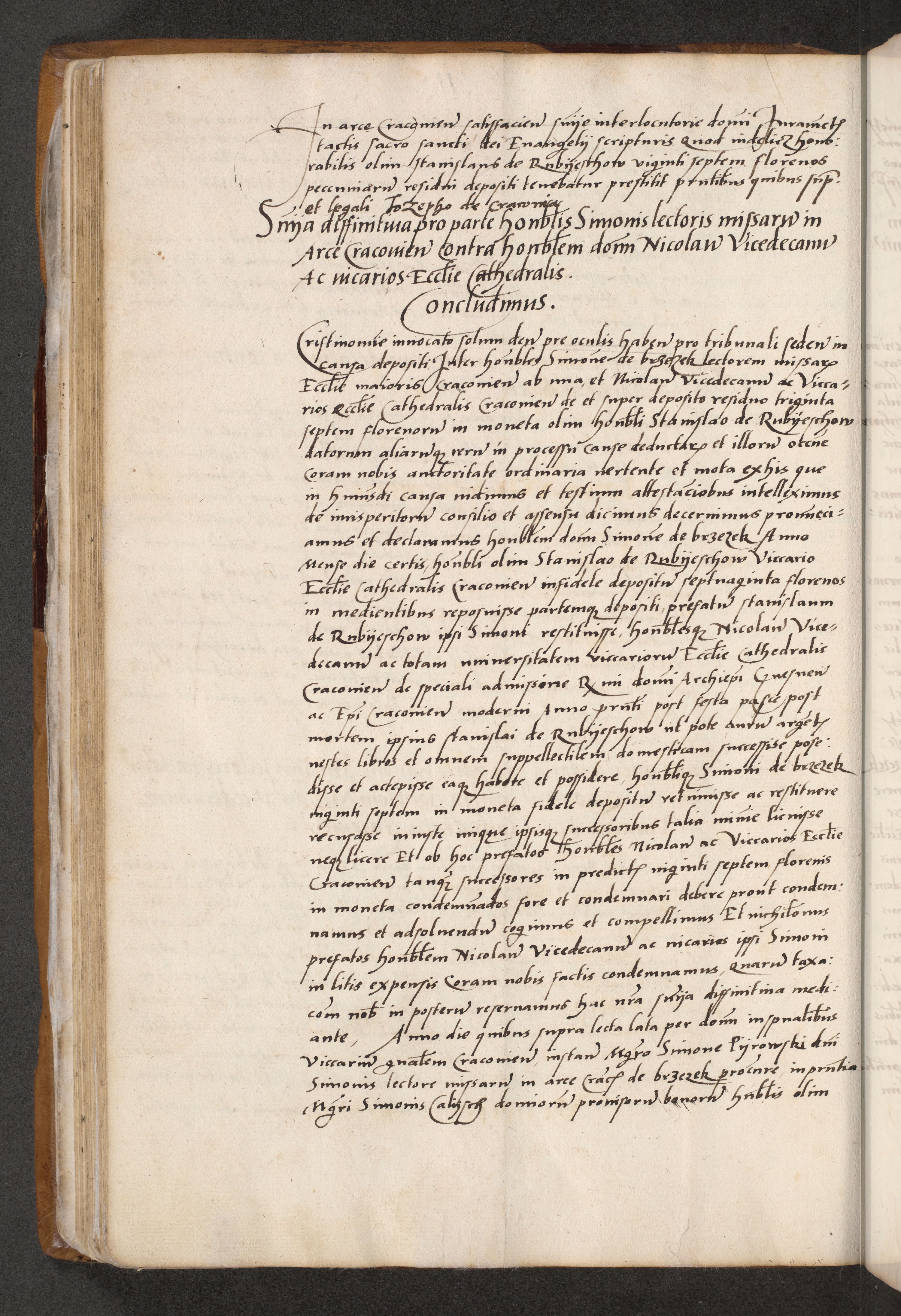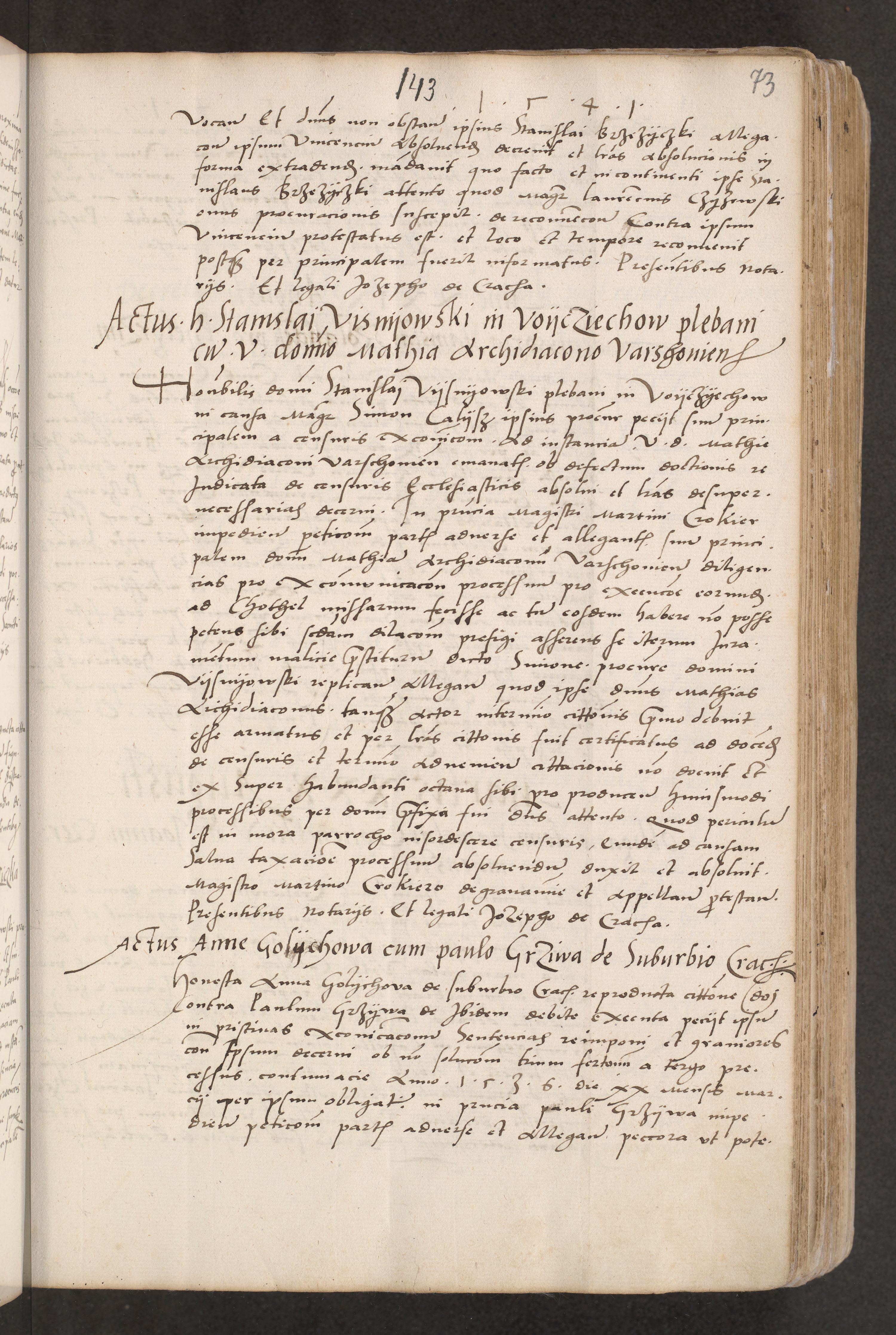Acta actorum coram reverendo patre domino Benedicto Isdbienski cancellario Gnesnesi, canonico et reverendissimi in Christo patris et domini domini Petri Dei gratia archiepiscopi Gnesnensis et episcopi Cracoviensis sedisque apostolice legati nati et primatis Regni Polonie, vicarioque in spiritualibus generali Cracoviensi ad annum Domini millesimum quingentisimum quadragesimum primum, cuius indictio est quatuordecima, pontificatus sanctissimi in Christo patris et domini nostri domini Pauli divina providencia pape tercii, anno ipsius septimo, feliciter continuantur. Dii cepta secundent