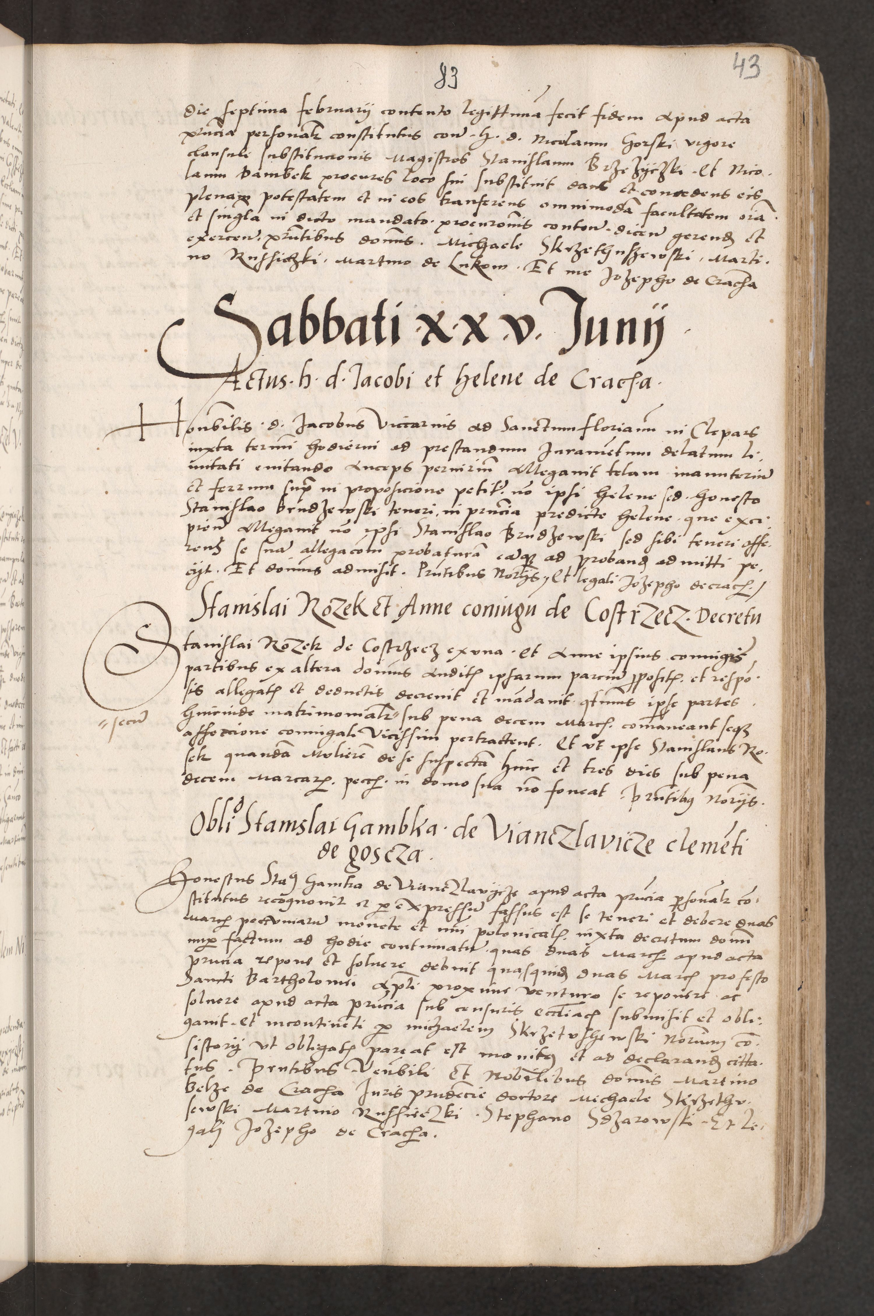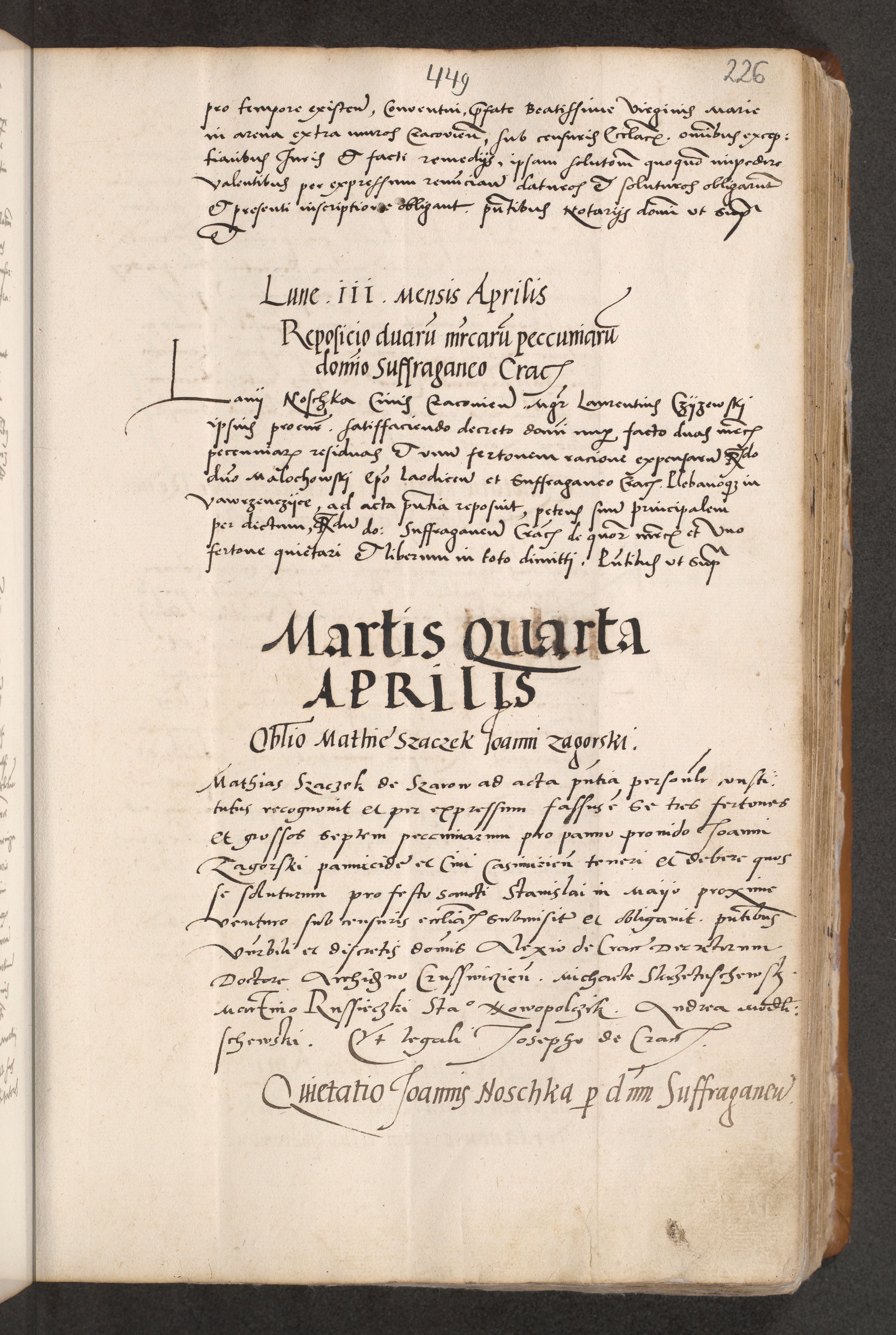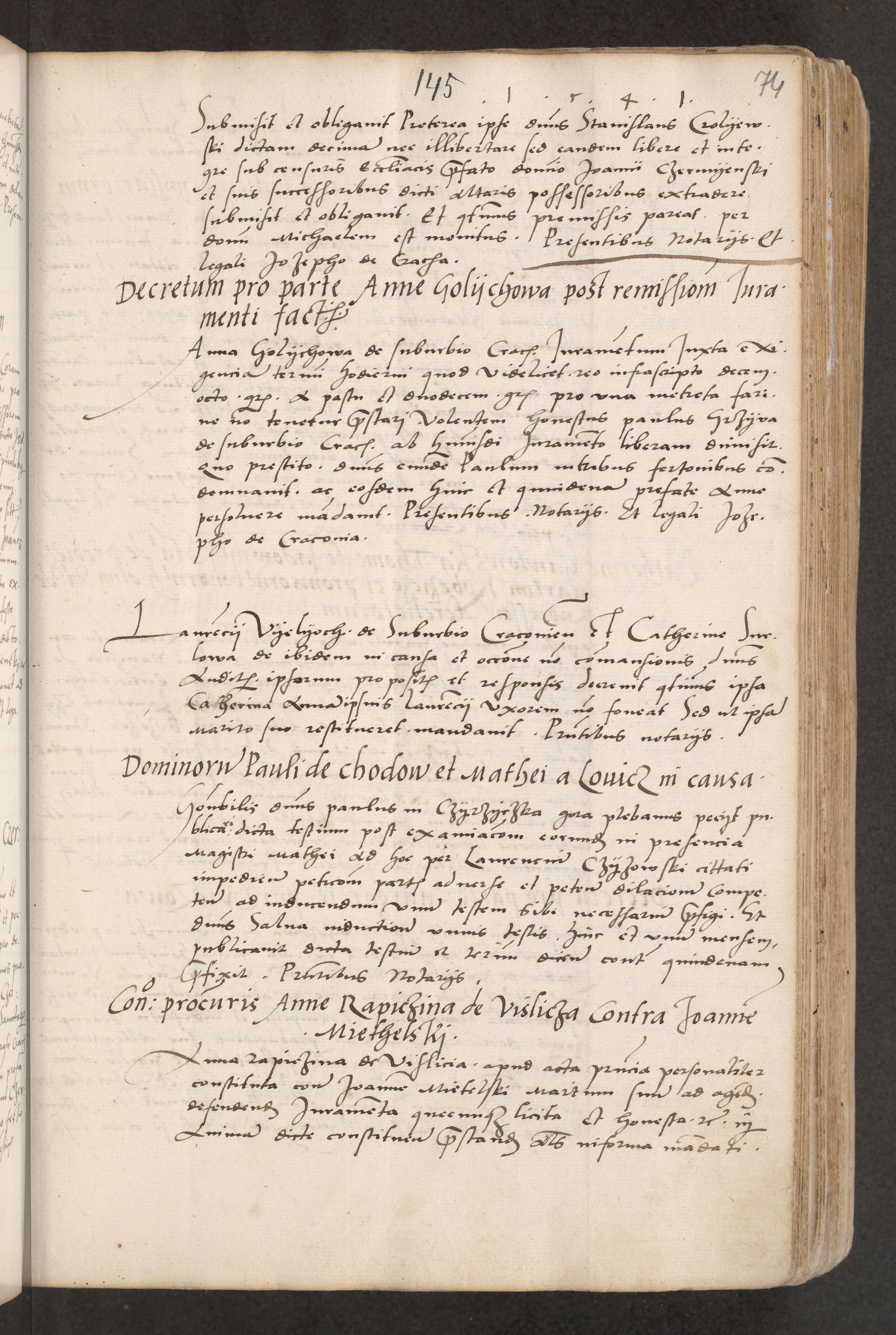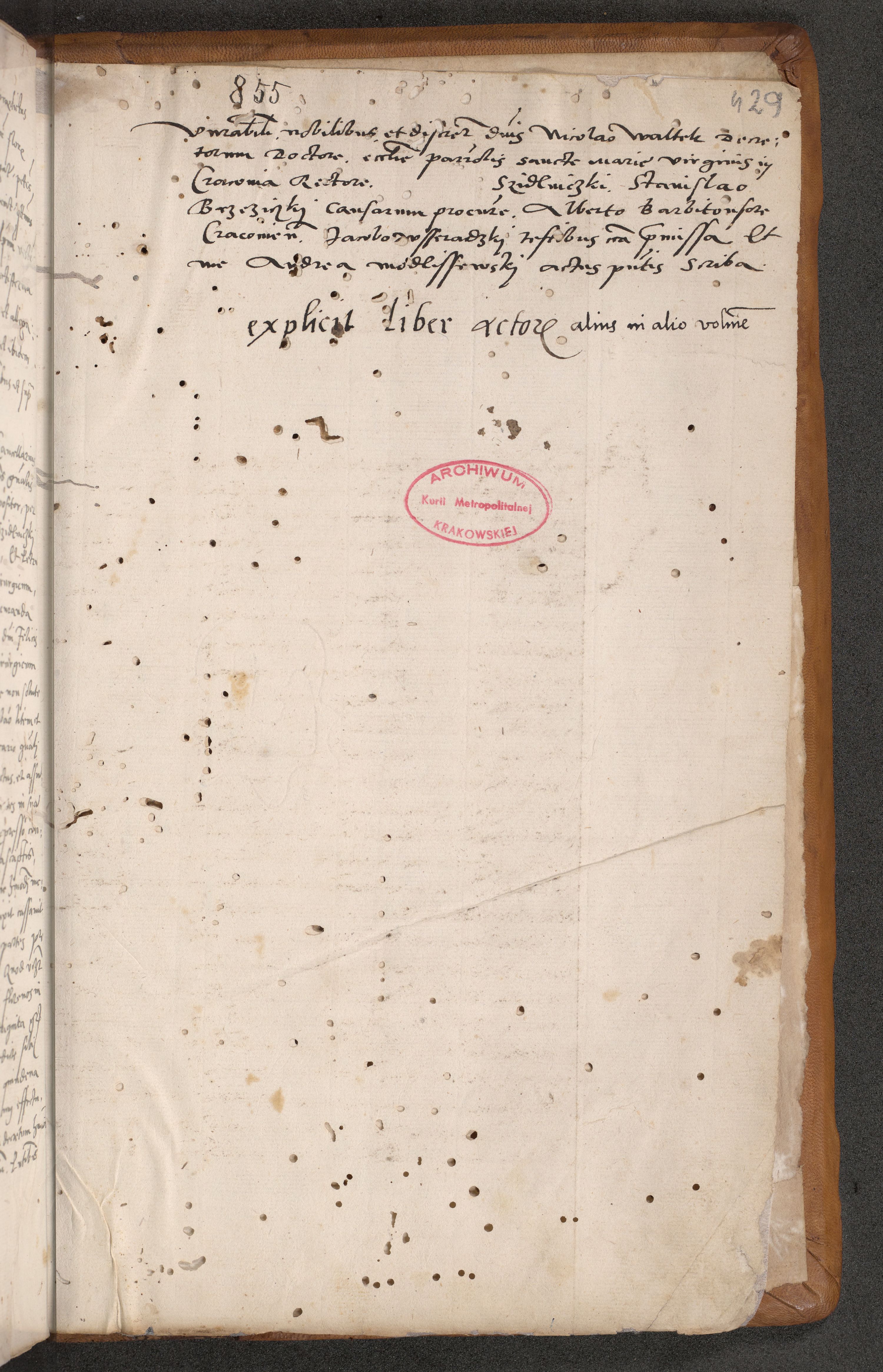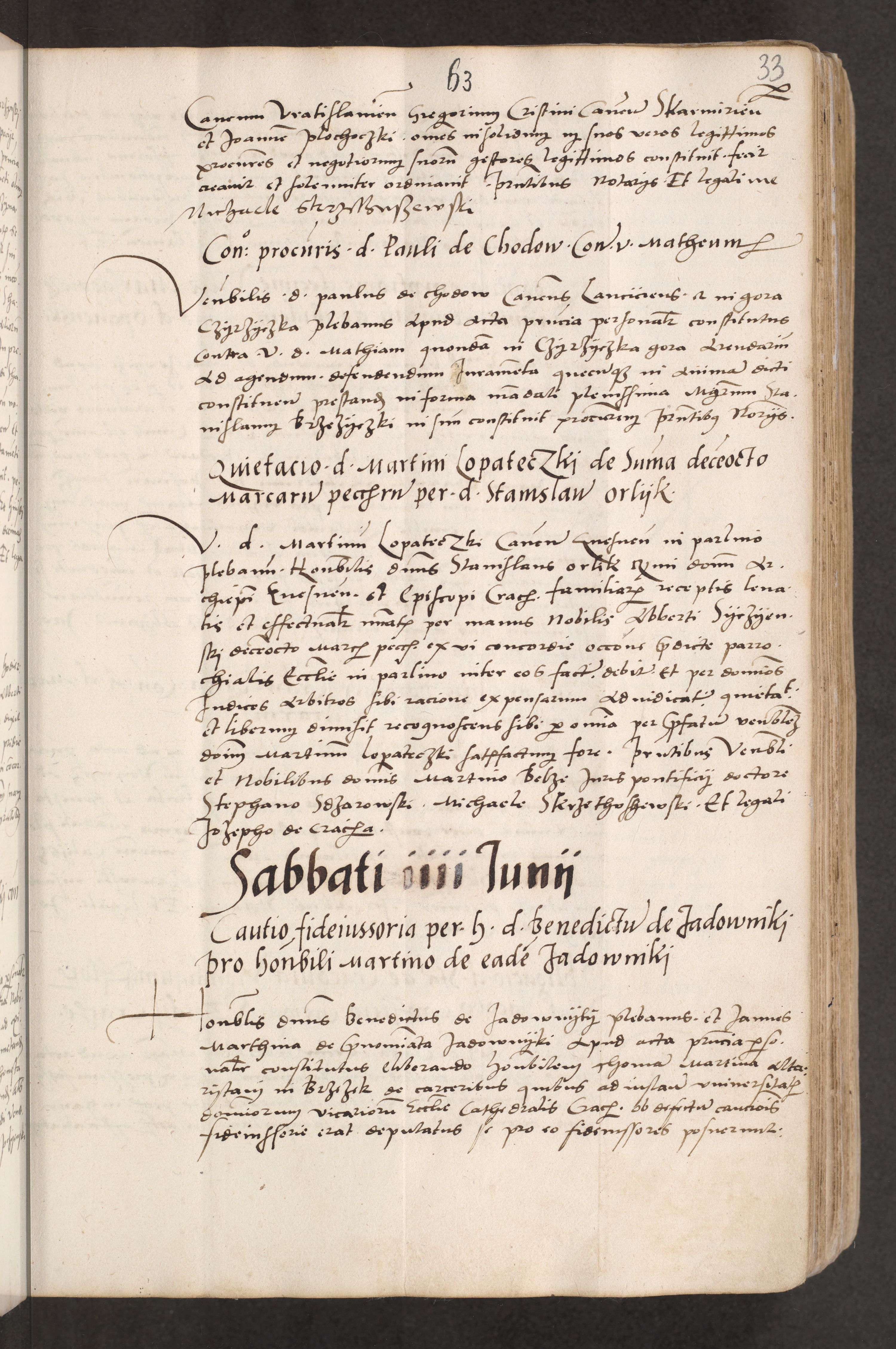Acta actorum coram reverendo patre domino Benedicto Isdbienski cancellario Gnesnesi, canonico et reverendissimi in Christo patris et domini domini Petri Dei gratia archiepiscopi Gnesnensis et episcopi Cracoviensis sedisque apostolice legati nati et primatis Regni Polonie, vicarioque in spiritualibus generali Cracoviensi ad annum Domini millesimum quingentisimum quadragesimum primum, cuius indictio est quatuordecima, pontificatus sanctissimi in Christo patris et domini nostri domini Pauli divina providencia pape tercii, anno ipsius septimo, feliciter continuantur. Dii cepta secundent