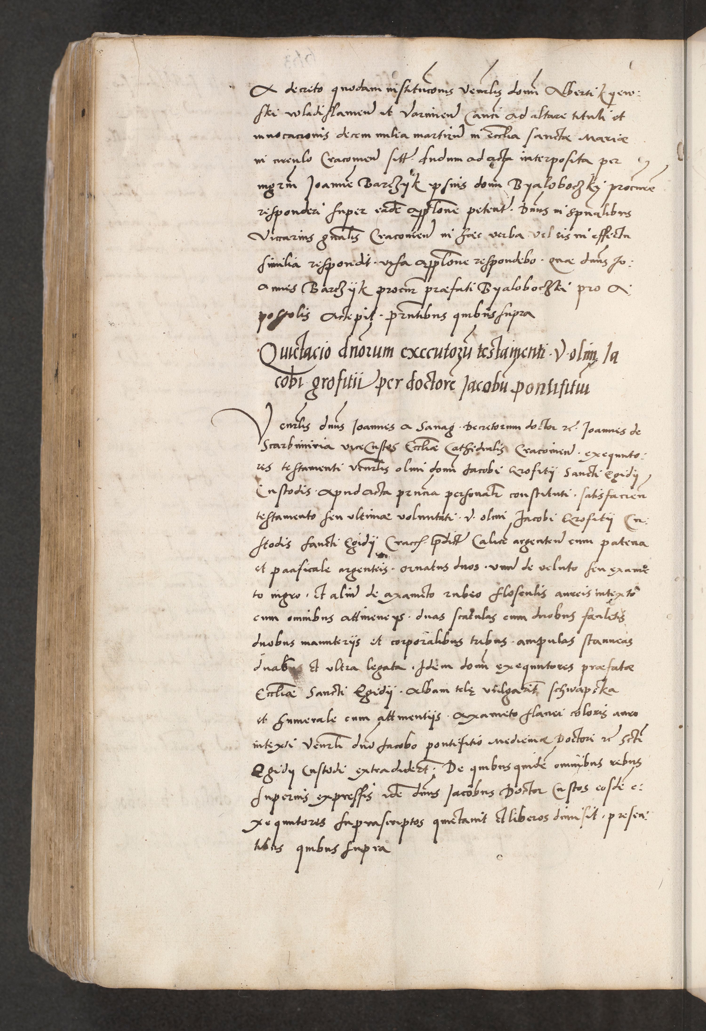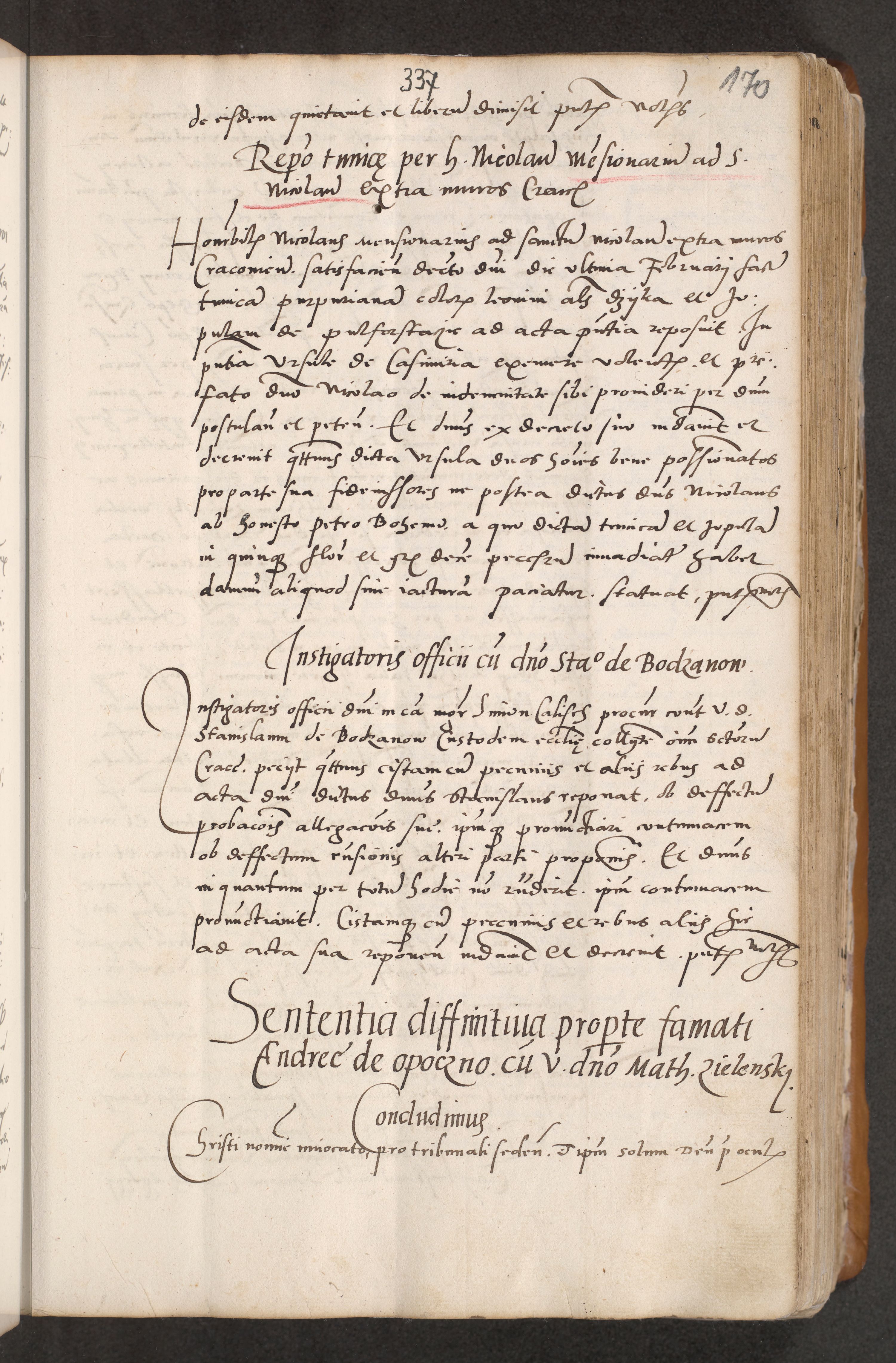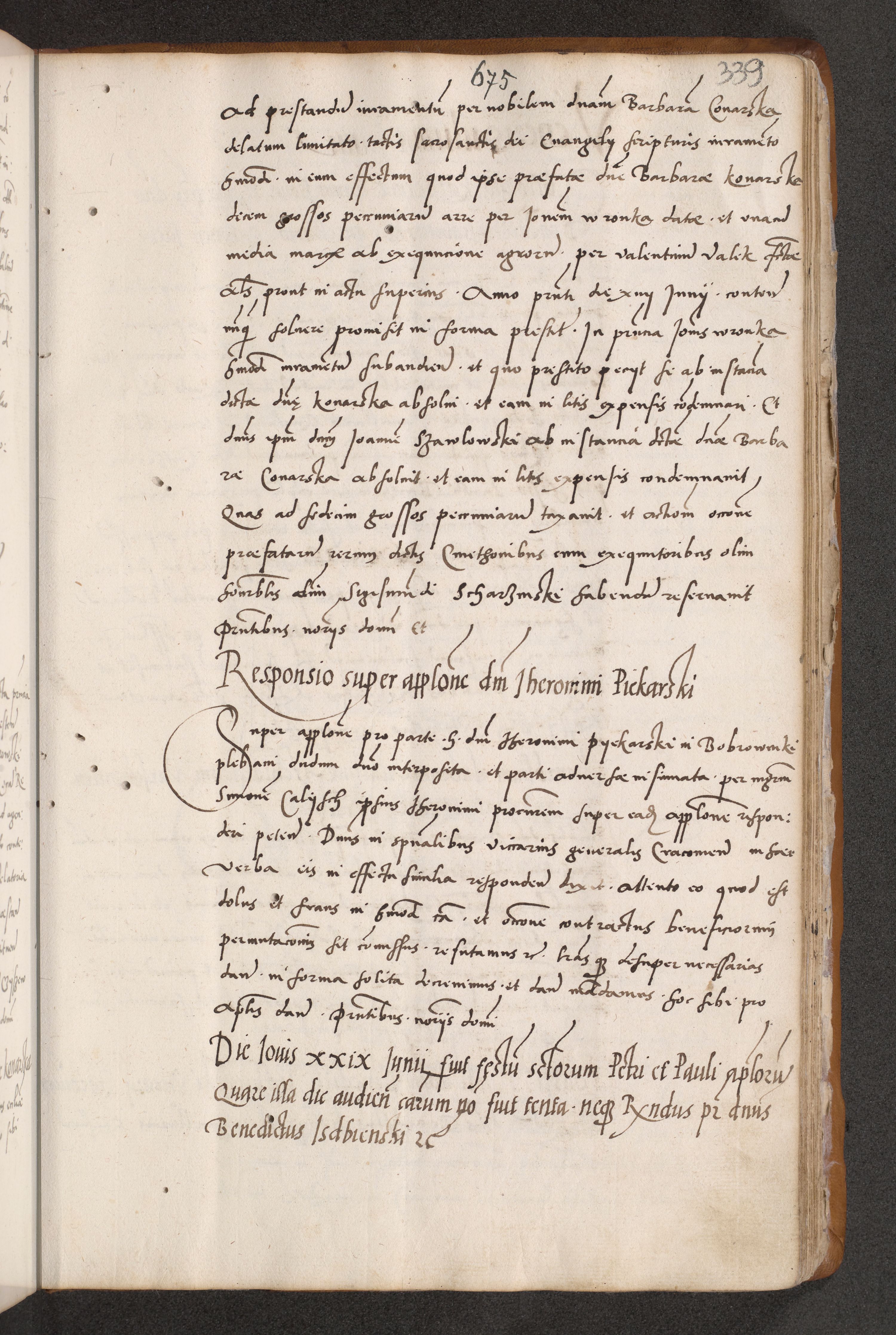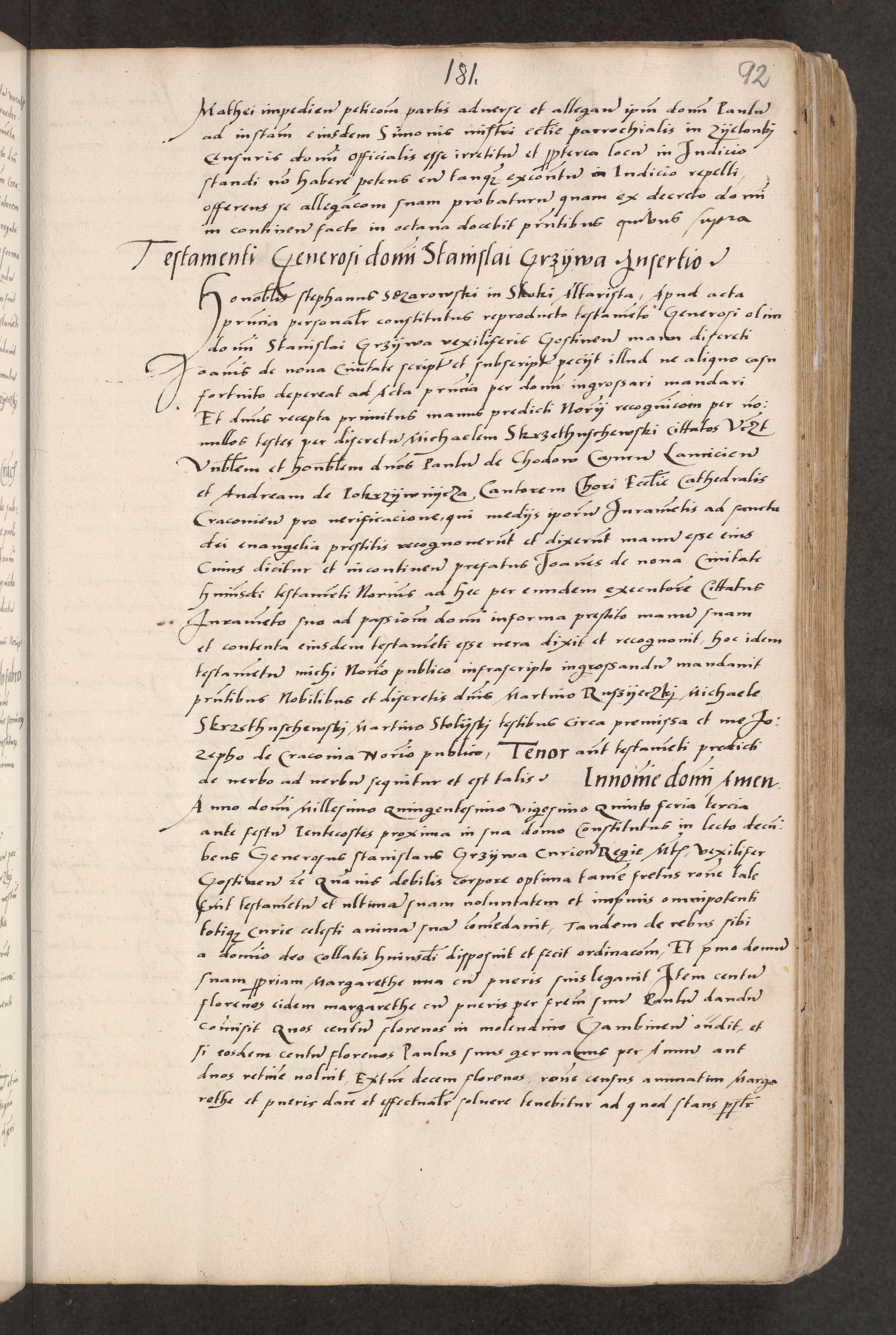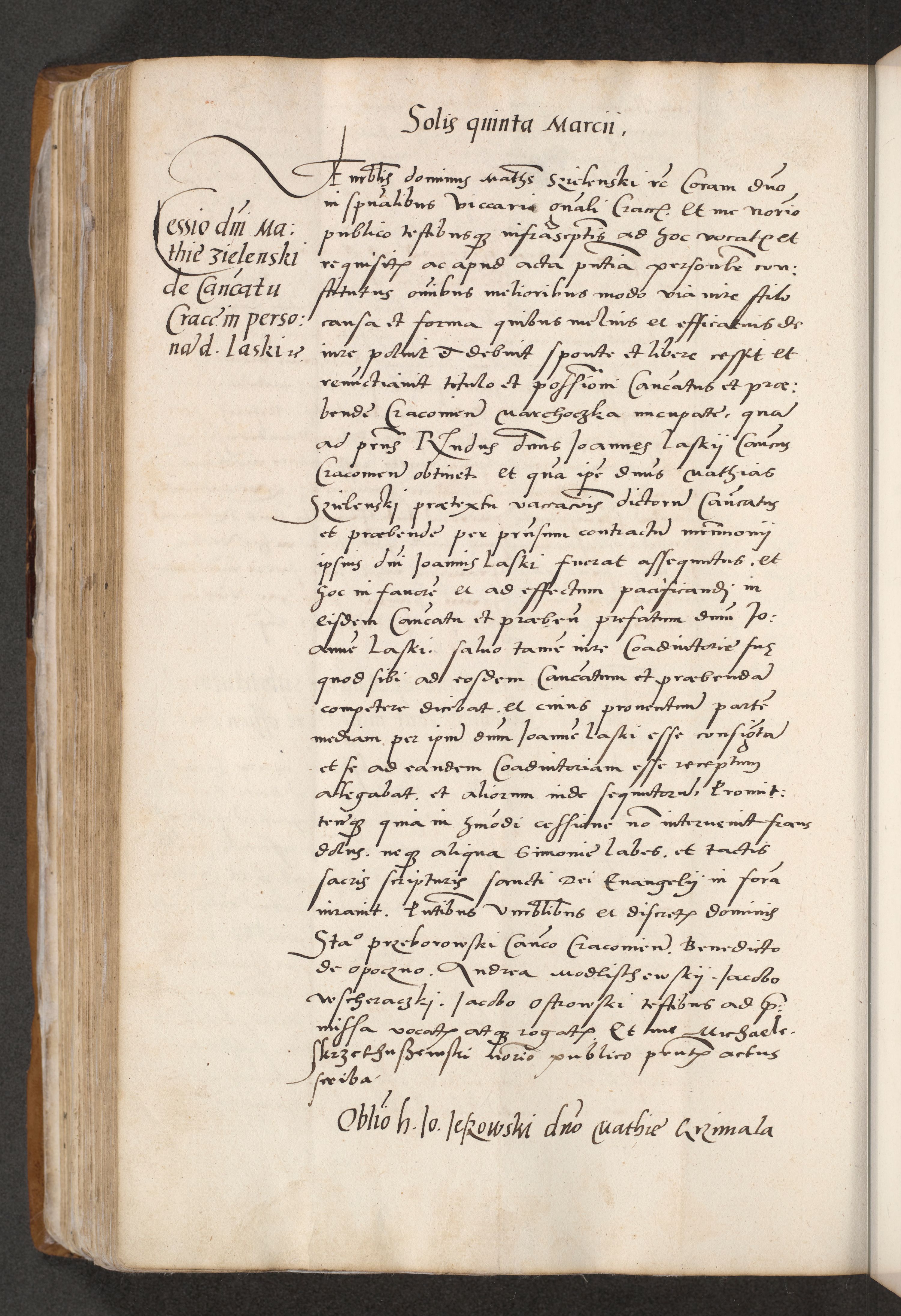 Acta actorum coram reverendo patre domino Benedicto Isdbienski cancellario Gnesnesi, canonico et reverendissimi in Christo patris et domini domini Petri Dei gratia archiepiscopi Gnesnensis et episcopi Cracoviensis sedisque apostolice legati nati et primatis Regni Polonie, vicarioque in spiritualibus generali Cracoviensi ad annum Domini millesimum quingentisimum quadragesimum primum, cuius indictio est quatuordecima, pontificatus sanctissimi in Christo patris et domini nostri domini Pauli divina providencia pape tercii, anno ipsius septimo, feliciter continuantur. Dii cepta secundent