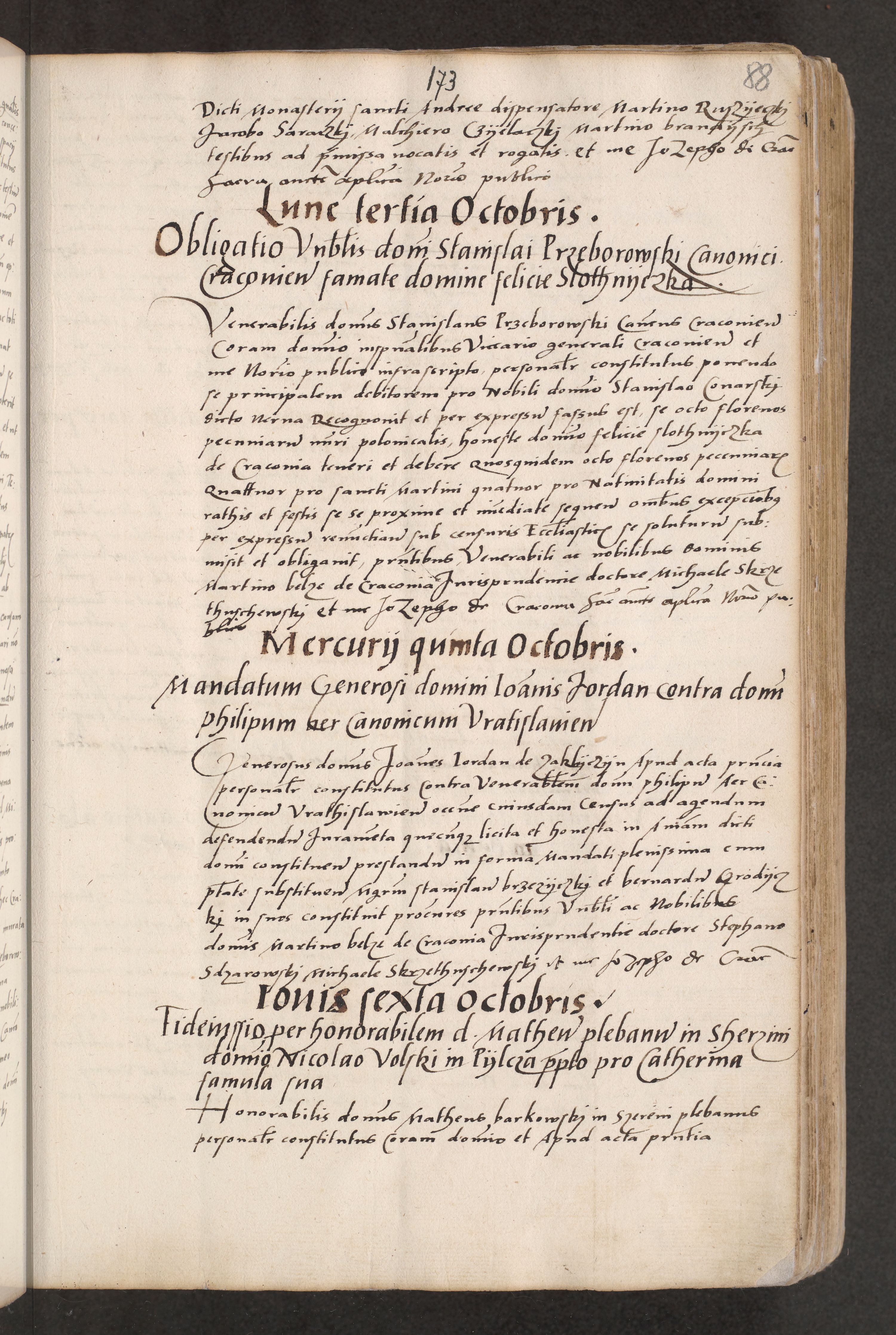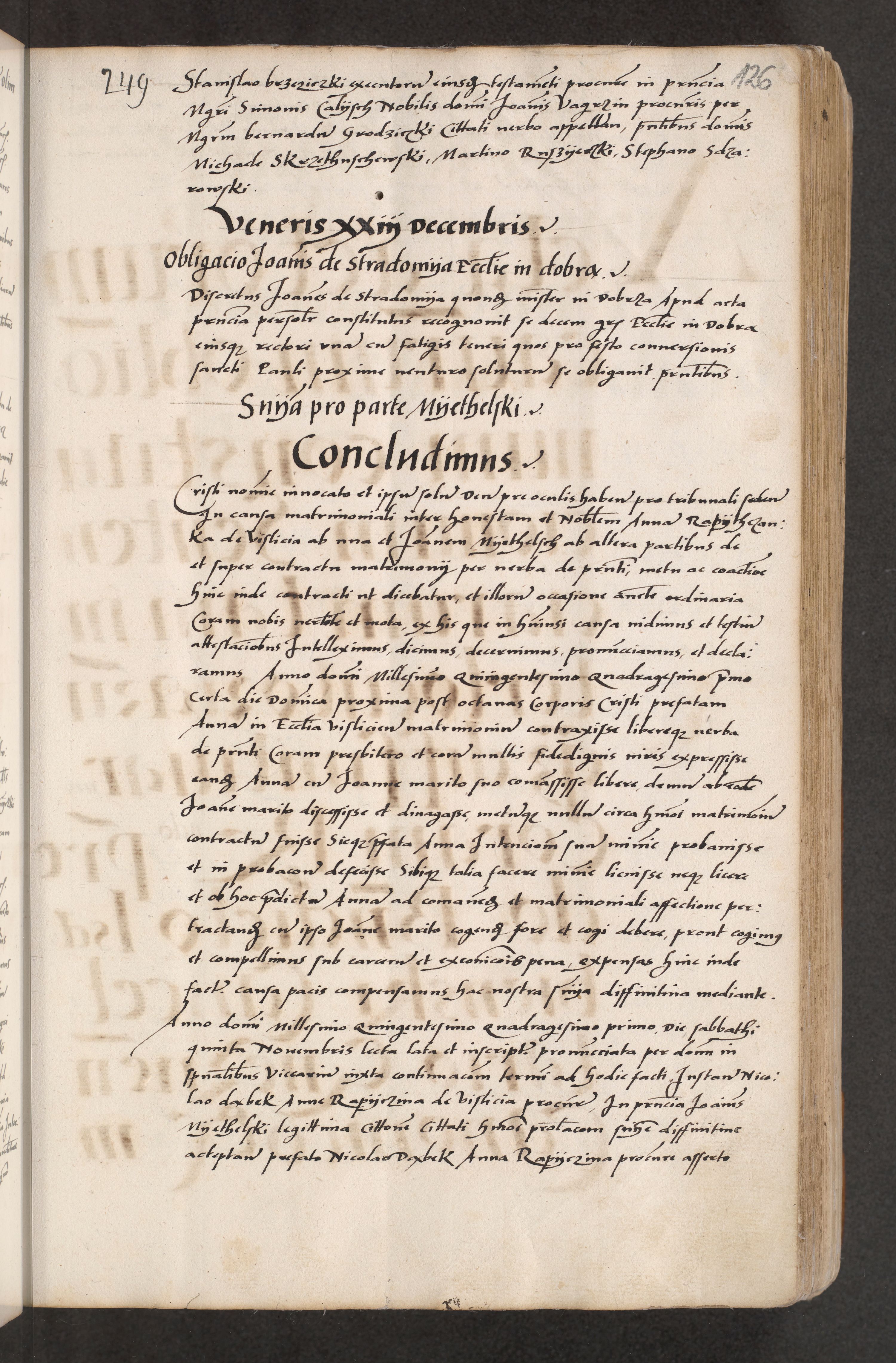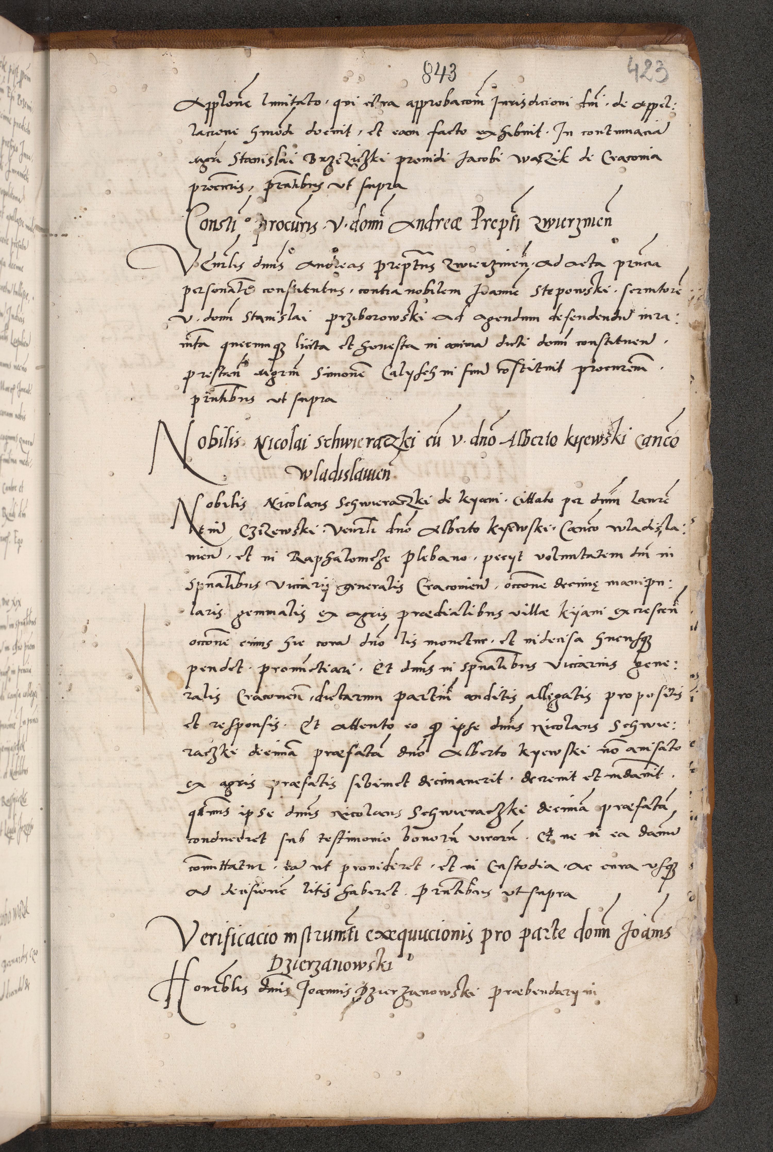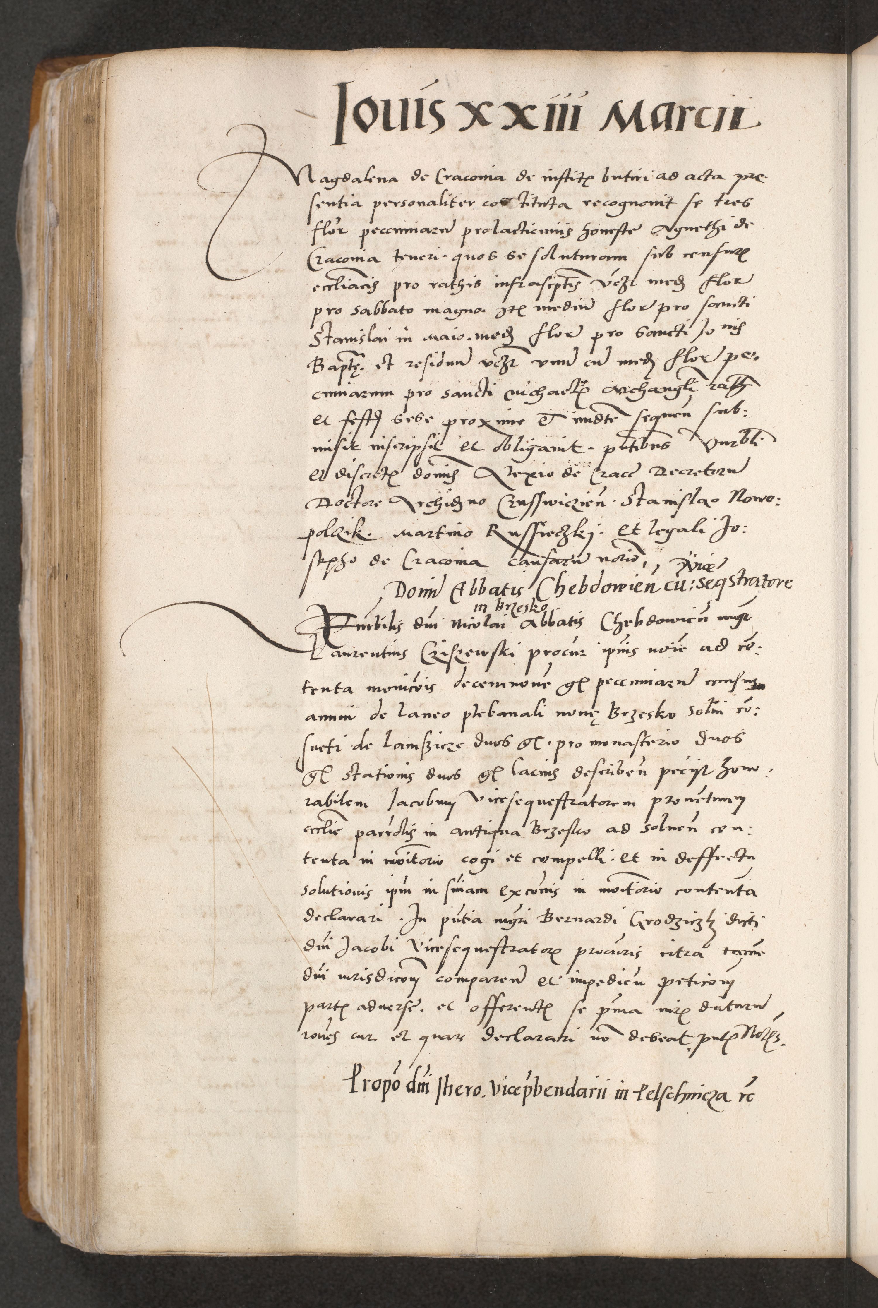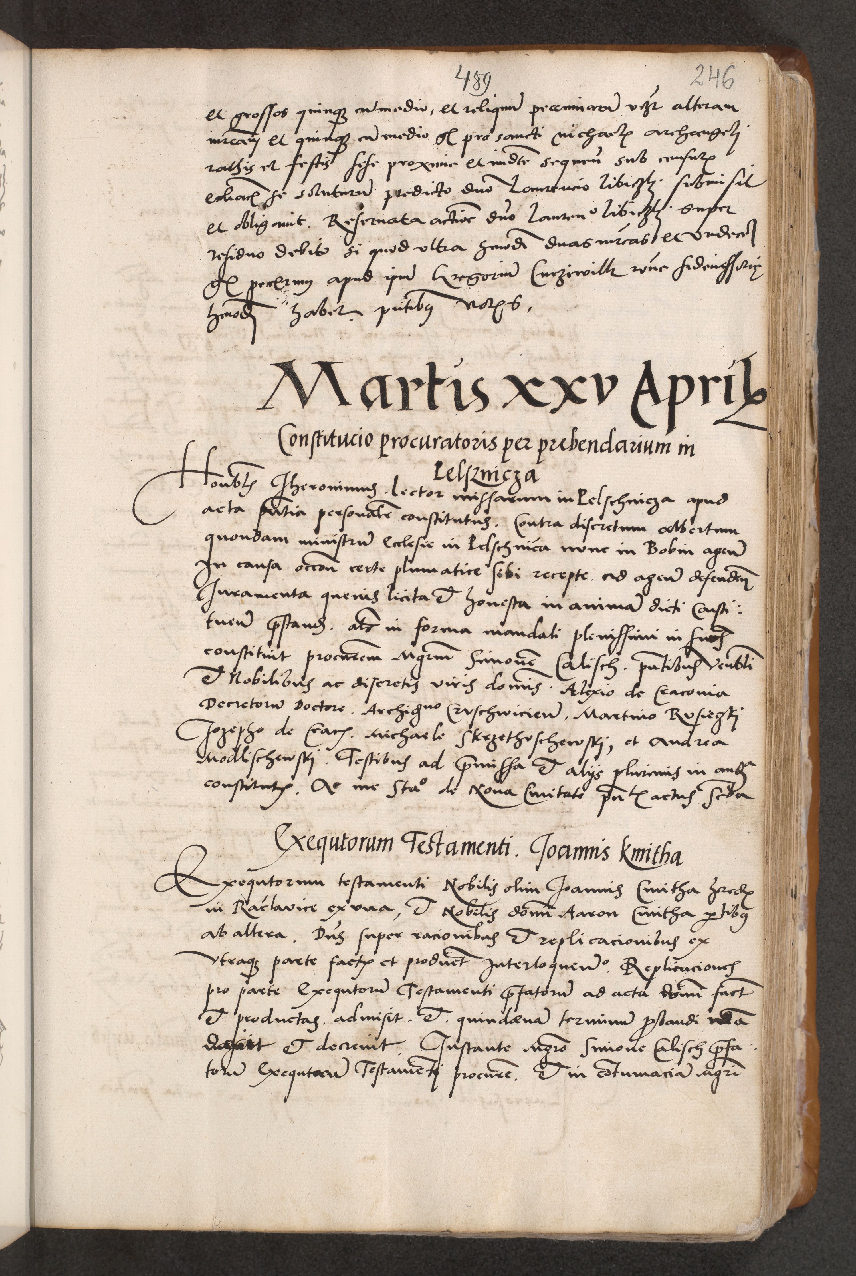 Acta actorum coram reverendo patre domino Benedicto Isdbienski cancellario Gnesnesi, canonico et reverendissimi in Christo patris et domini domini Petri Dei gratia archiepiscopi Gnesnensis et episcopi Cracoviensis sedisque apostolice legati nati et primatis Regni Polonie, vicarioque in spiritualibus generali Cracoviensi ad annum Domini millesimum quingentisimum quadragesimum primum, cuius indictio est quatuordecima, pontificatus sanctissimi in Christo patris et domini nostri domini Pauli divina providencia pape tercii, anno ipsius septimo, feliciter continuantur. Dii cepta secundent