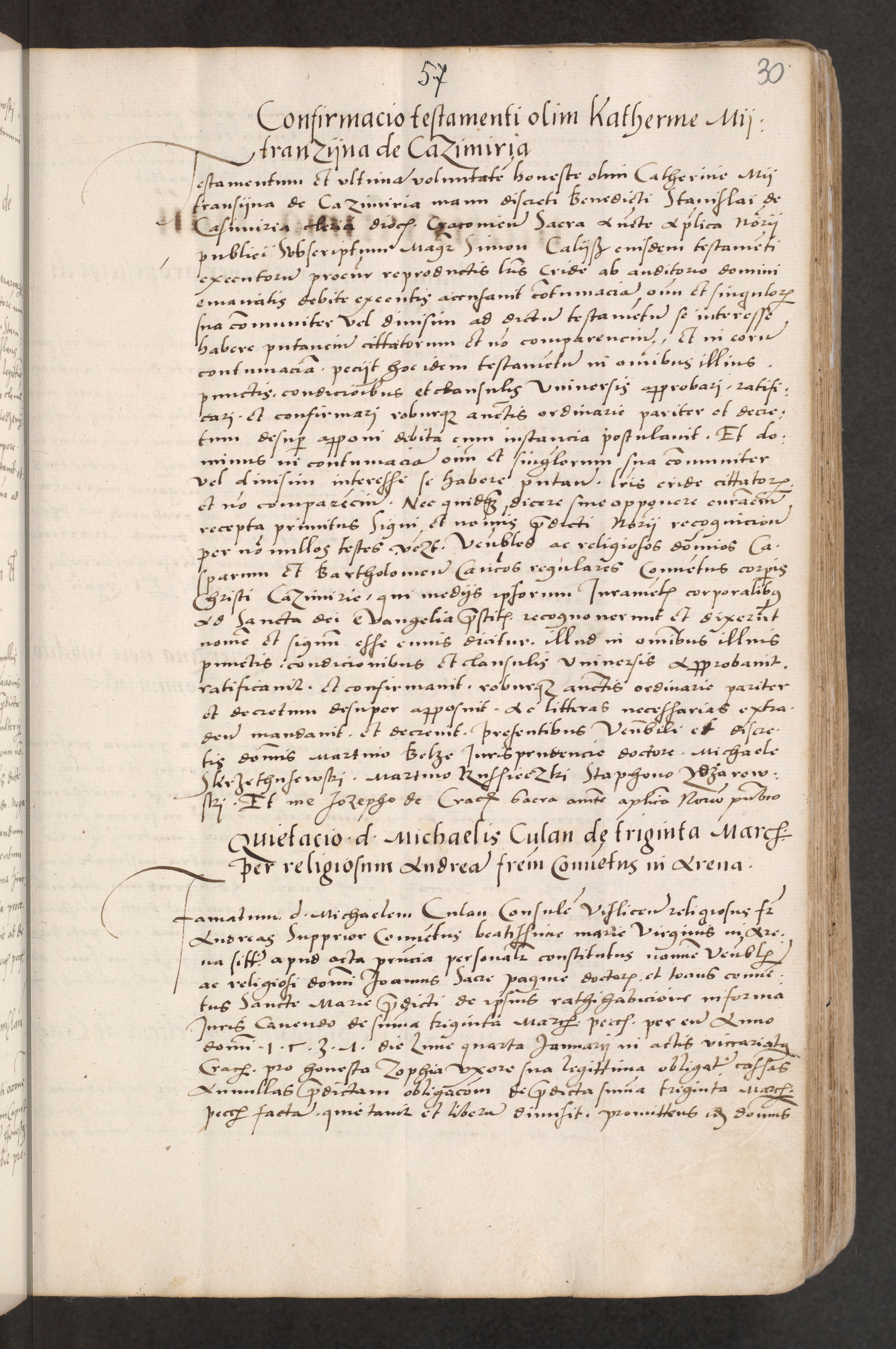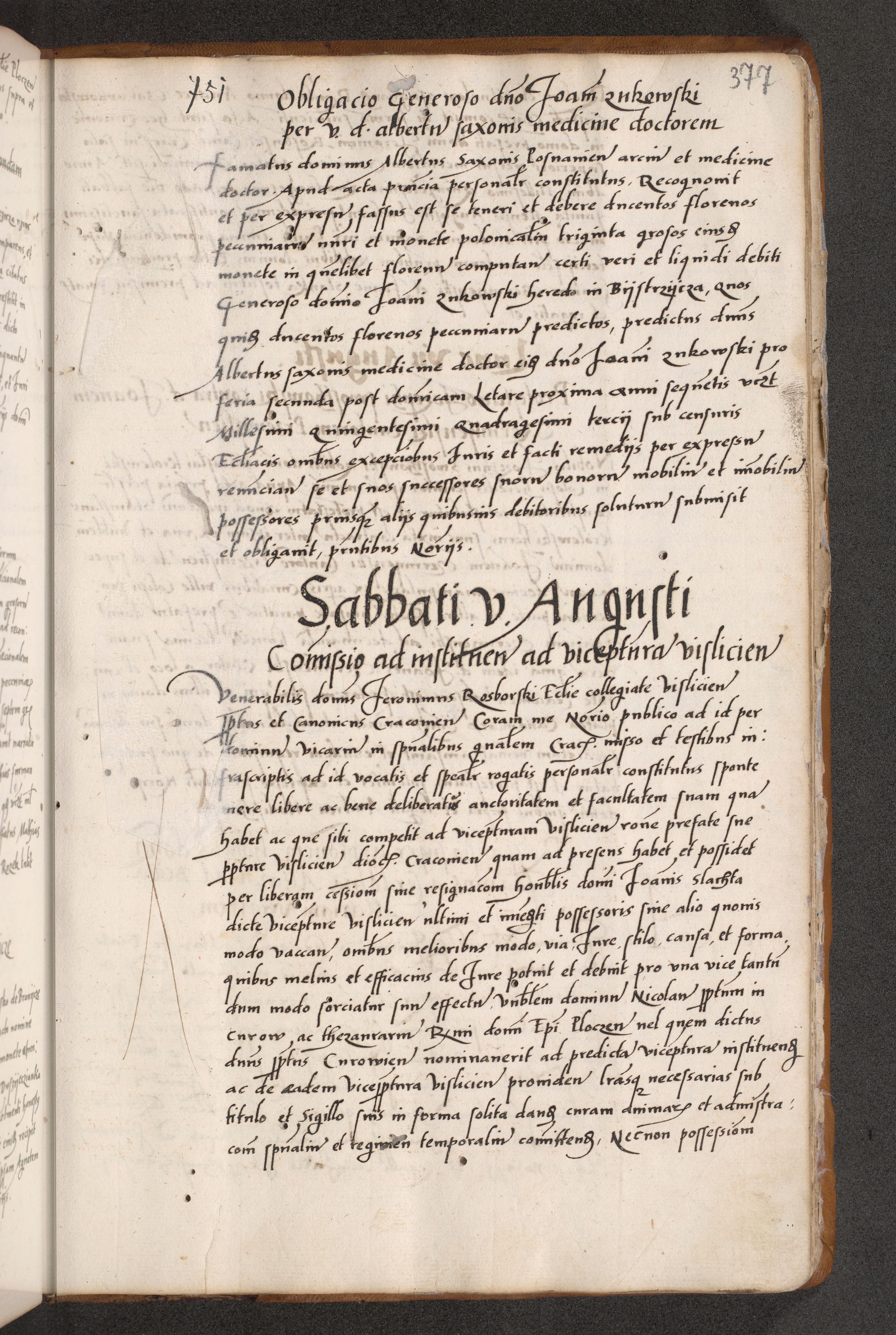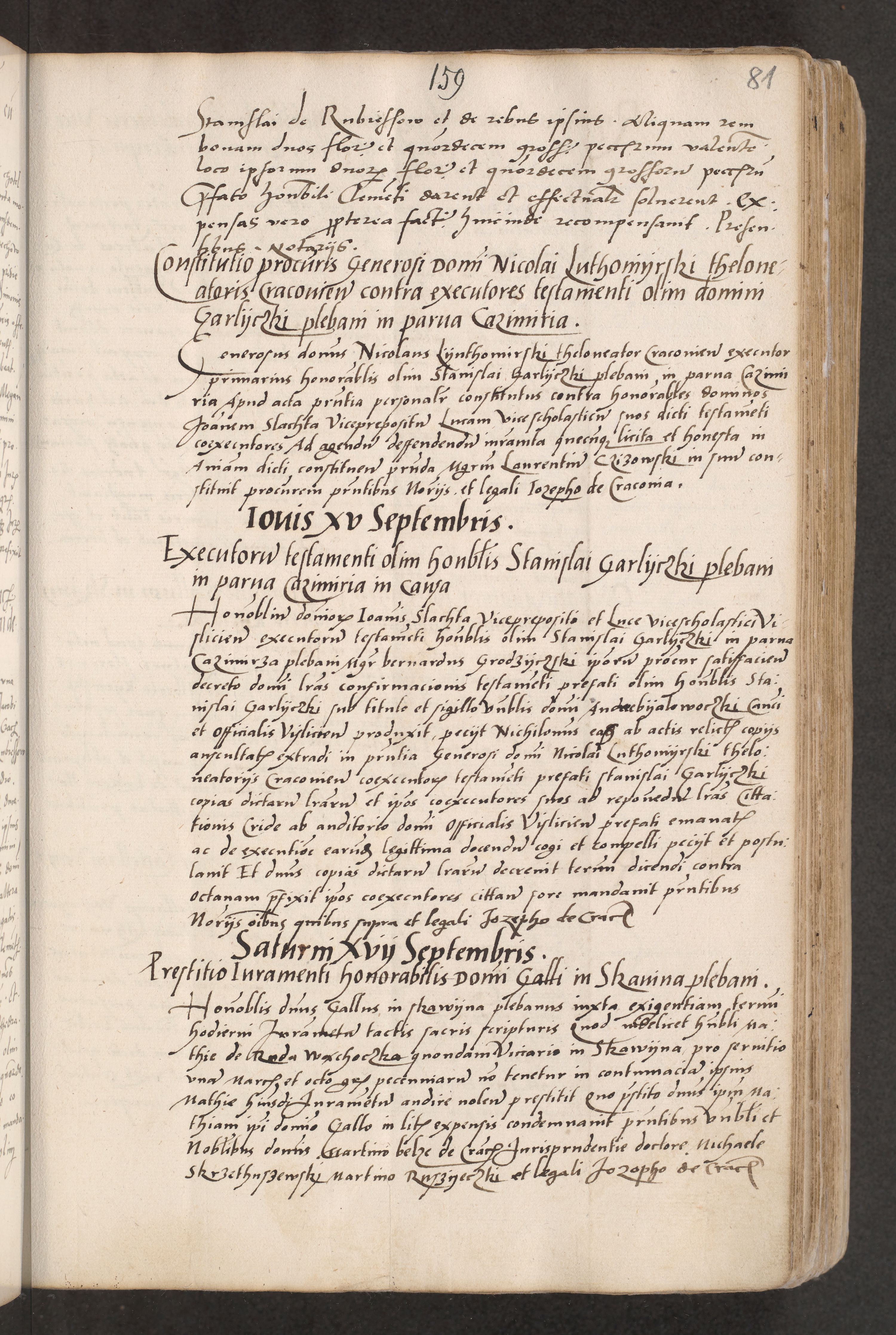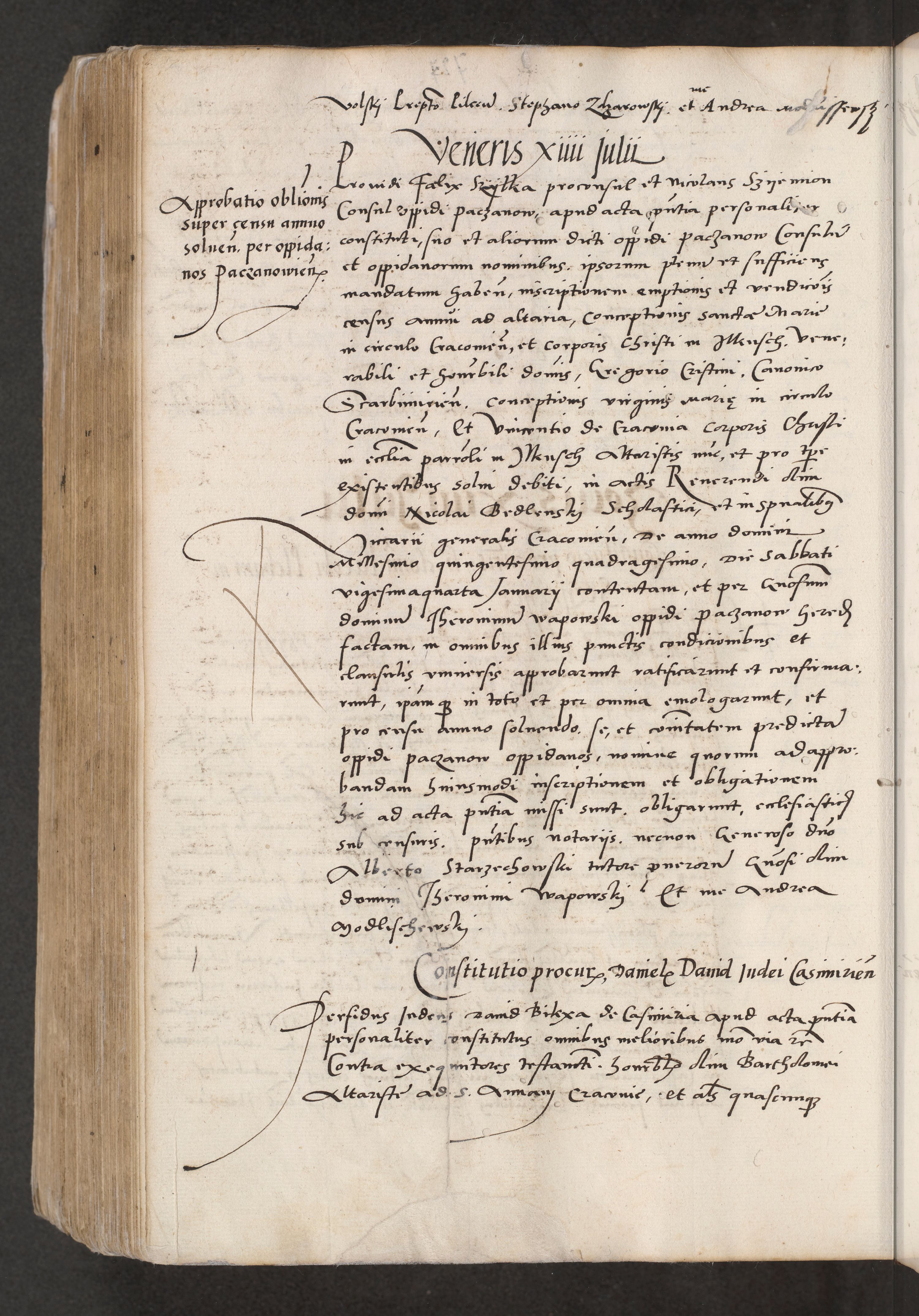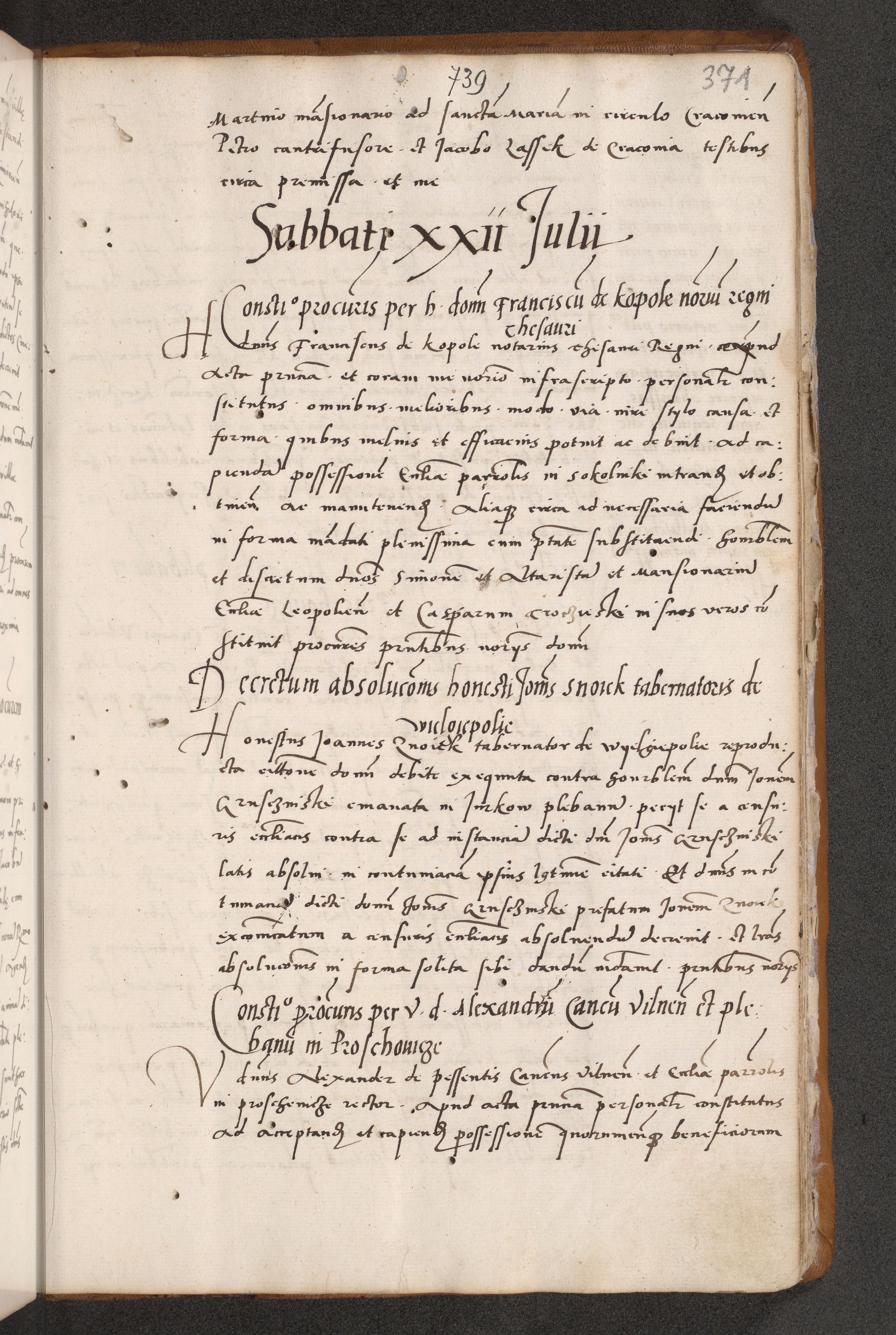 Acta actorum coram reverendo patre domino Benedicto Isdbienski cancellario Gnesnesi, canonico et reverendissimi in Christo patris et domini domini Petri Dei gratia archiepiscopi Gnesnensis et episcopi Cracoviensis sedisque apostolice legati nati et primatis Regni Polonie, vicarioque in spiritualibus generali Cracoviensi ad annum Domini millesimum quingentisimum quadragesimum primum, cuius indictio est quatuordecima, pontificatus sanctissimi in Christo patris et domini nostri domini Pauli divina providencia pape tercii, anno ipsius septimo, feliciter continuantur. Dii cepta secundent