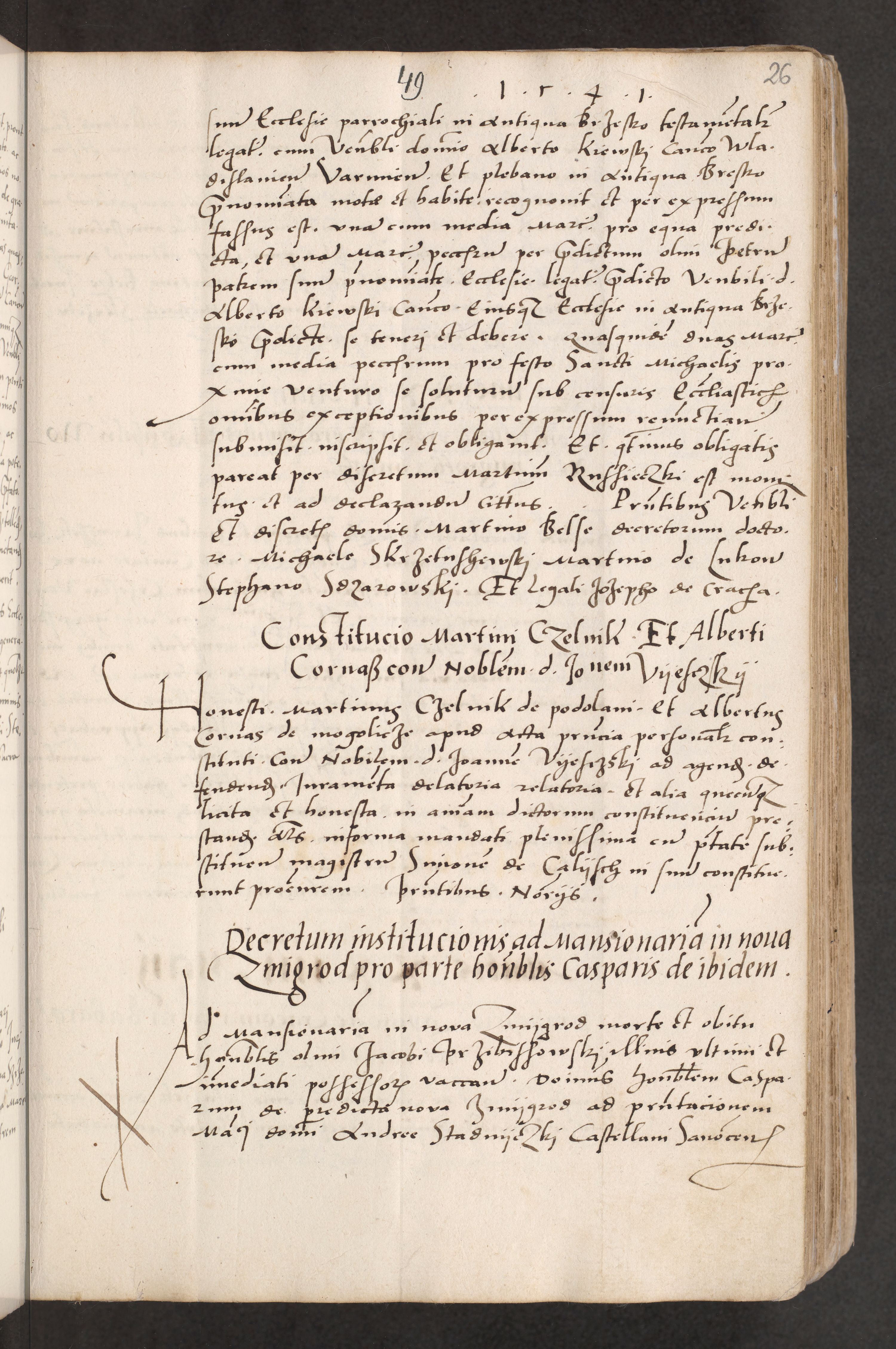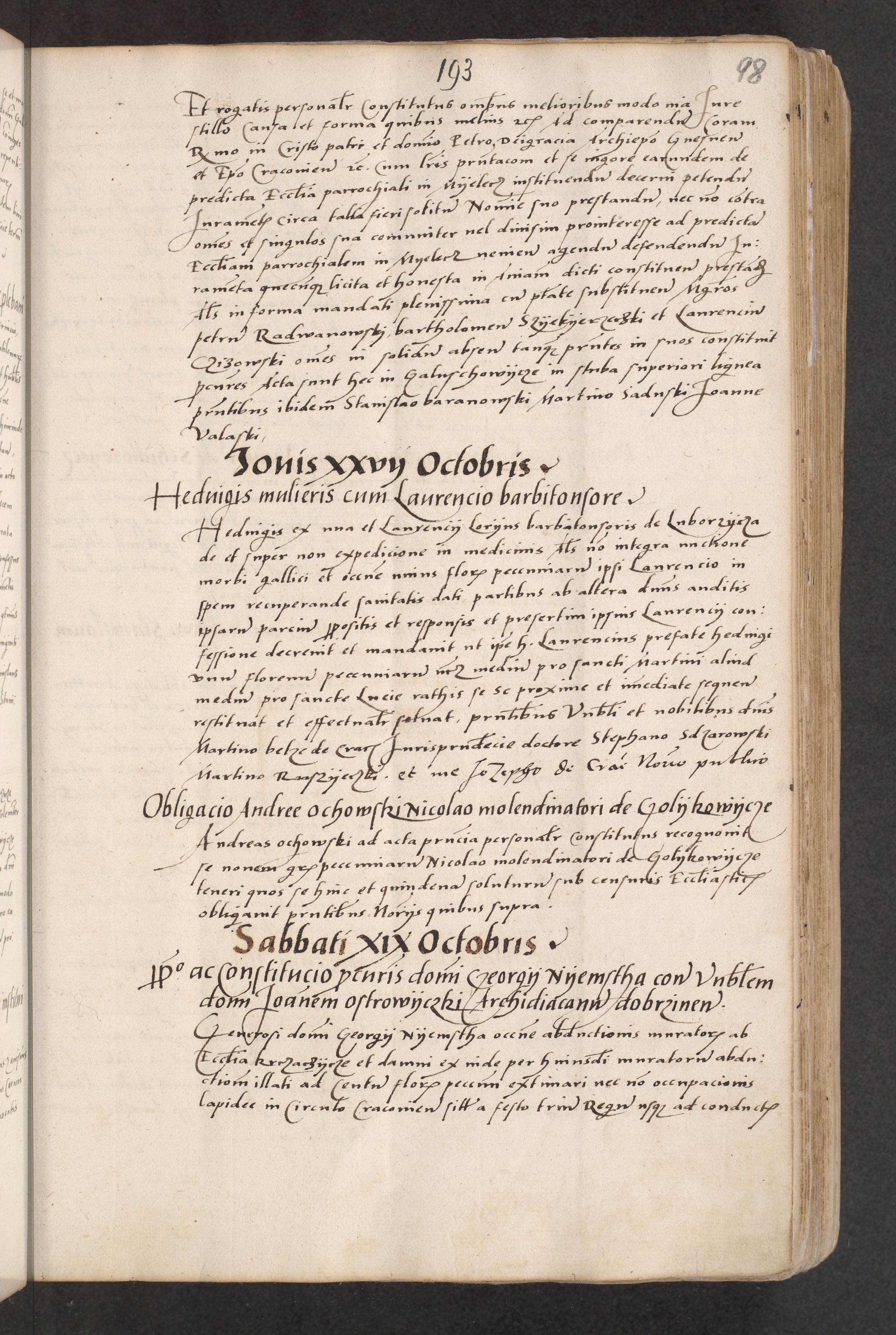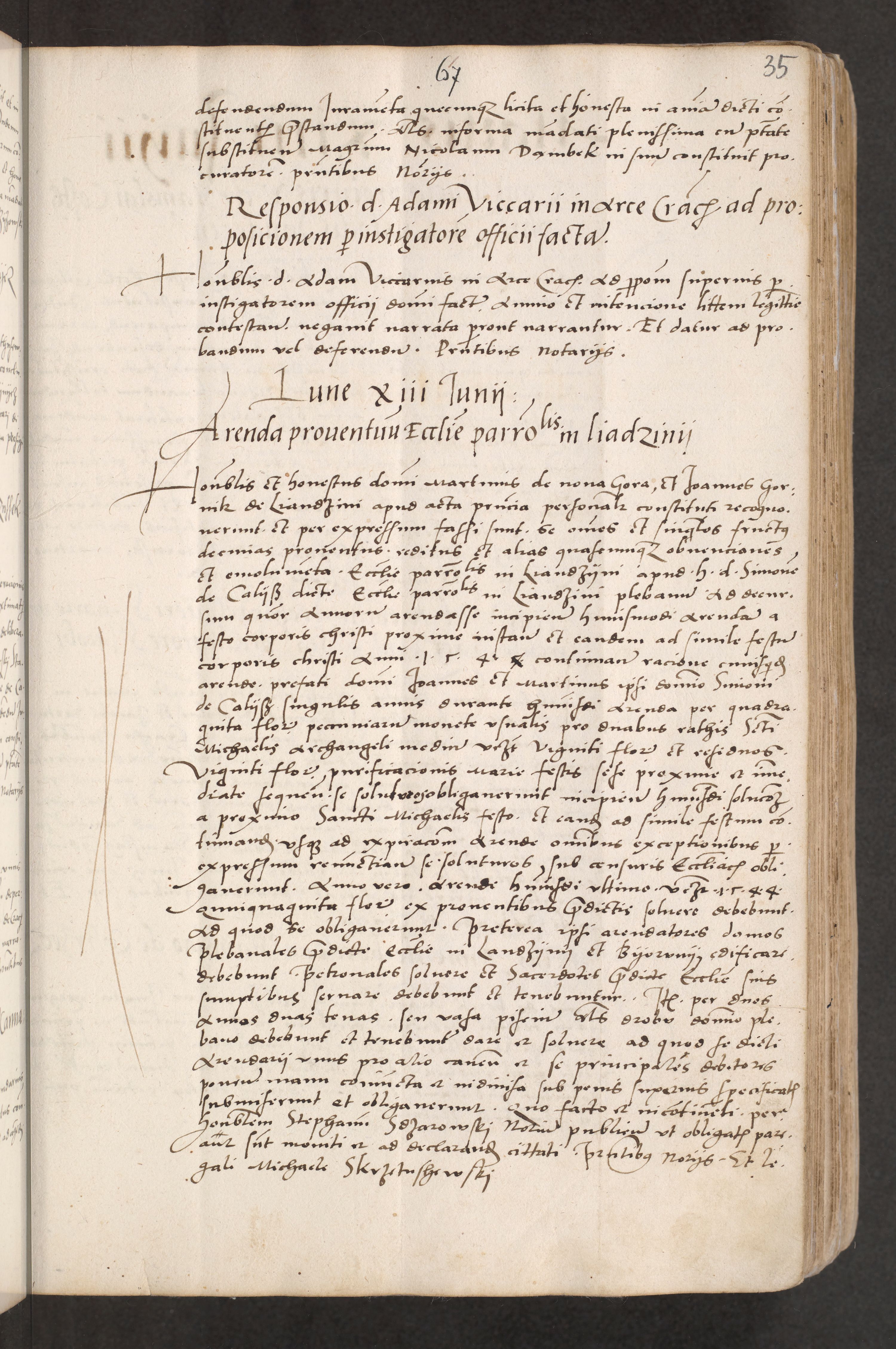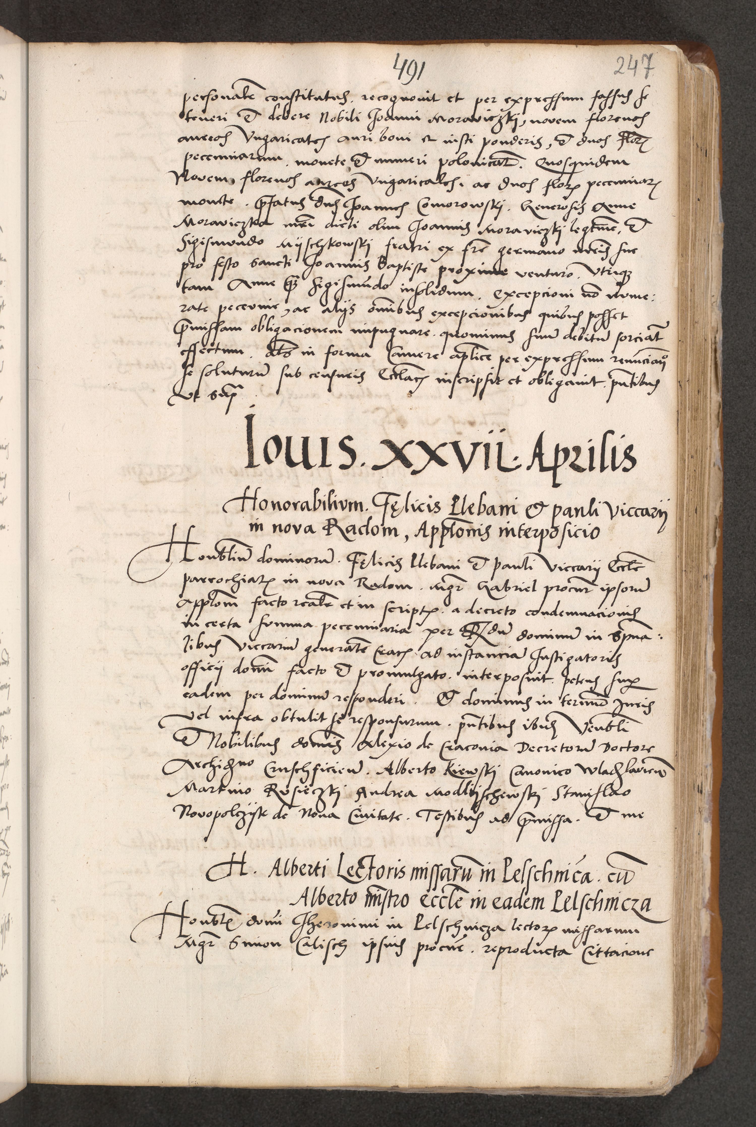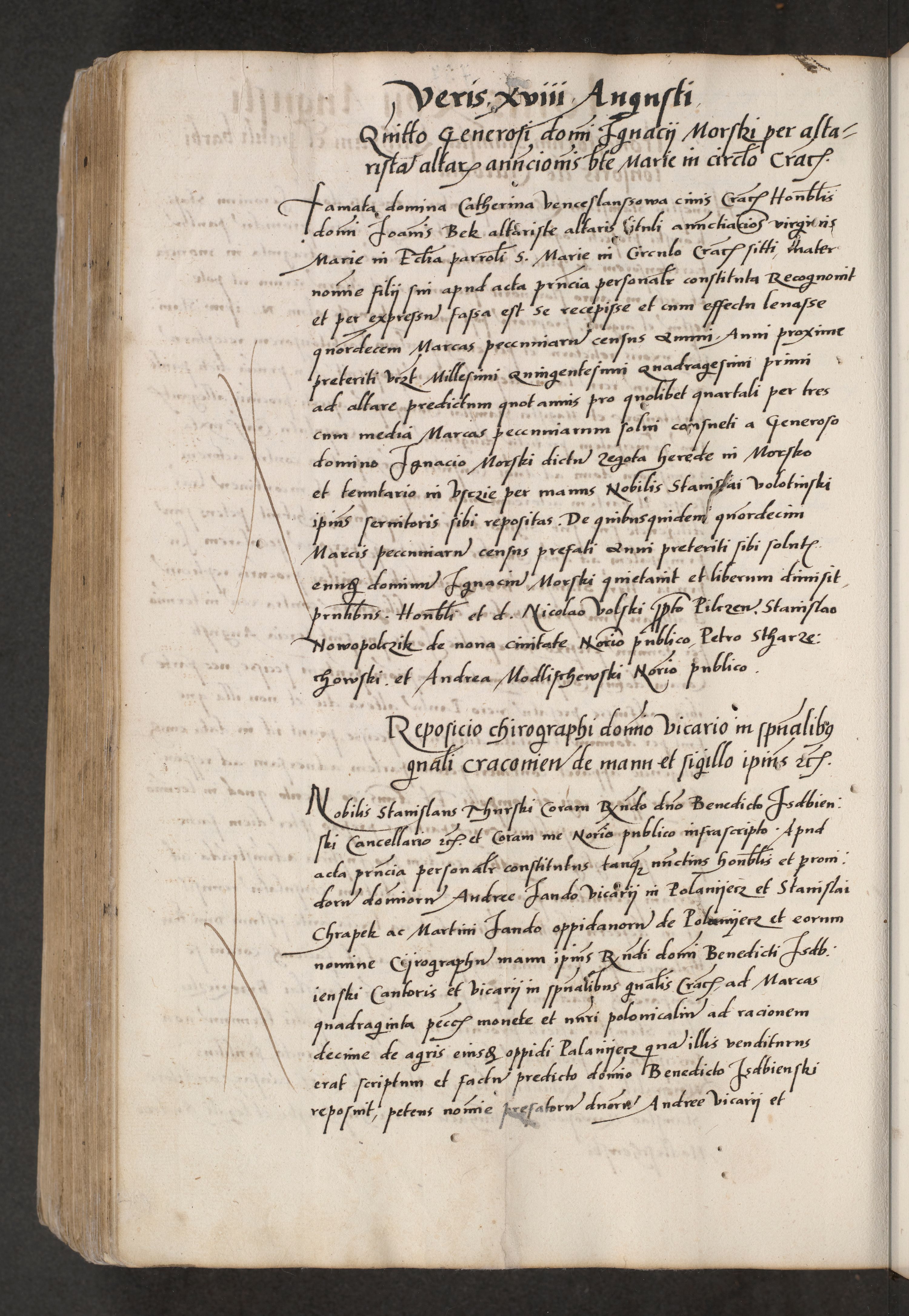 Acta actorum coram reverendo patre domino Benedicto Isdbienski cancellario Gnesnesi, canonico et reverendissimi in Christo patris et domini domini Petri Dei gratia archiepiscopi Gnesnensis et episcopi Cracoviensis sedisque apostolice legati nati et primatis Regni Polonie, vicarioque in spiritualibus generali Cracoviensi ad annum Domini millesimum quingentisimum quadragesimum primum, cuius indictio est quatuordecima, pontificatus sanctissimi in Christo patris et domini nostri domini Pauli divina providencia pape tercii, anno ipsius septimo, feliciter continuantur. Dii cepta secundent