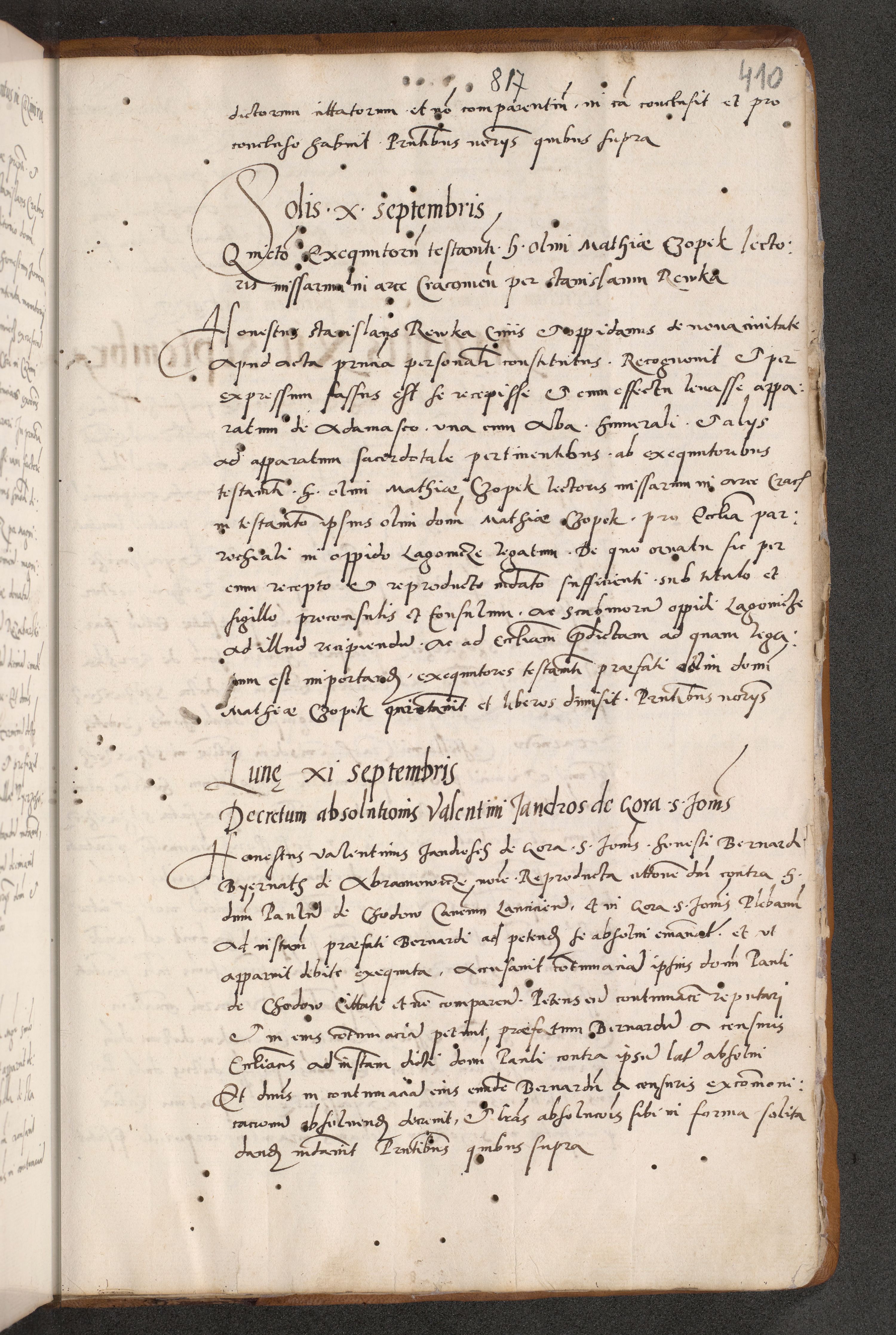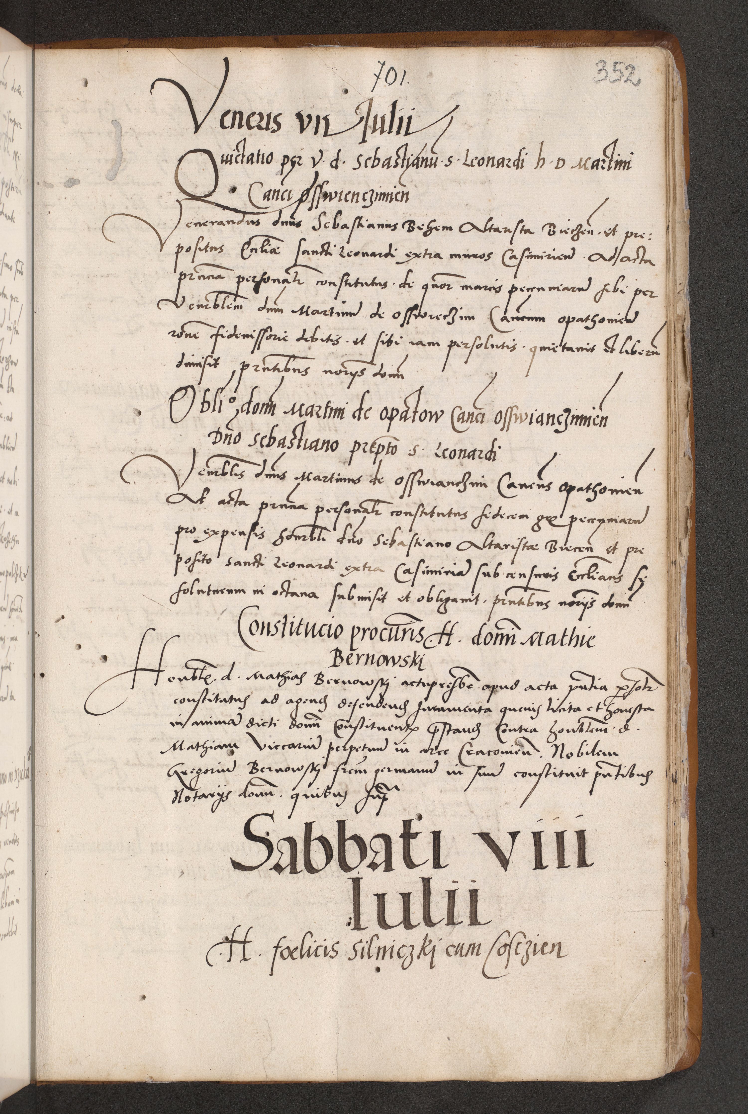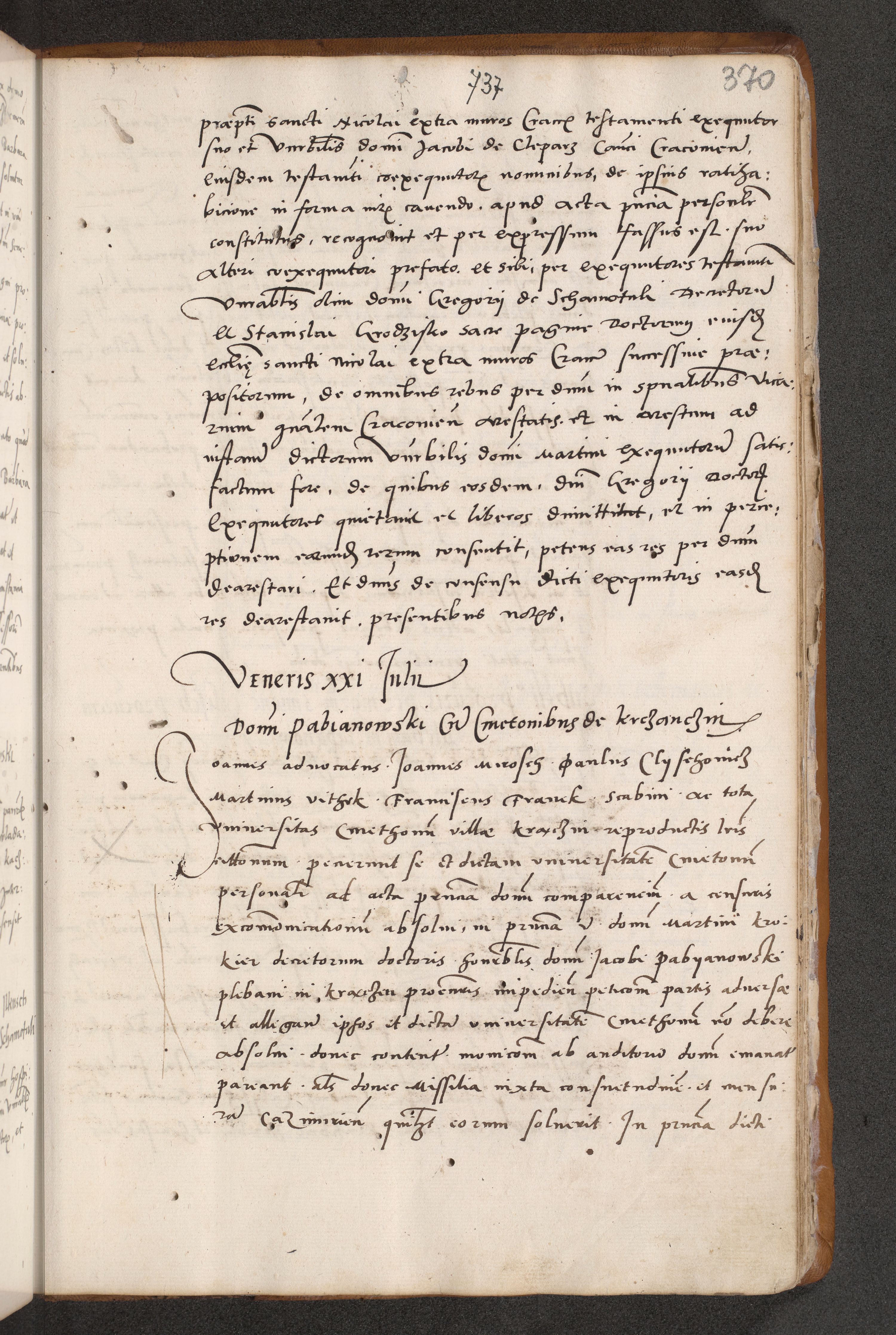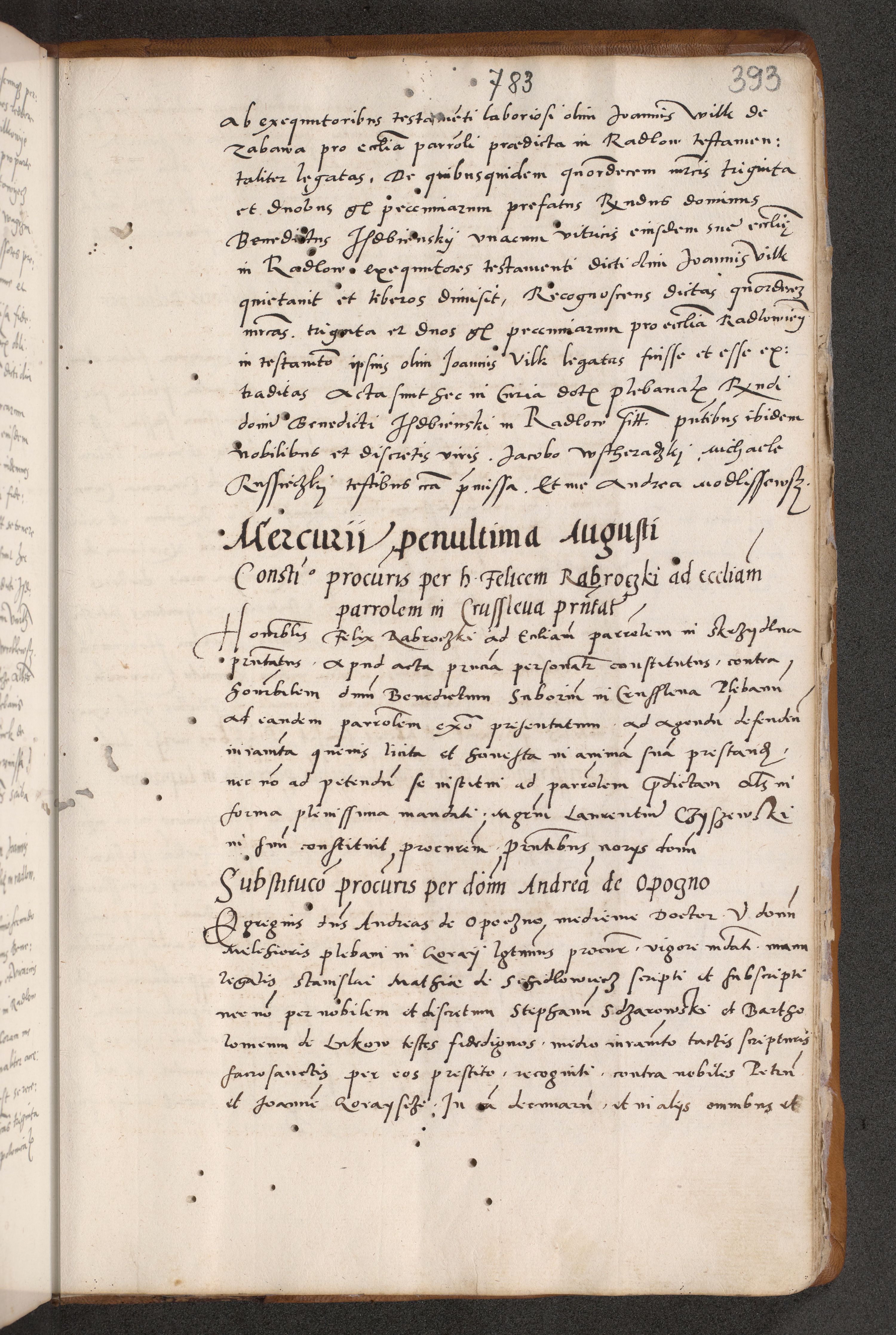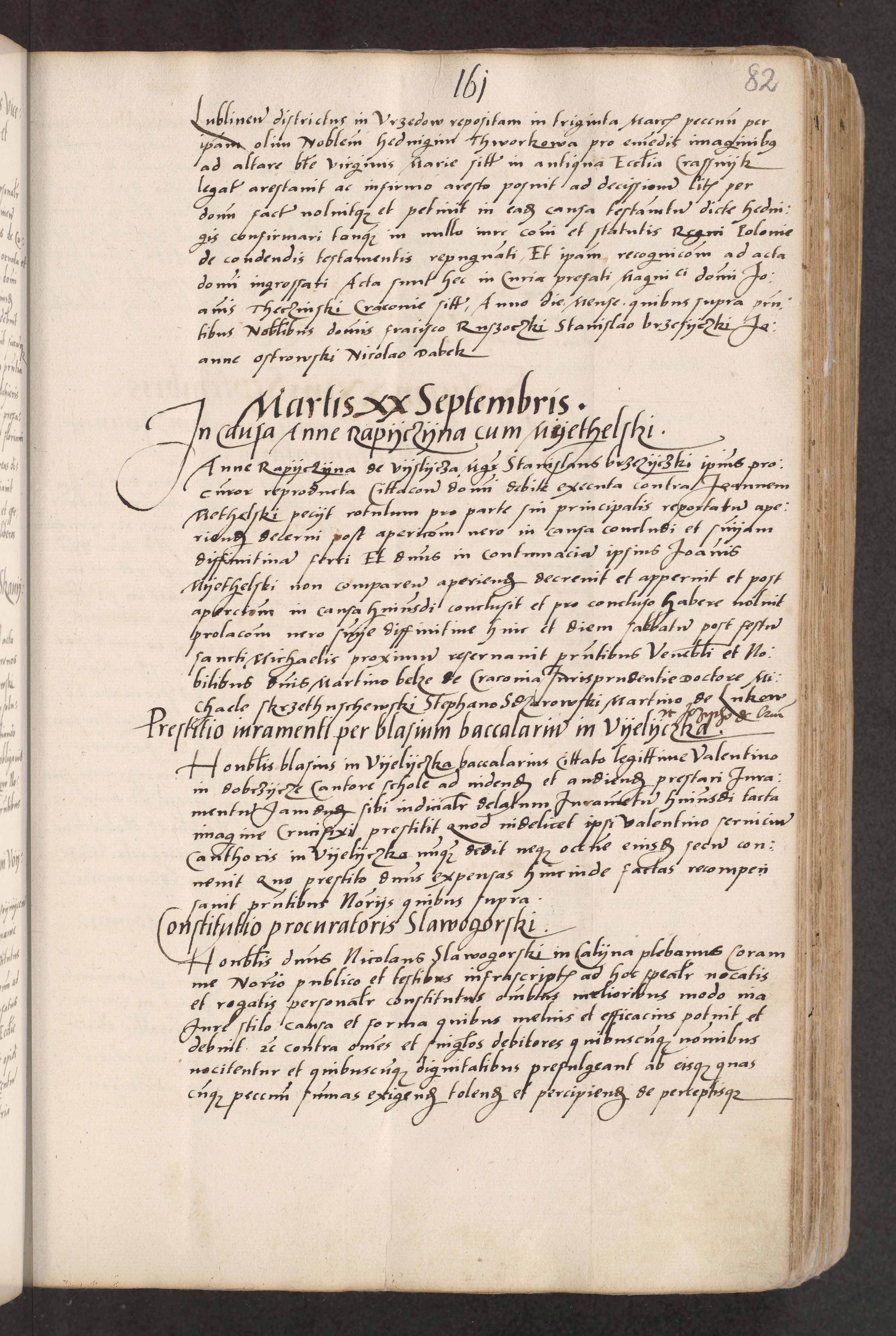 Acta actorum coram reverendo patre domino Benedicto Isdbienski cancellario Gnesnesi, canonico et reverendissimi in Christo patris et domini domini Petri Dei gratia archiepiscopi Gnesnensis et episcopi Cracoviensis sedisque apostolice legati nati et primatis Regni Polonie, vicarioque in spiritualibus generali Cracoviensi ad annum Domini millesimum quingentisimum quadragesimum primum, cuius indictio est quatuordecima, pontificatus sanctissimi in Christo patris et domini nostri domini Pauli divina providencia pape tercii, anno ipsius septimo, feliciter continuantur. Dii cepta secundent