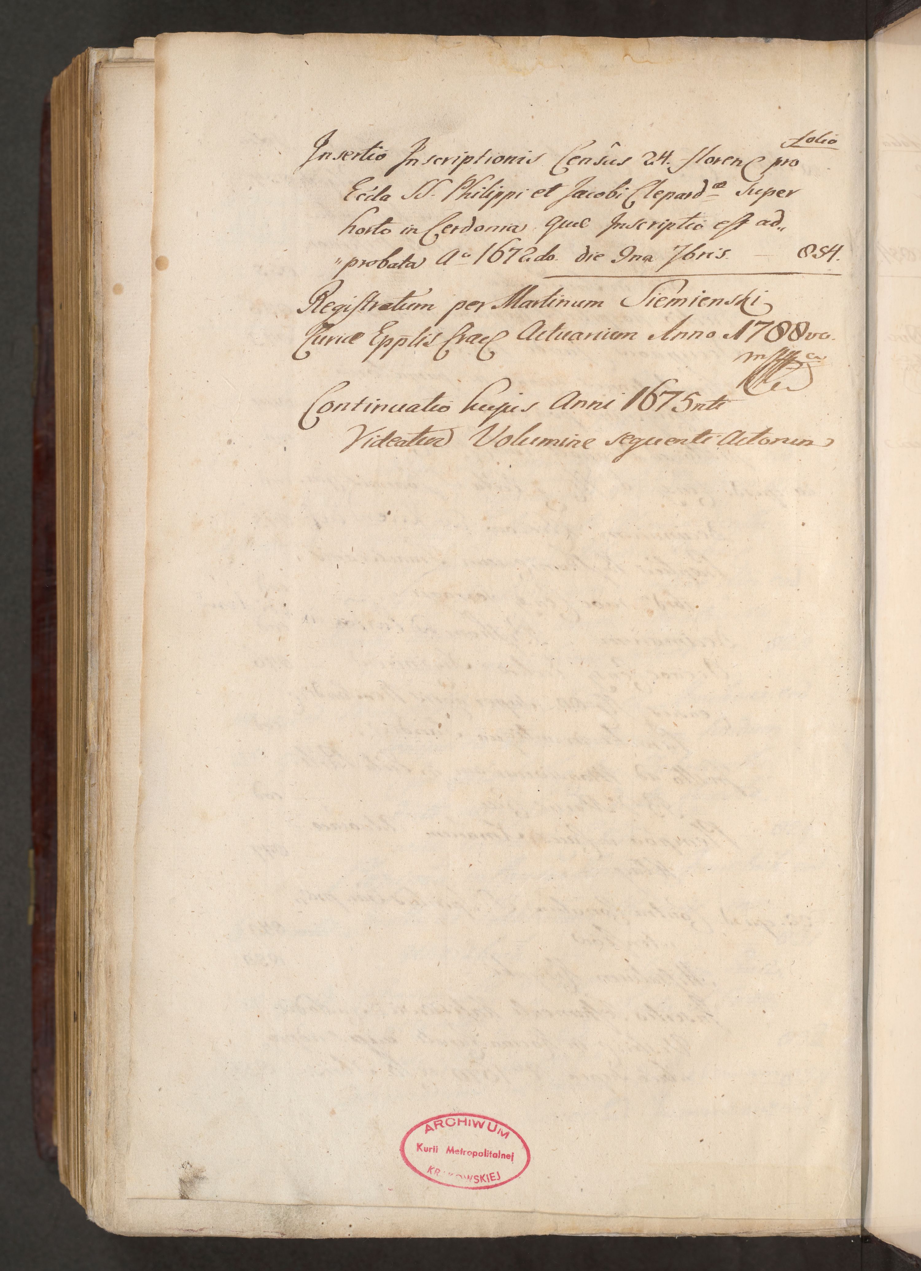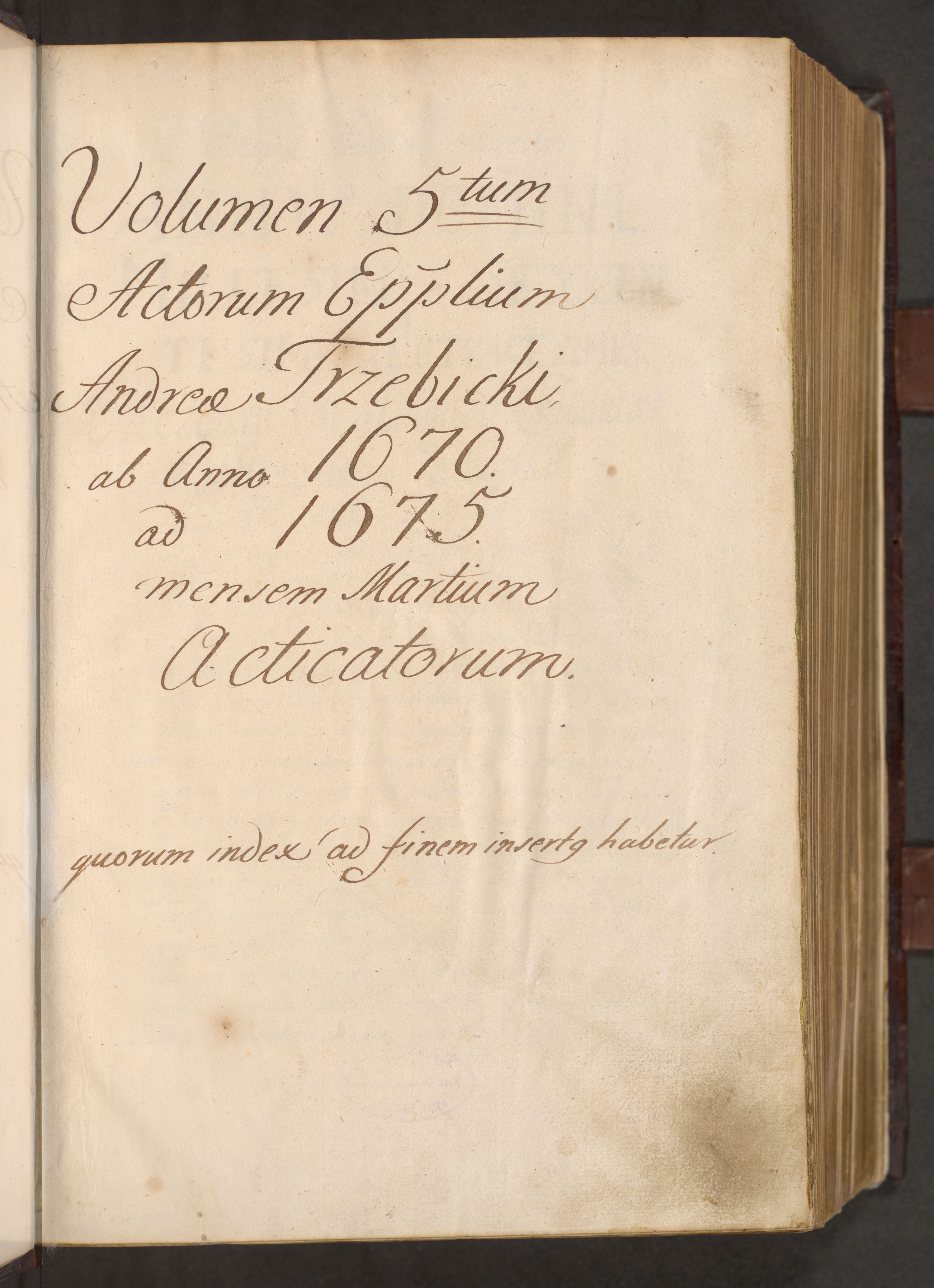 Acta actorum episcopalium R. D. Andreae Trzebicki ab anno 1670 ad annum 1675 mensem Martinum acticatorum Volumen V