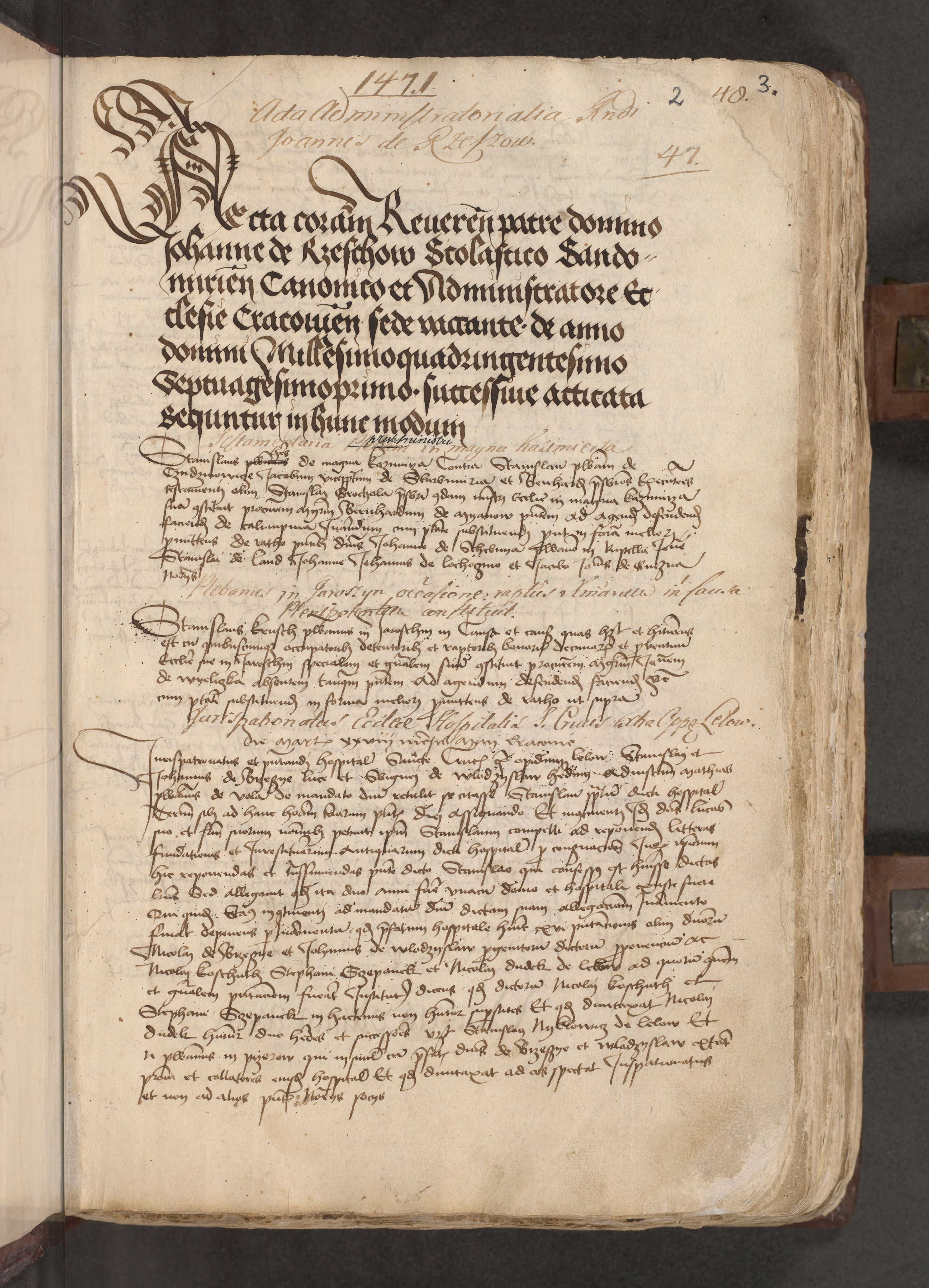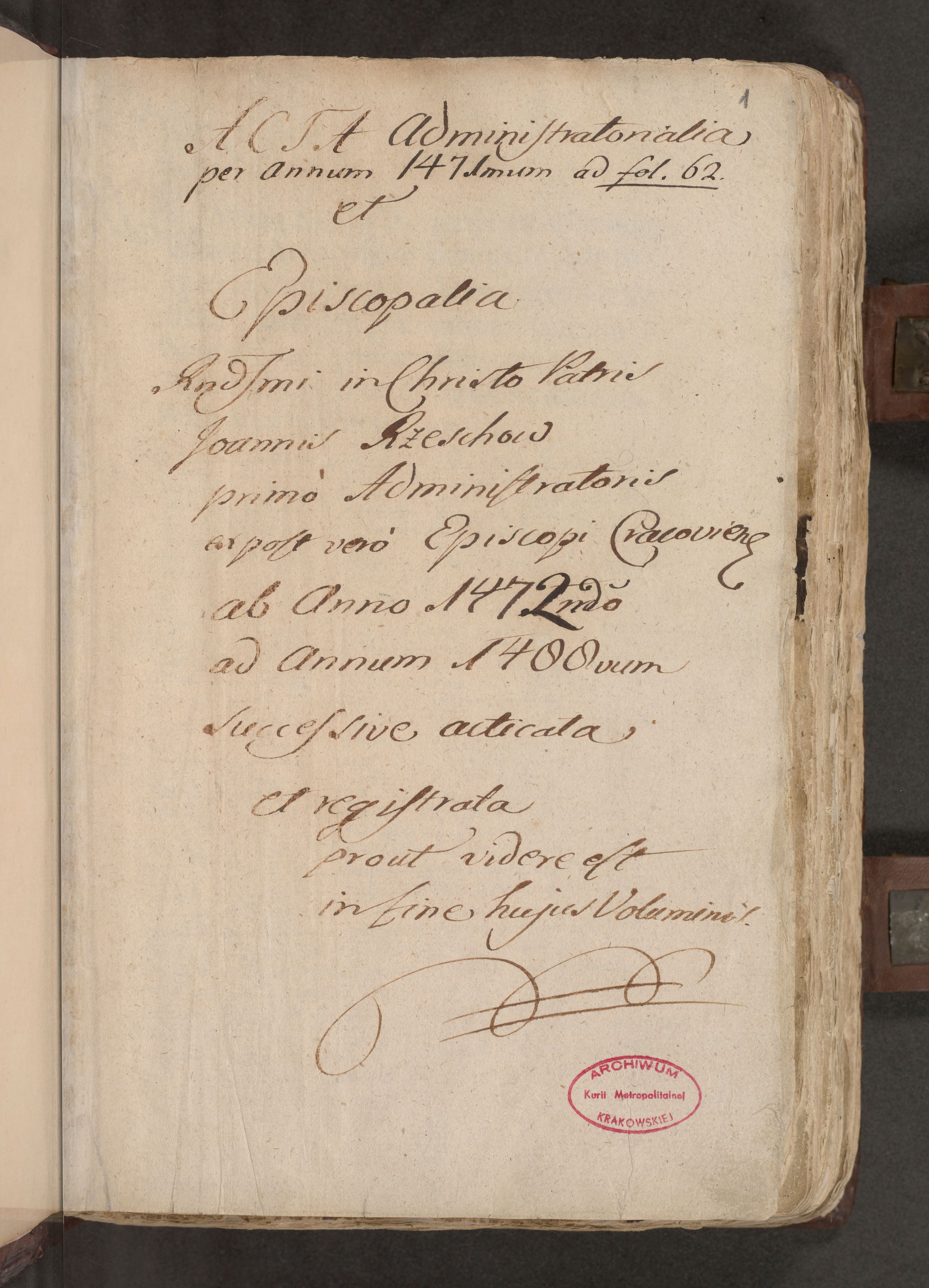 Acta administratorialia per annum 1471 et episcopalia R. D. Joannis Rzeschow, primo administratoris et post vero episcopi Cracoviensis ab anno 1472 ad annum 1488 succesive acticara et registrara, prout videre est in fine huius voluminis