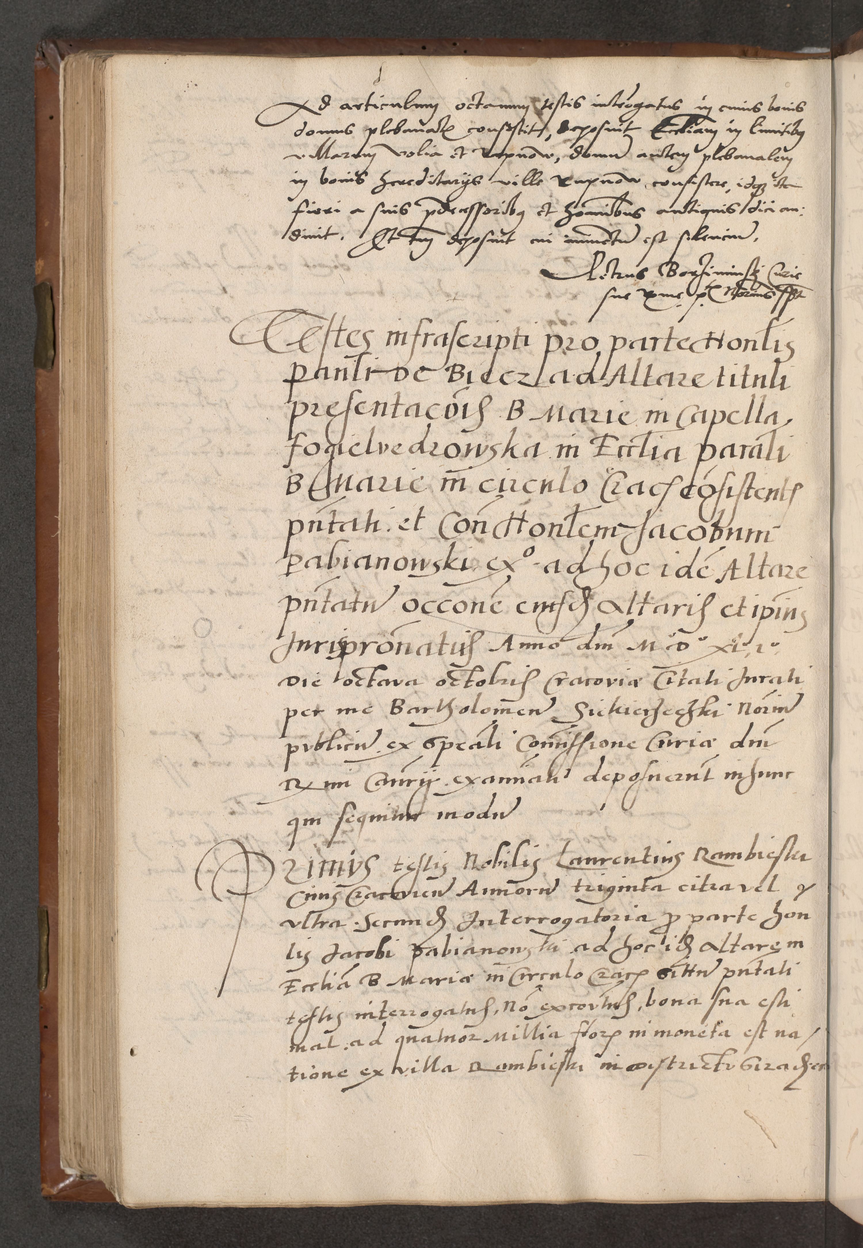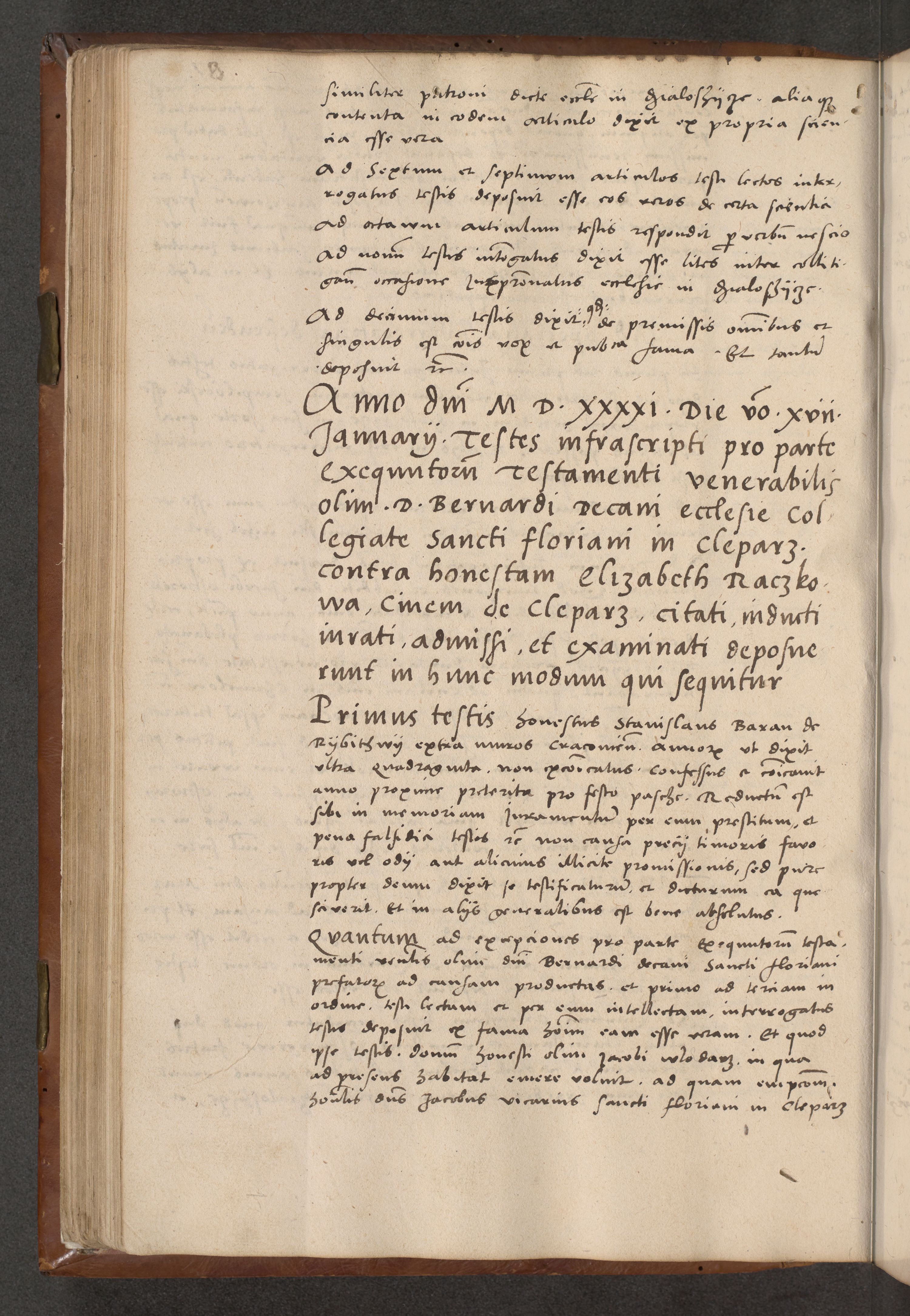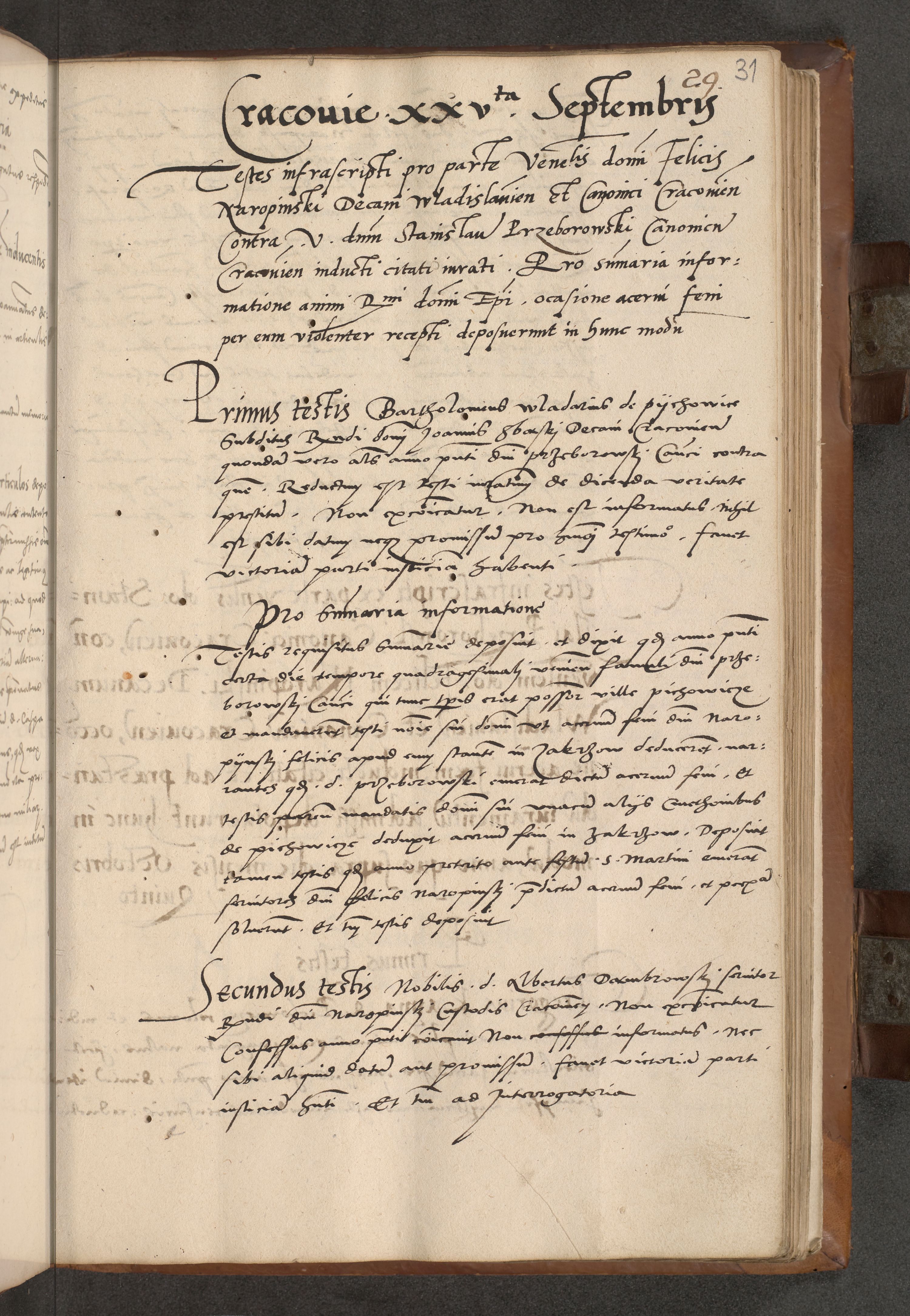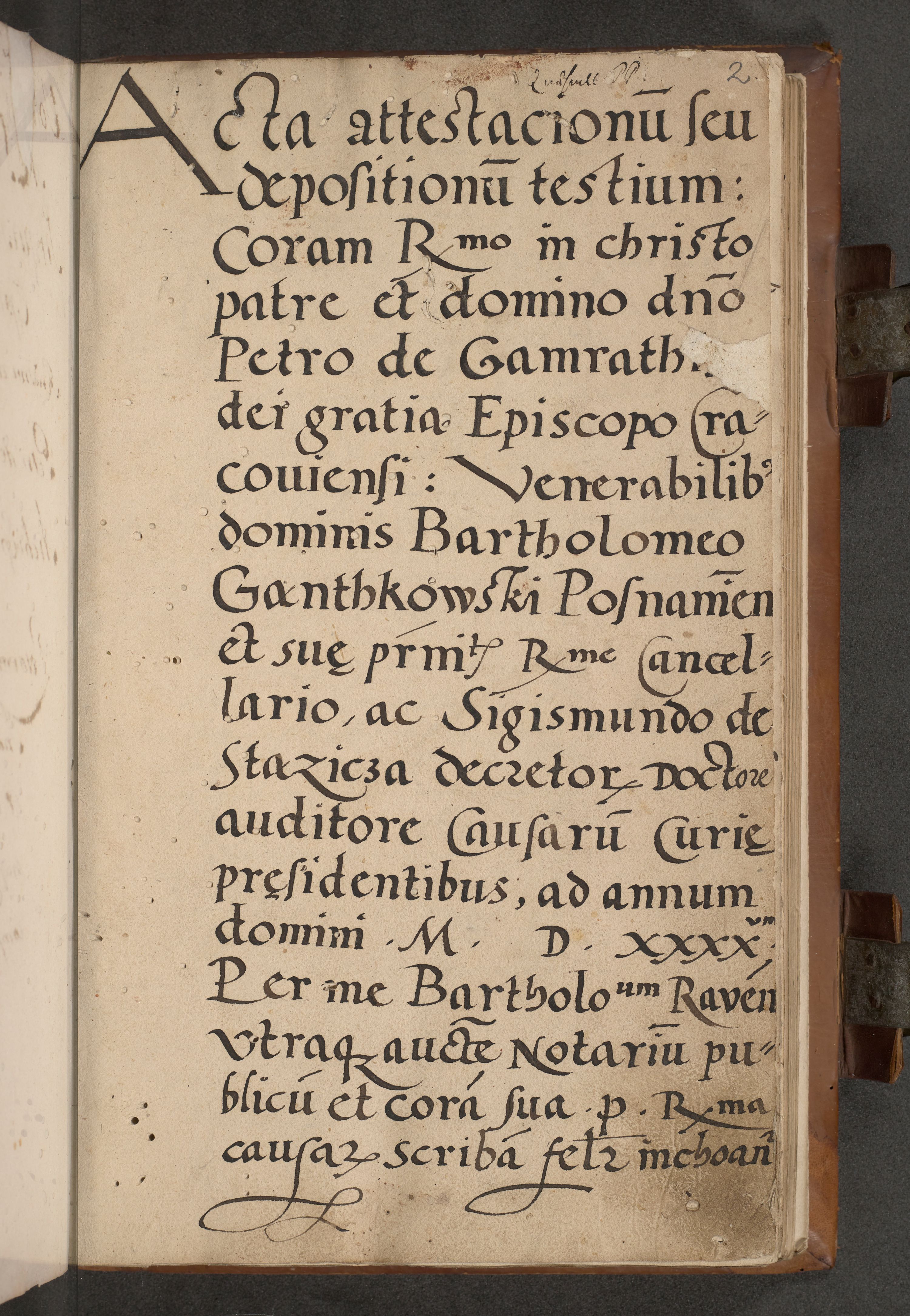 Acta attestationum seu depositionum testium coram R. D. Petro de Gamratis, episcopo Cracoviensi, V. D. Bartholomaeo Gantkowski, Posnaniensi et Suae Paternitatis Rev. cancellario ac Sigismundo de Stazicza, decretorum doctore, auditore causarum curiae episcopalis praesidentibus ad a. D. 1540 et 1541, per me Bartholomaeum Ravensem, utraquw auctoriate notarium publicum et coram Sua Paternitatr Rev. causarum scriba feliciter inchoatum.