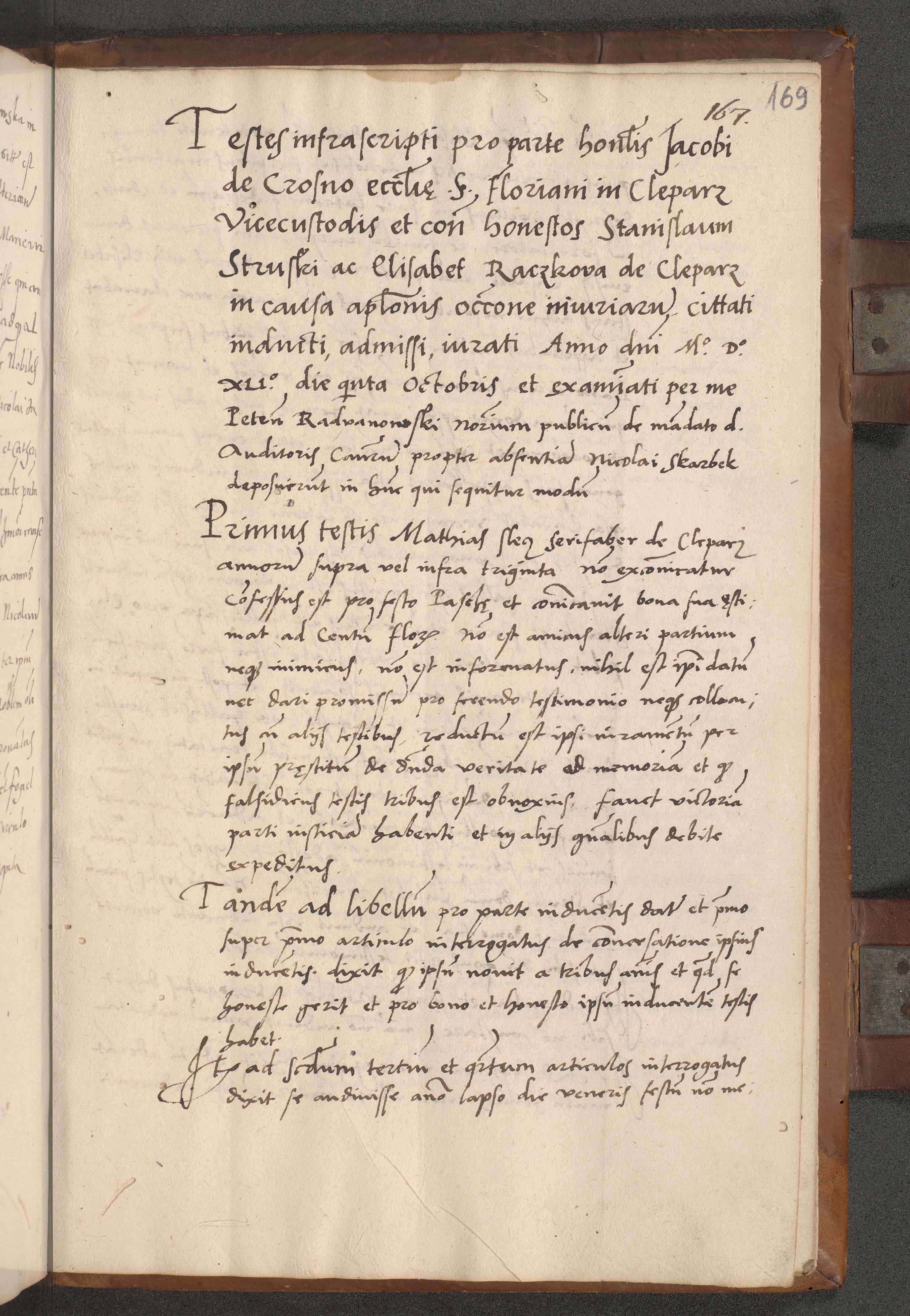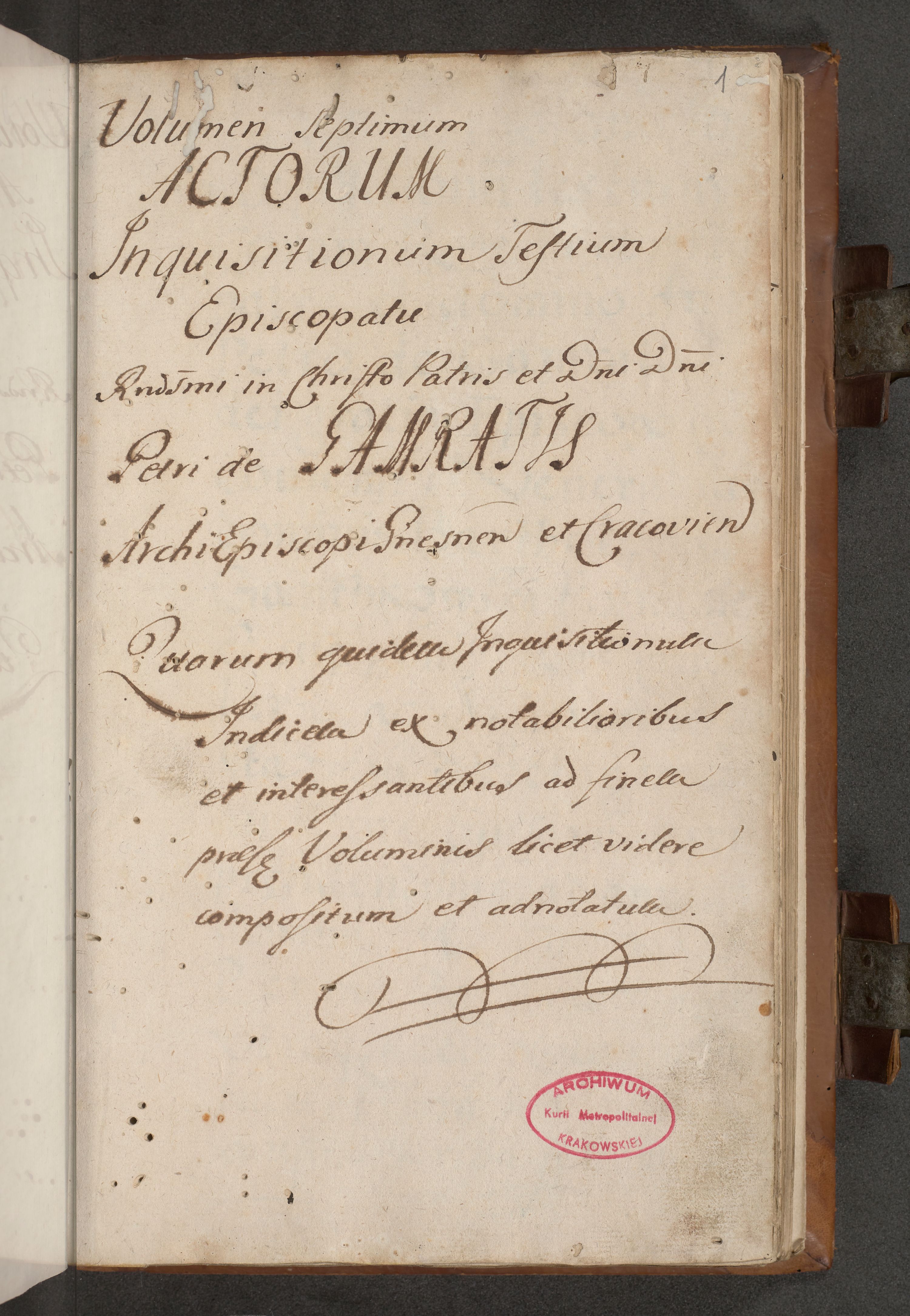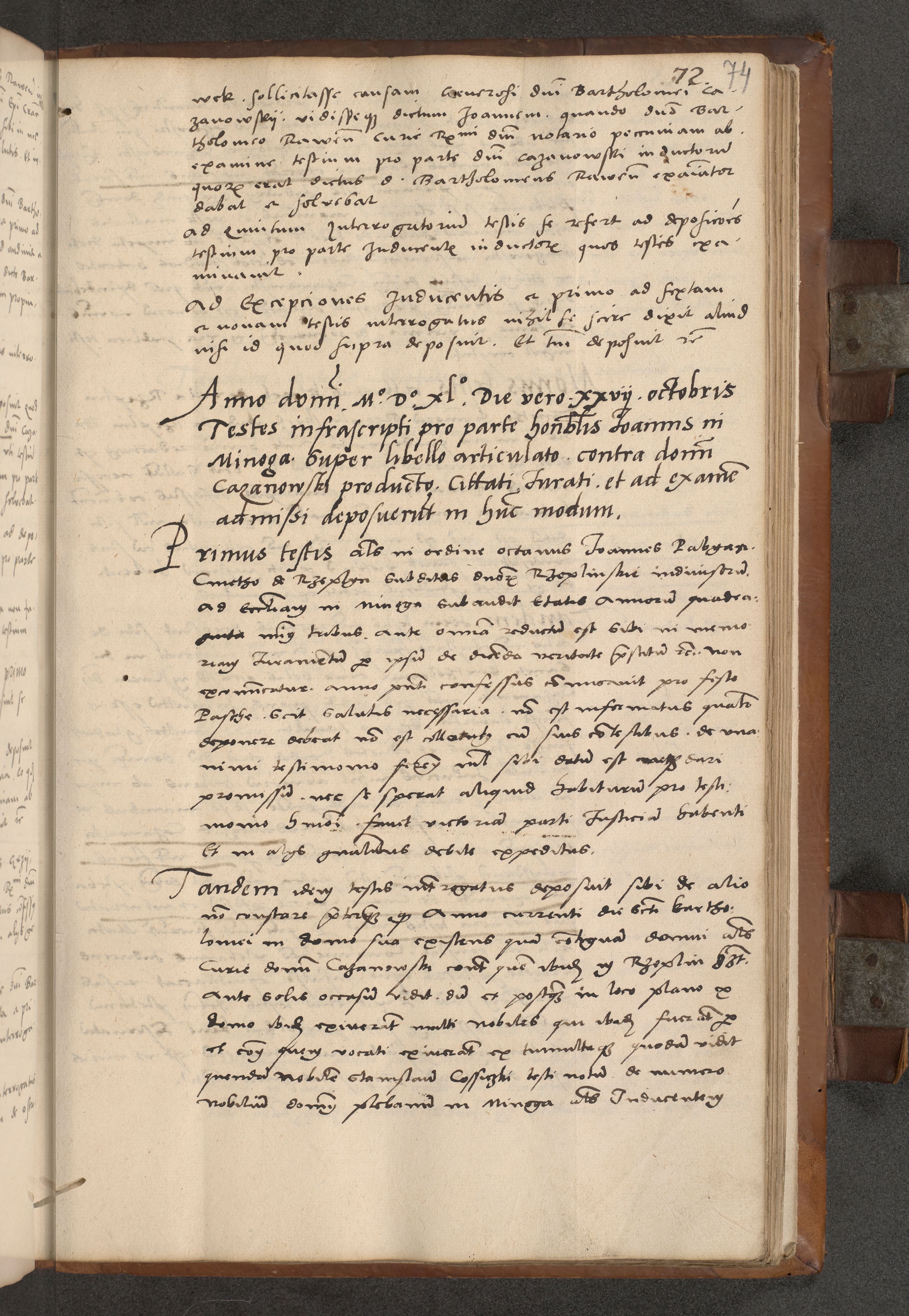 Acta attestationum seu depositionum testium coram R. D. Petro de Gamratis, episcopo Cracoviensi, V. D. Bartholomaeo Gantkowski, Posnaniensi et Suae Paternitatis Rev. cancellario ac Sigismundo de Stazicza, decretorum doctore, auditore causarum curiae episcopalis praesidentibus ad a. D. 1540 et 1541, per me Bartholomaeum Ravensem, utraquw auctoriate notarium publicum et coram Sua Paternitatr Rev. causarum scriba feliciter inchoatum.
