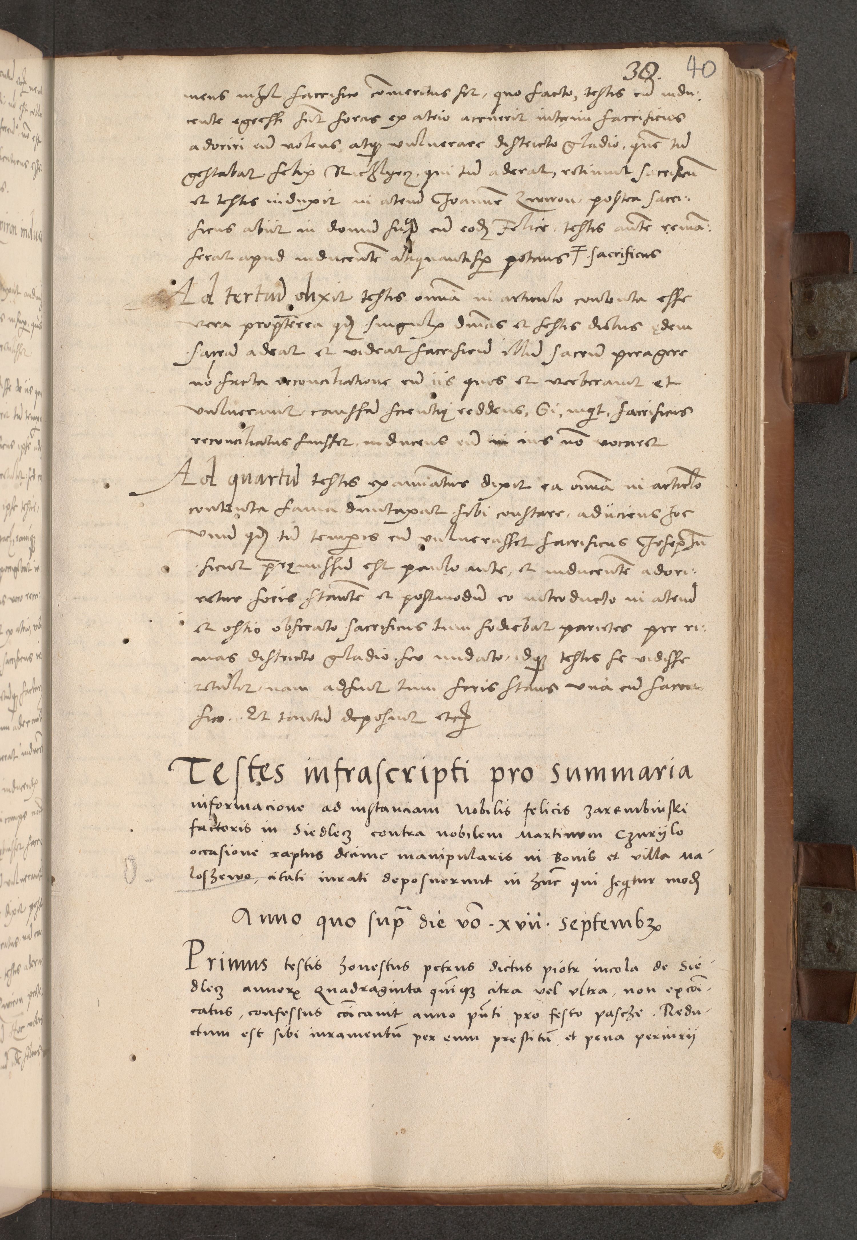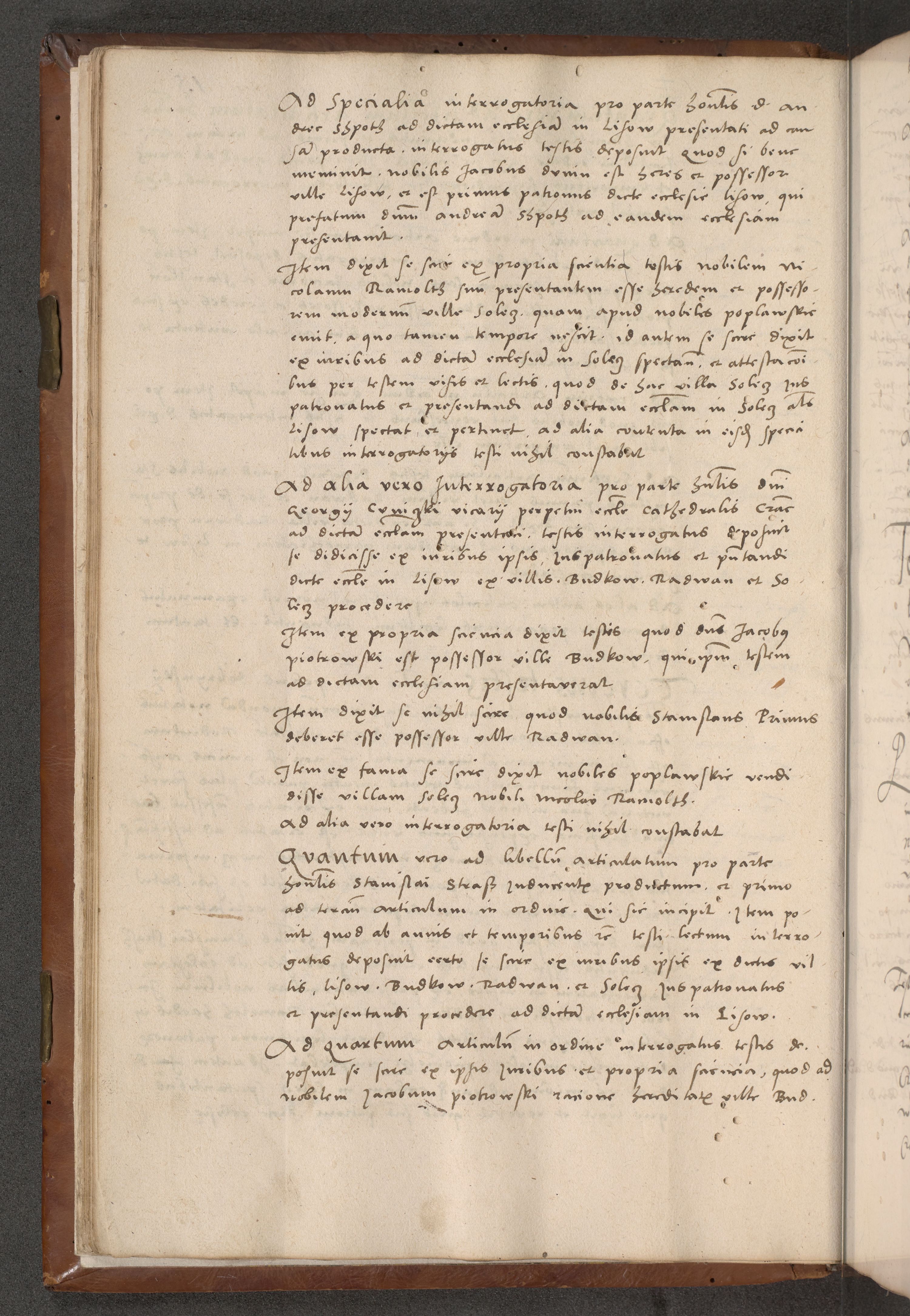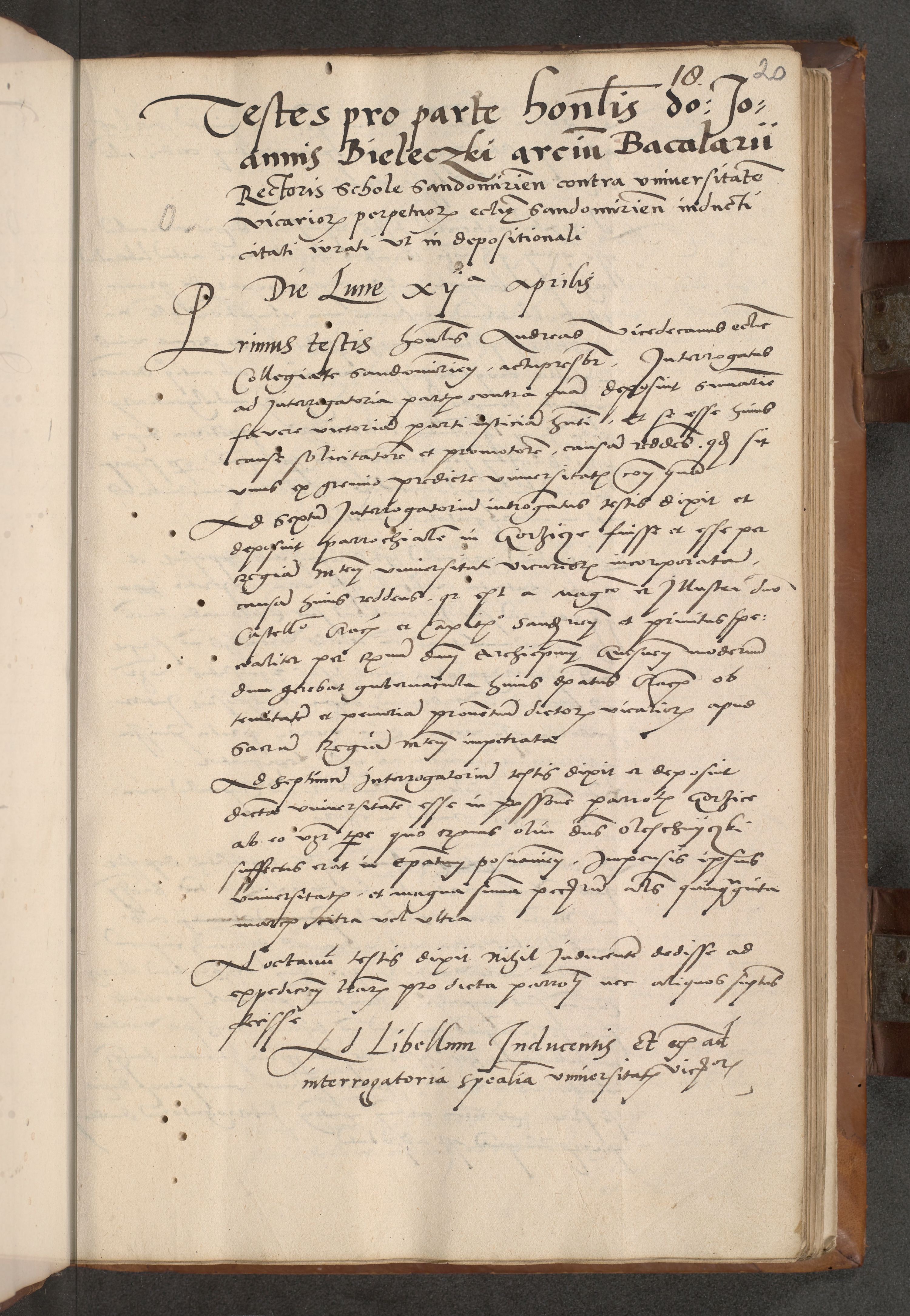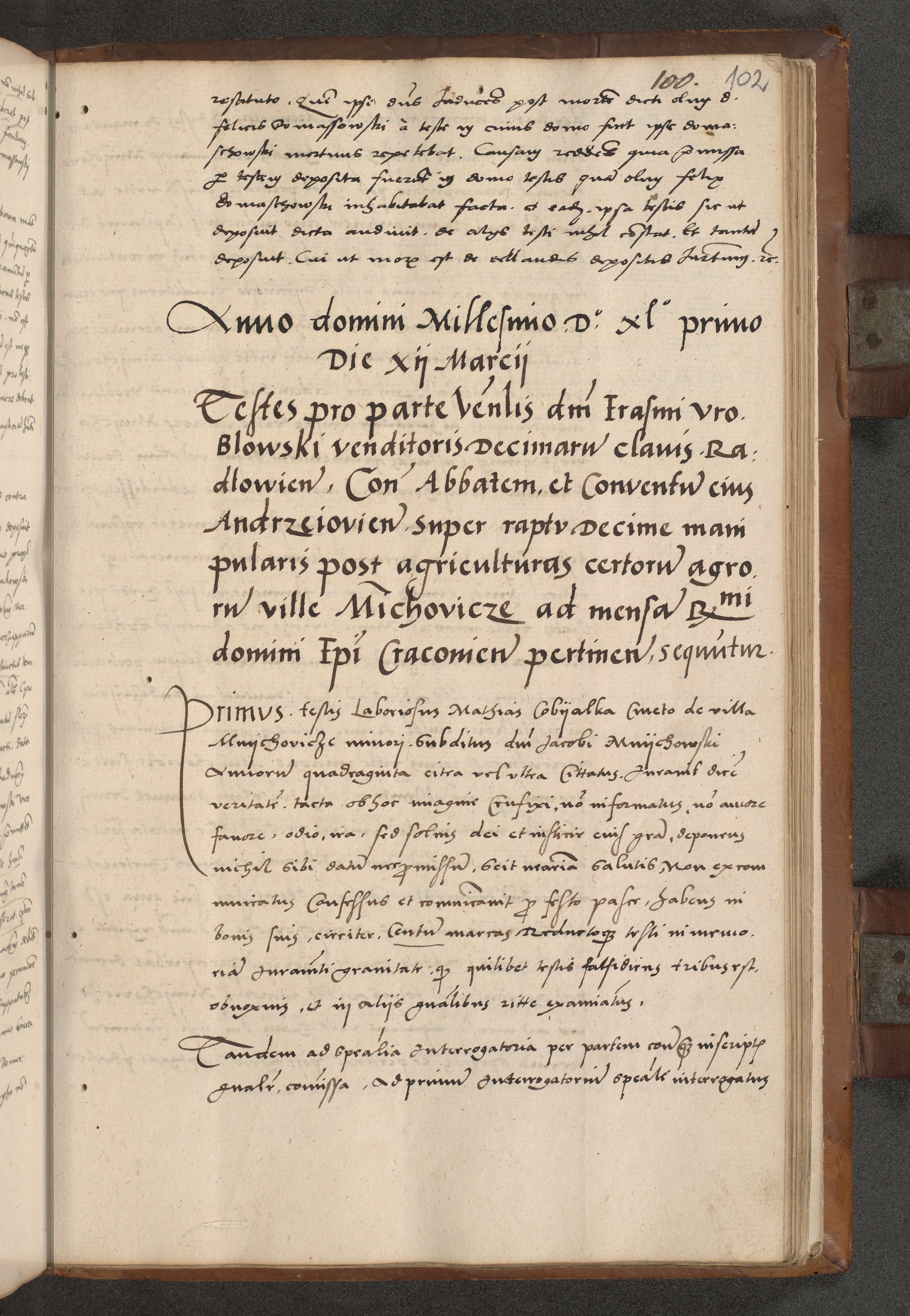 Acta attestationum seu depositionum testium coram R. D. Petro de Gamratis, episcopo Cracoviensi, V. D. Bartholomaeo Gantkowski, Posnaniensi et Suae Paternitatis Rev. cancellario ac Sigismundo de Stazicza, decretorum doctore, auditore causarum curiae episcopalis praesidentibus ad a. D. 1540 et 1541, per me Bartholomaeum Ravensem, utraquw auctoriate notarium publicum et coram Sua Paternitatr Rev. causarum scriba feliciter inchoatum.