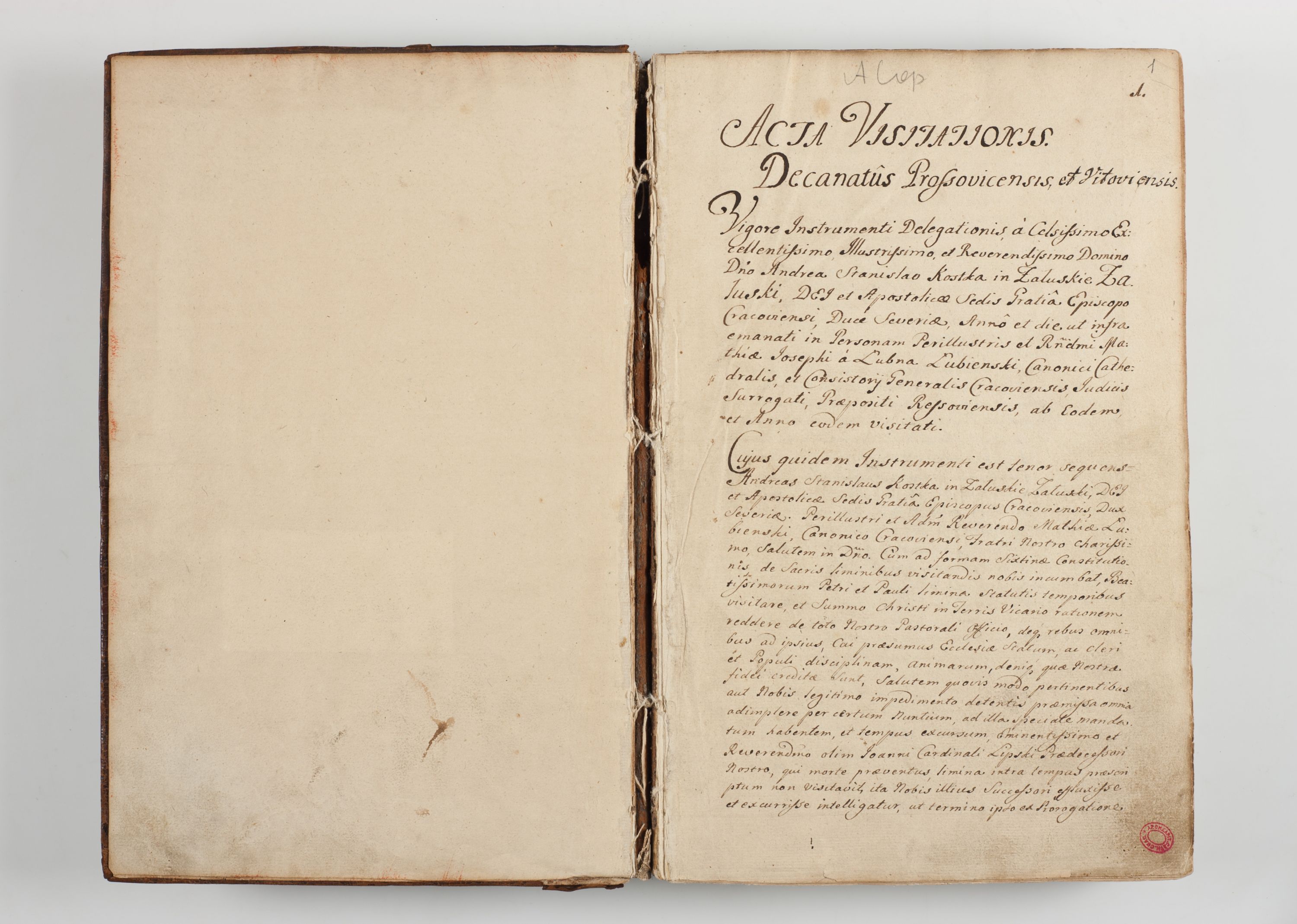 Acta visitationis decanatus Proszoviensis et Vitoviensis vigore instrumenti delegationis a R. D. Andrea Stanislao Kostka in Załuskie Załuski, episcopo Cracoviensi, duce Severiae - emanati in persona R. D. Mathiae Josephi a Łubna Łubiński, canonici cathedralis et consistorii generalis Cracoviensis iudicis surrogati, praepositi Ressoviensis a. D. 1747 factae