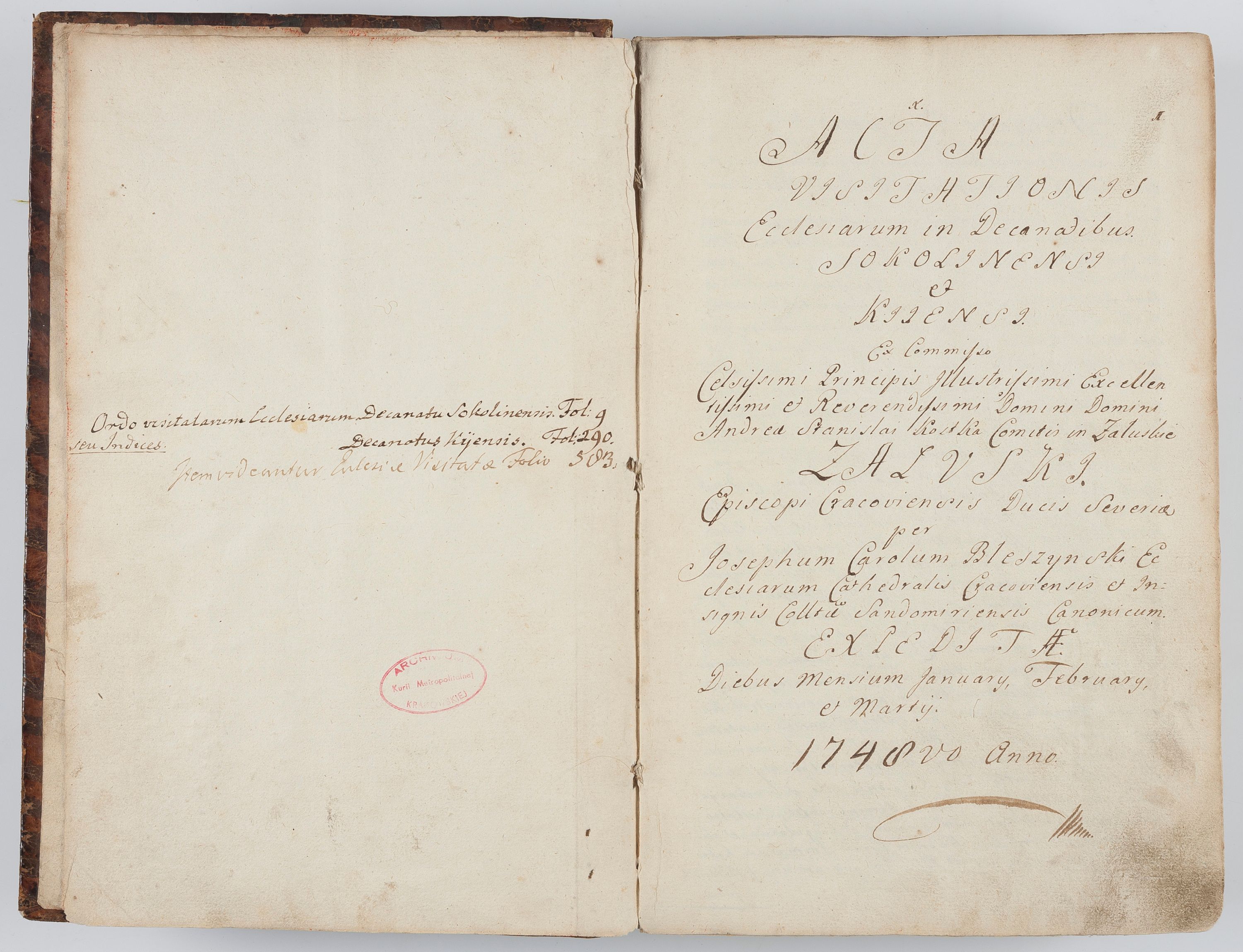 Acta visitationis ecclesiarum in decanatu Sokolinensi et Kijensi ex commissione Cel. Principis R.D. Andrea Stanislai Kostka comitis in Załuskie Załuski, episcopi Cracoviensis, ducis Severiae, per Josephum Carolum Bleszyński, ecclesiarum cathedralis Cracoviensis et Insignis Collegiatae Sandomiriensis canonicum, expeditae diebus mensium Januarii et Februarii et Martii 1748 anno