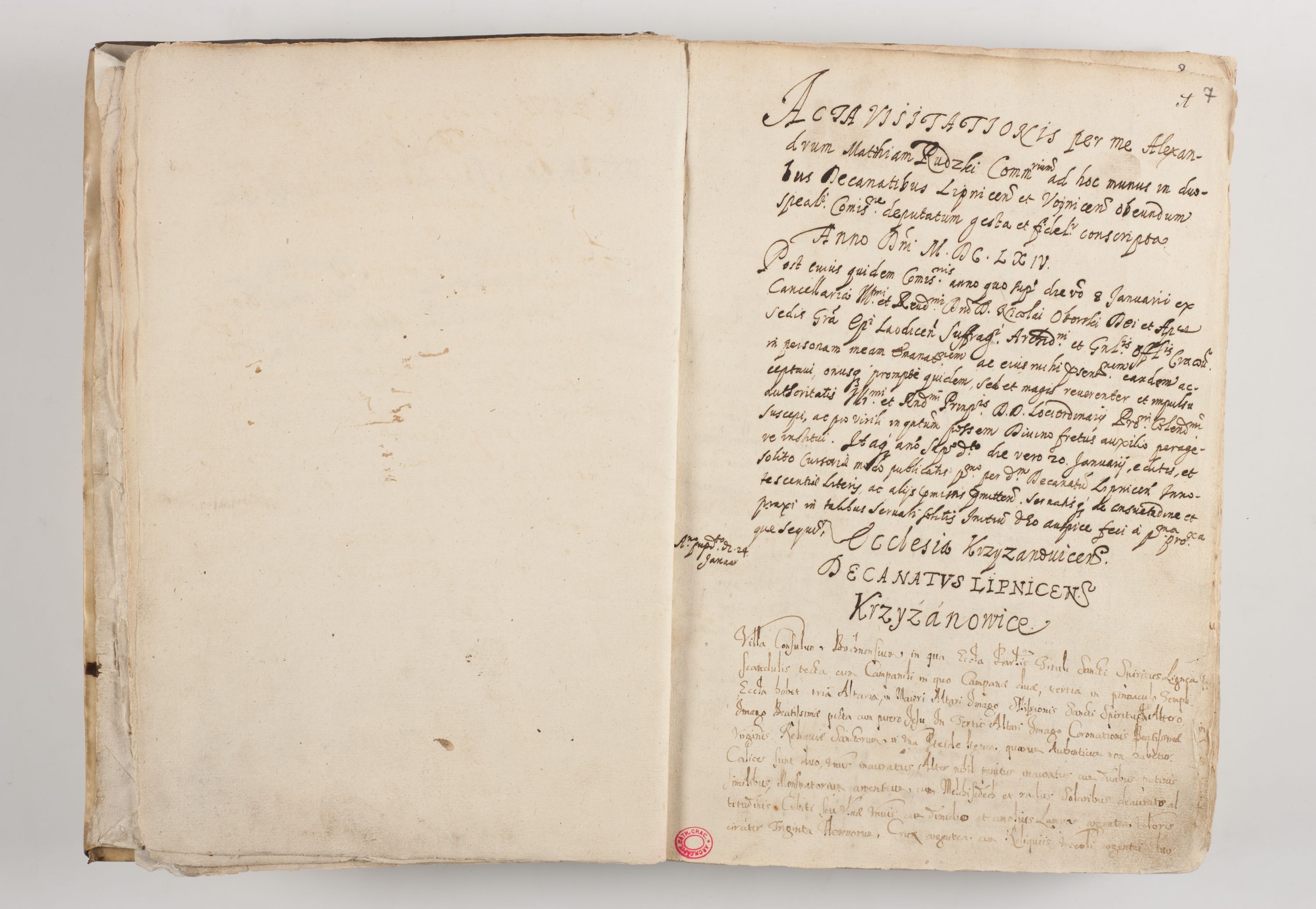 Acta visitationis per me Alexandrum Mathiam Rudzki Commissarium ad hoc nunus in dusbus decanatibus Lipnicensis et Voynicensis