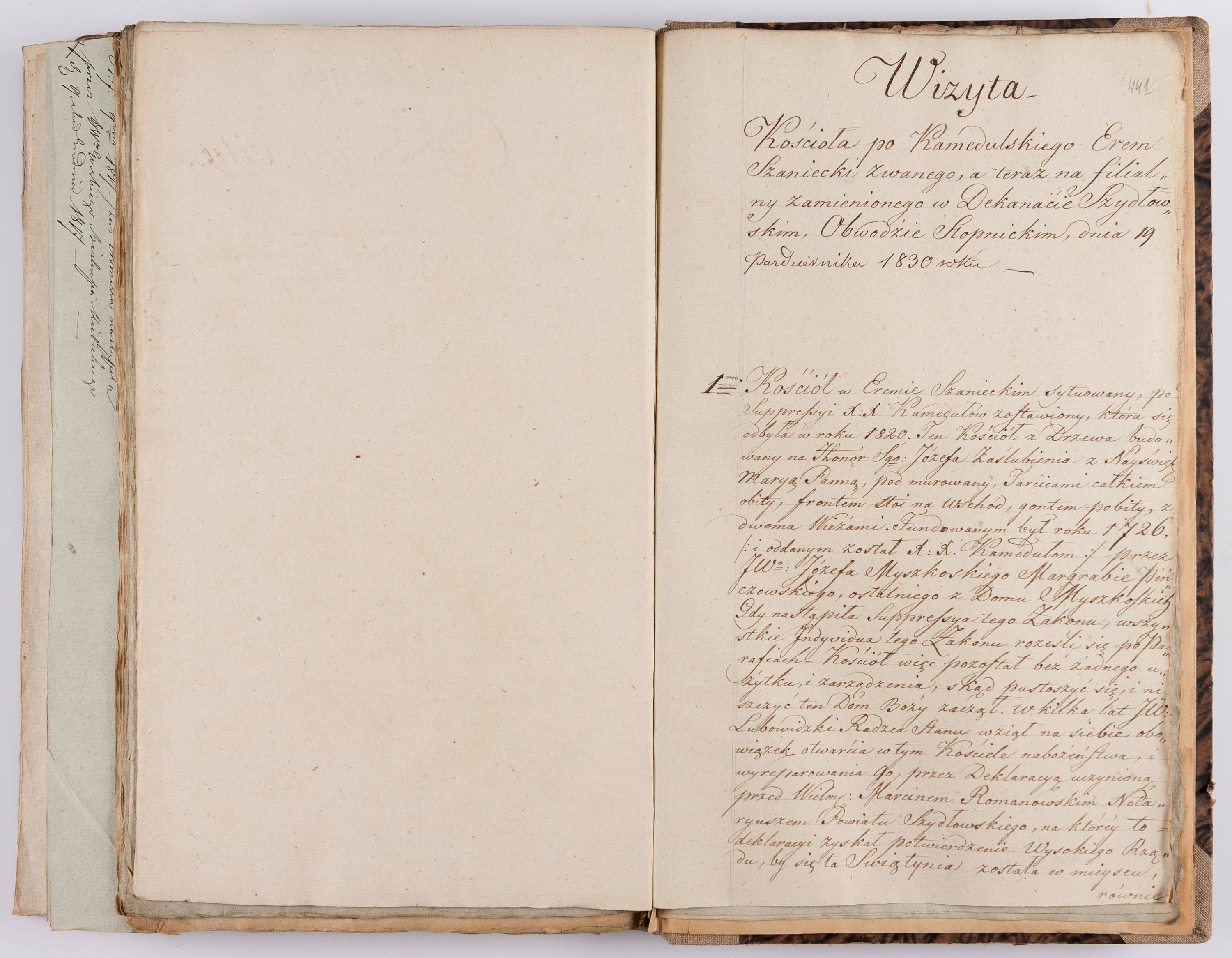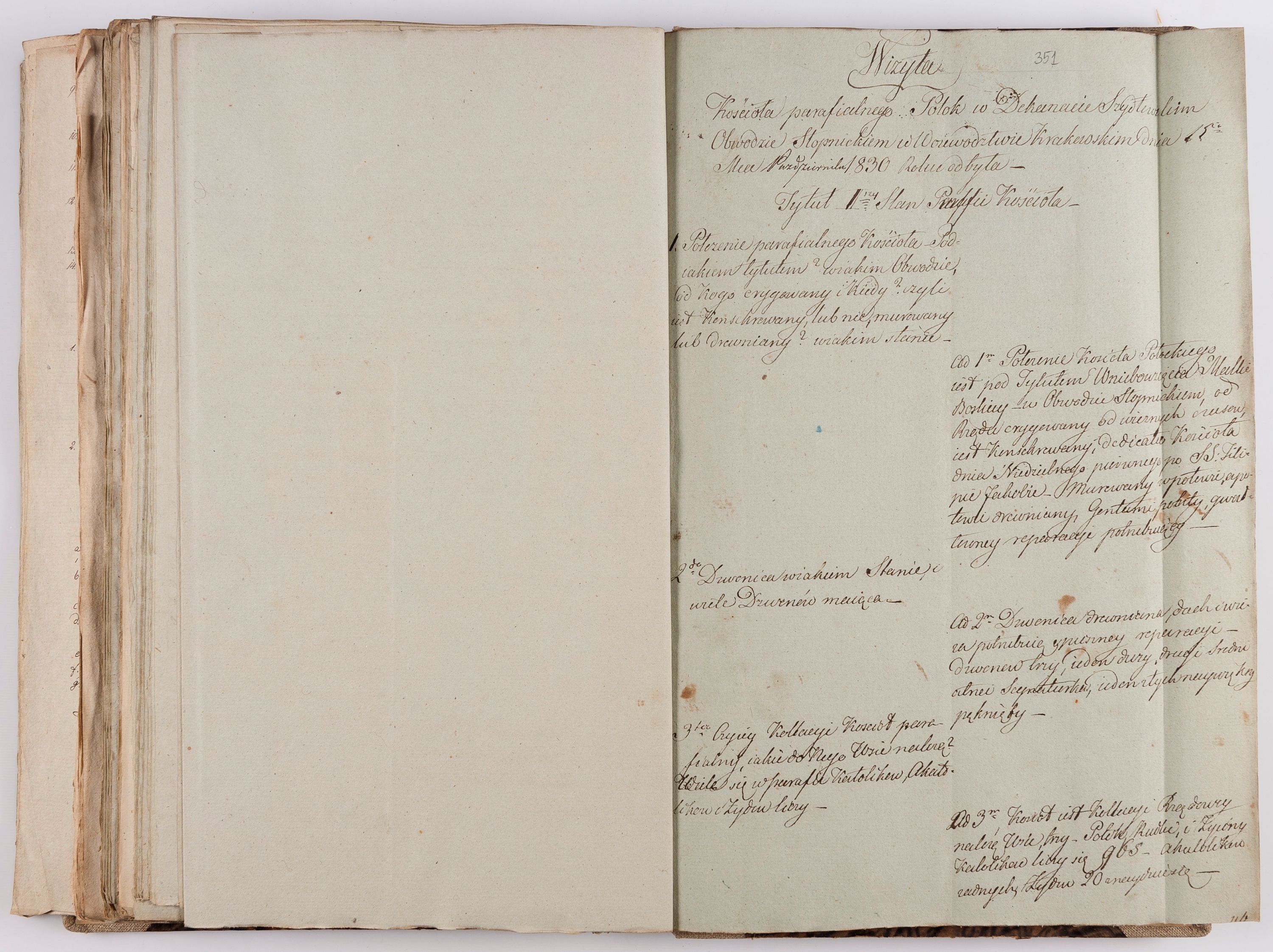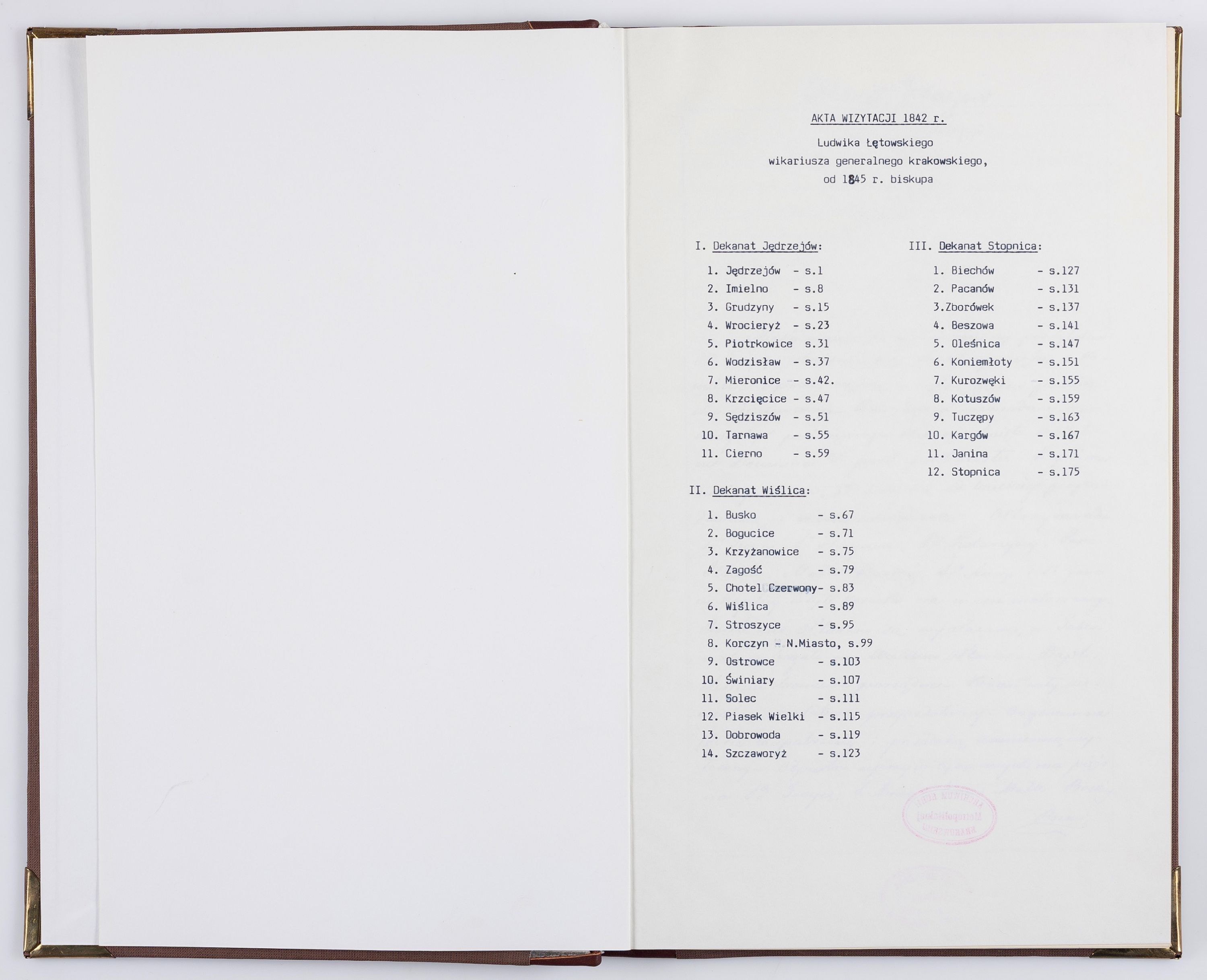 [Akta wizytacji dekanatów Jędrzejów, Stopnica, Wiślica przeprowadzone przez Ludwika Łętowskiego, wikariusza generalnego krakowskiego w 1842 r.]
