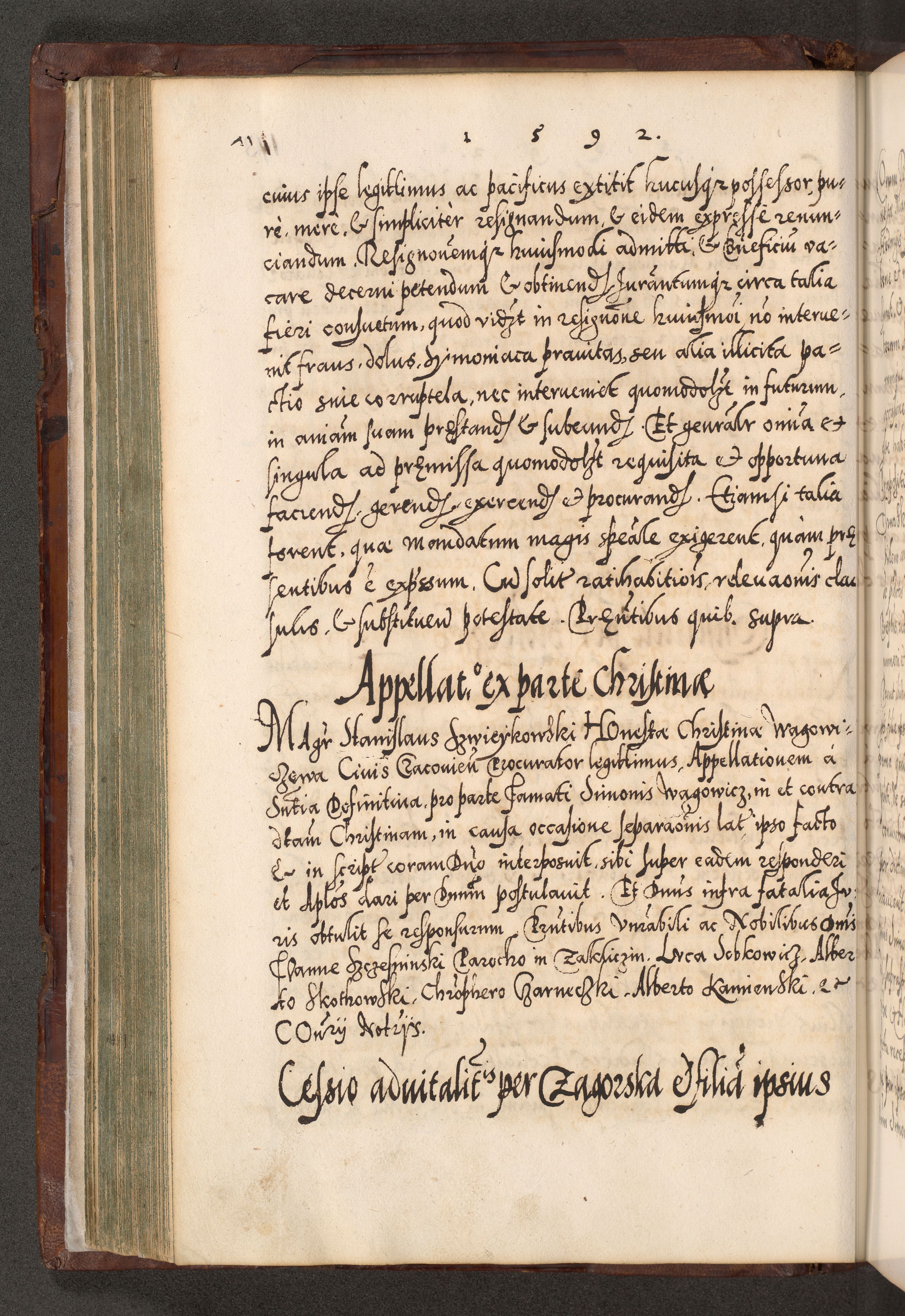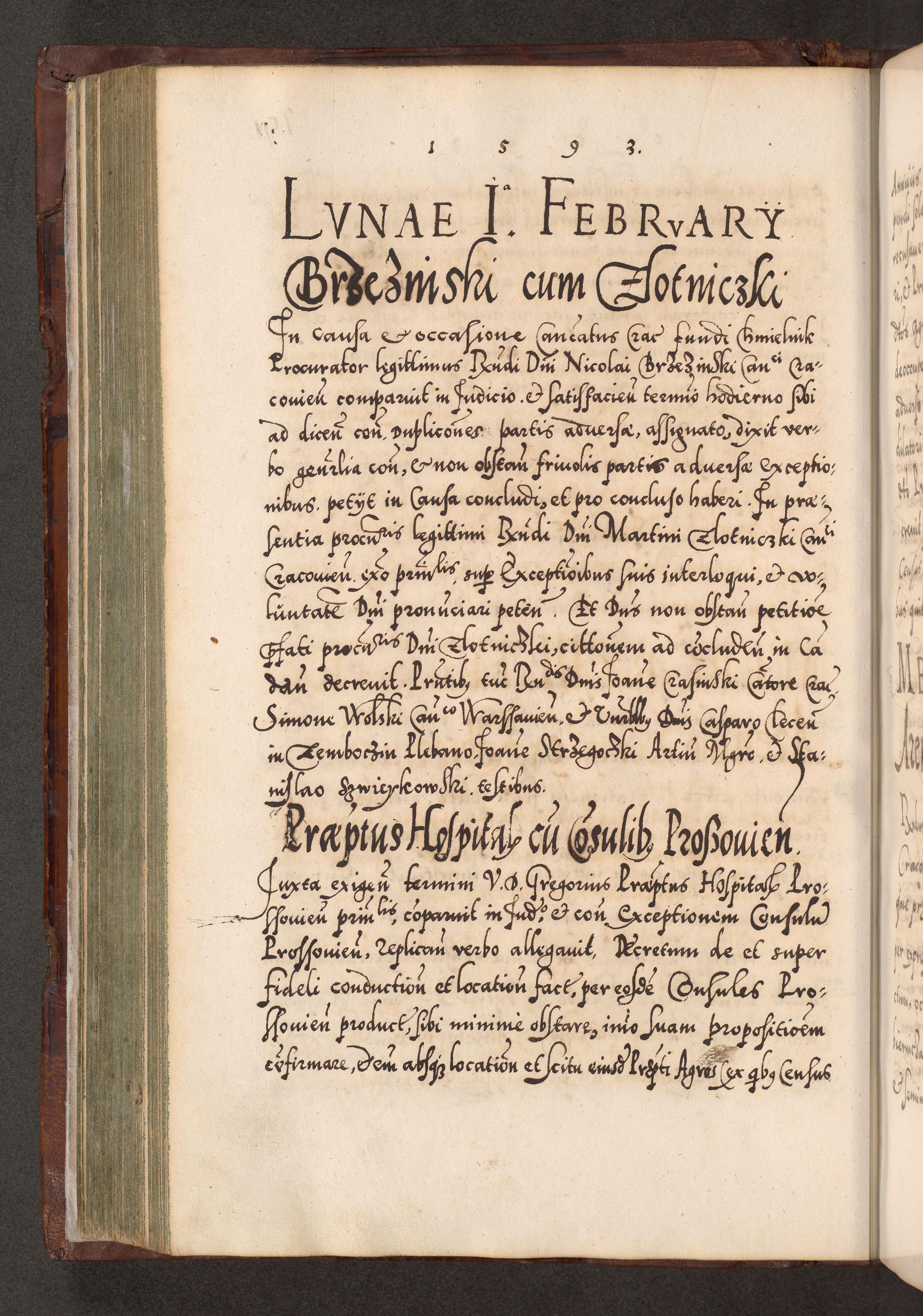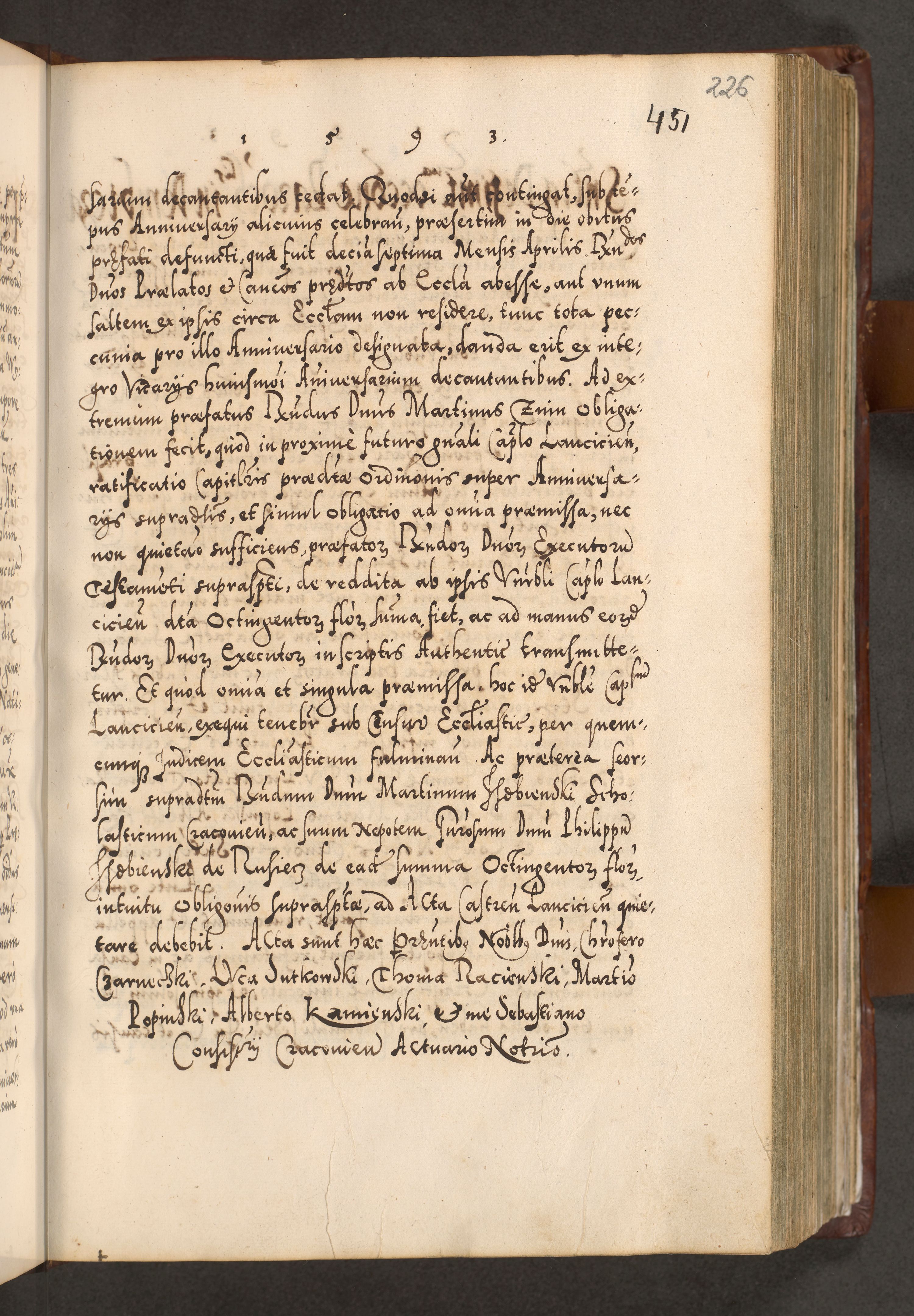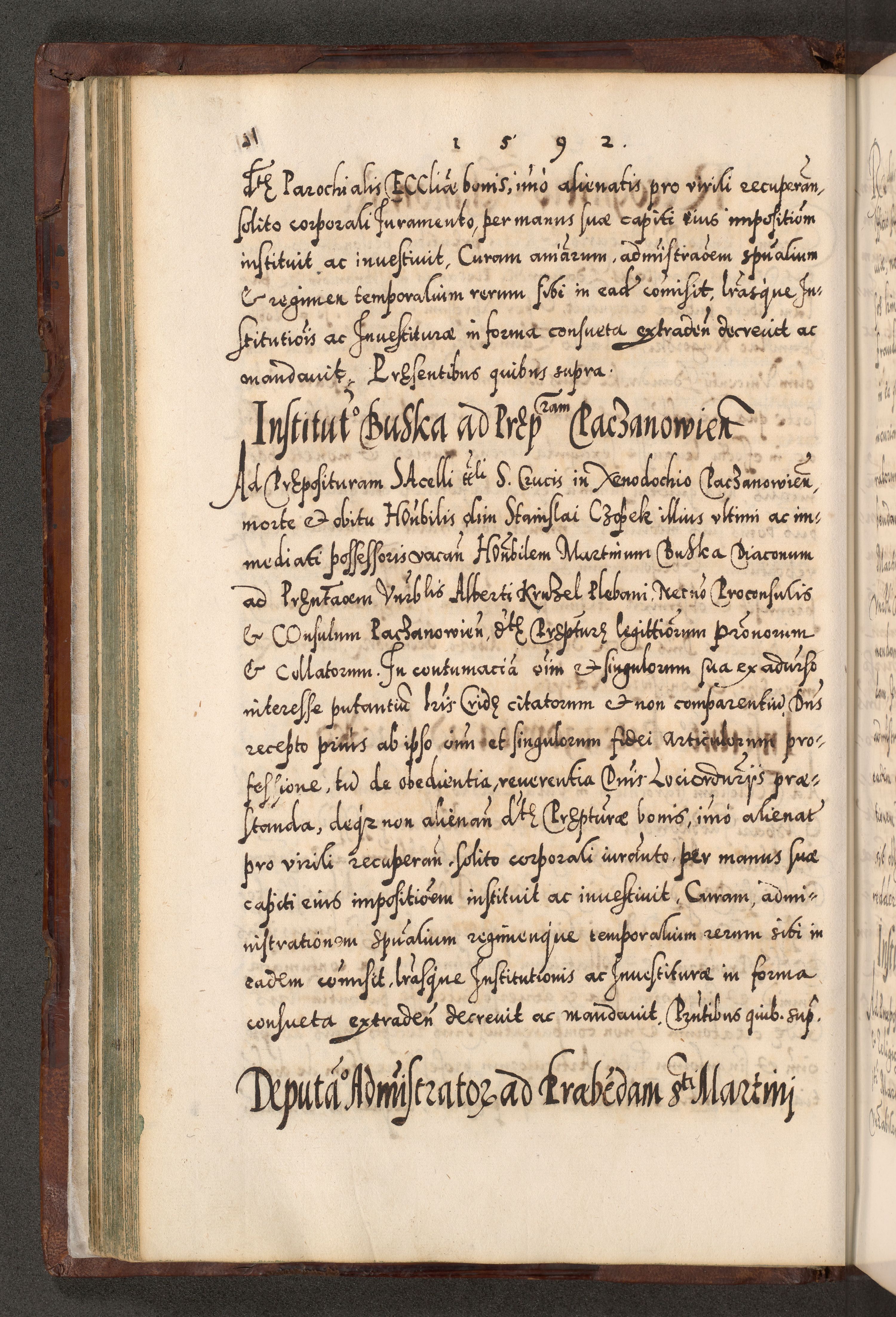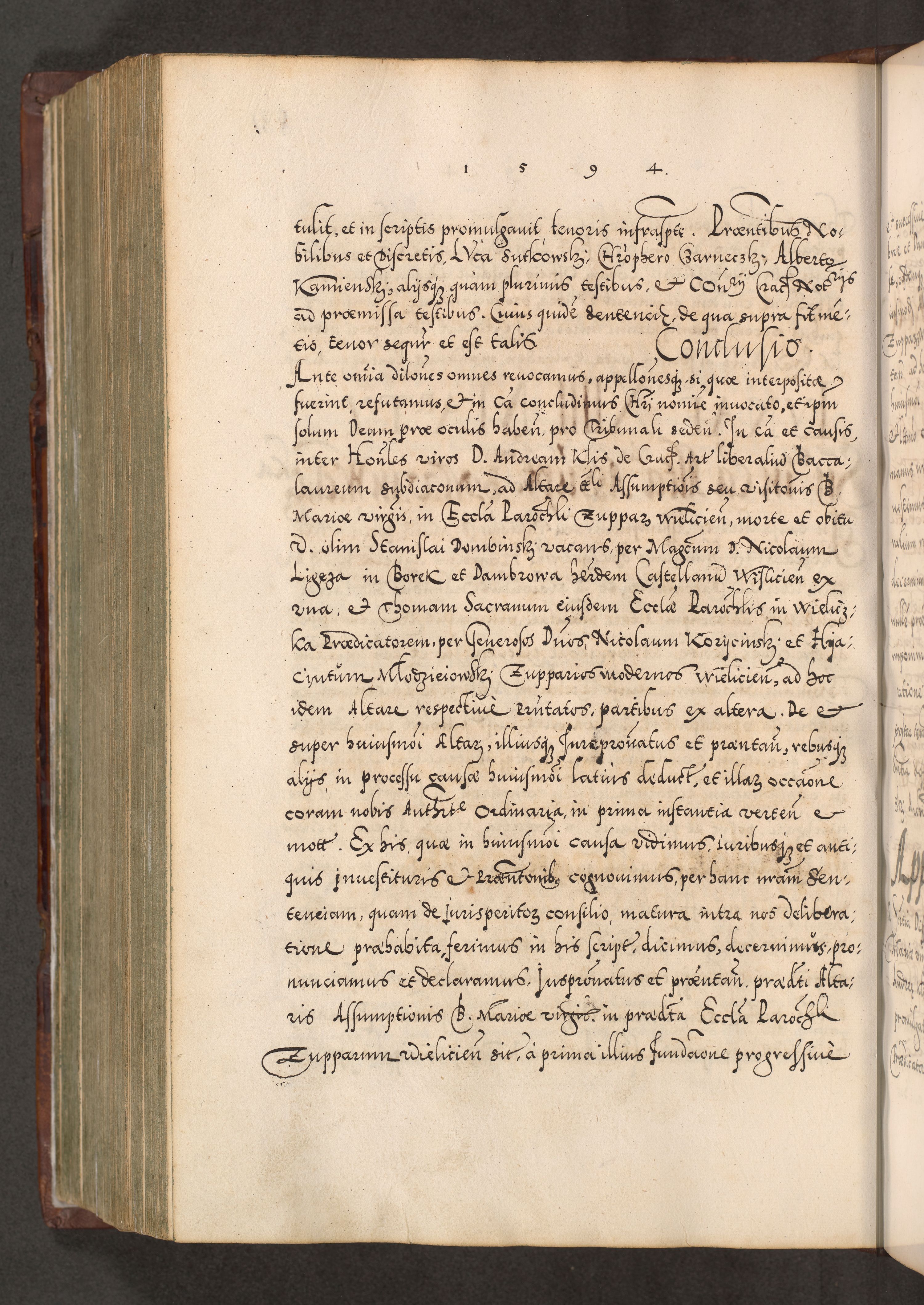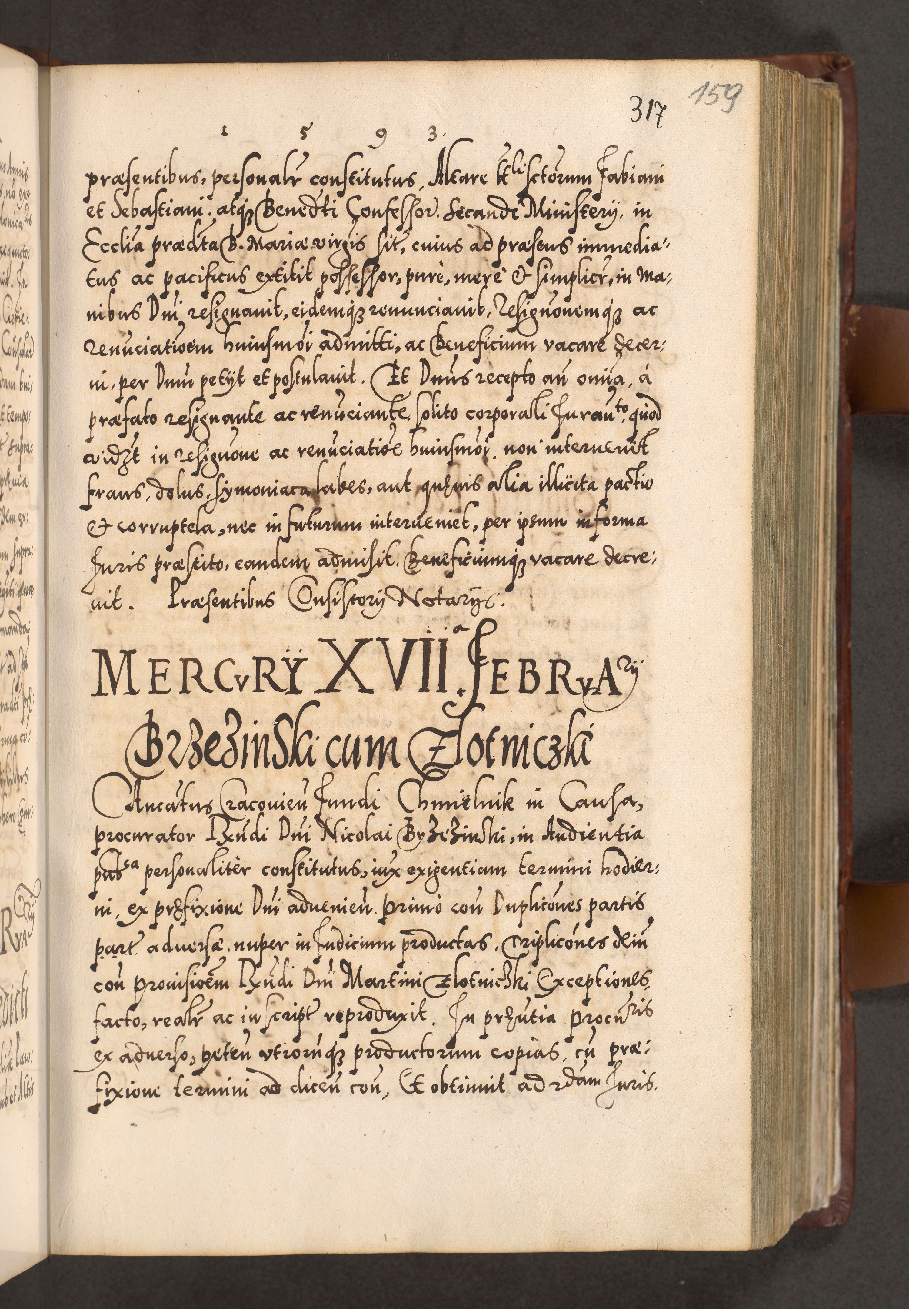 Illistrissimo et revedissimo in Christo Patre Domino Domino Georgio Rzadziwił Miserone Divina Sacrostae R. E. Tituli S. Sixti Presbitero Cardinali Duce in Olyka et Niesswiesz ad Gubernacula Ecclessiae Cracoviensis cuius administratorialem a Sancta Sede Apostolica obtinverat feliciter sedente. Acta actorum, causarum, sententiarum tam deffinitivarum quam interloquutoriarum decretorum, obligationum, quietationum, recognitionum, constitutionum procuratorum etc. coram Reverendo Domino Stanislao Crassinskz de Crasne Archidiacono Cracoviensis, Scholastico Gnesnesis, Custode Plocensis etc. Vicario et Officiali Generali Cracoviensi in Ano Domini Millesimo Quingentesimo Nonagesimo Primo cuius indictio quarta pontificatus SS. Domini Nostri Gregorii XIIII Anno I psius prio feliciter incipiut