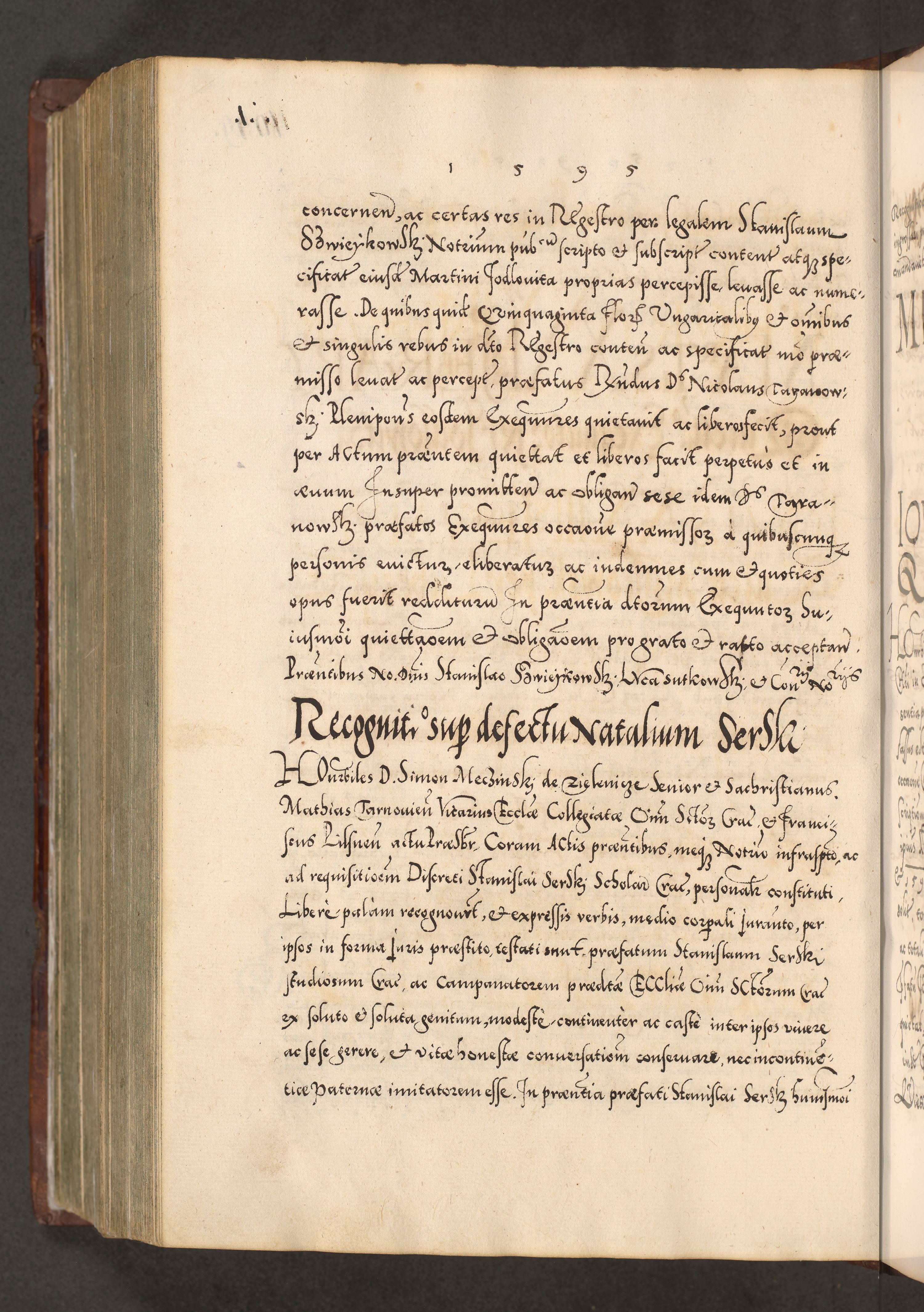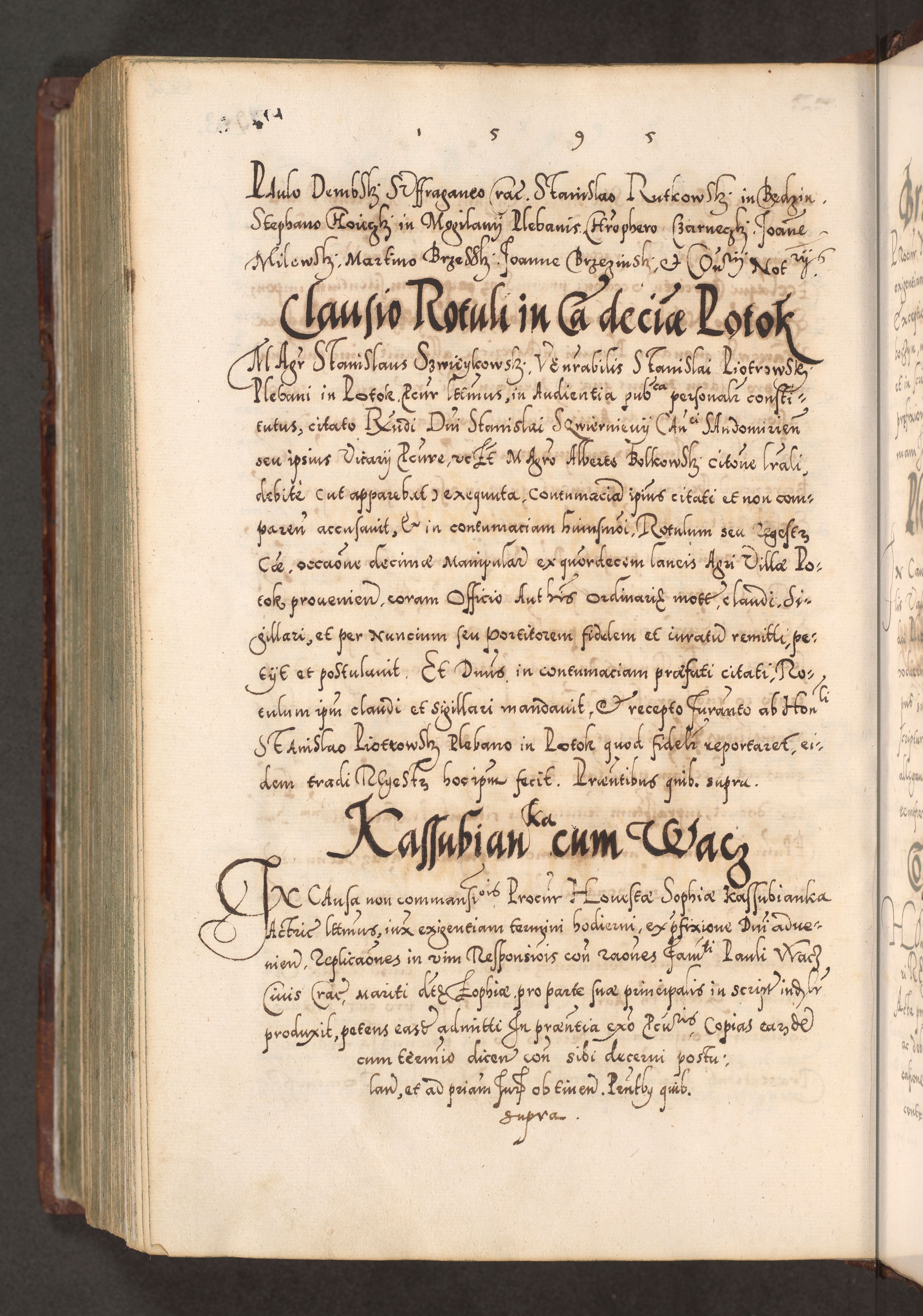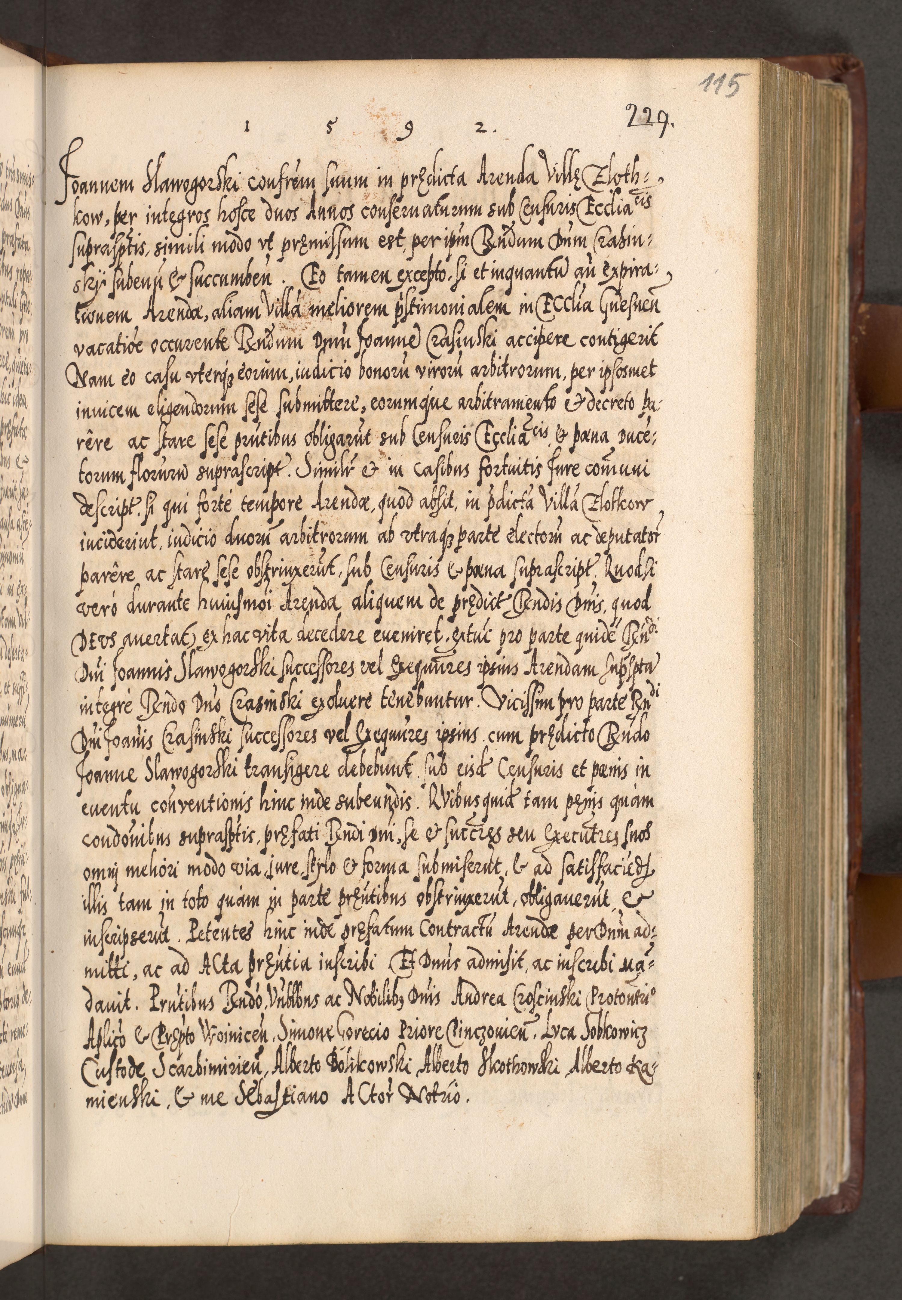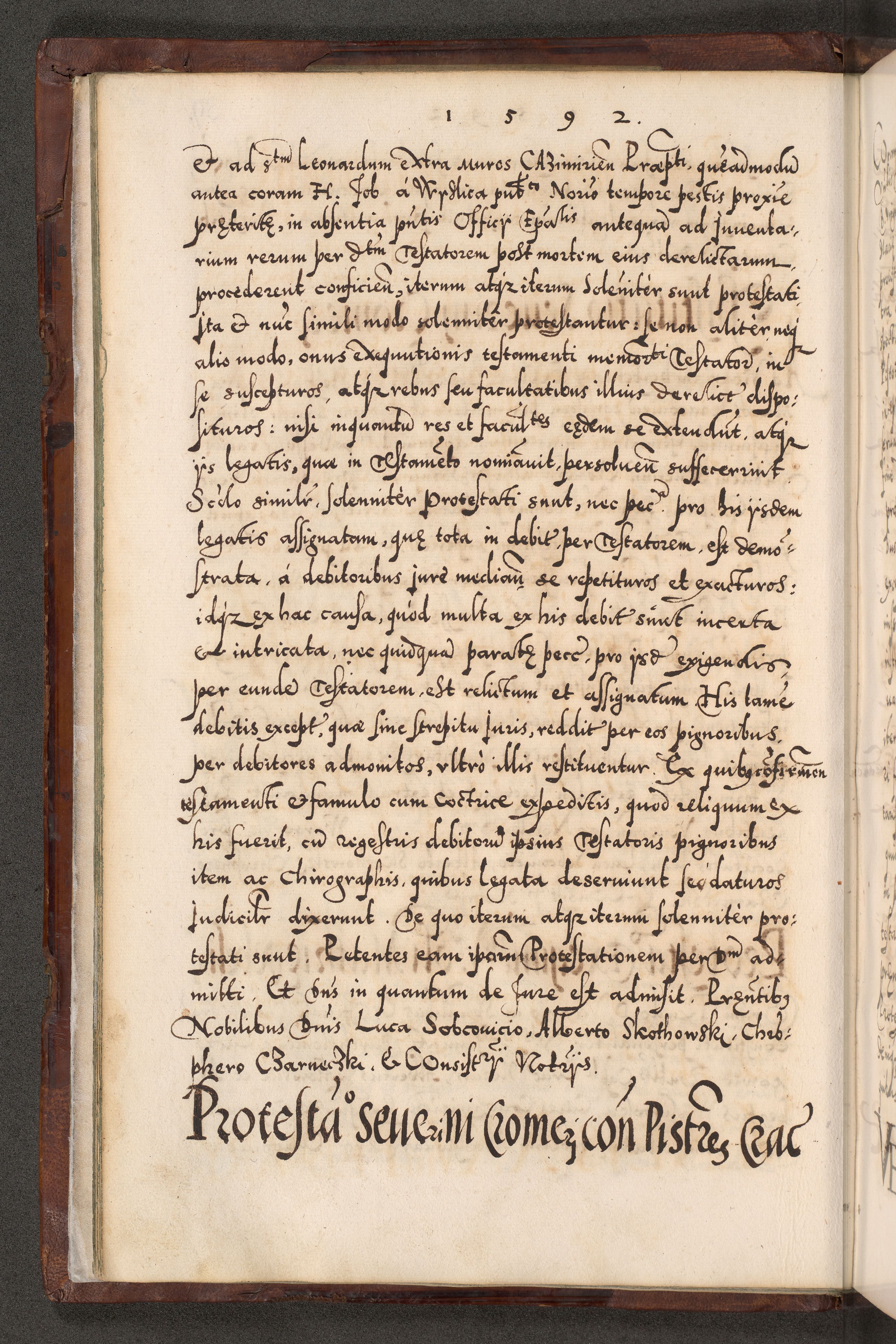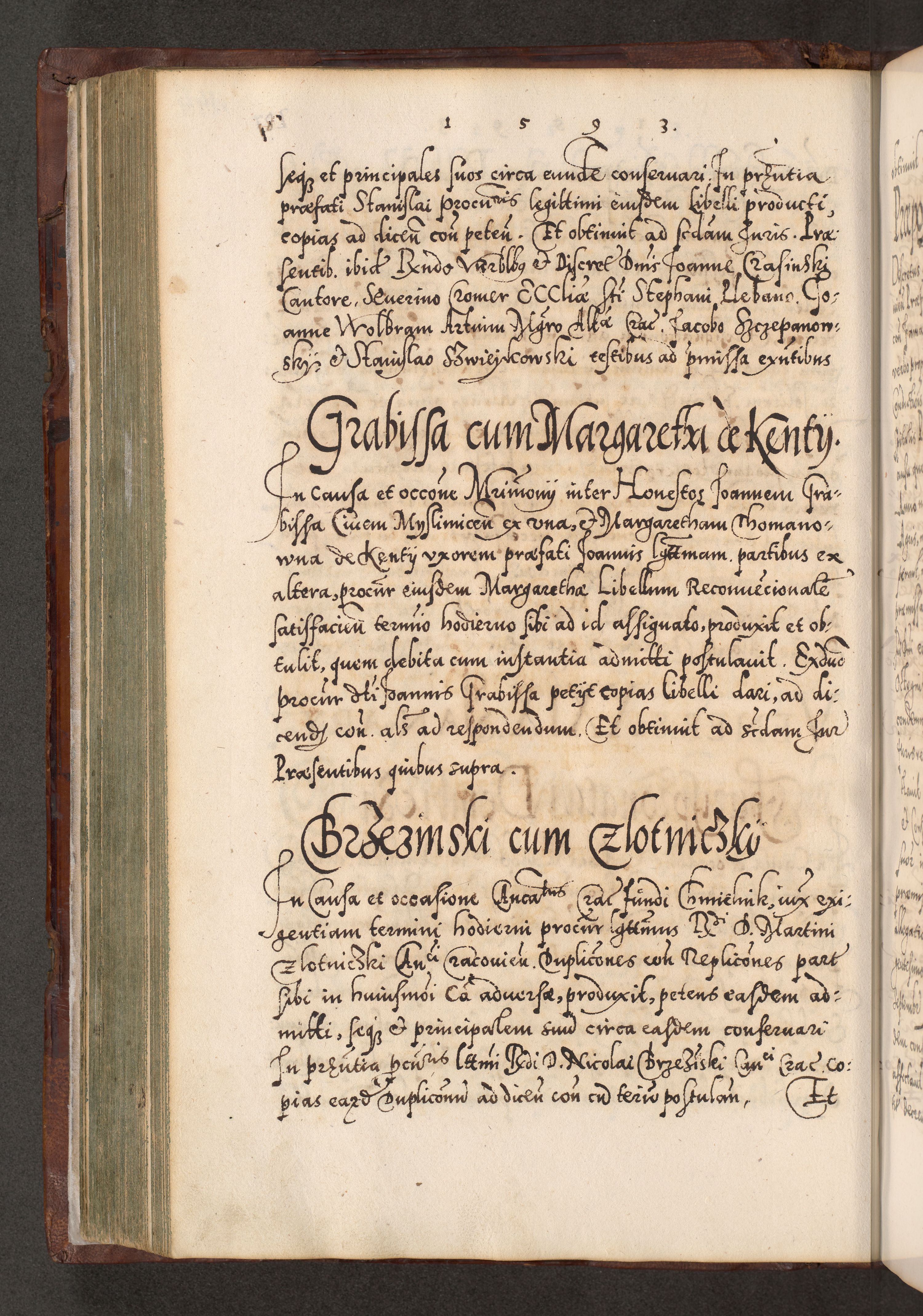 Illistrissimo et revedissimo in Christo Patre Domino Domino Georgio Rzadziwił Miserone Divina Sacrostae R. E. Tituli S. Sixti Presbitero Cardinali Duce in Olyka et Niesswiesz ad Gubernacula Ecclessiae Cracoviensis cuius administratorialem a Sancta Sede Apostolica obtinverat feliciter sedente. Acta actorum, causarum, sententiarum tam deffinitivarum quam interloquutoriarum decretorum, obligationum, quietationum, recognitionum, constitutionum procuratorum etc. coram Reverendo Domino Stanislao Crassinskz de Crasne Archidiacono Cracoviensis, Scholastico Gnesnesis, Custode Plocensis etc. Vicario et Officiali Generali Cracoviensi in Ano Domini Millesimo Quingentesimo Nonagesimo Primo cuius indictio quarta pontificatus SS. Domini Nostri Gregorii XIIII Anno I psius prio feliciter incipiut