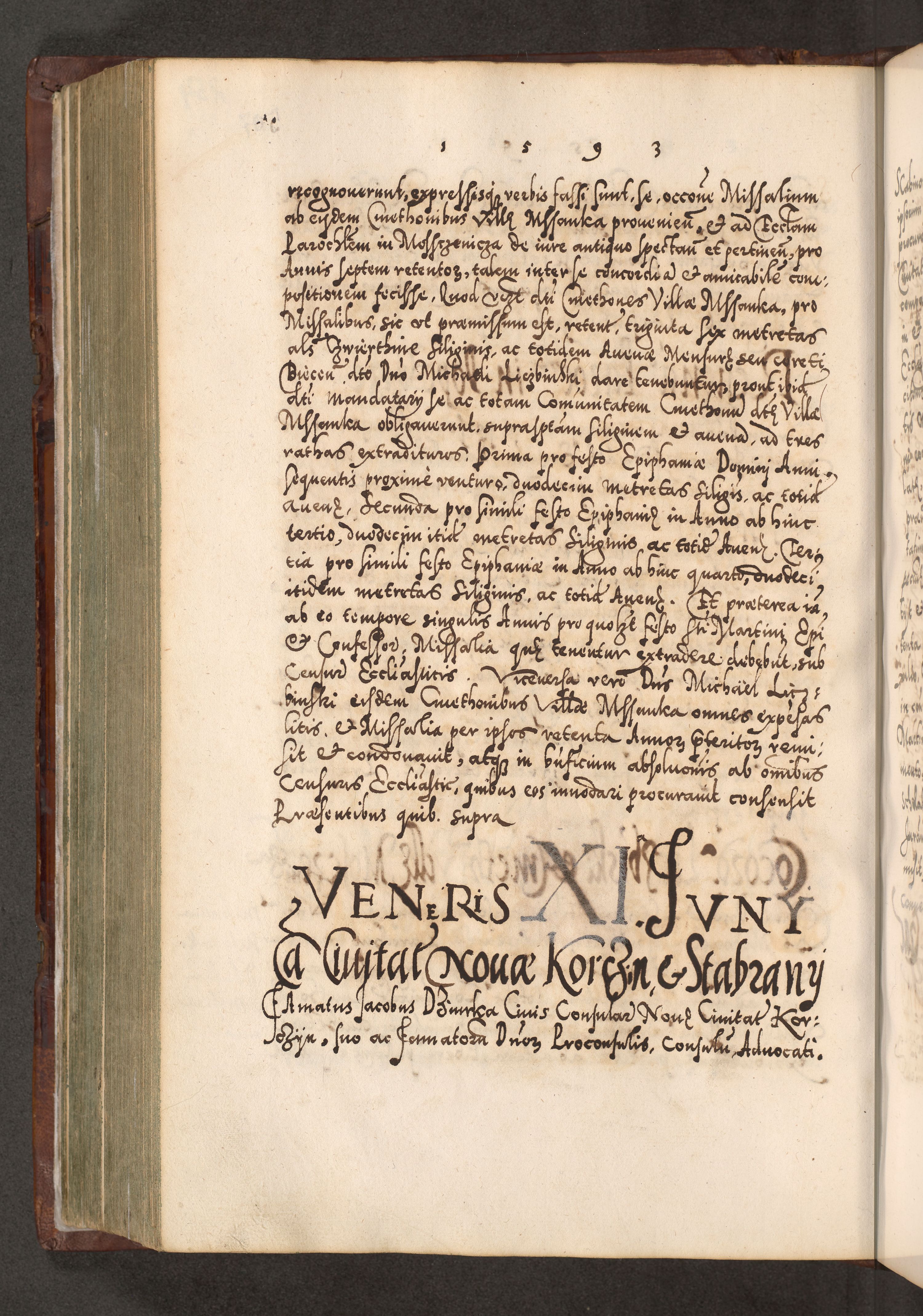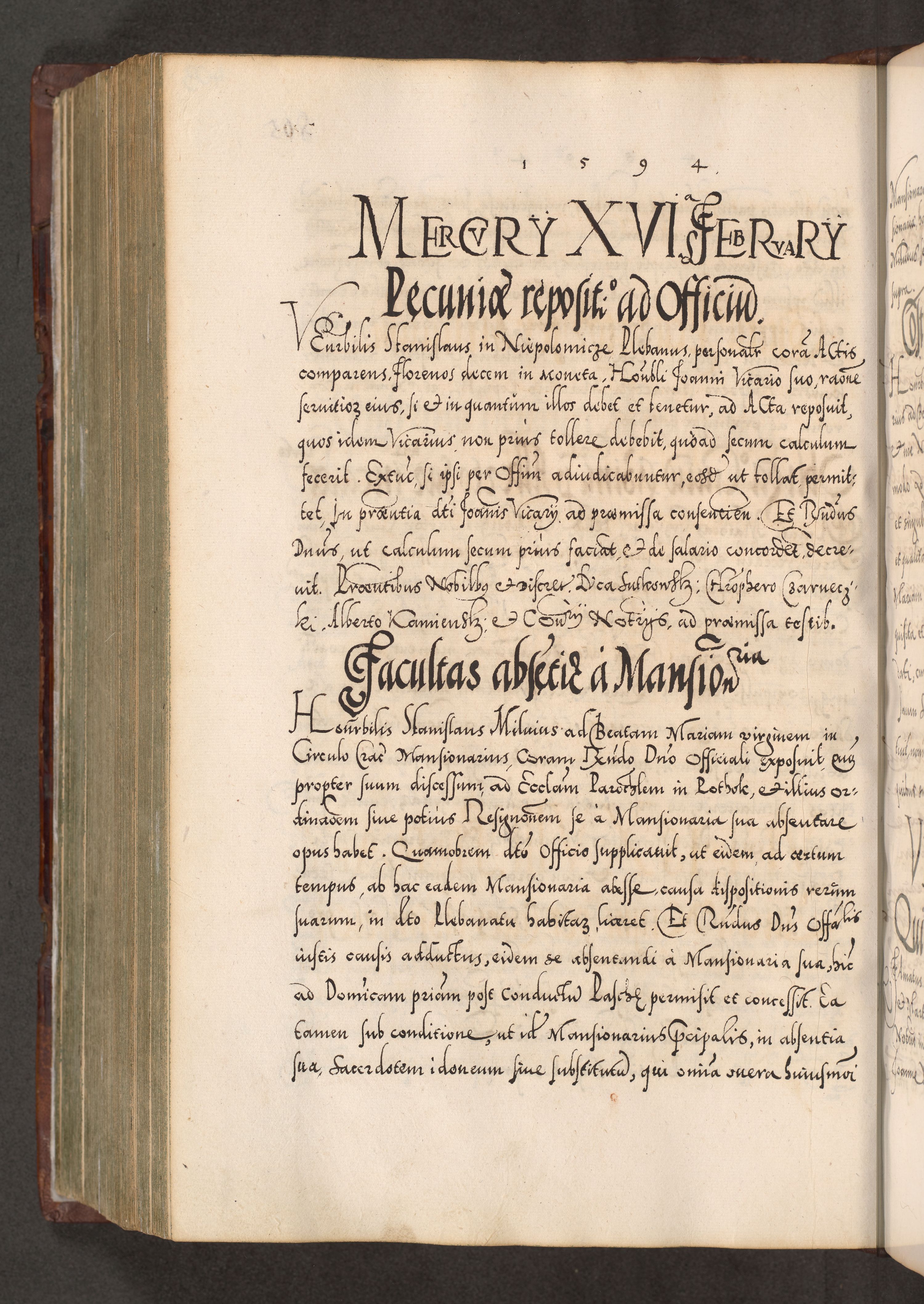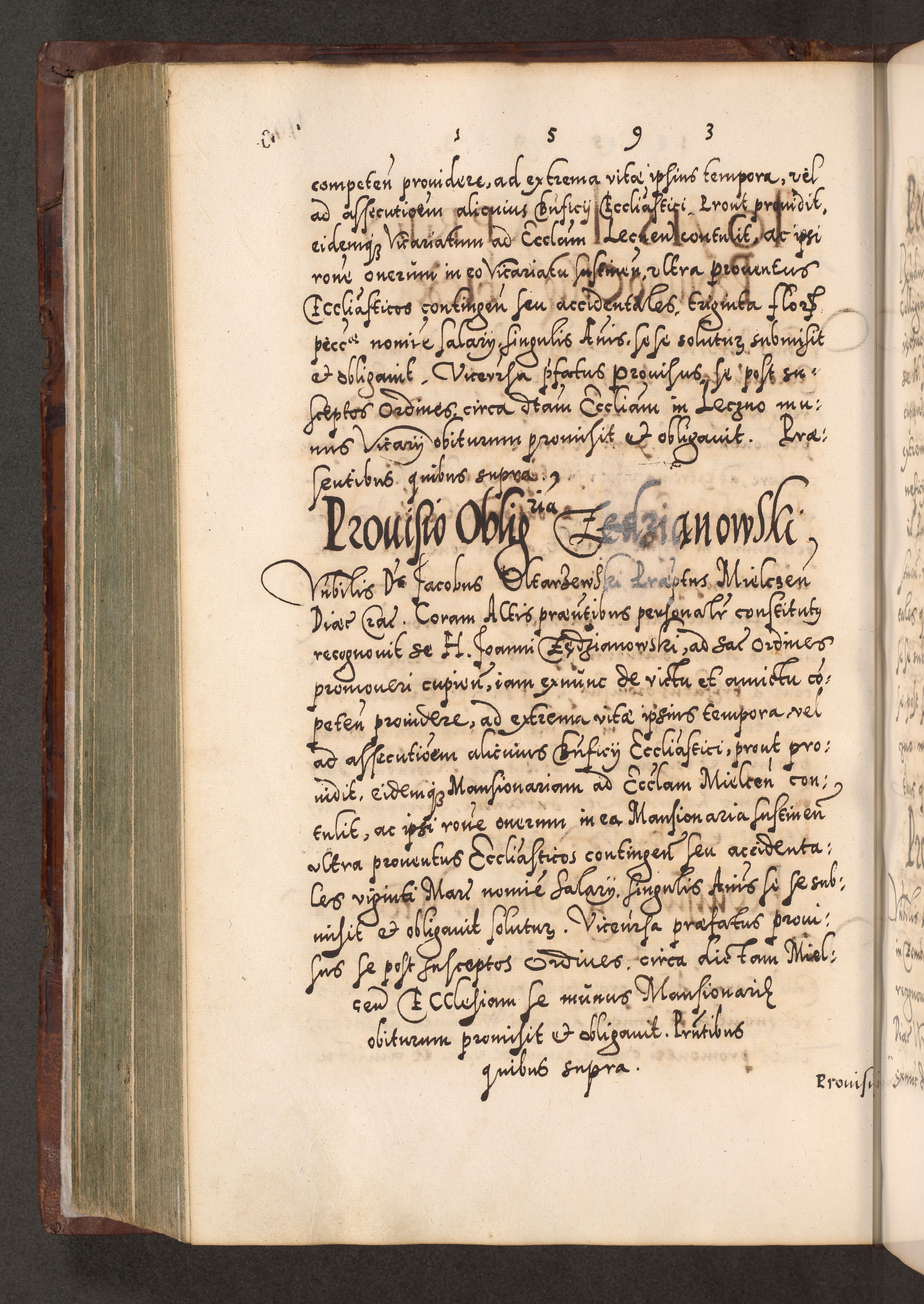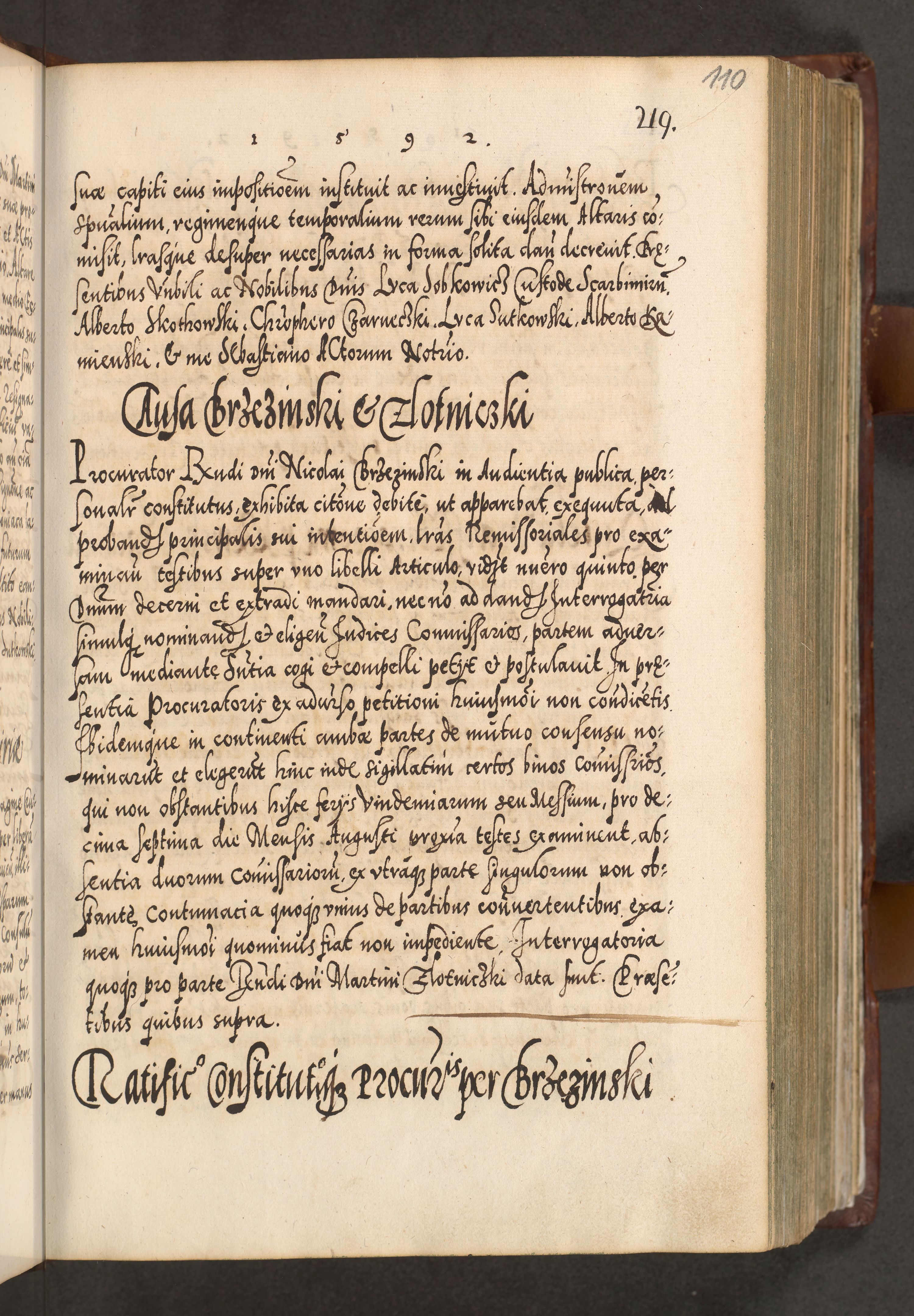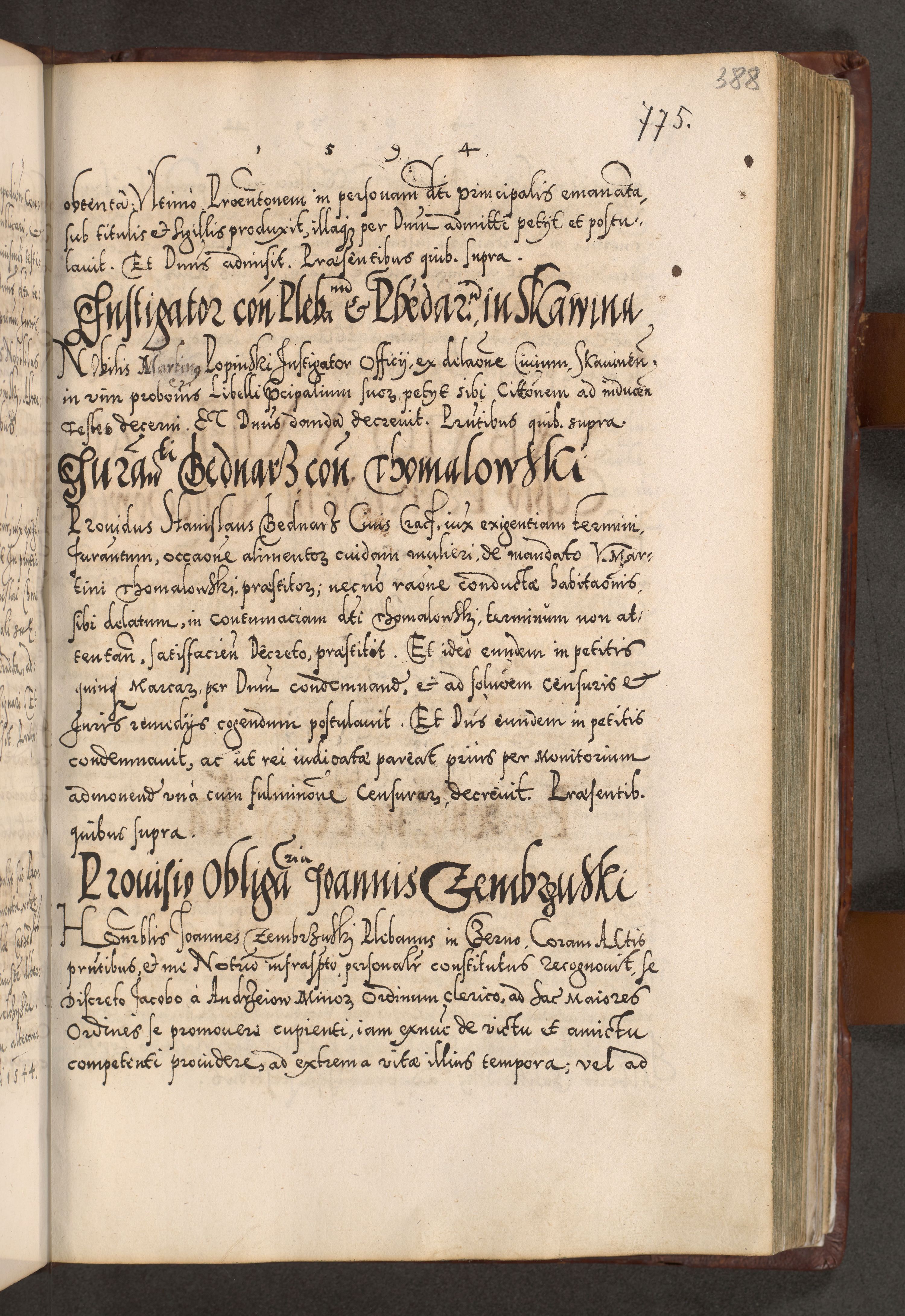 Illistrissimo et revedissimo in Christo Patre Domino Domino Georgio Rzadziwił Miserone Divina Sacrostae R. E. Tituli S. Sixti Presbitero Cardinali Duce in Olyka et Niesswiesz ad Gubernacula Ecclessiae Cracoviensis cuius administratorialem a Sancta Sede Apostolica obtinverat feliciter sedente. Acta actorum, causarum, sententiarum tam deffinitivarum quam interloquutoriarum decretorum, obligationum, quietationum, recognitionum, constitutionum procuratorum etc. coram Reverendo Domino Stanislao Crassinskz de Crasne Archidiacono Cracoviensis, Scholastico Gnesnesis, Custode Plocensis etc. Vicario et Officiali Generali Cracoviensi in Ano Domini Millesimo Quingentesimo Nonagesimo Primo cuius indictio quarta pontificatus SS. Domini Nostri Gregorii XIIII Anno I psius prio feliciter incipiut