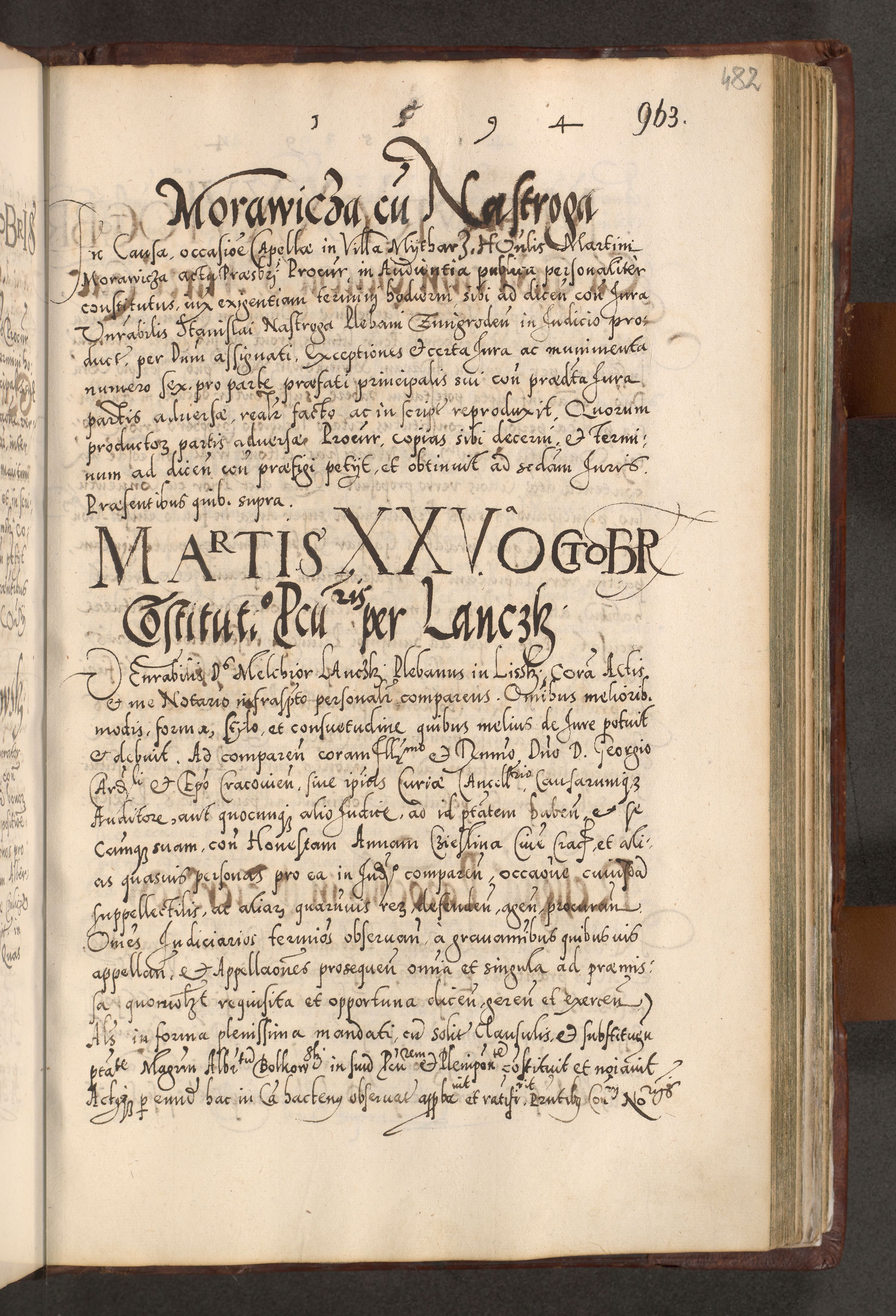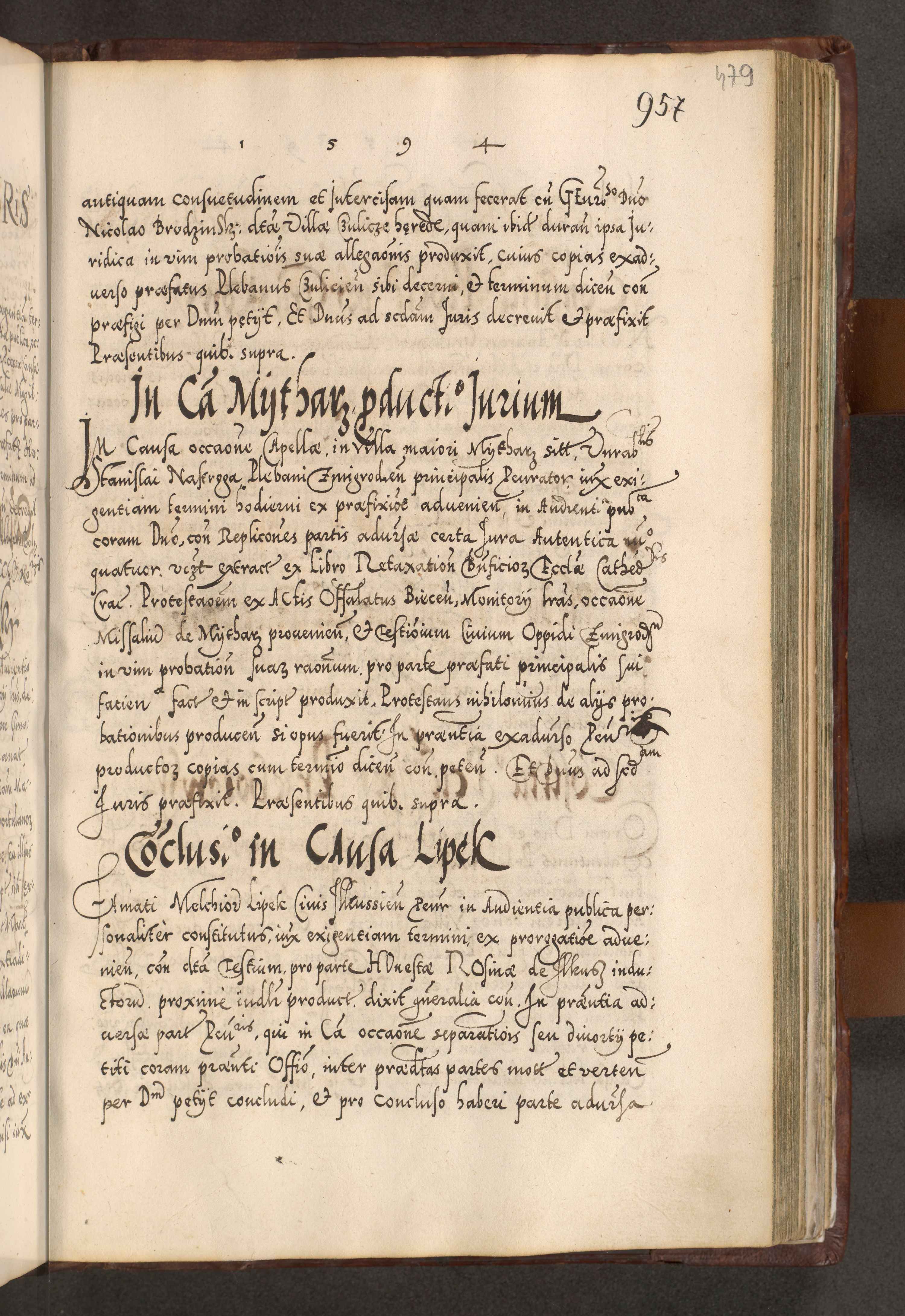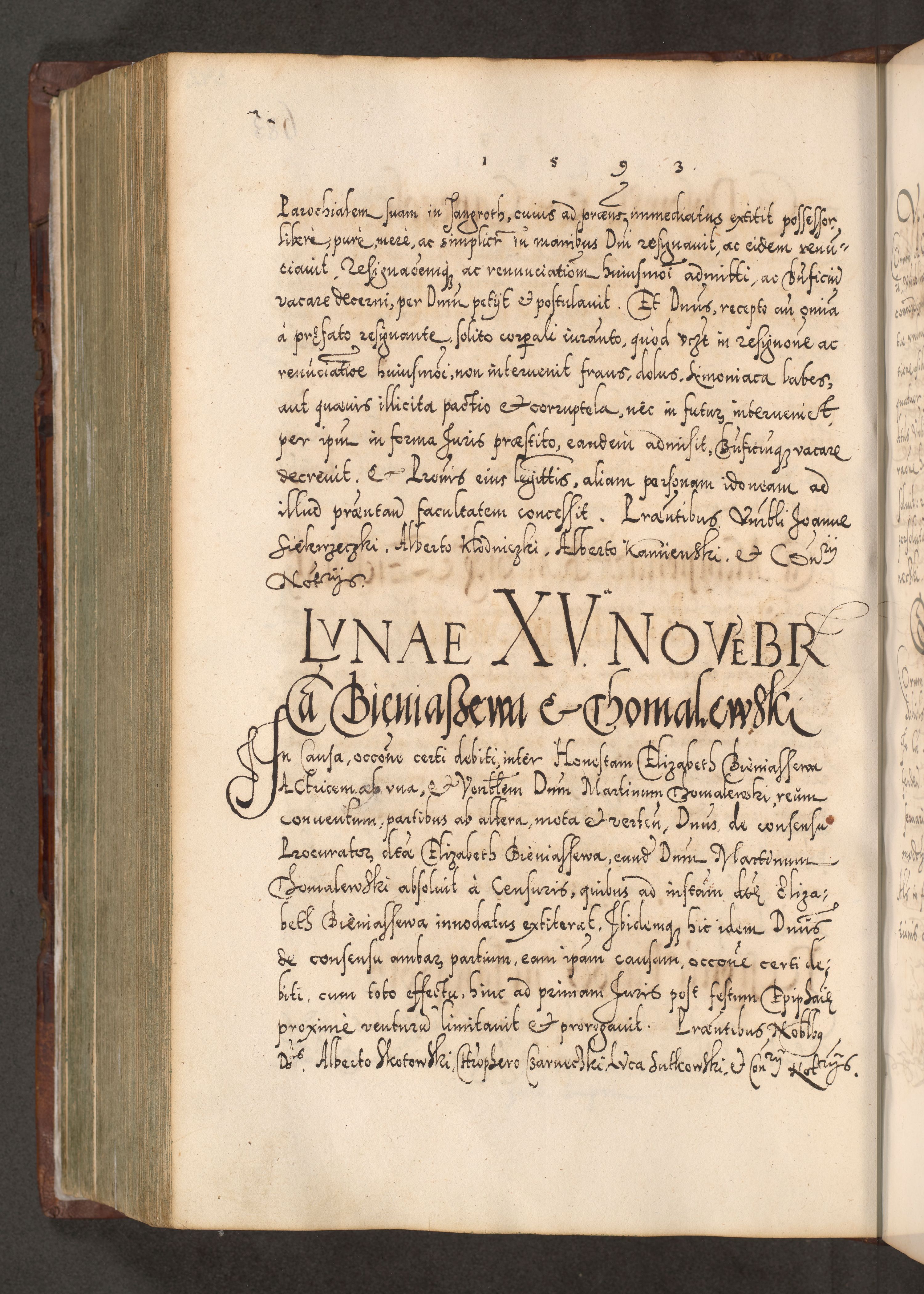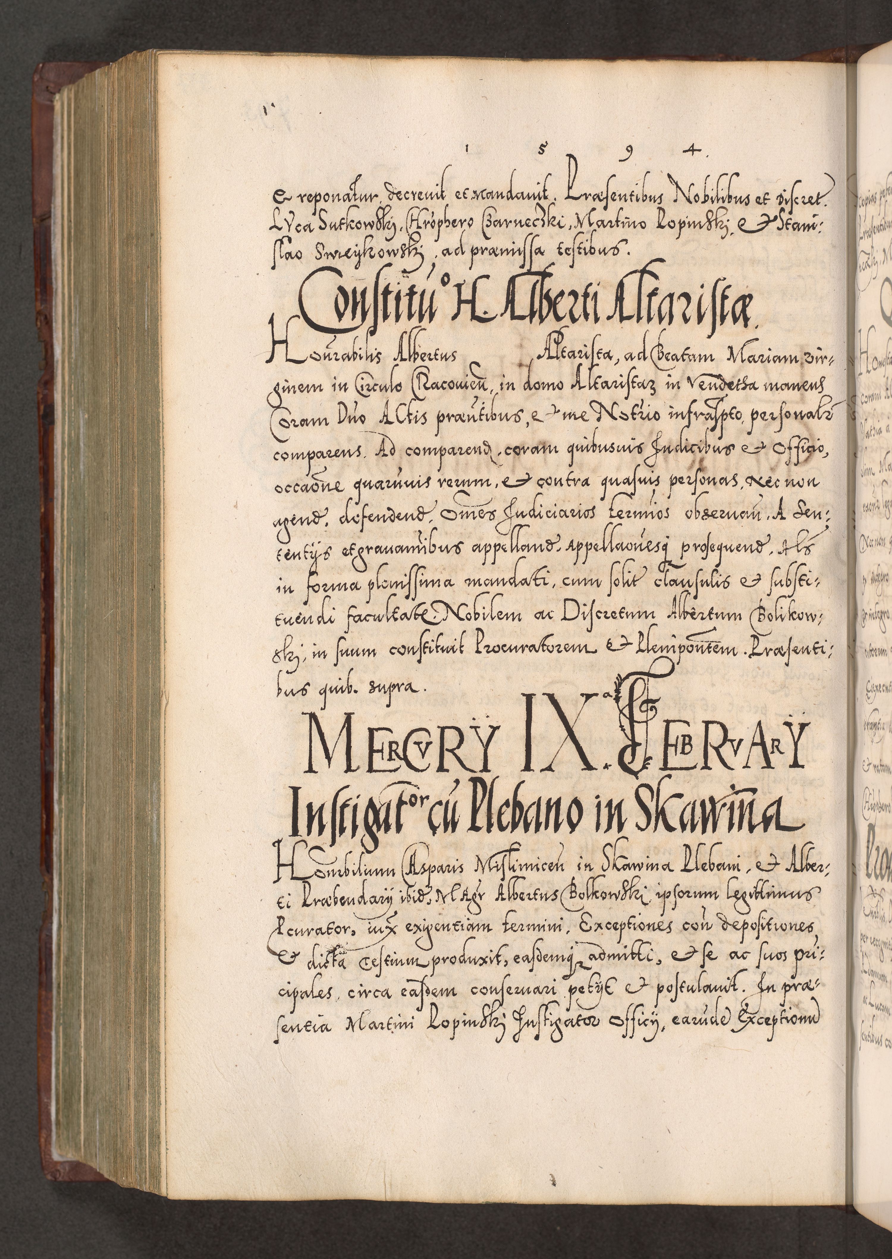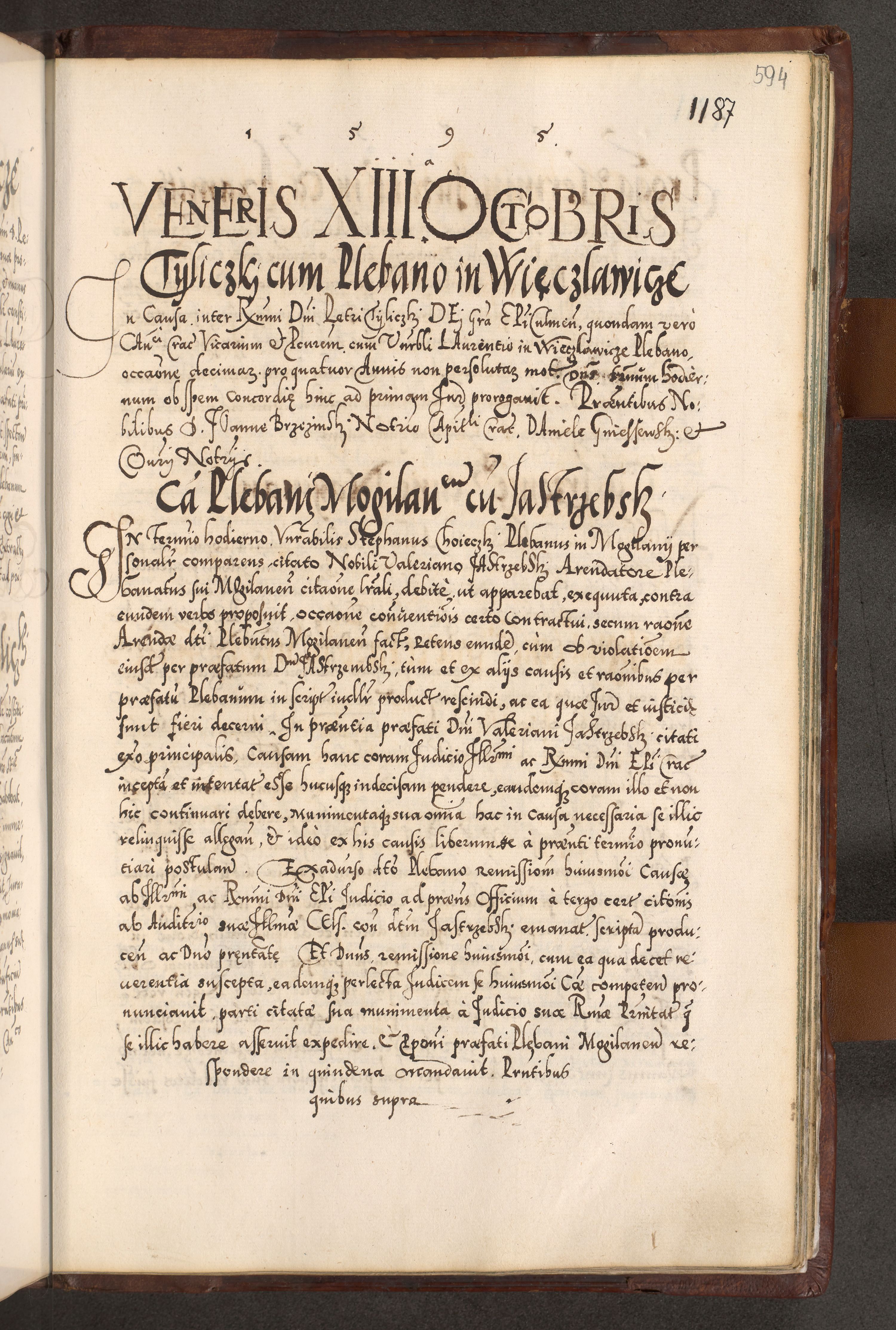 Illistrissimo et revedissimo in Christo Patre Domino Domino Georgio Rzadziwił Miserone Divina Sacrostae R. E. Tituli S. Sixti Presbitero Cardinali Duce in Olyka et Niesswiesz ad Gubernacula Ecclessiae Cracoviensis cuius administratorialem a Sancta Sede Apostolica obtinverat feliciter sedente. Acta actorum, causarum, sententiarum tam deffinitivarum quam interloquutoriarum decretorum, obligationum, quietationum, recognitionum, constitutionum procuratorum etc. coram Reverendo Domino Stanislao Crassinskz de Crasne Archidiacono Cracoviensis, Scholastico Gnesnesis, Custode Plocensis etc. Vicario et Officiali Generali Cracoviensi in Ano Domini Millesimo Quingentesimo Nonagesimo Primo cuius indictio quarta pontificatus SS. Domini Nostri Gregorii XIIII Anno I psius prio feliciter incipiut