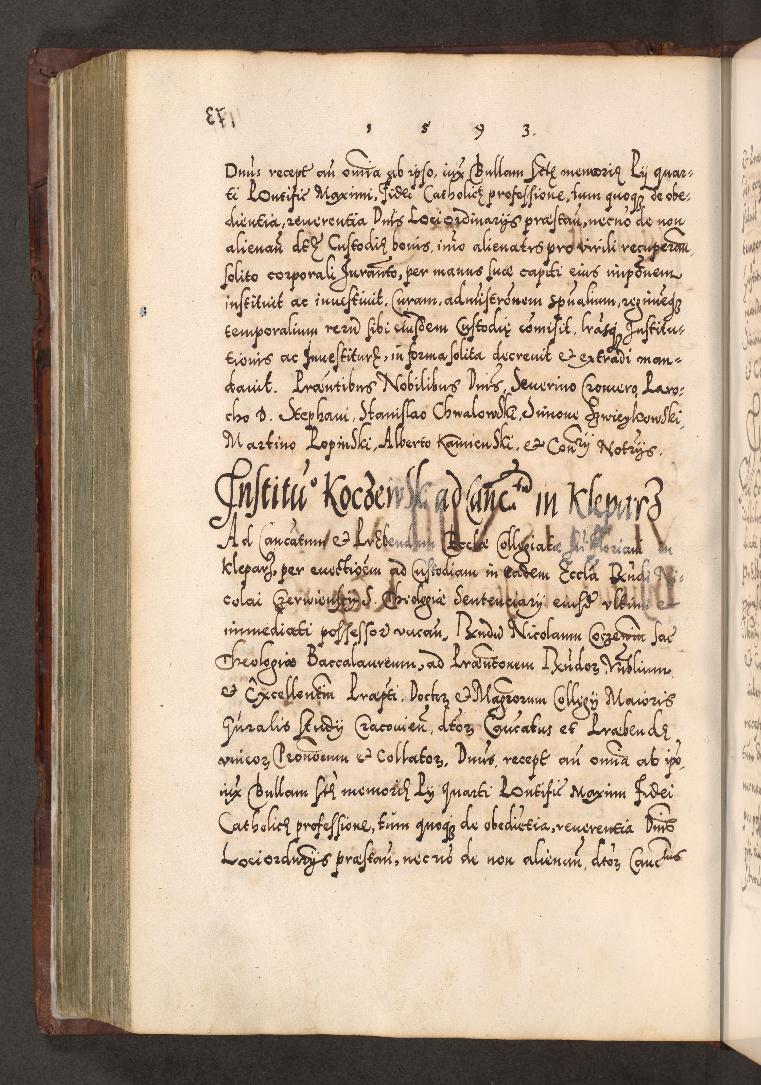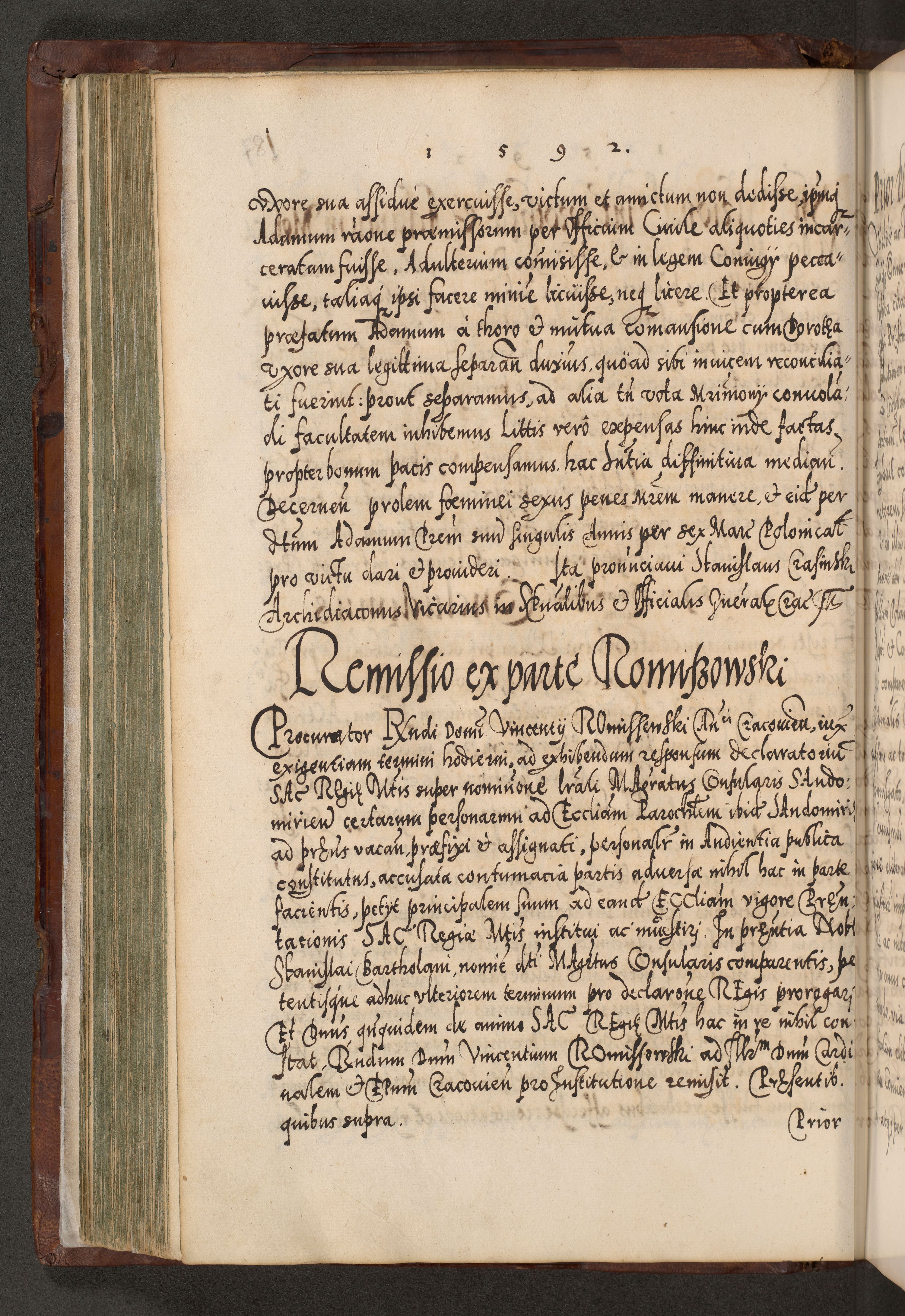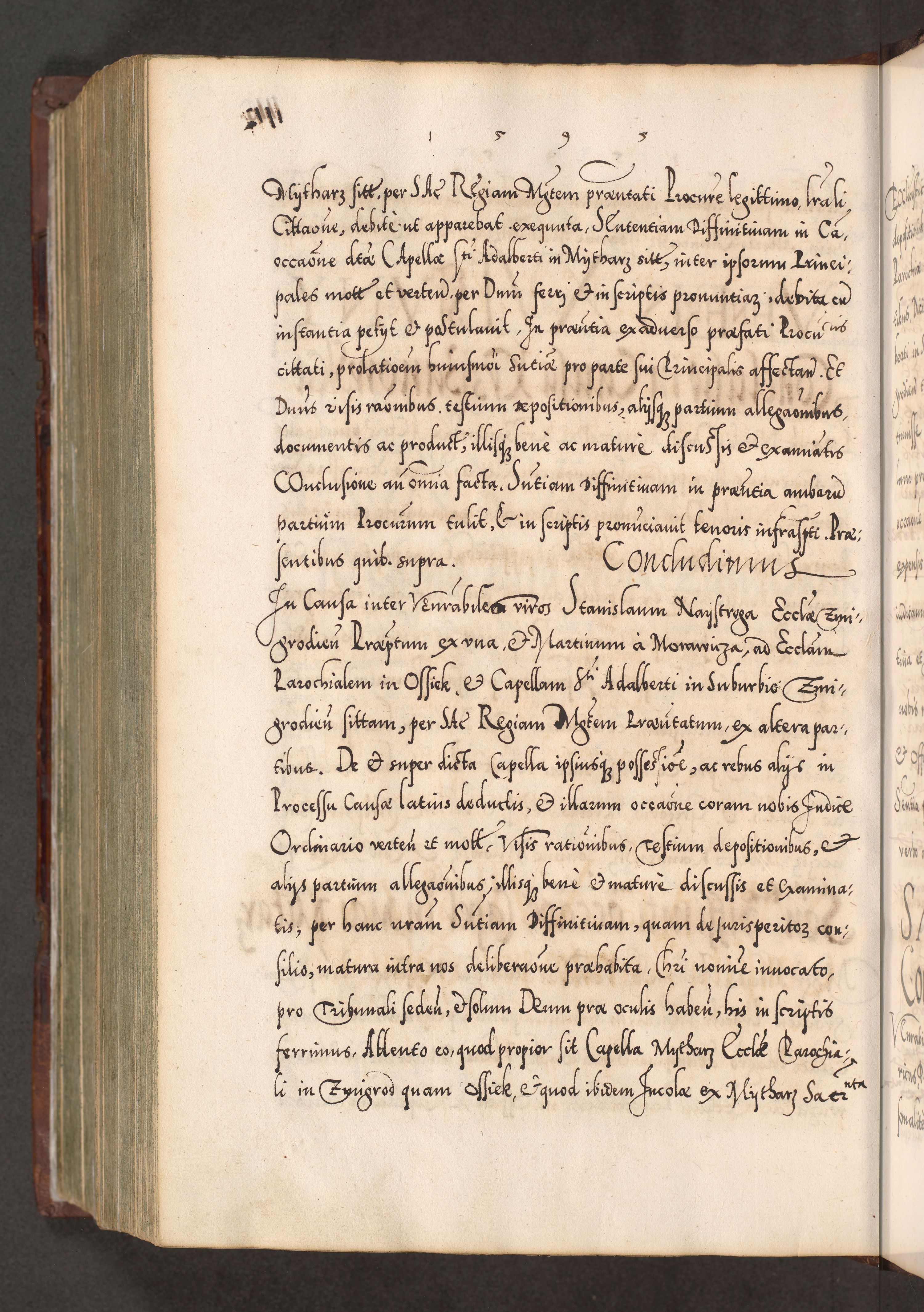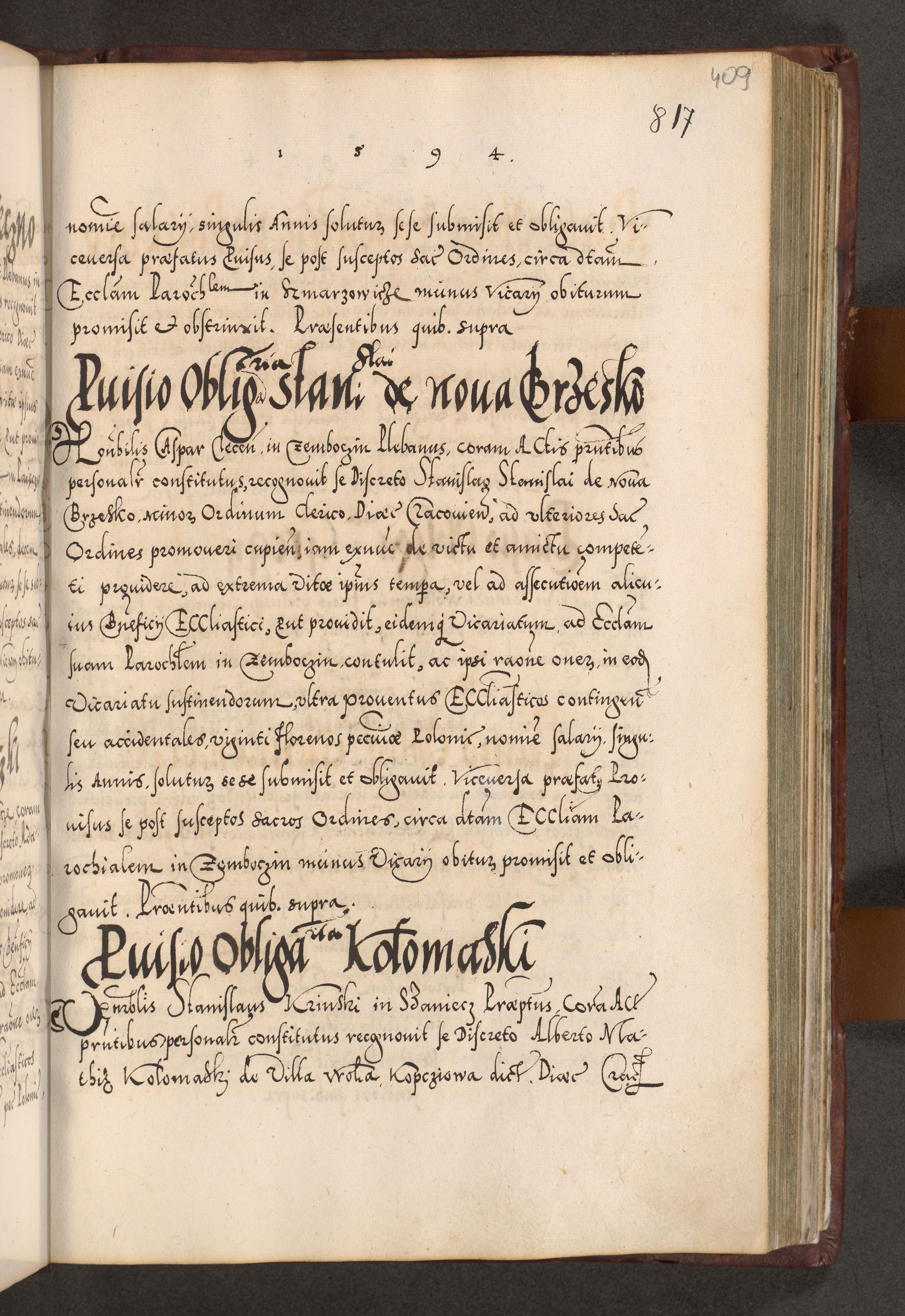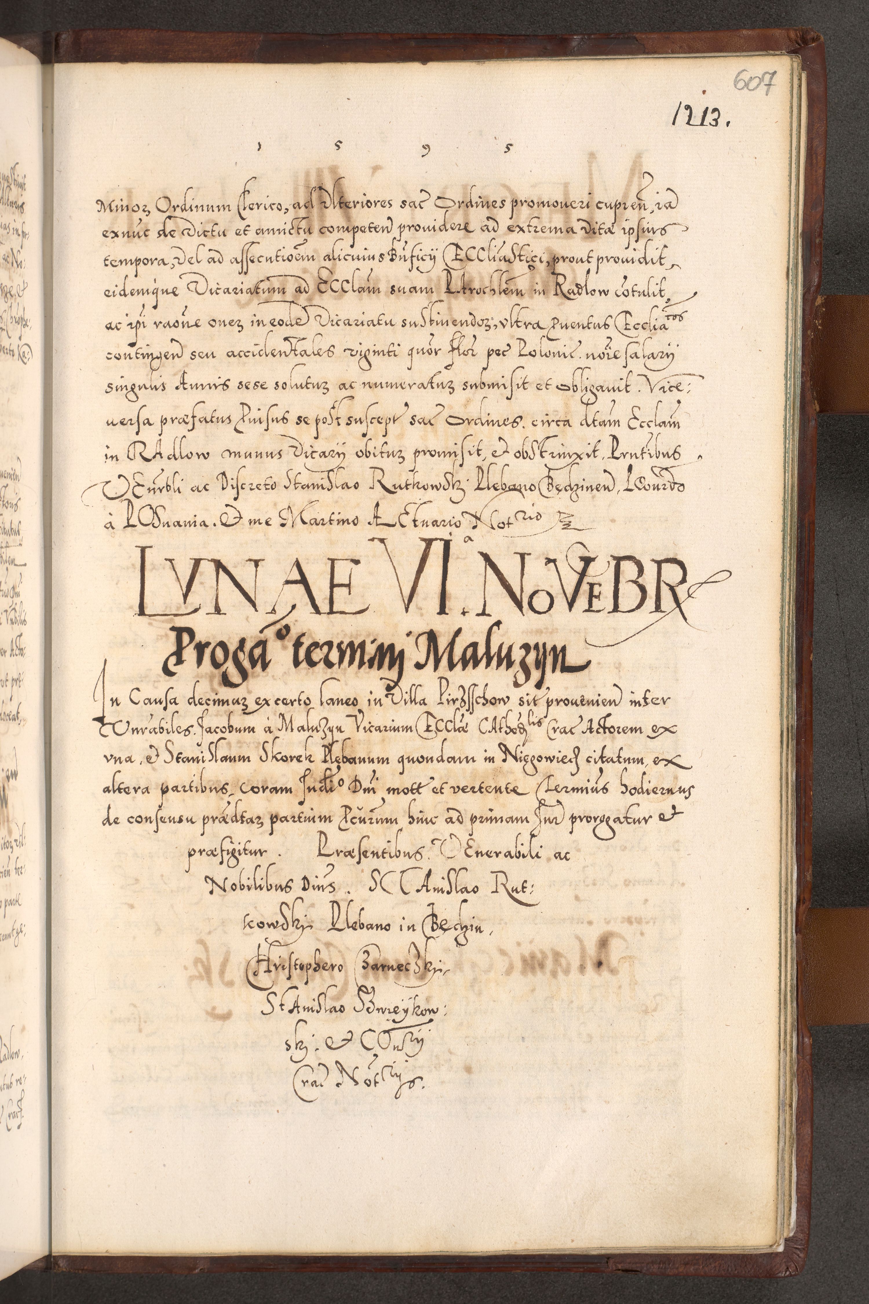 Illistrissimo et revedissimo in Christo Patre Domino Domino Georgio Rzadziwił Miserone Divina Sacrostae R. E. Tituli S. Sixti Presbitero Cardinali Duce in Olyka et Niesswiesz ad Gubernacula Ecclessiae Cracoviensis cuius administratorialem a Sancta Sede Apostolica obtinverat feliciter sedente. Acta actorum, causarum, sententiarum tam deffinitivarum quam interloquutoriarum decretorum, obligationum, quietationum, recognitionum, constitutionum procuratorum etc. coram Reverendo Domino Stanislao Crassinskz de Crasne Archidiacono Cracoviensis, Scholastico Gnesnesis, Custode Plocensis etc. Vicario et Officiali Generali Cracoviensi in Ano Domini Millesimo Quingentesimo Nonagesimo Primo cuius indictio quarta pontificatus SS. Domini Nostri Gregorii XIIII Anno I psius prio feliciter incipiut