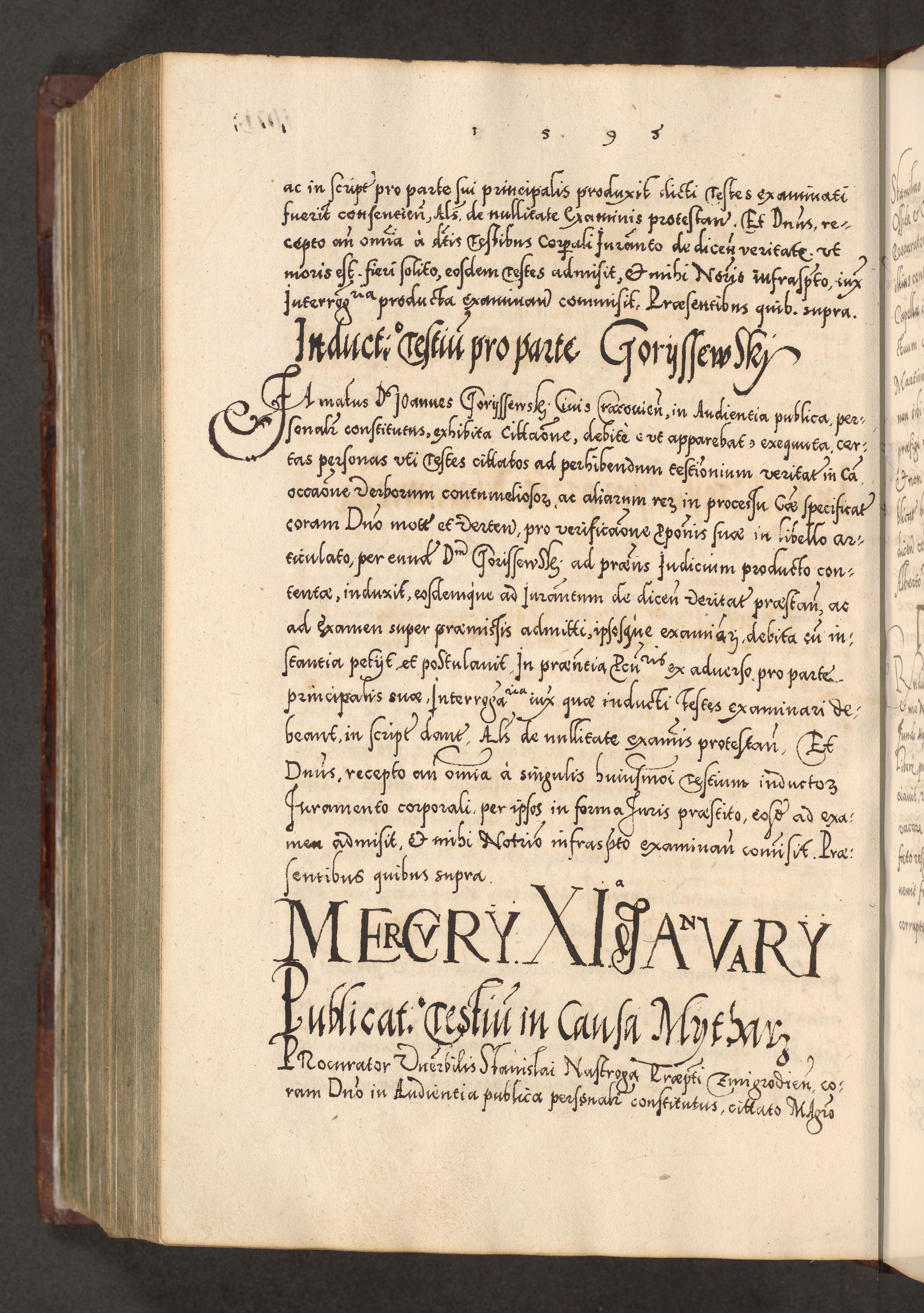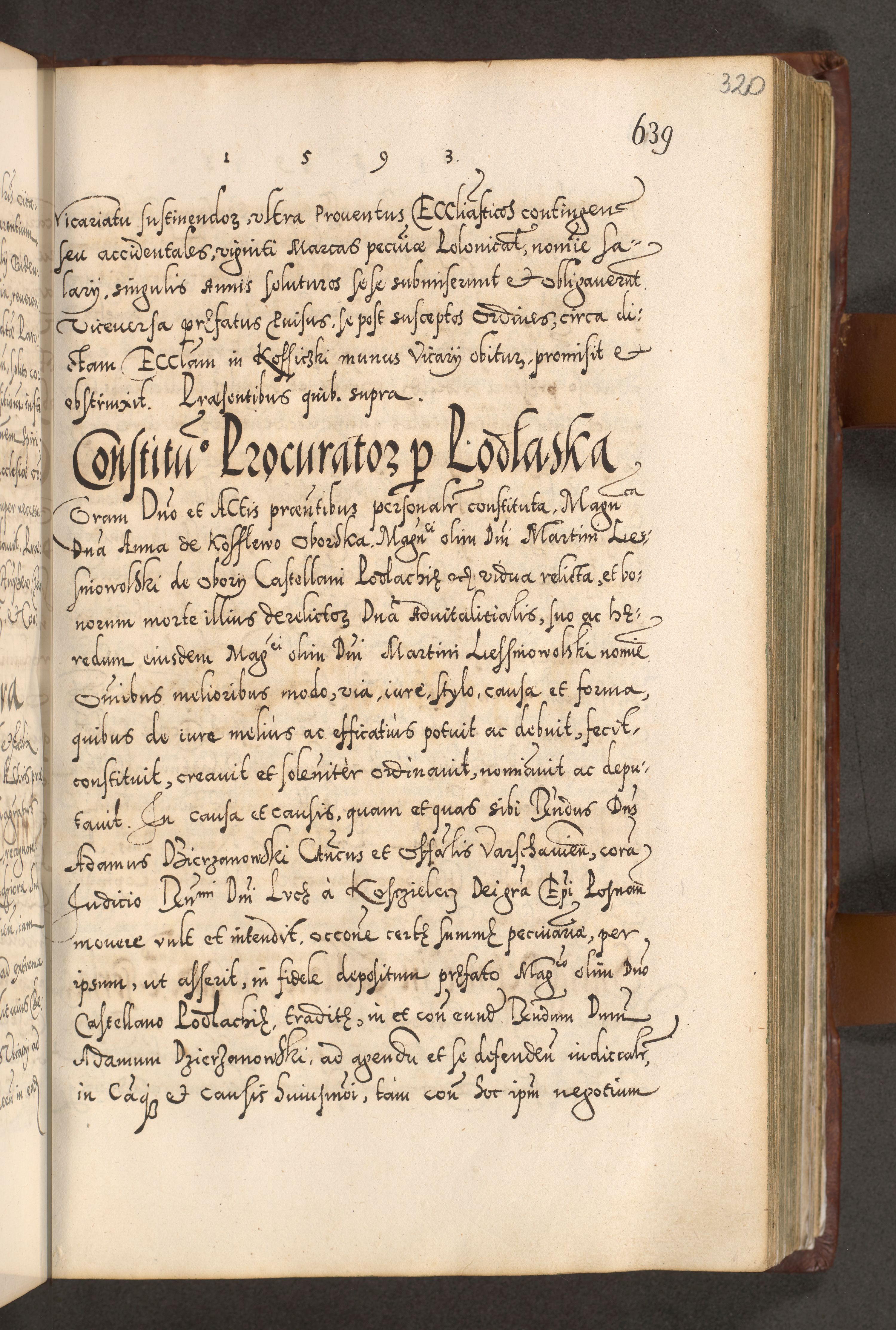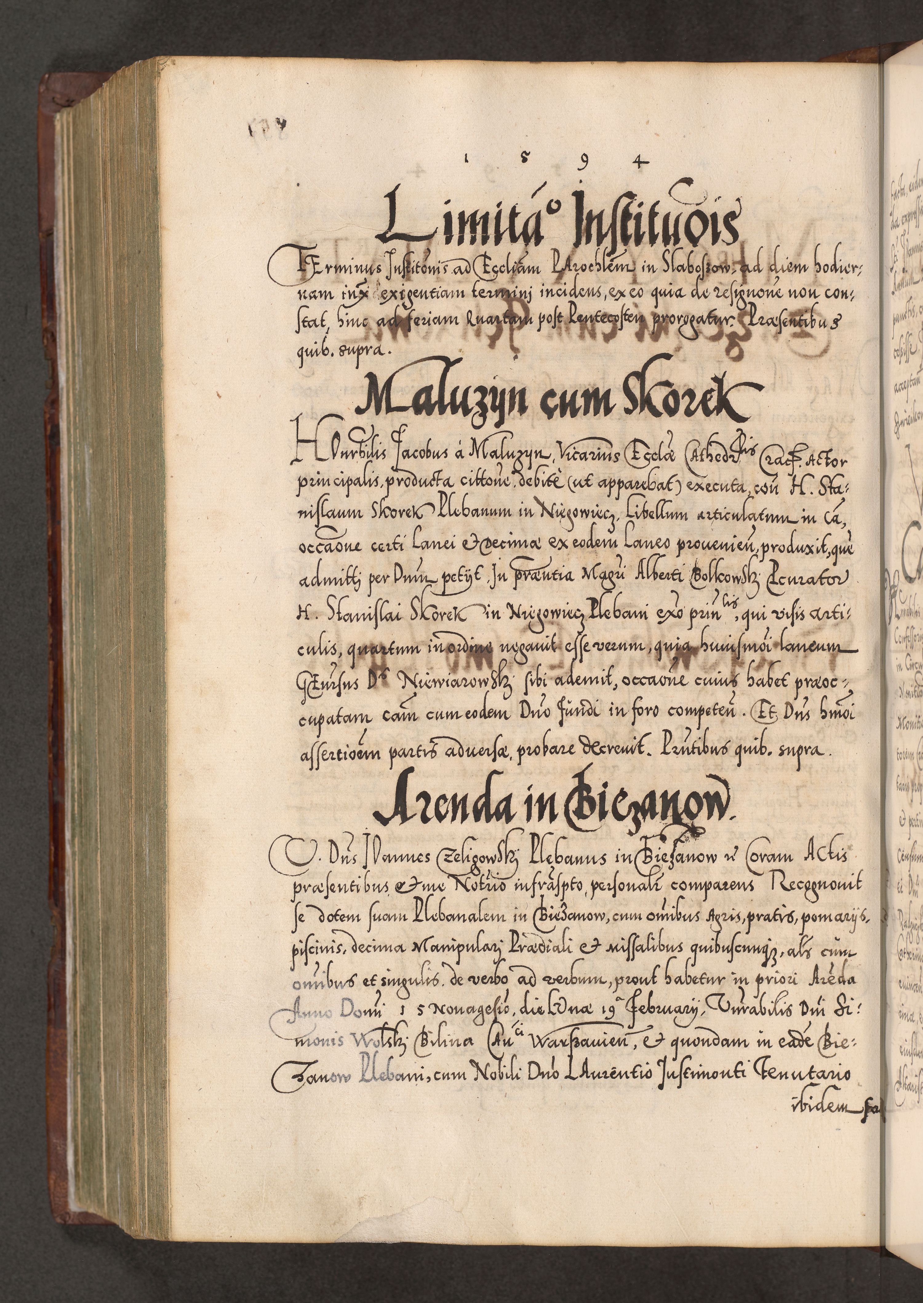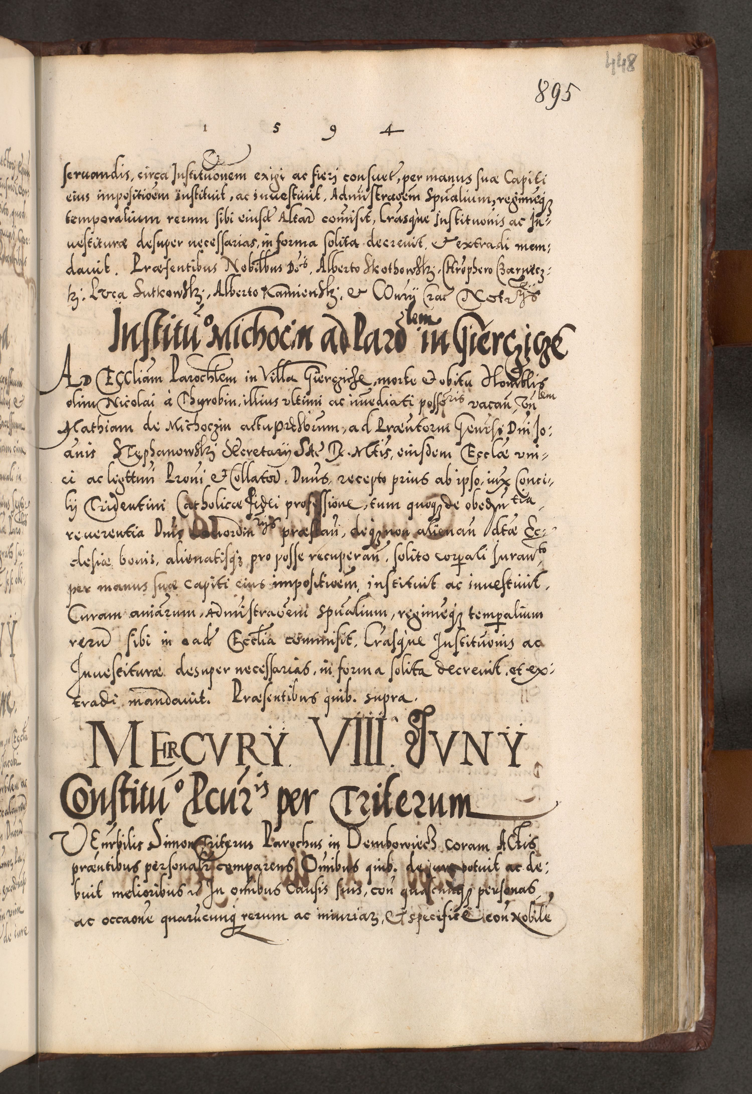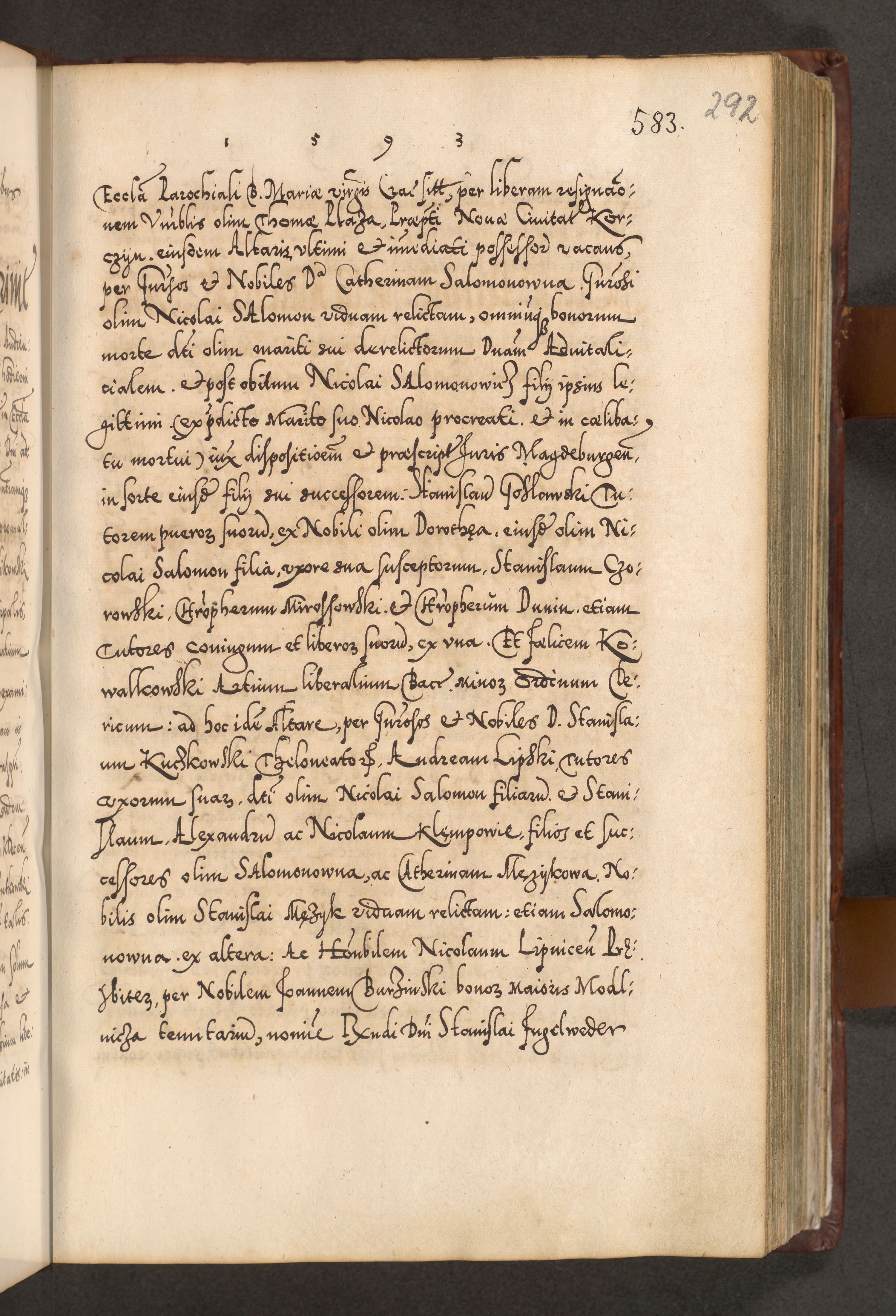 Illistrissimo et revedissimo in Christo Patre Domino Domino Georgio Rzadziwił Miserone Divina Sacrostae R. E. Tituli S. Sixti Presbitero Cardinali Duce in Olyka et Niesswiesz ad Gubernacula Ecclessiae Cracoviensis cuius administratorialem a Sancta Sede Apostolica obtinverat feliciter sedente. Acta actorum, causarum, sententiarum tam deffinitivarum quam interloquutoriarum decretorum, obligationum, quietationum, recognitionum, constitutionum procuratorum etc. coram Reverendo Domino Stanislao Crassinskz de Crasne Archidiacono Cracoviensis, Scholastico Gnesnesis, Custode Plocensis etc. Vicario et Officiali Generali Cracoviensi in Ano Domini Millesimo Quingentesimo Nonagesimo Primo cuius indictio quarta pontificatus SS. Domini Nostri Gregorii XIIII Anno I psius prio feliciter incipiut