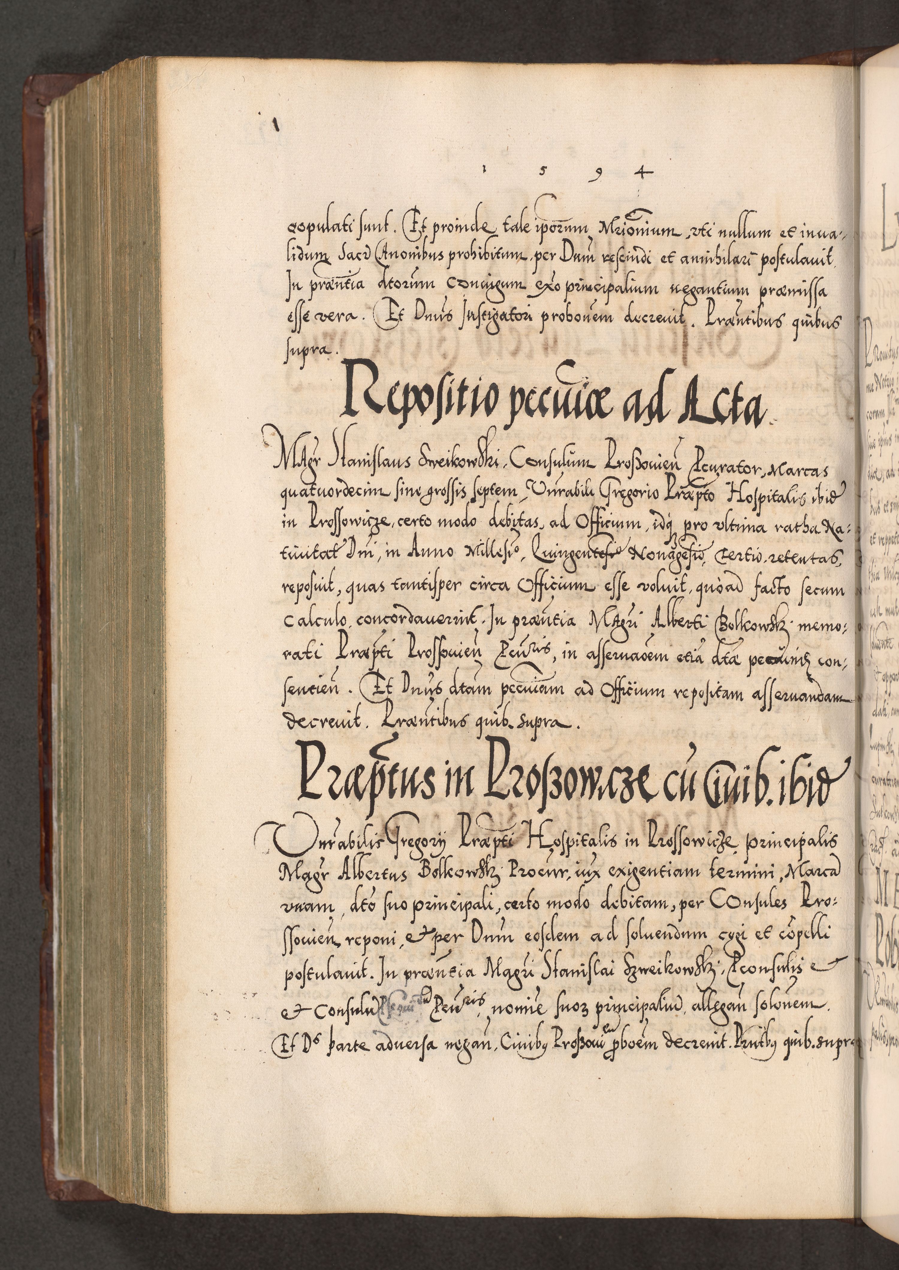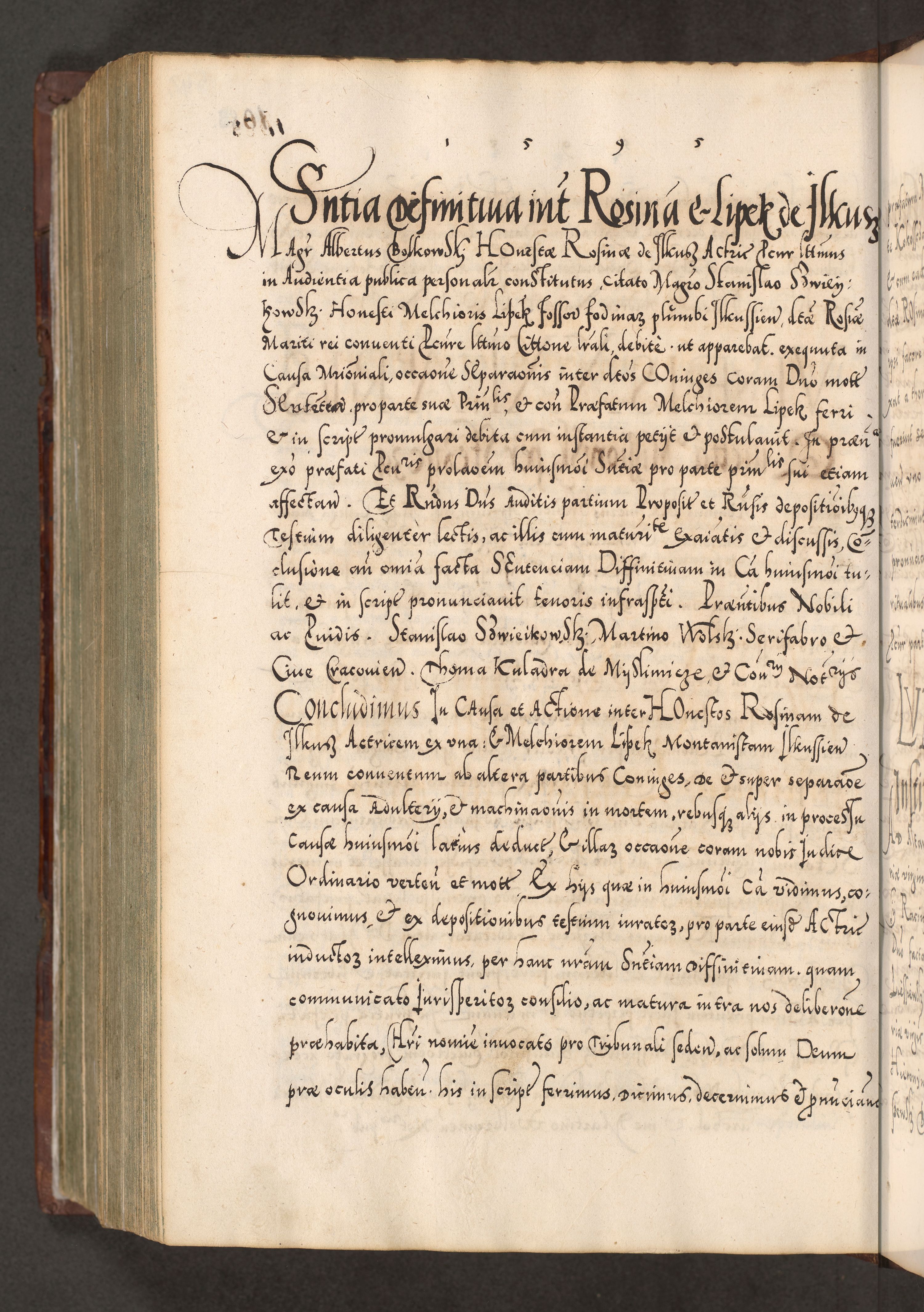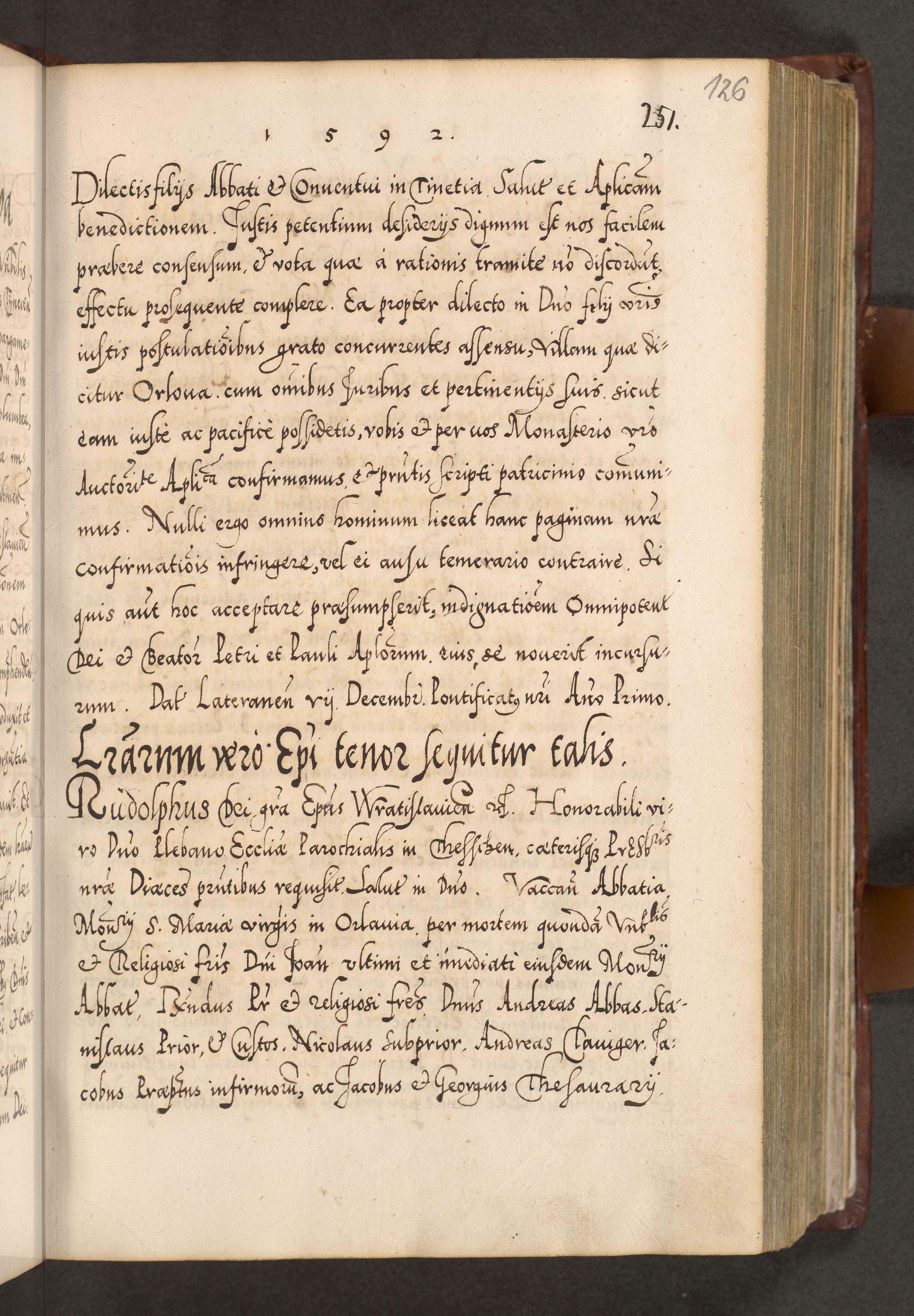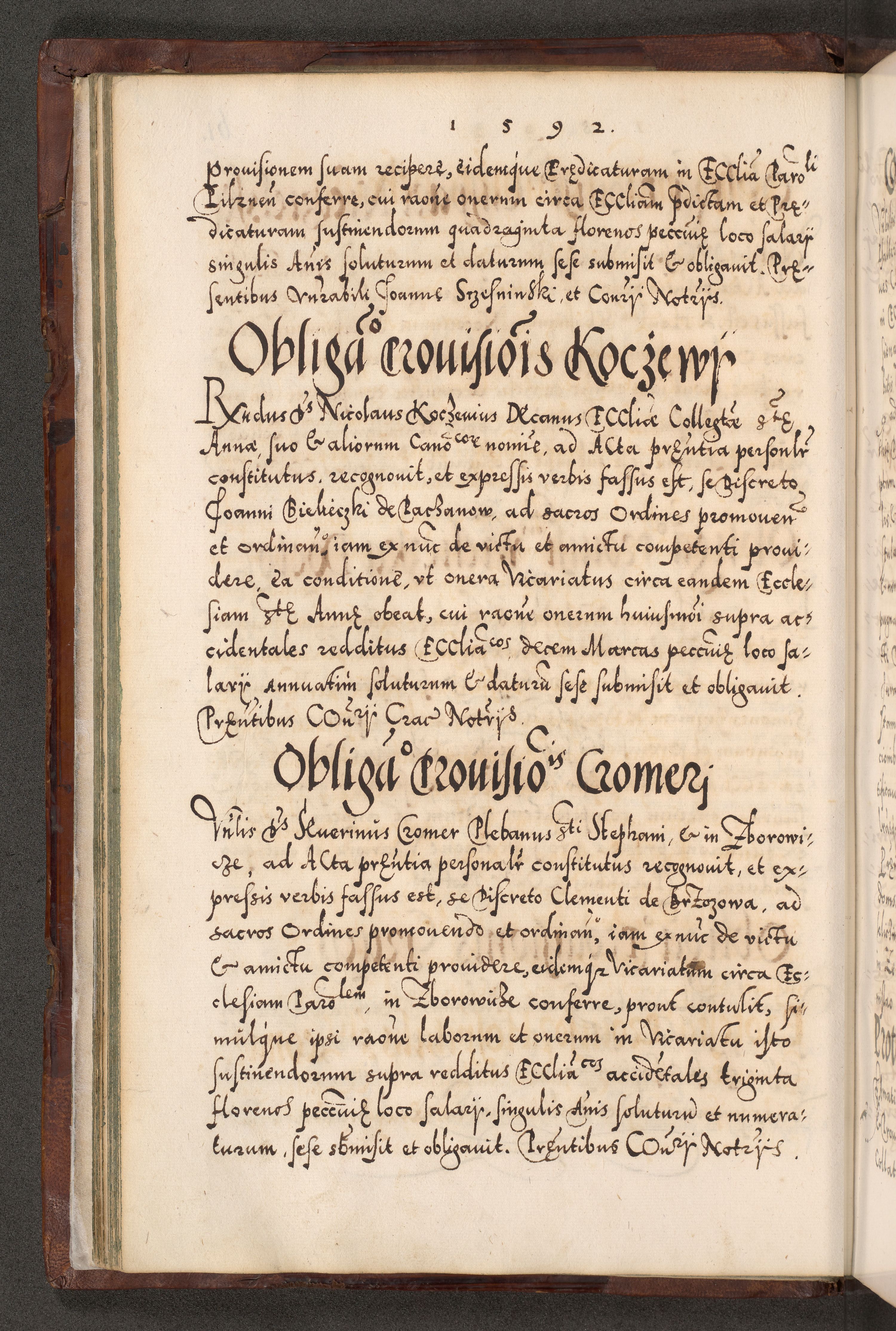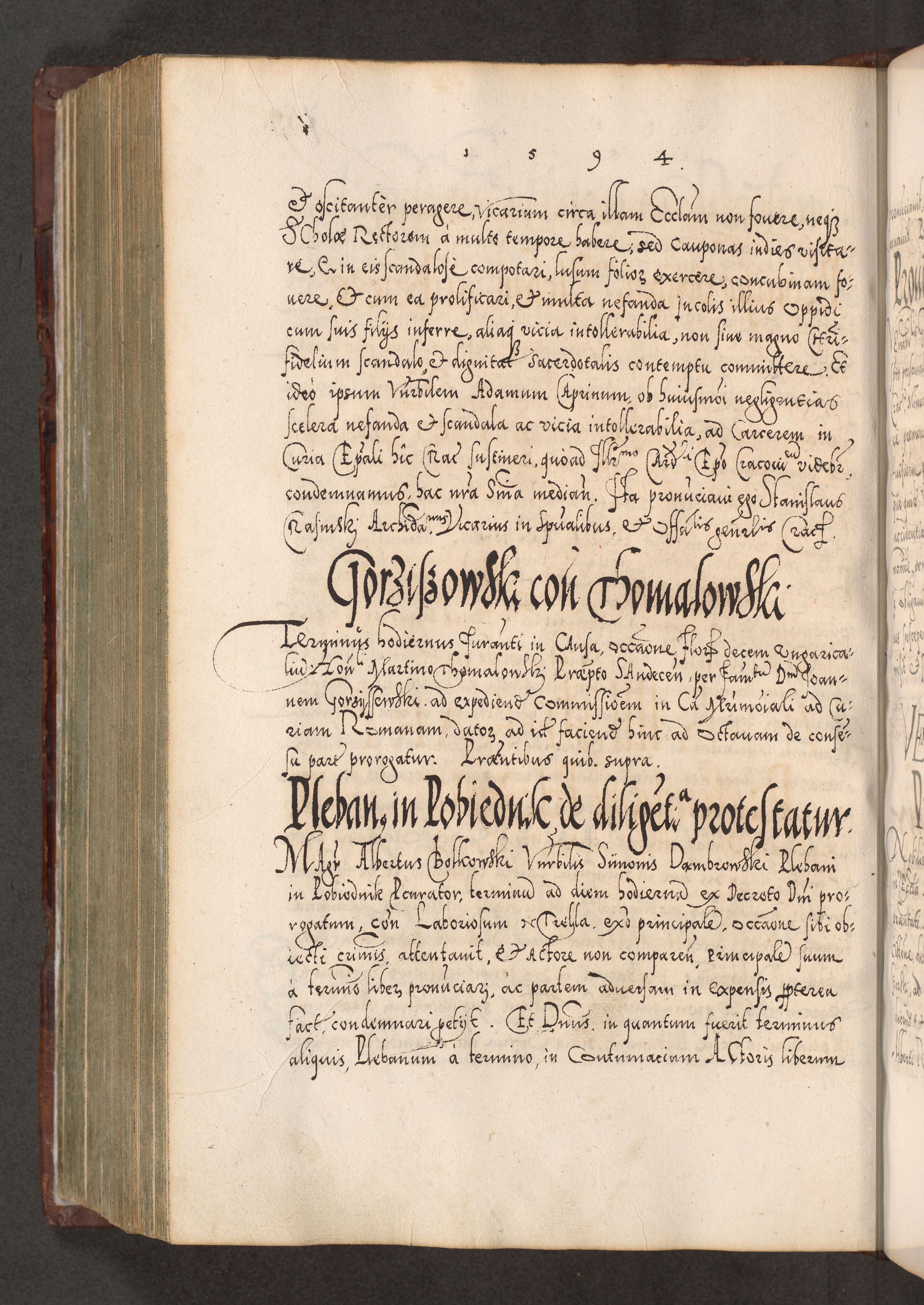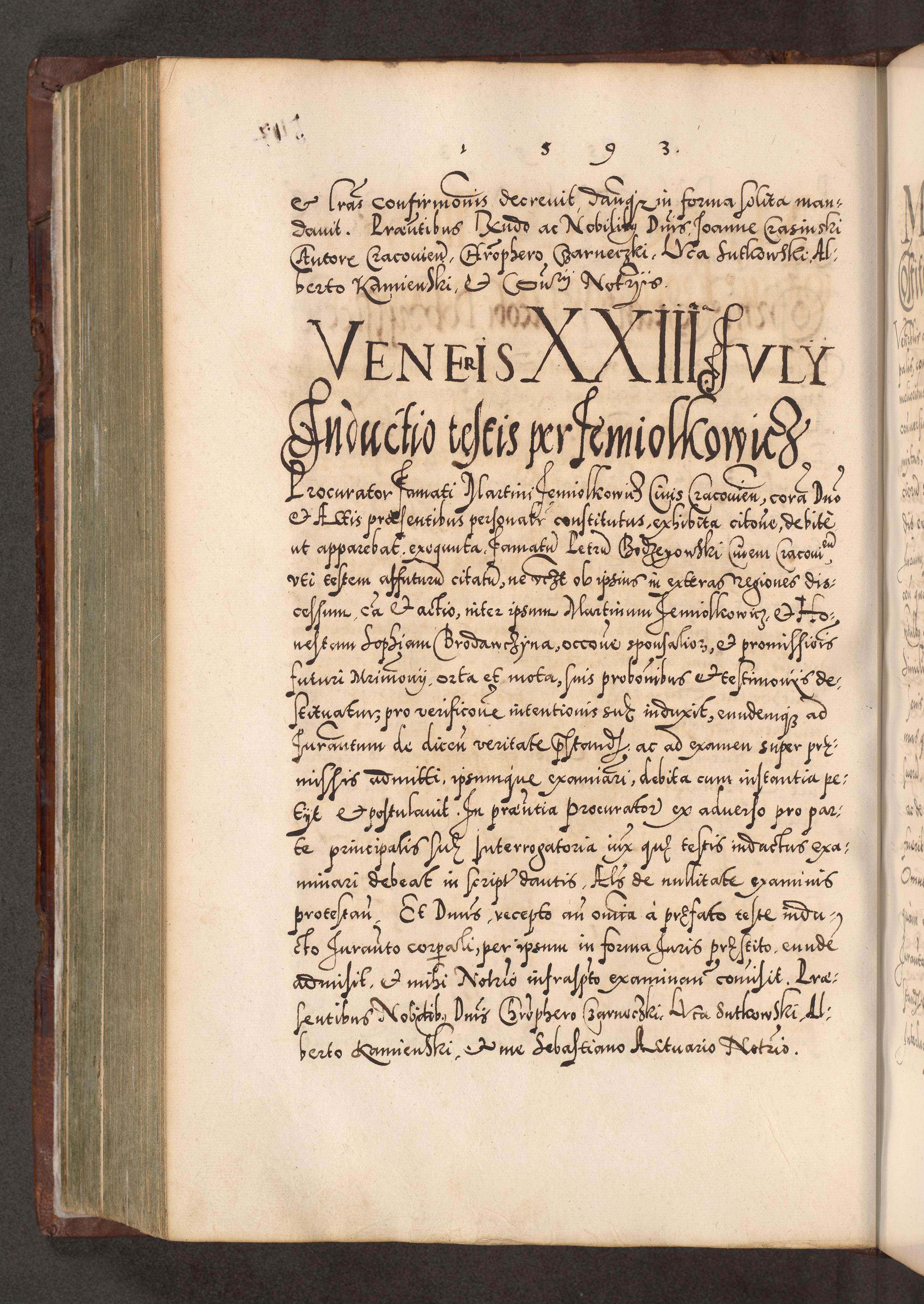 Illistrissimo et revedissimo in Christo Patre Domino Domino Georgio Rzadziwił Miserone Divina Sacrostae R. E. Tituli S. Sixti Presbitero Cardinali Duce in Olyka et Niesswiesz ad Gubernacula Ecclessiae Cracoviensis cuius administratorialem a Sancta Sede Apostolica obtinverat feliciter sedente. Acta actorum, causarum, sententiarum tam deffinitivarum quam interloquutoriarum decretorum, obligationum, quietationum, recognitionum, constitutionum procuratorum etc. coram Reverendo Domino Stanislao Crassinskz de Crasne Archidiacono Cracoviensis, Scholastico Gnesnesis, Custode Plocensis etc. Vicario et Officiali Generali Cracoviensi in Ano Domini Millesimo Quingentesimo Nonagesimo Primo cuius indictio quarta pontificatus SS. Domini Nostri Gregorii XIIII Anno I psius prio feliciter incipiut