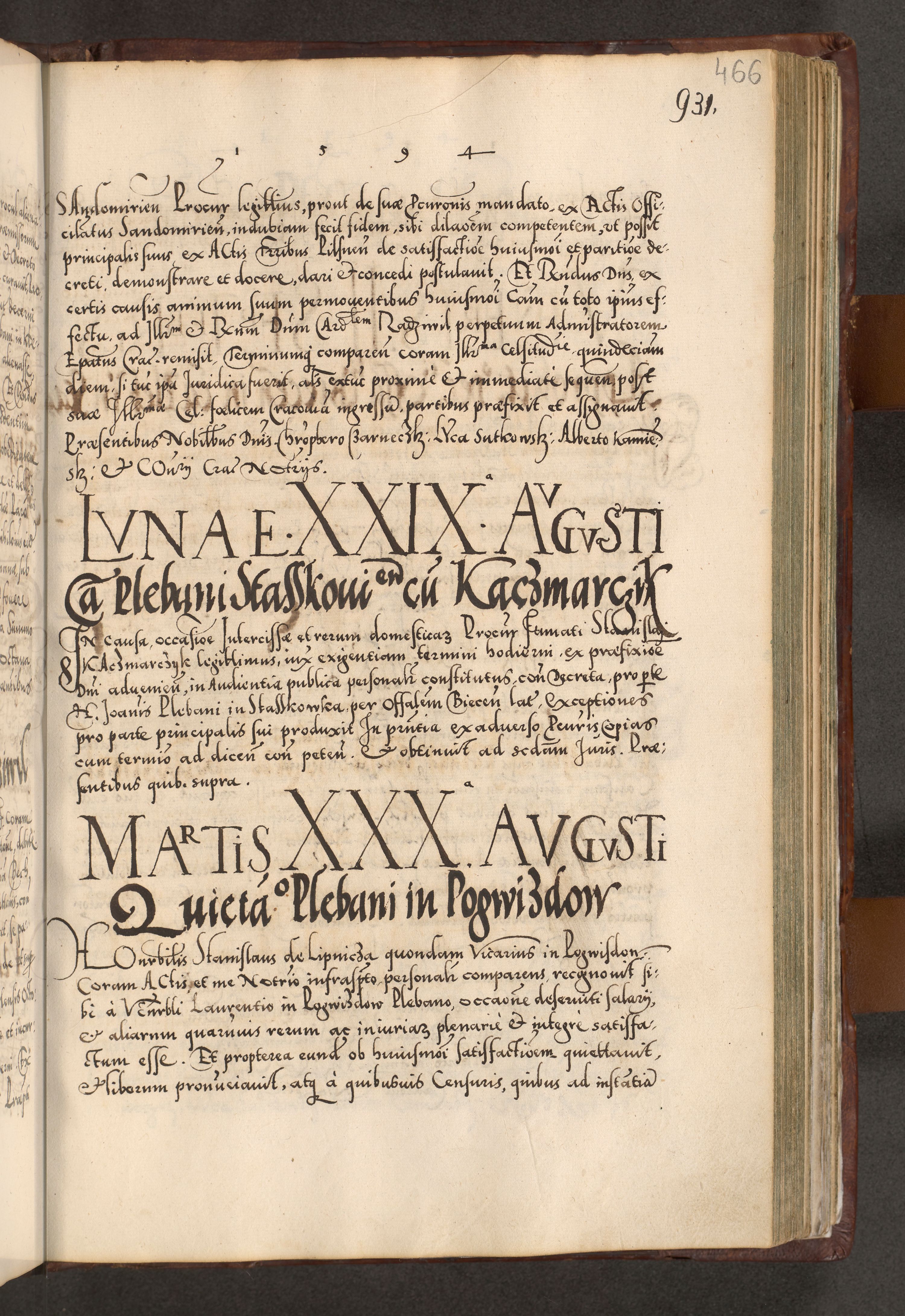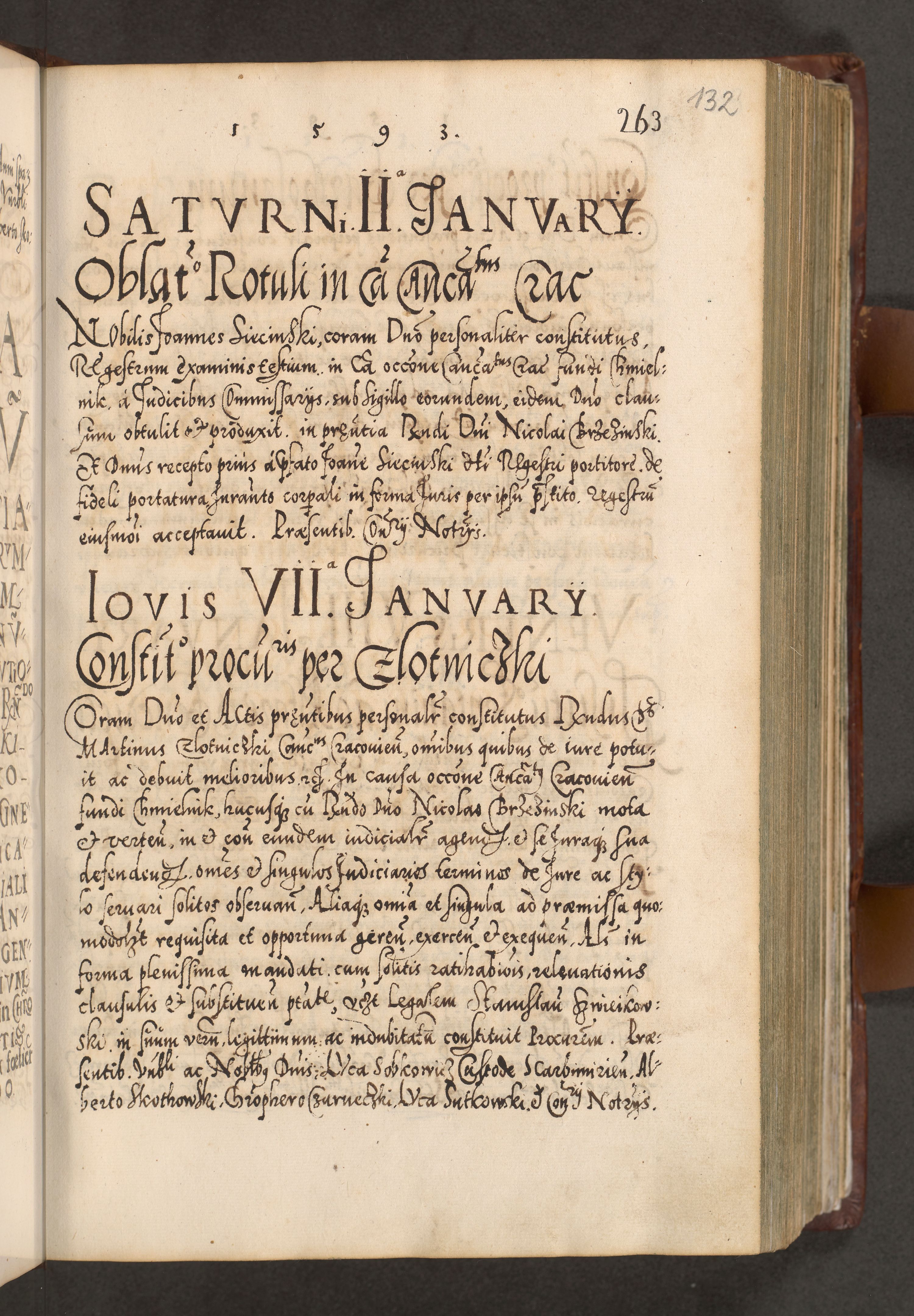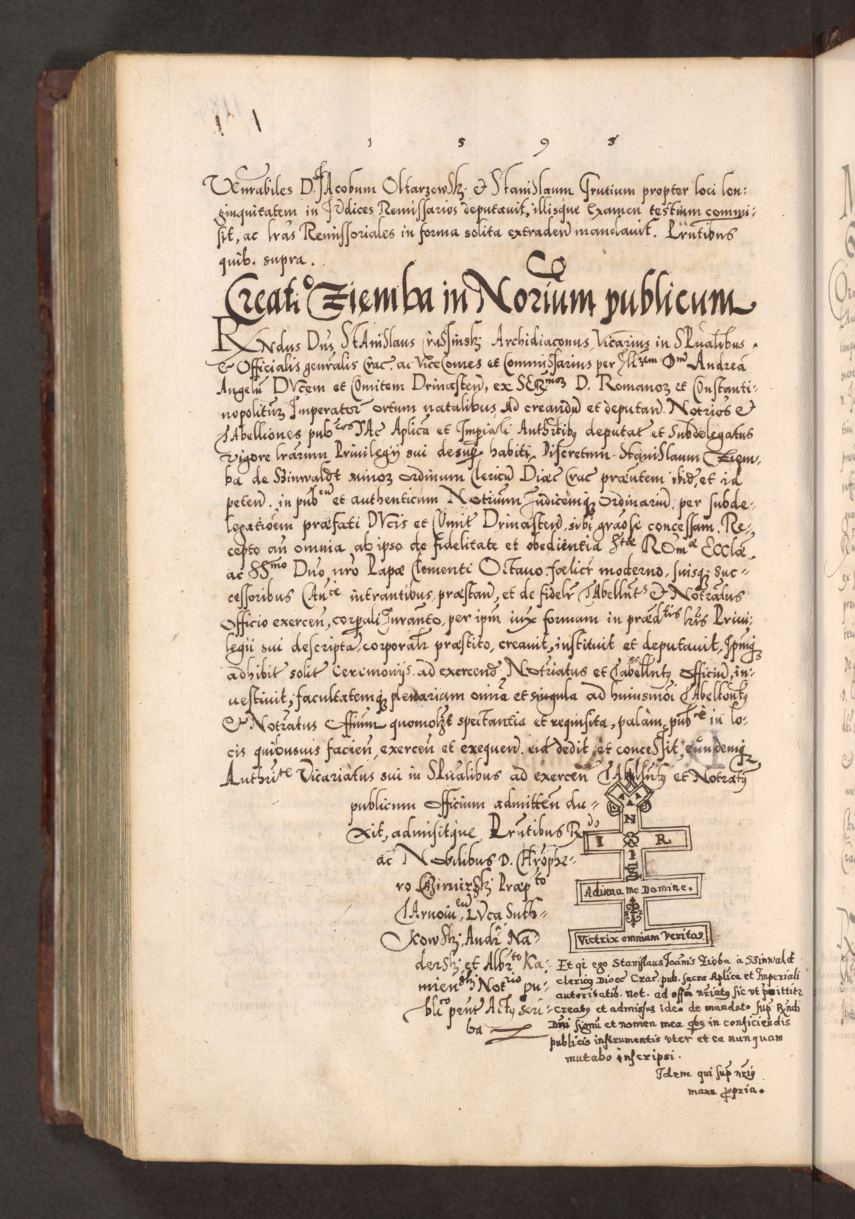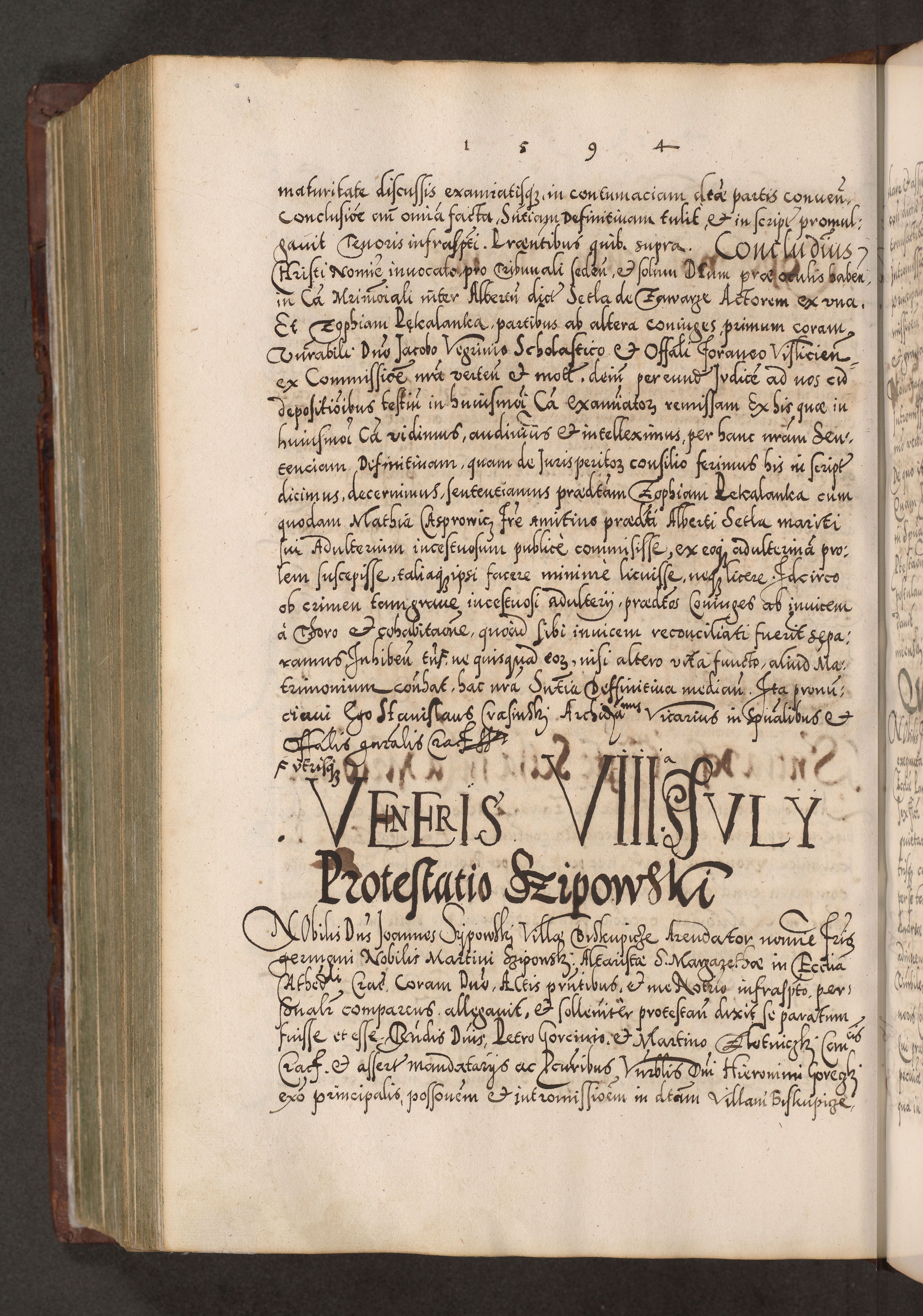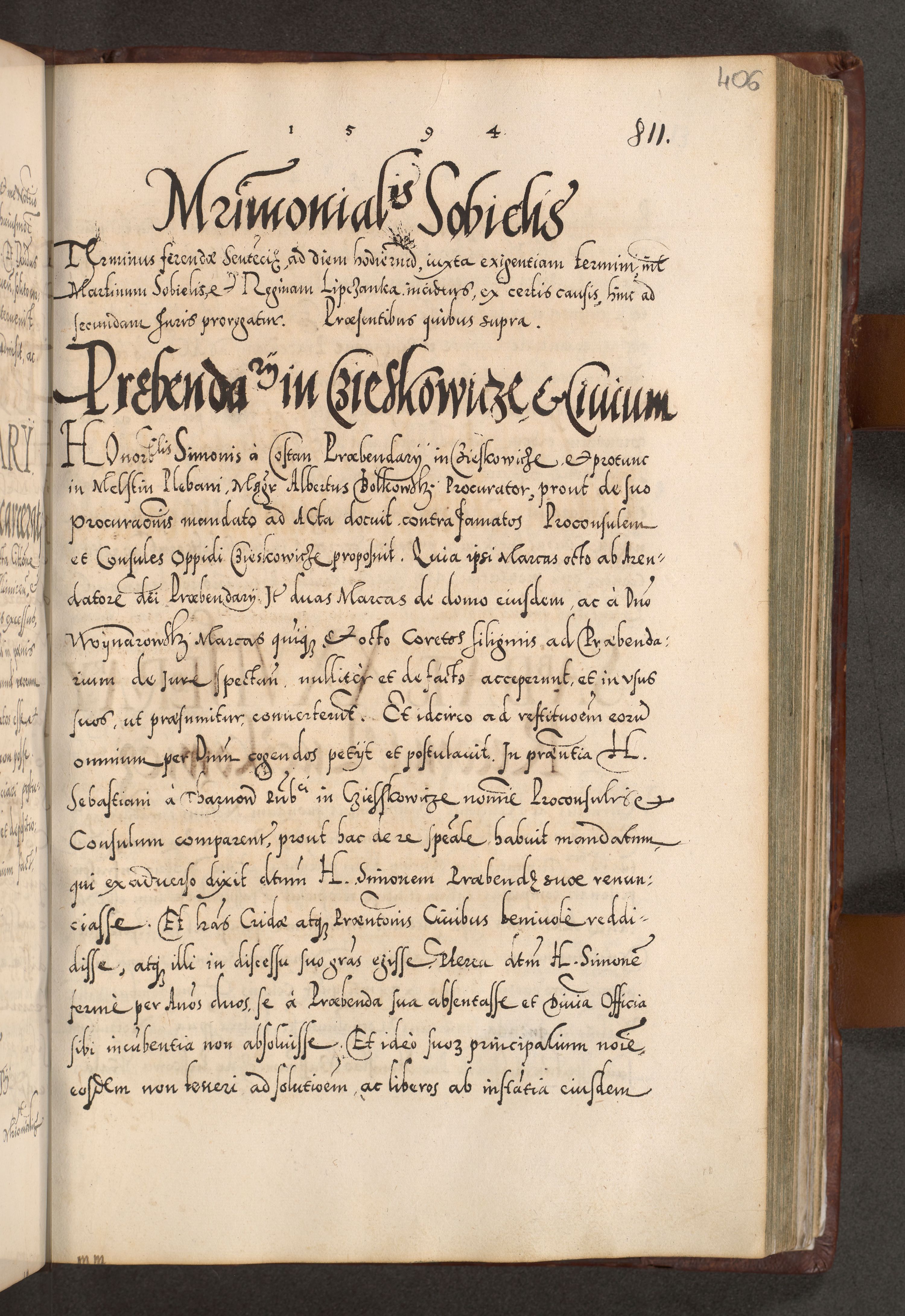 Illistrissimo et revedissimo in Christo Patre Domino Domino Georgio Rzadziwił Miserone Divina Sacrostae R. E. Tituli S. Sixti Presbitero Cardinali Duce in Olyka et Niesswiesz ad Gubernacula Ecclessiae Cracoviensis cuius administratorialem a Sancta Sede Apostolica obtinverat feliciter sedente. Acta actorum, causarum, sententiarum tam deffinitivarum quam interloquutoriarum decretorum, obligationum, quietationum, recognitionum, constitutionum procuratorum etc. coram Reverendo Domino Stanislao Crassinskz de Crasne Archidiacono Cracoviensis, Scholastico Gnesnesis, Custode Plocensis etc. Vicario et Officiali Generali Cracoviensi in Ano Domini Millesimo Quingentesimo Nonagesimo Primo cuius indictio quarta pontificatus SS. Domini Nostri Gregorii XIIII Anno I psius prio feliciter incipiut