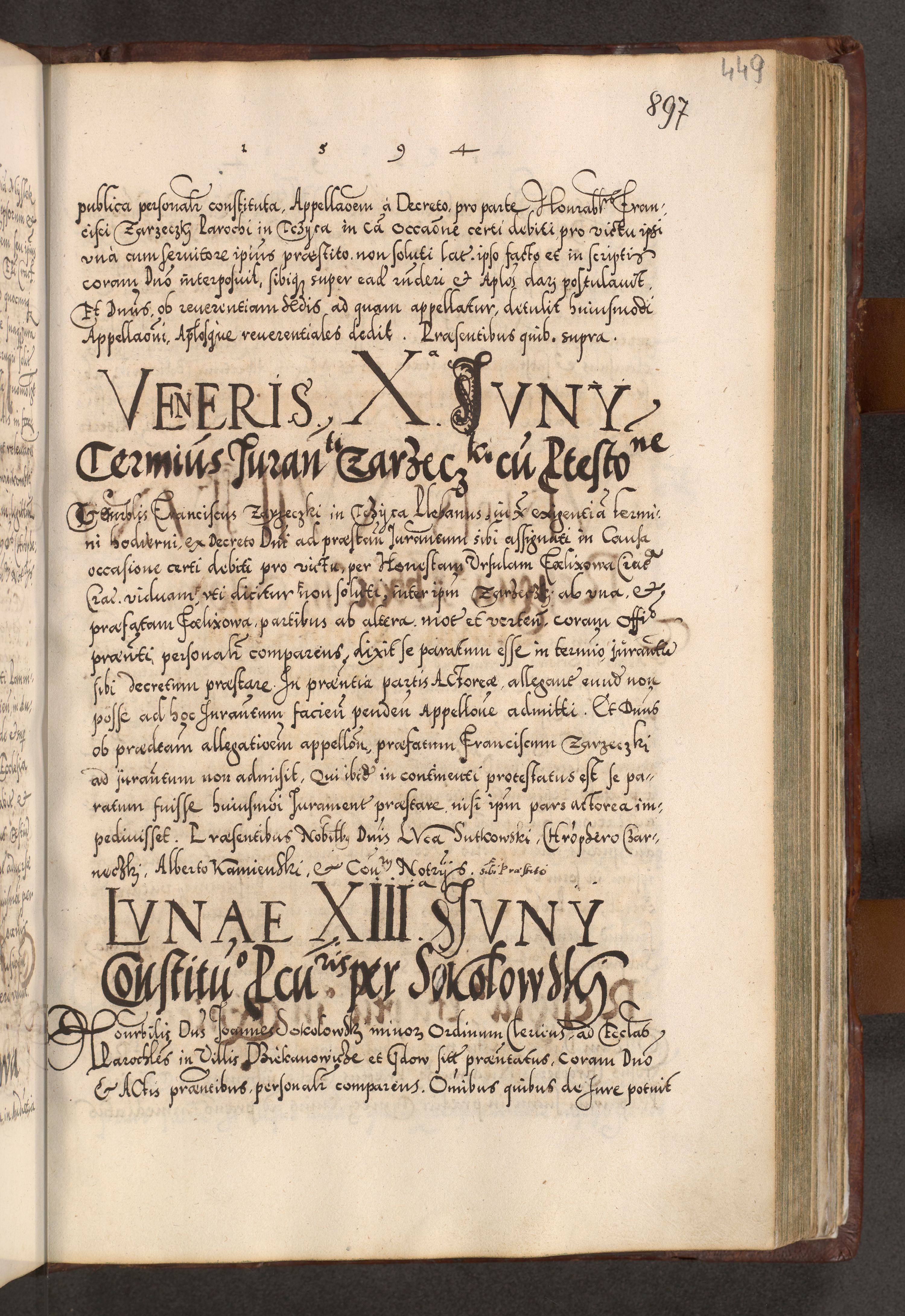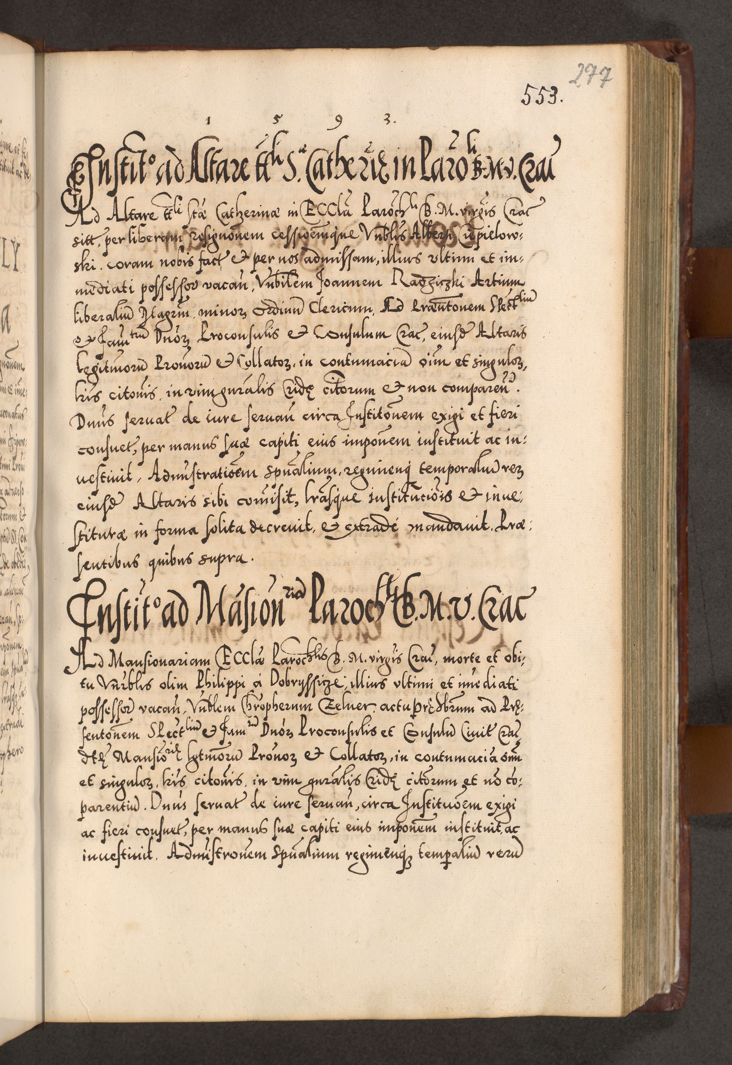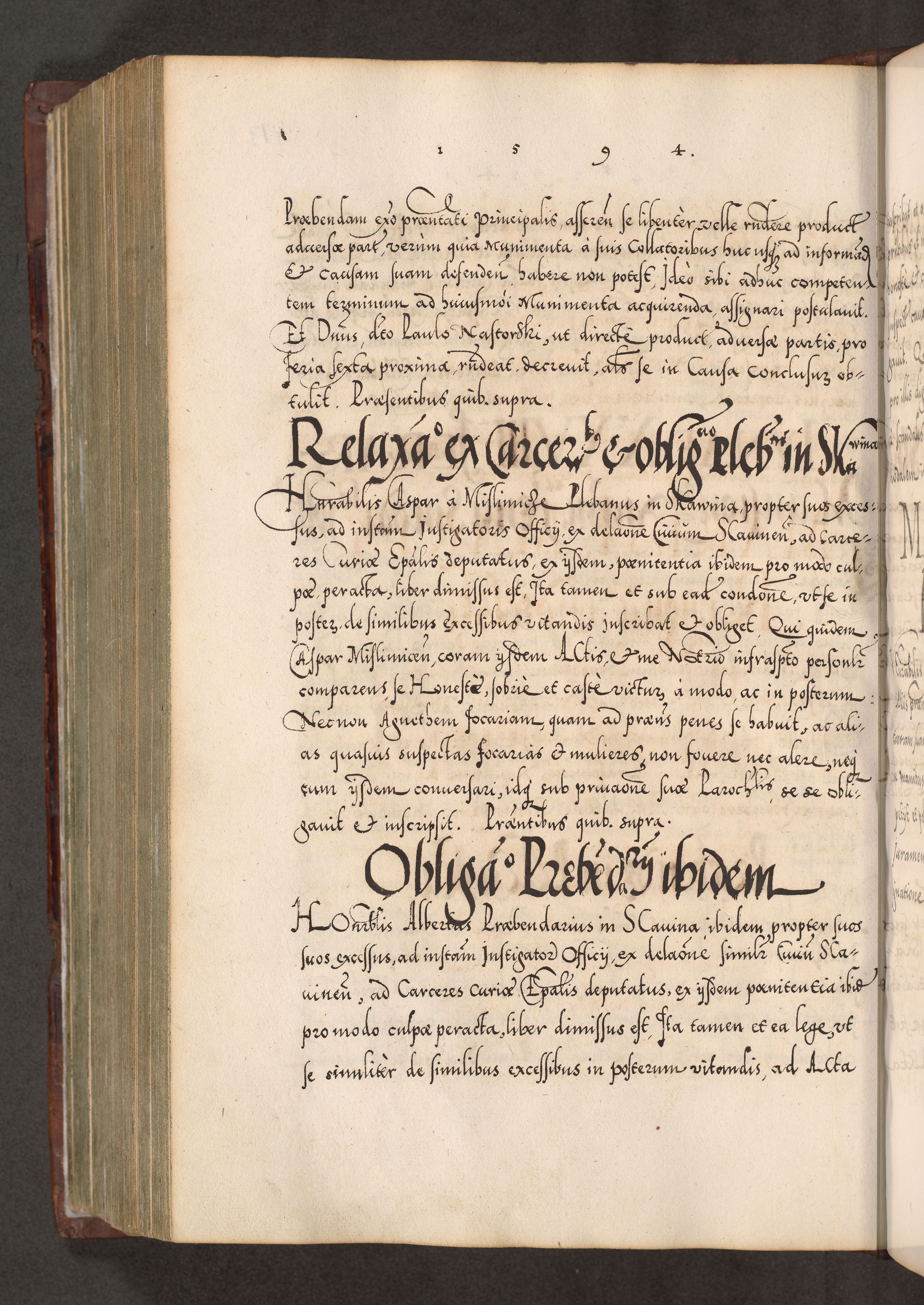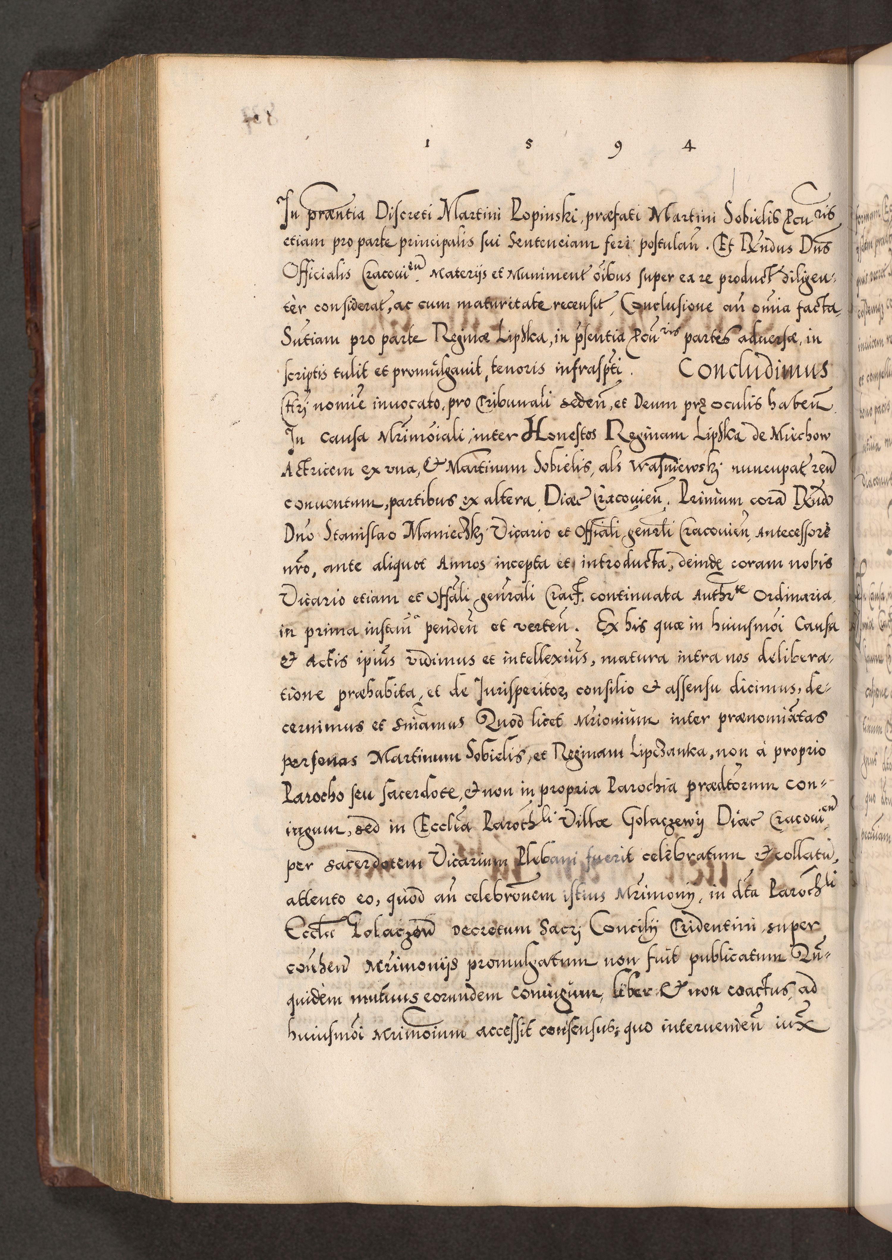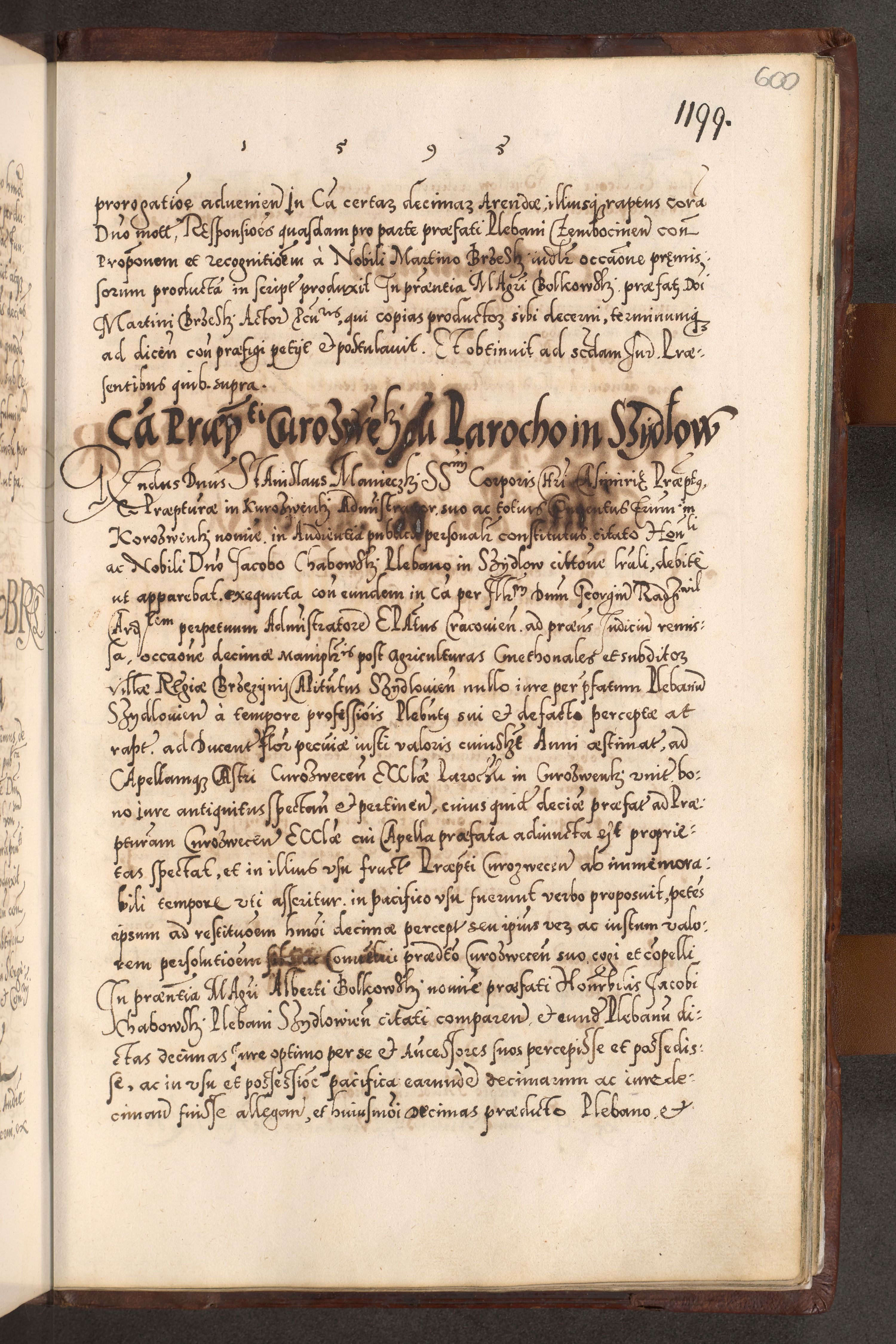 Illistrissimo et revedissimo in Christo Patre Domino Domino Georgio Rzadziwił Miserone Divina Sacrostae R. E. Tituli S. Sixti Presbitero Cardinali Duce in Olyka et Niesswiesz ad Gubernacula Ecclessiae Cracoviensis cuius administratorialem a Sancta Sede Apostolica obtinverat feliciter sedente. Acta actorum, causarum, sententiarum tam deffinitivarum quam interloquutoriarum decretorum, obligationum, quietationum, recognitionum, constitutionum procuratorum etc. coram Reverendo Domino Stanislao Crassinskz de Crasne Archidiacono Cracoviensis, Scholastico Gnesnesis, Custode Plocensis etc. Vicario et Officiali Generali Cracoviensi in Ano Domini Millesimo Quingentesimo Nonagesimo Primo cuius indictio quarta pontificatus SS. Domini Nostri Gregorii XIIII Anno I psius prio feliciter incipiut