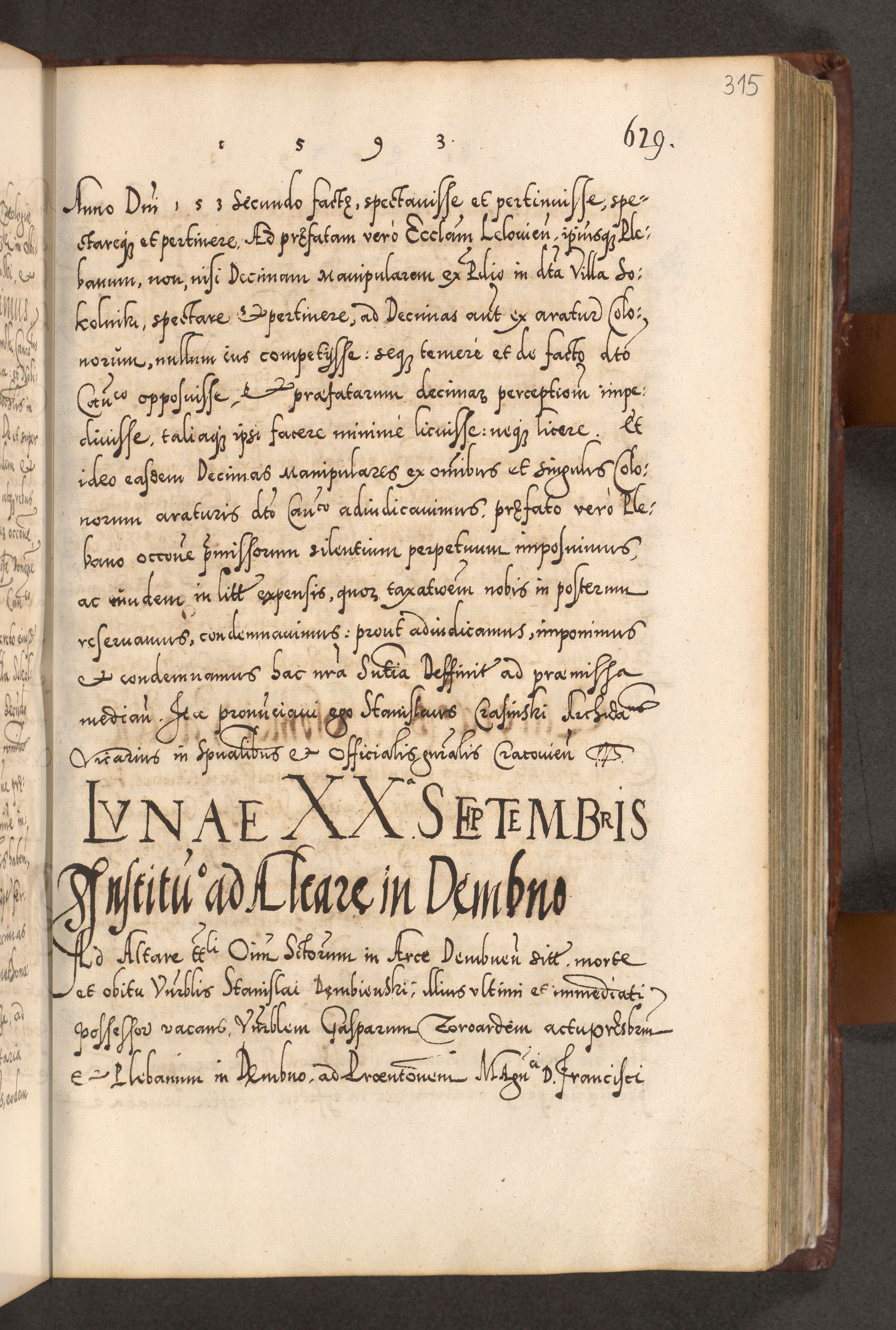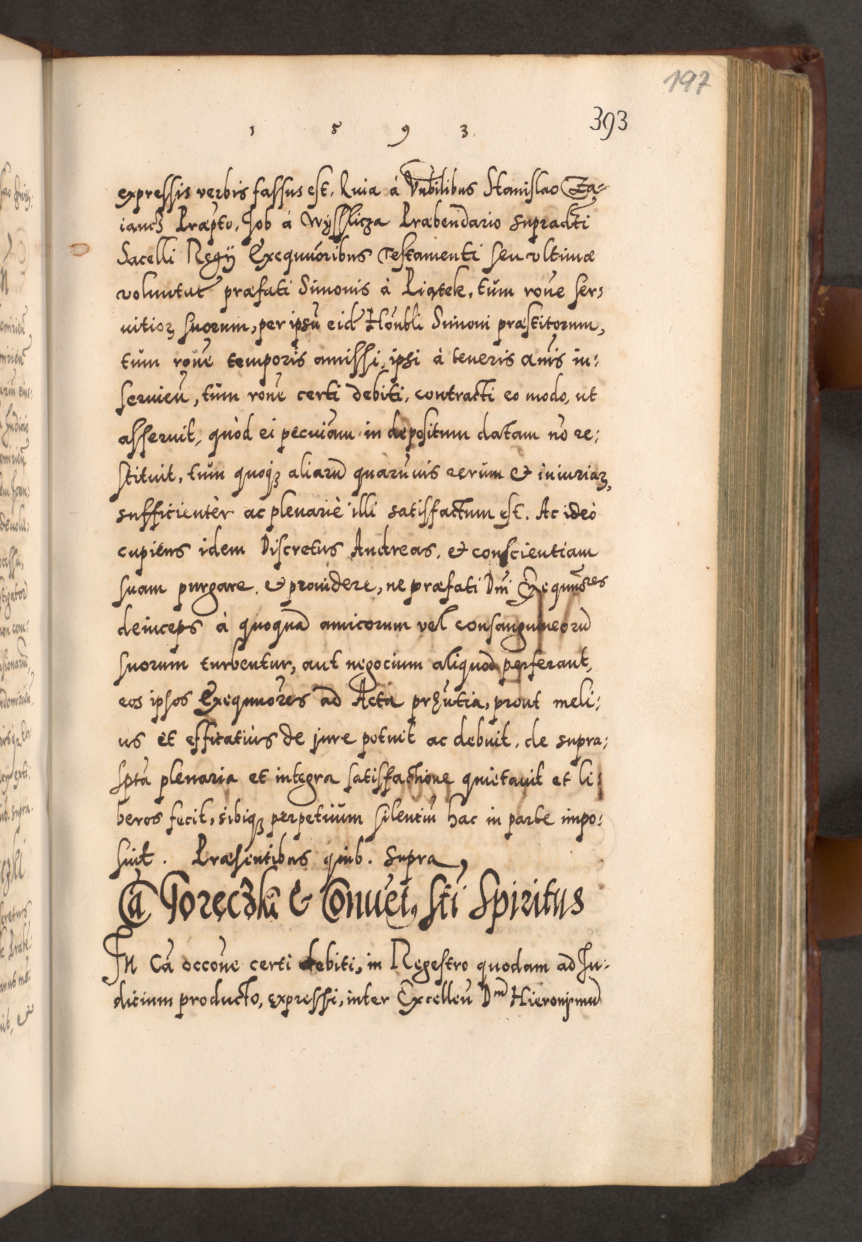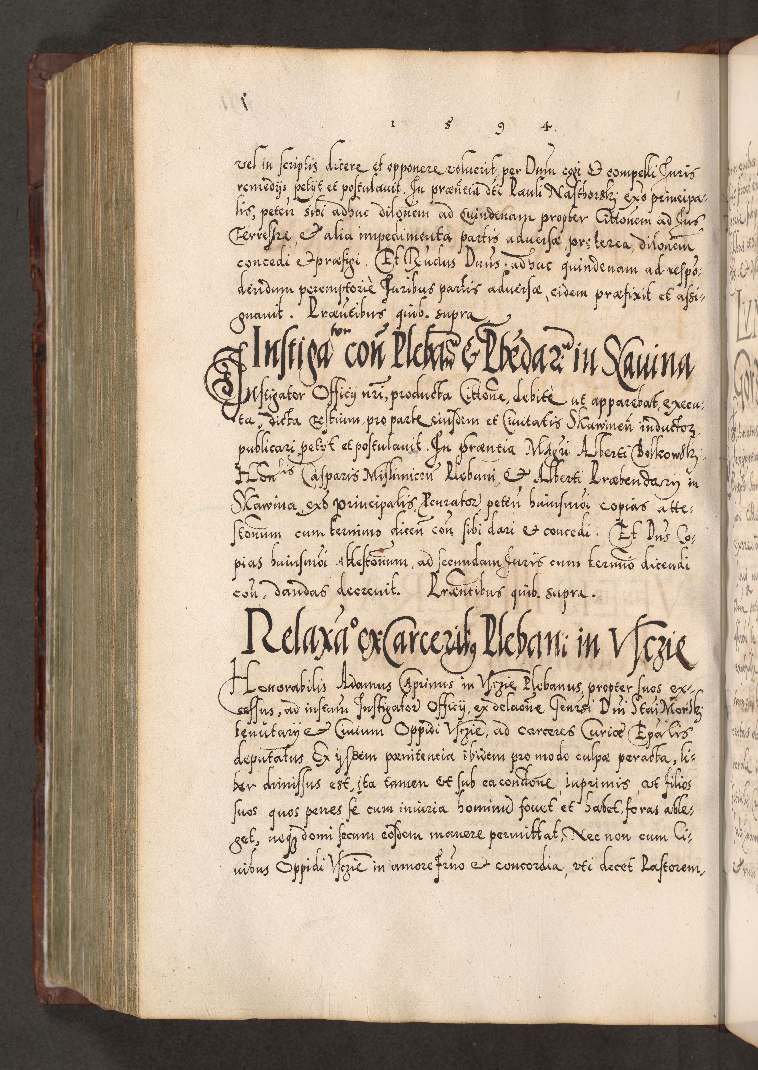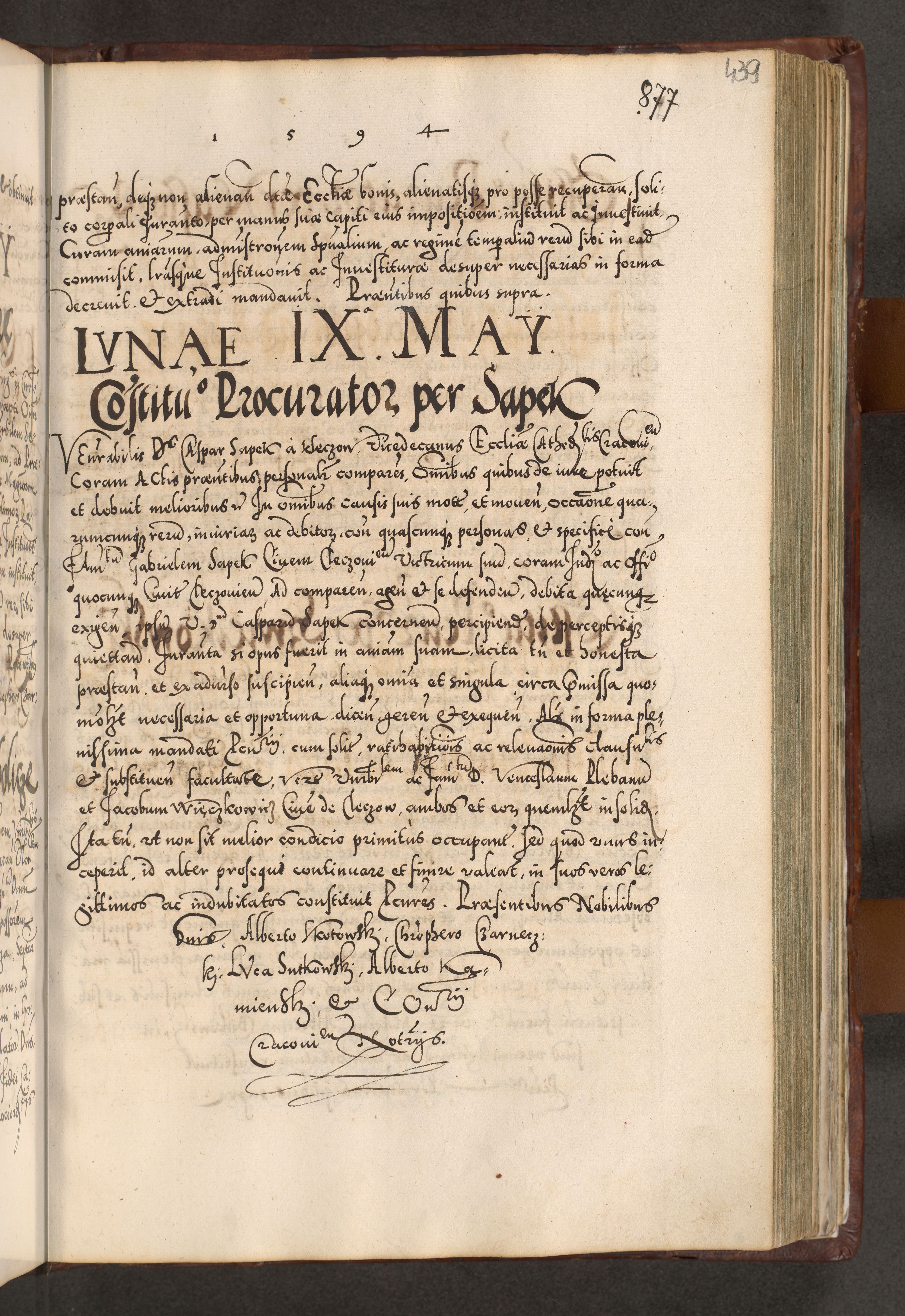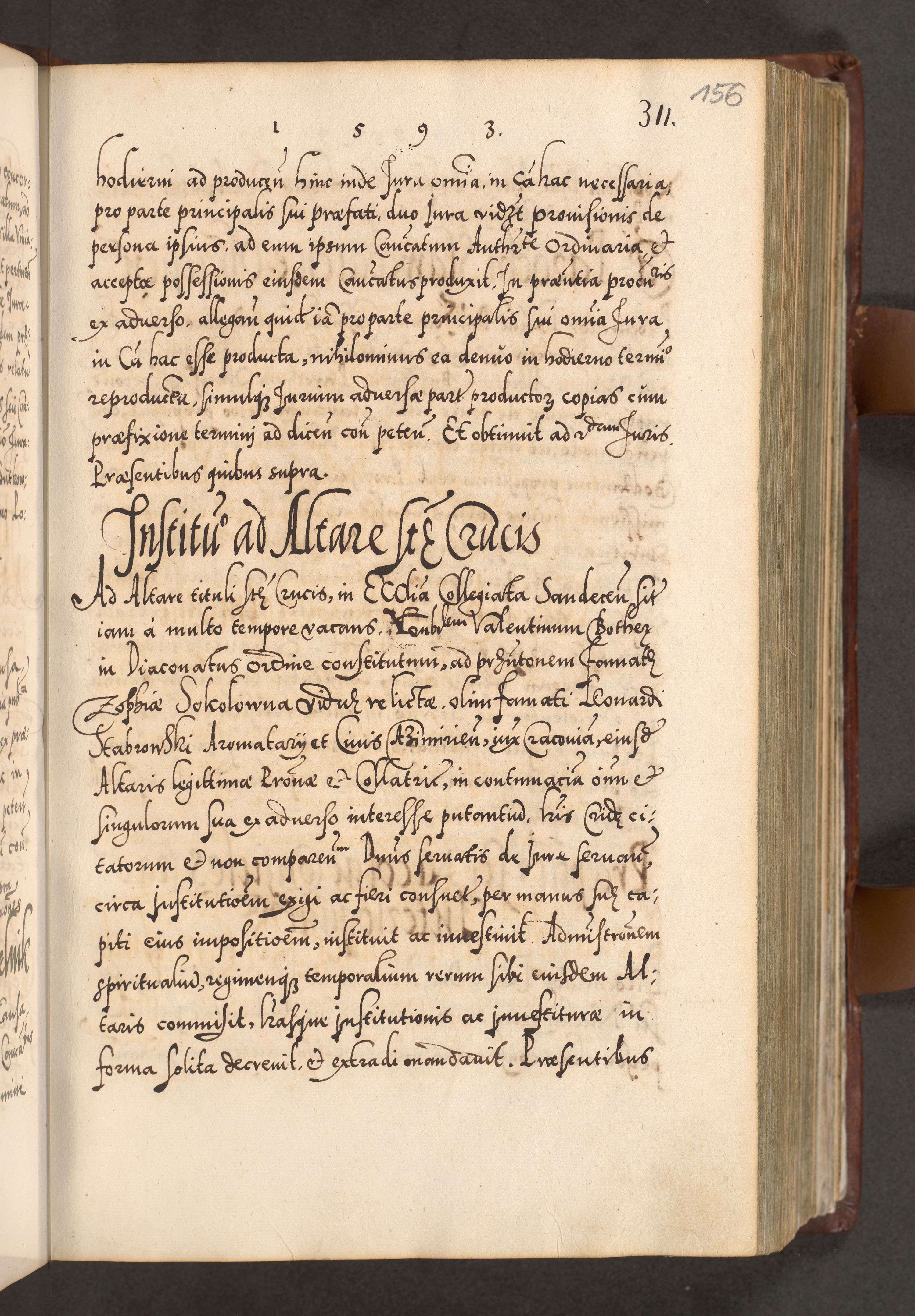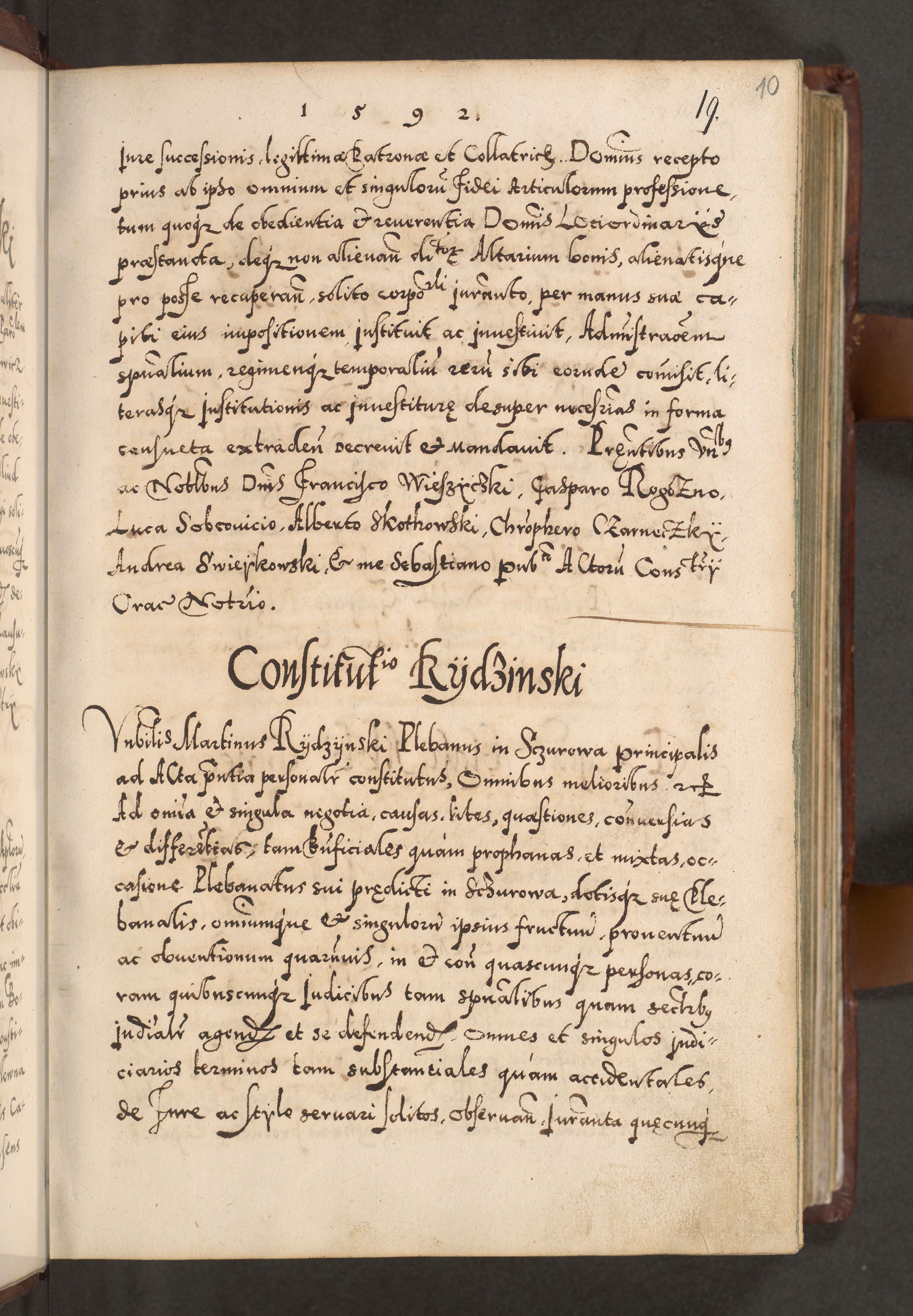 Illistrissimo et revedissimo in Christo Patre Domino Domino Georgio Rzadziwił Miserone Divina Sacrostae R. E. Tituli S. Sixti Presbitero Cardinali Duce in Olyka et Niesswiesz ad Gubernacula Ecclessiae Cracoviensis cuius administratorialem a Sancta Sede Apostolica obtinverat feliciter sedente. Acta actorum, causarum, sententiarum tam deffinitivarum quam interloquutoriarum decretorum, obligationum, quietationum, recognitionum, constitutionum procuratorum etc. coram Reverendo Domino Stanislao Crassinskz de Crasne Archidiacono Cracoviensis, Scholastico Gnesnesis, Custode Plocensis etc. Vicario et Officiali Generali Cracoviensi in Ano Domini Millesimo Quingentesimo Nonagesimo Primo cuius indictio quarta pontificatus SS. Domini Nostri Gregorii XIIII Anno I psius prio feliciter incipiut