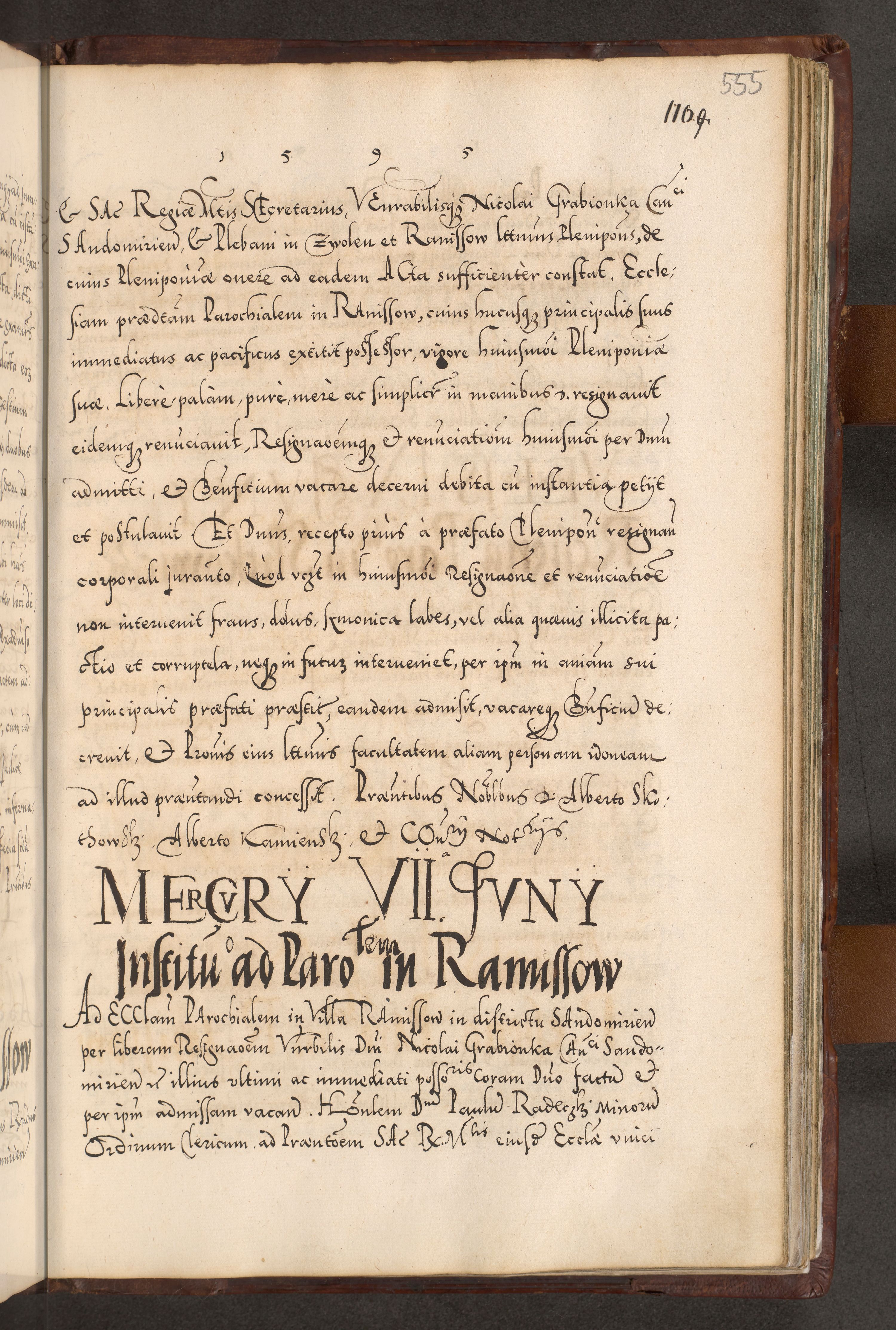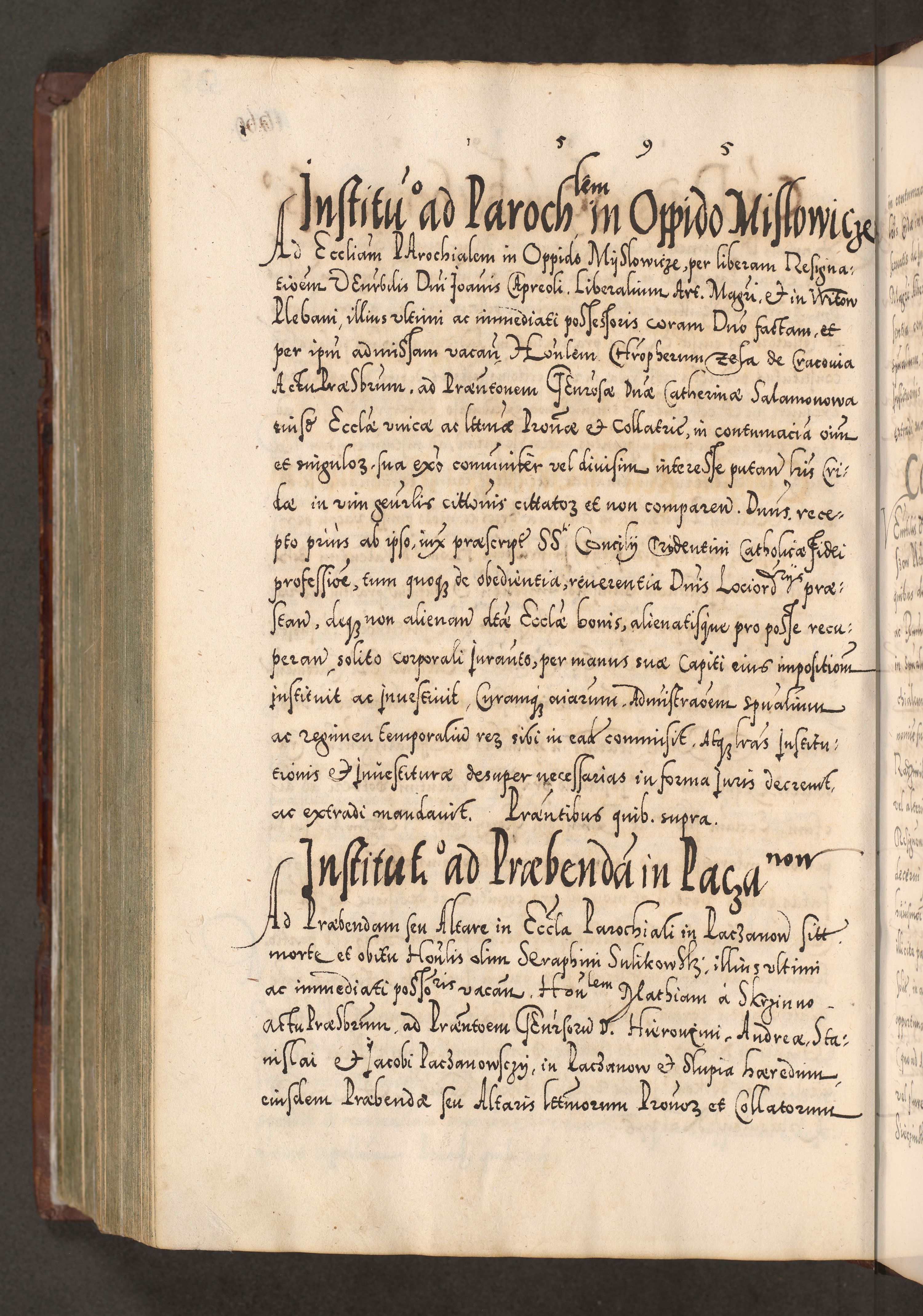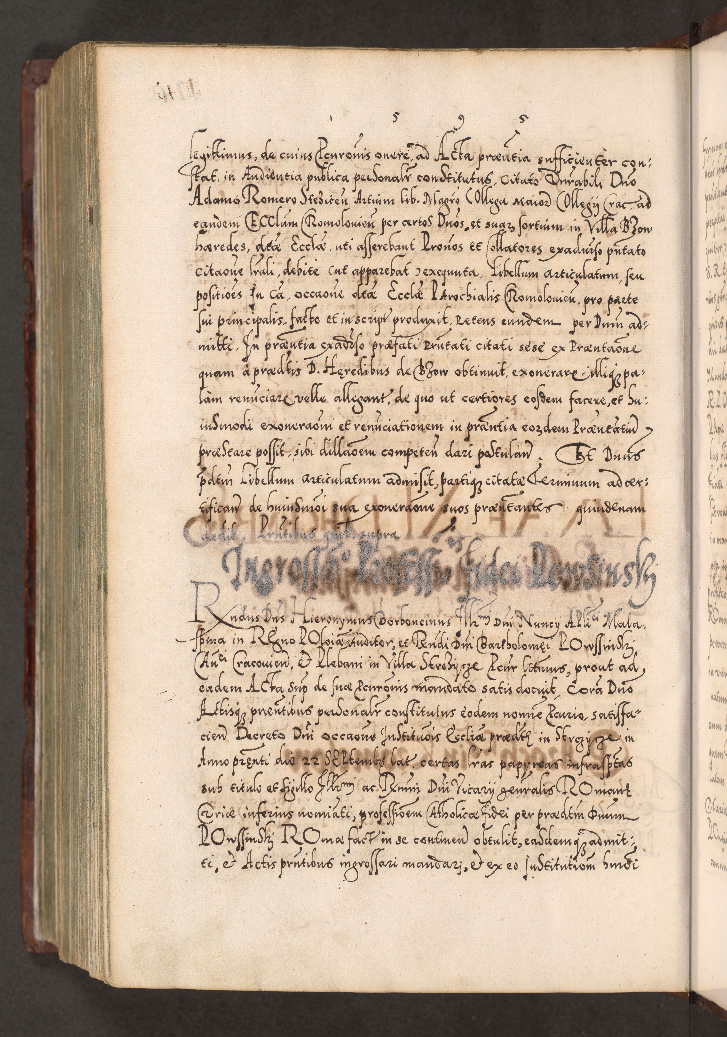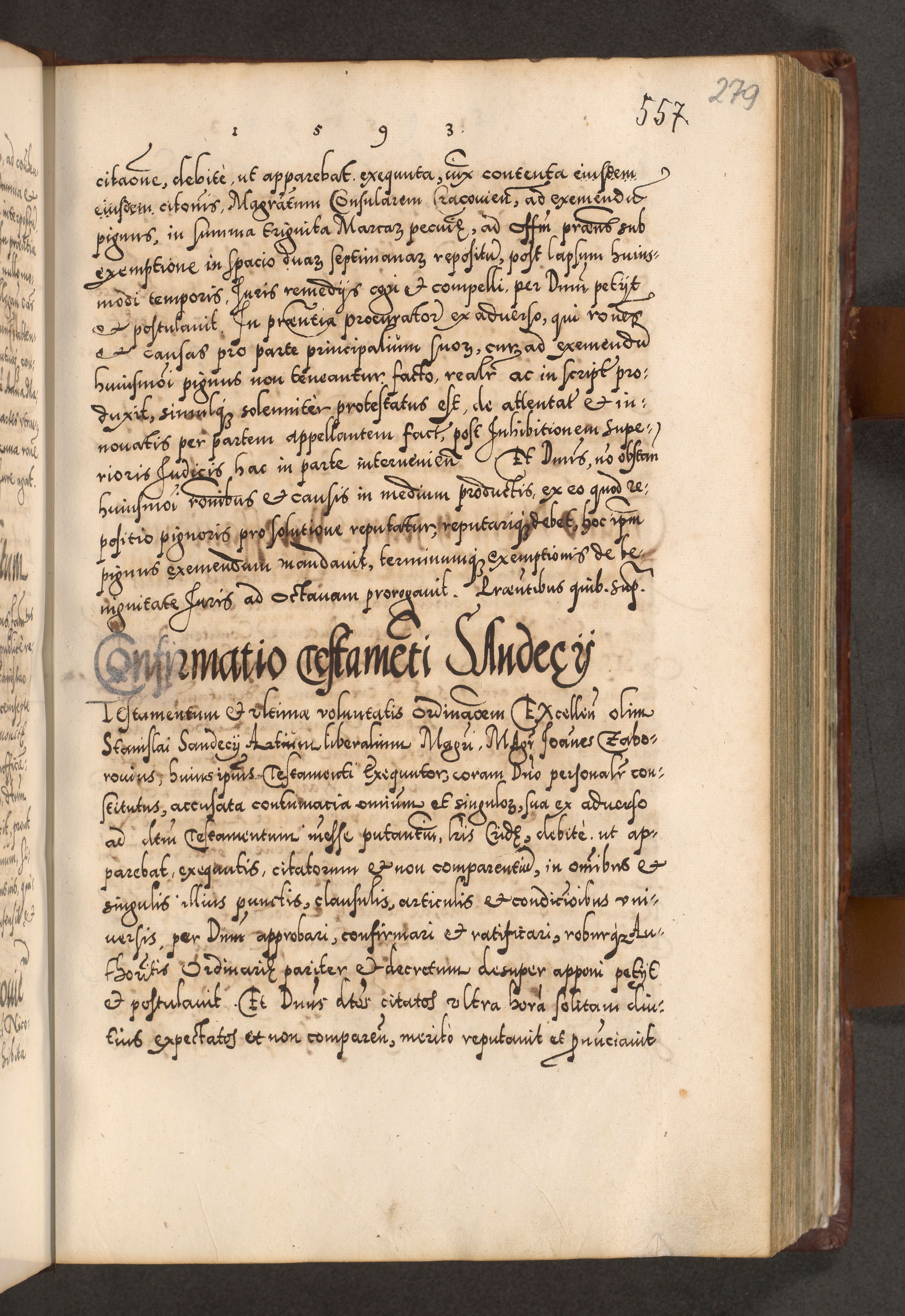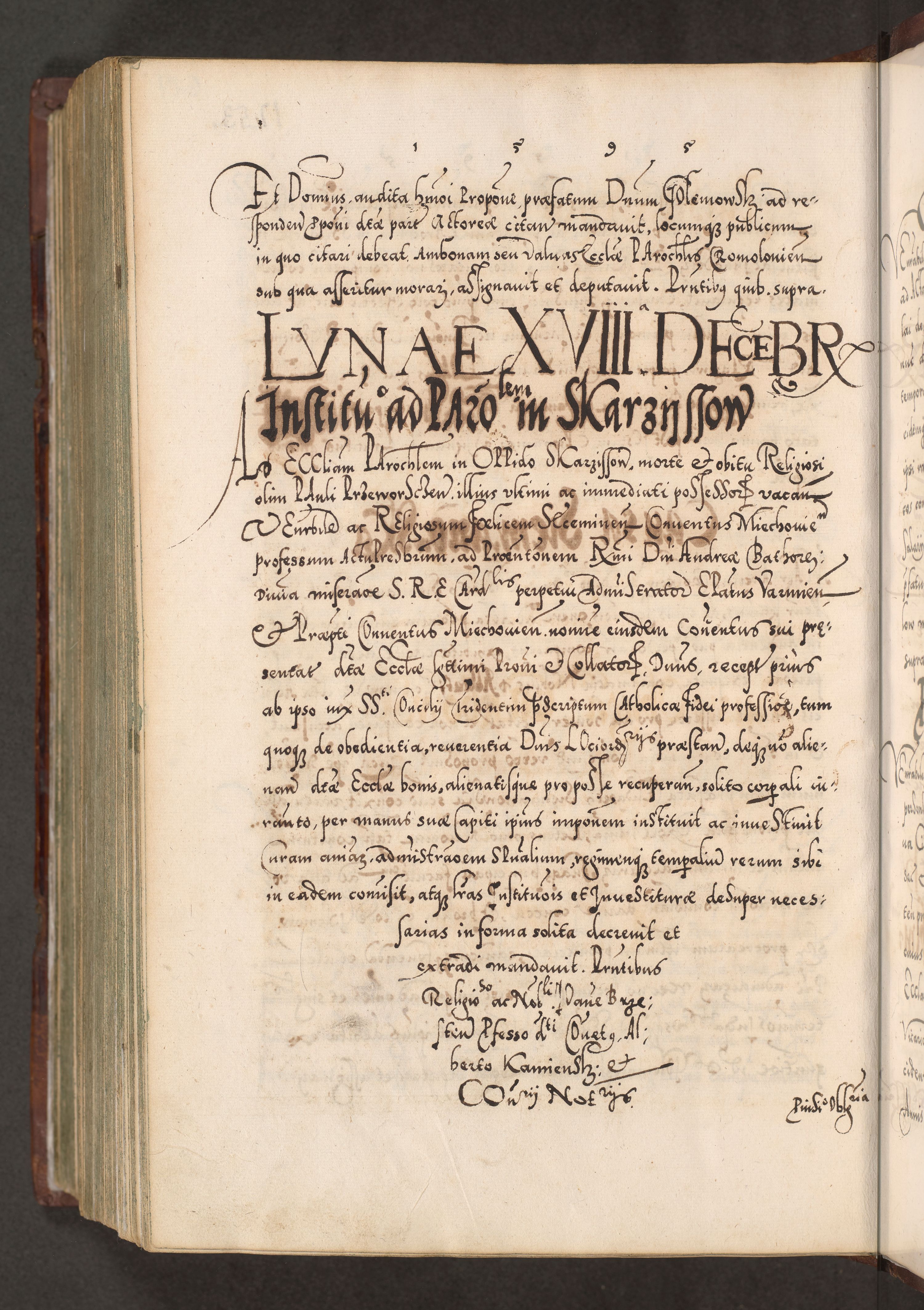 Illistrissimo et revedissimo in Christo Patre Domino Domino Georgio Rzadziwił Miserone Divina Sacrostae R. E. Tituli S. Sixti Presbitero Cardinali Duce in Olyka et Niesswiesz ad Gubernacula Ecclessiae Cracoviensis cuius administratorialem a Sancta Sede Apostolica obtinverat feliciter sedente. Acta actorum, causarum, sententiarum tam deffinitivarum quam interloquutoriarum decretorum, obligationum, quietationum, recognitionum, constitutionum procuratorum etc. coram Reverendo Domino Stanislao Crassinskz de Crasne Archidiacono Cracoviensis, Scholastico Gnesnesis, Custode Plocensis etc. Vicario et Officiali Generali Cracoviensi in Ano Domini Millesimo Quingentesimo Nonagesimo Primo cuius indictio quarta pontificatus SS. Domini Nostri Gregorii XIIII Anno I psius prio feliciter incipiut