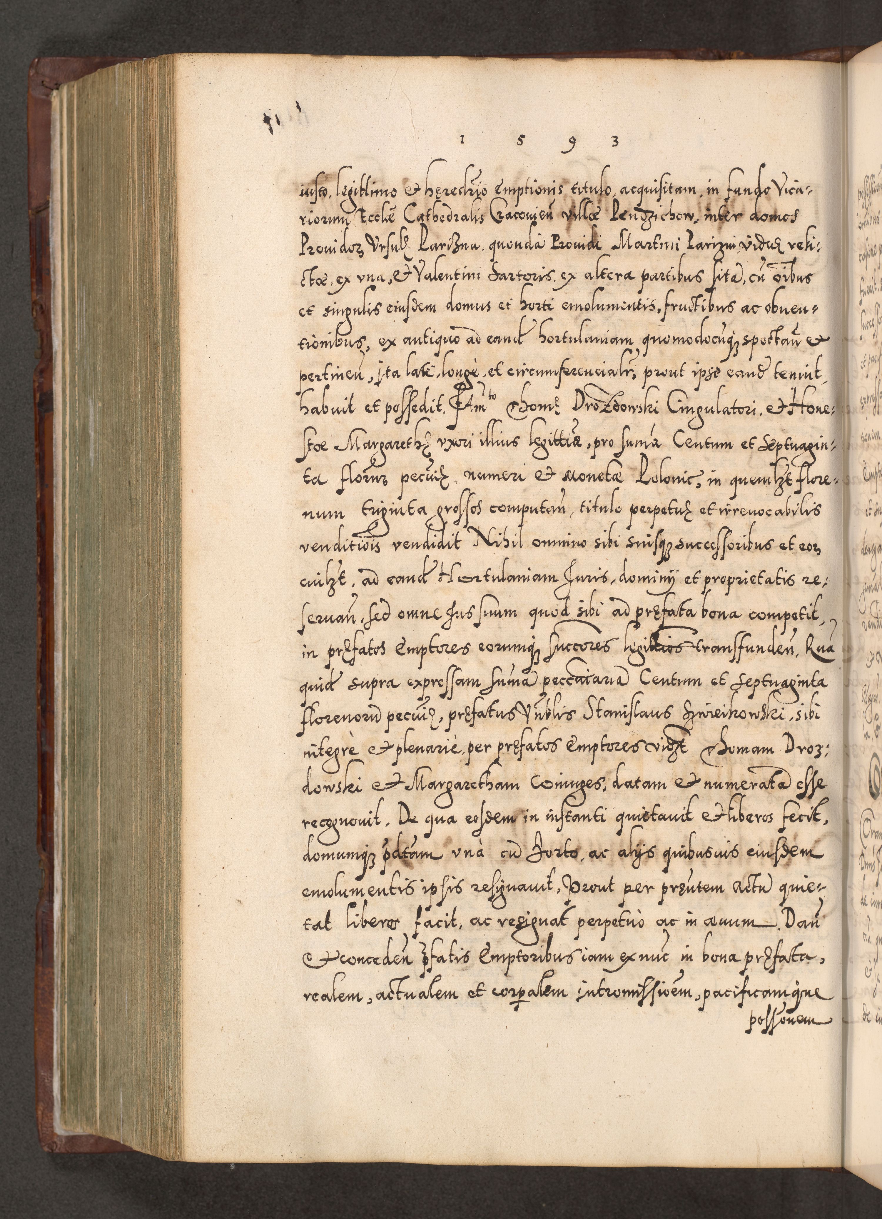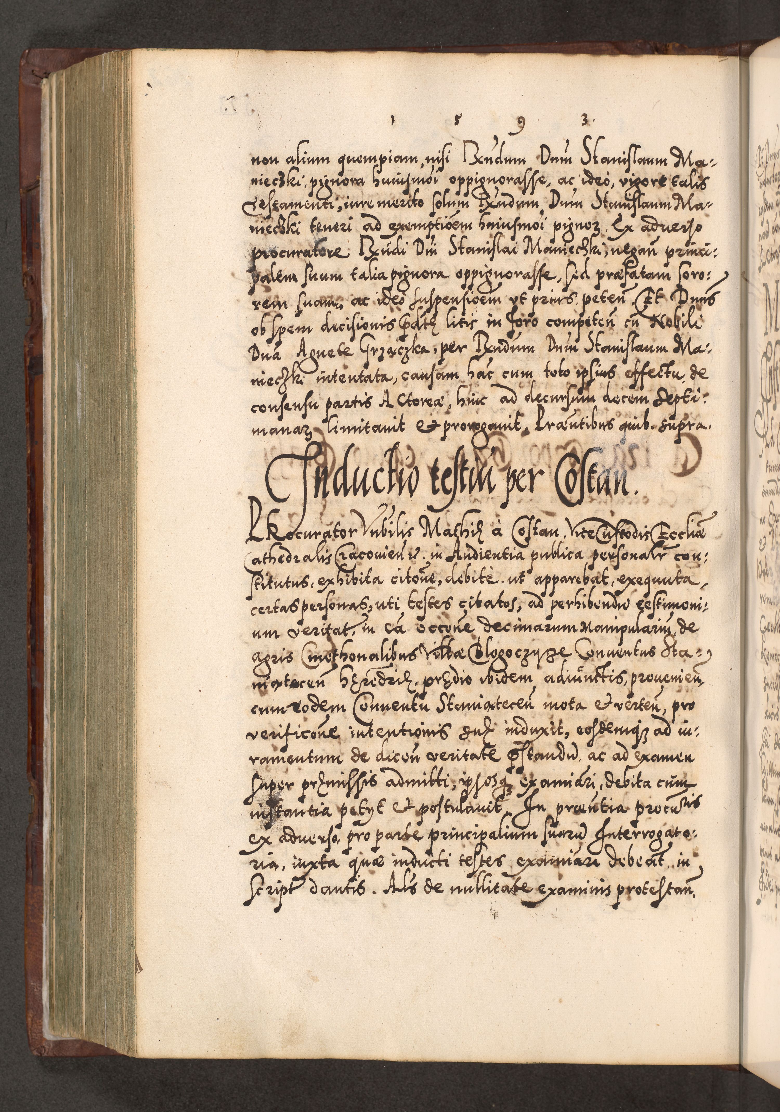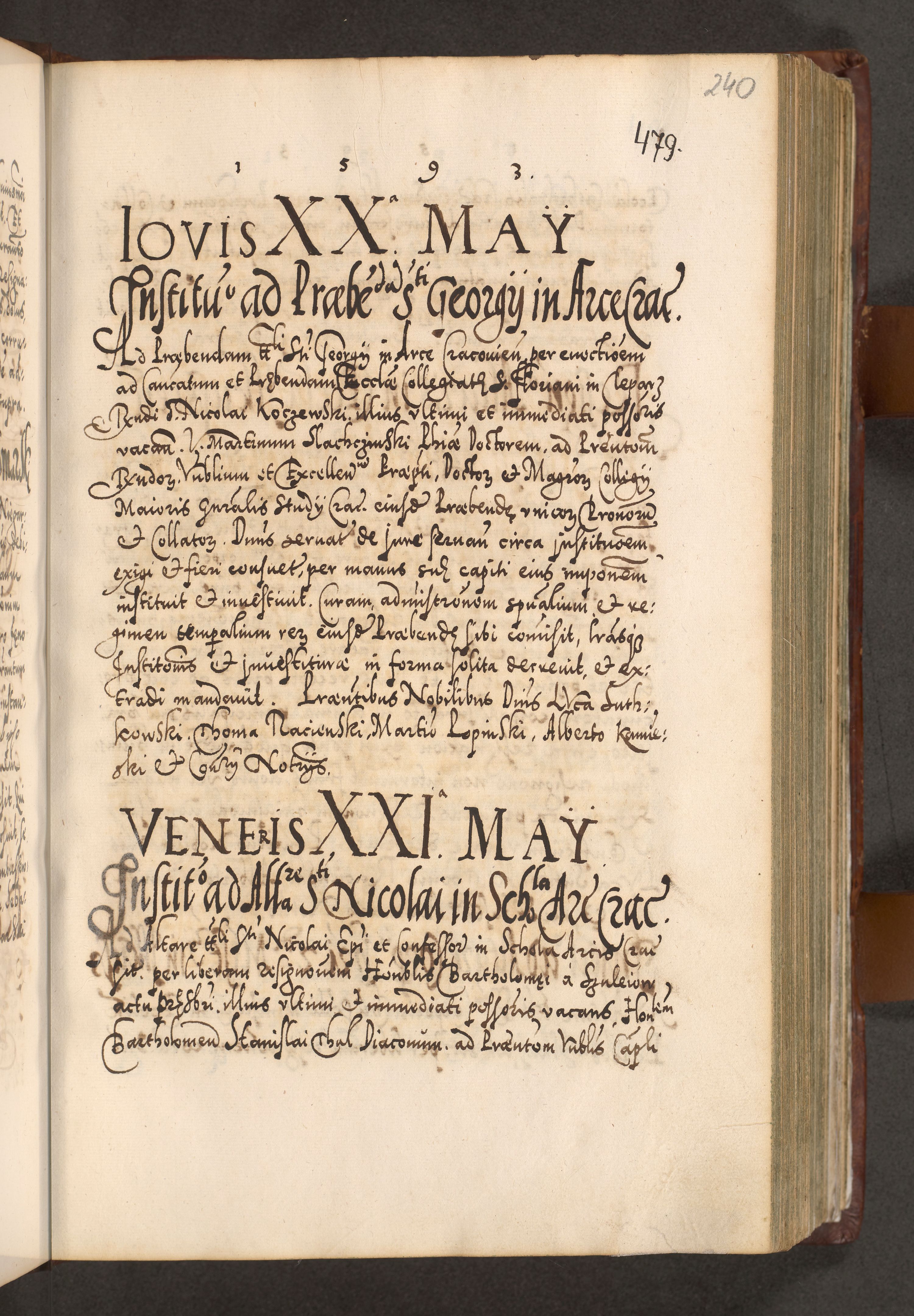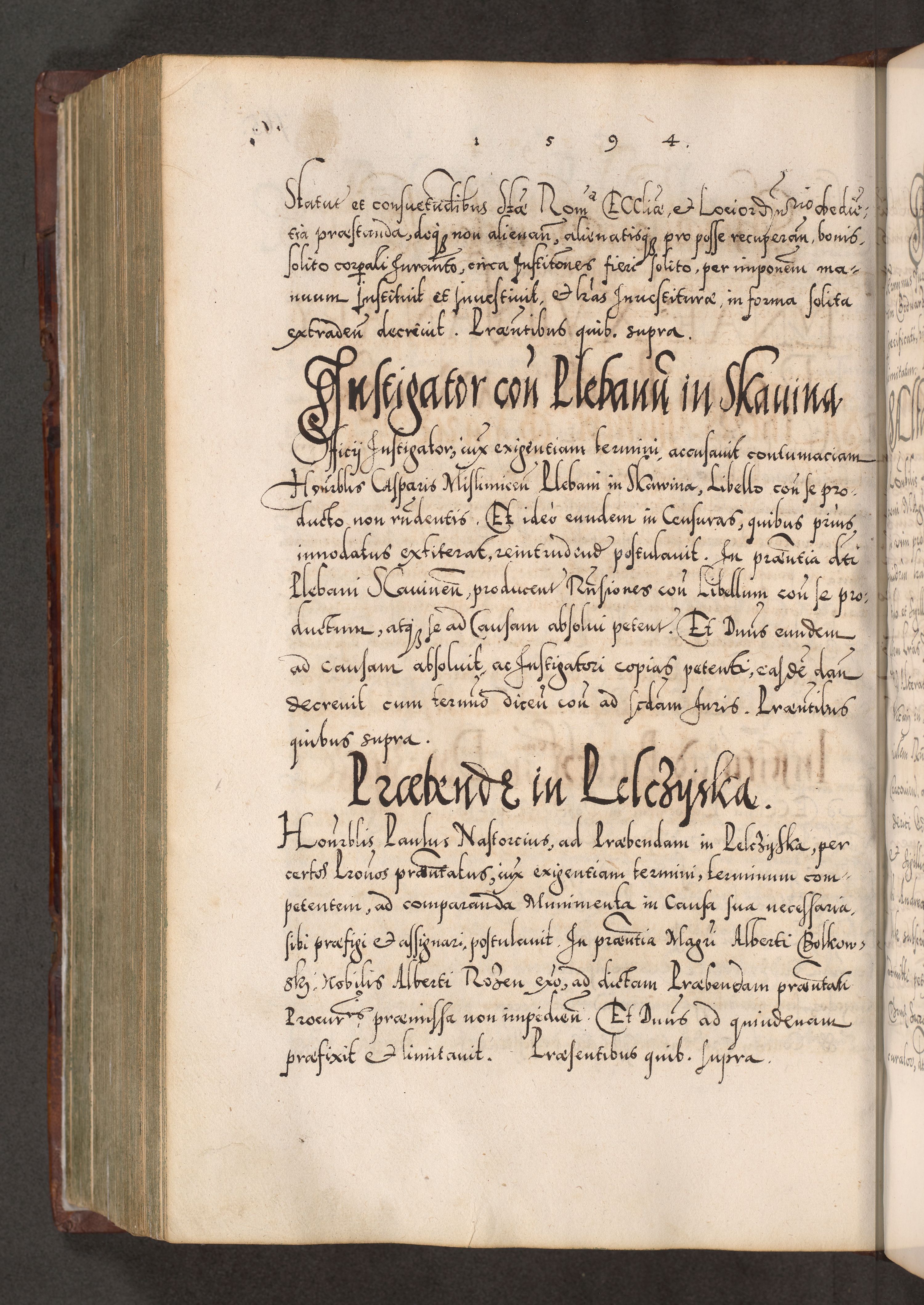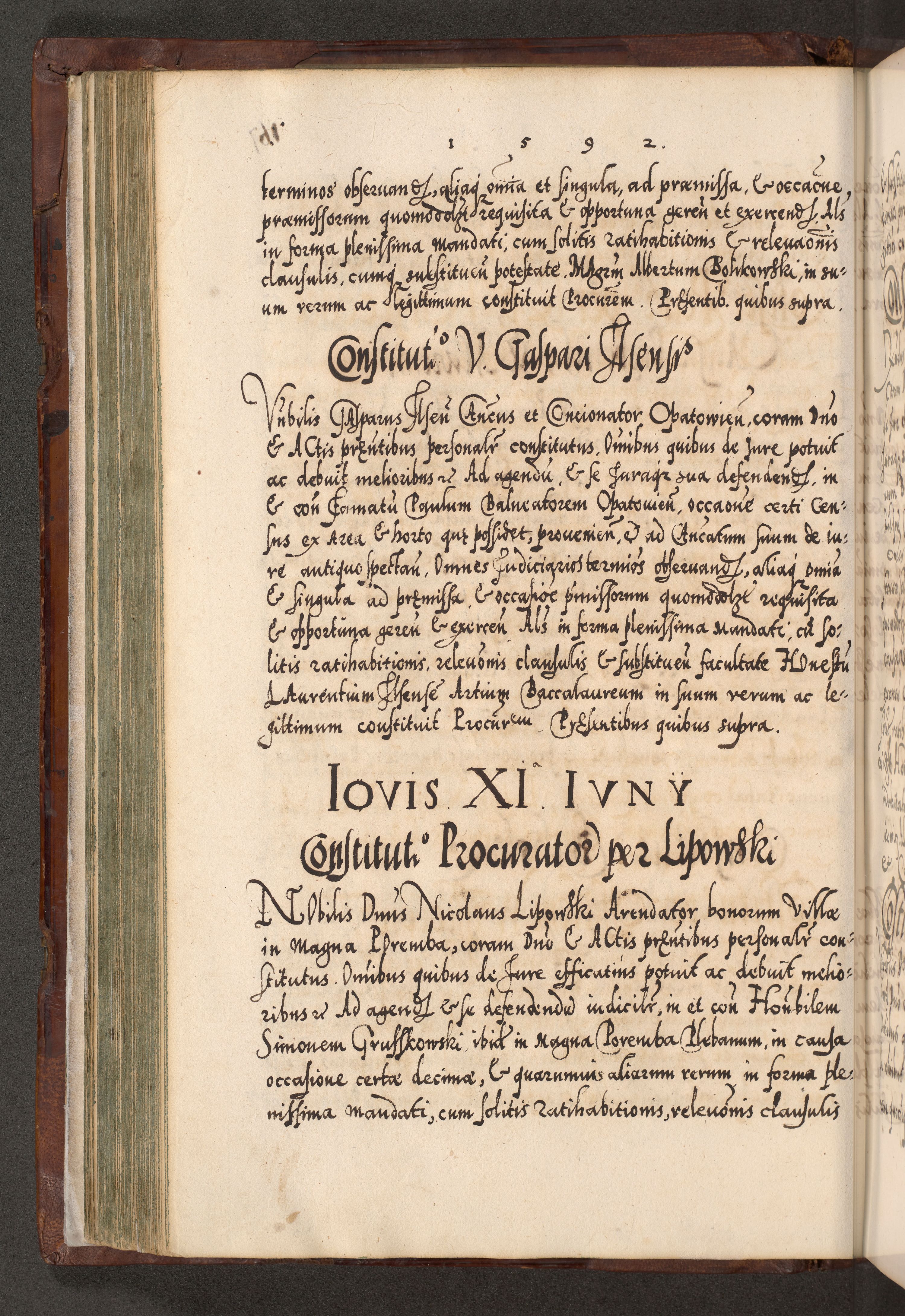 Illistrissimo et revedissimo in Christo Patre Domino Domino Georgio Rzadziwił Miserone Divina Sacrostae R. E. Tituli S. Sixti Presbitero Cardinali Duce in Olyka et Niesswiesz ad Gubernacula Ecclessiae Cracoviensis cuius administratorialem a Sancta Sede Apostolica obtinverat feliciter sedente. Acta actorum, causarum, sententiarum tam deffinitivarum quam interloquutoriarum decretorum, obligationum, quietationum, recognitionum, constitutionum procuratorum etc. coram Reverendo Domino Stanislao Crassinskz de Crasne Archidiacono Cracoviensis, Scholastico Gnesnesis, Custode Plocensis etc. Vicario et Officiali Generali Cracoviensi in Ano Domini Millesimo Quingentesimo Nonagesimo Primo cuius indictio quarta pontificatus SS. Domini Nostri Gregorii XIIII Anno I psius prio feliciter incipiut