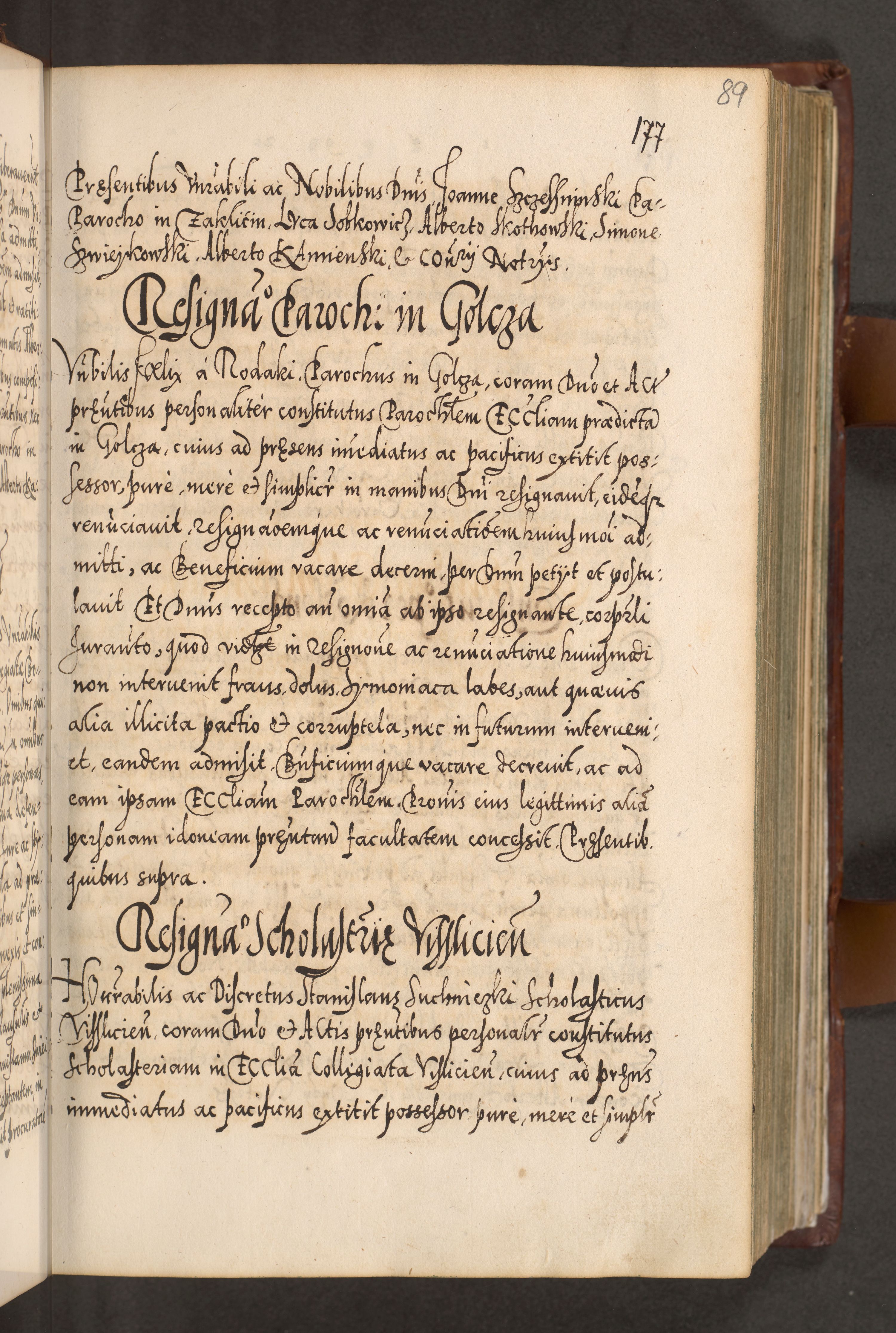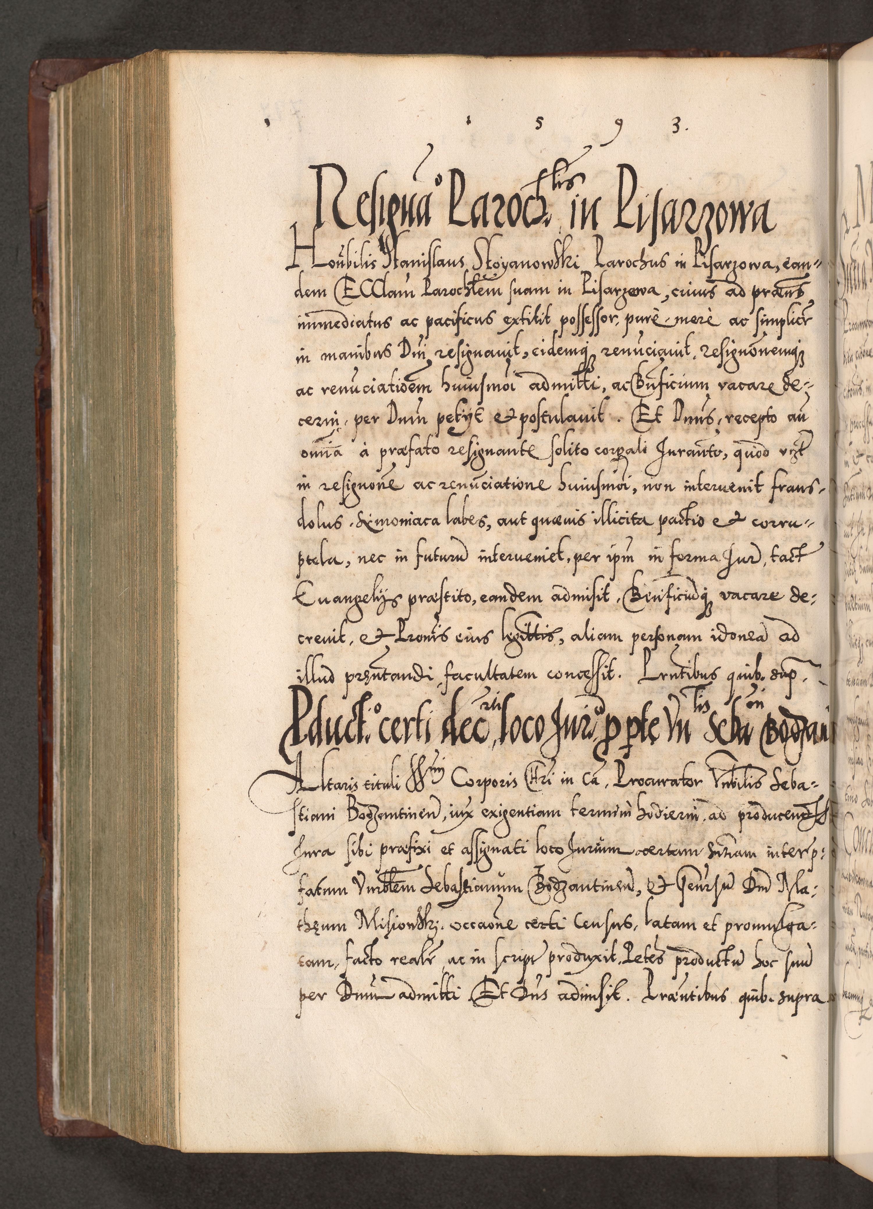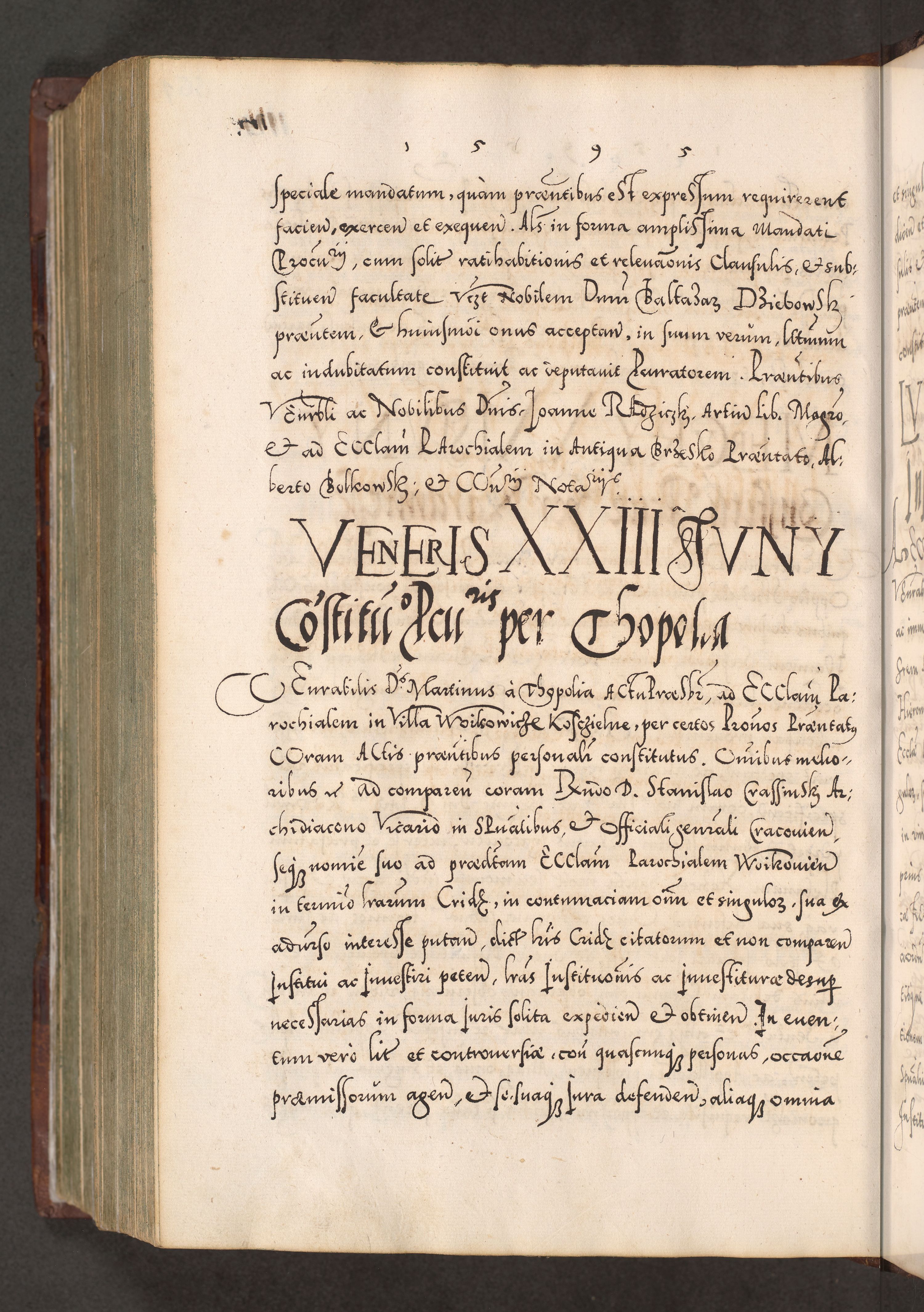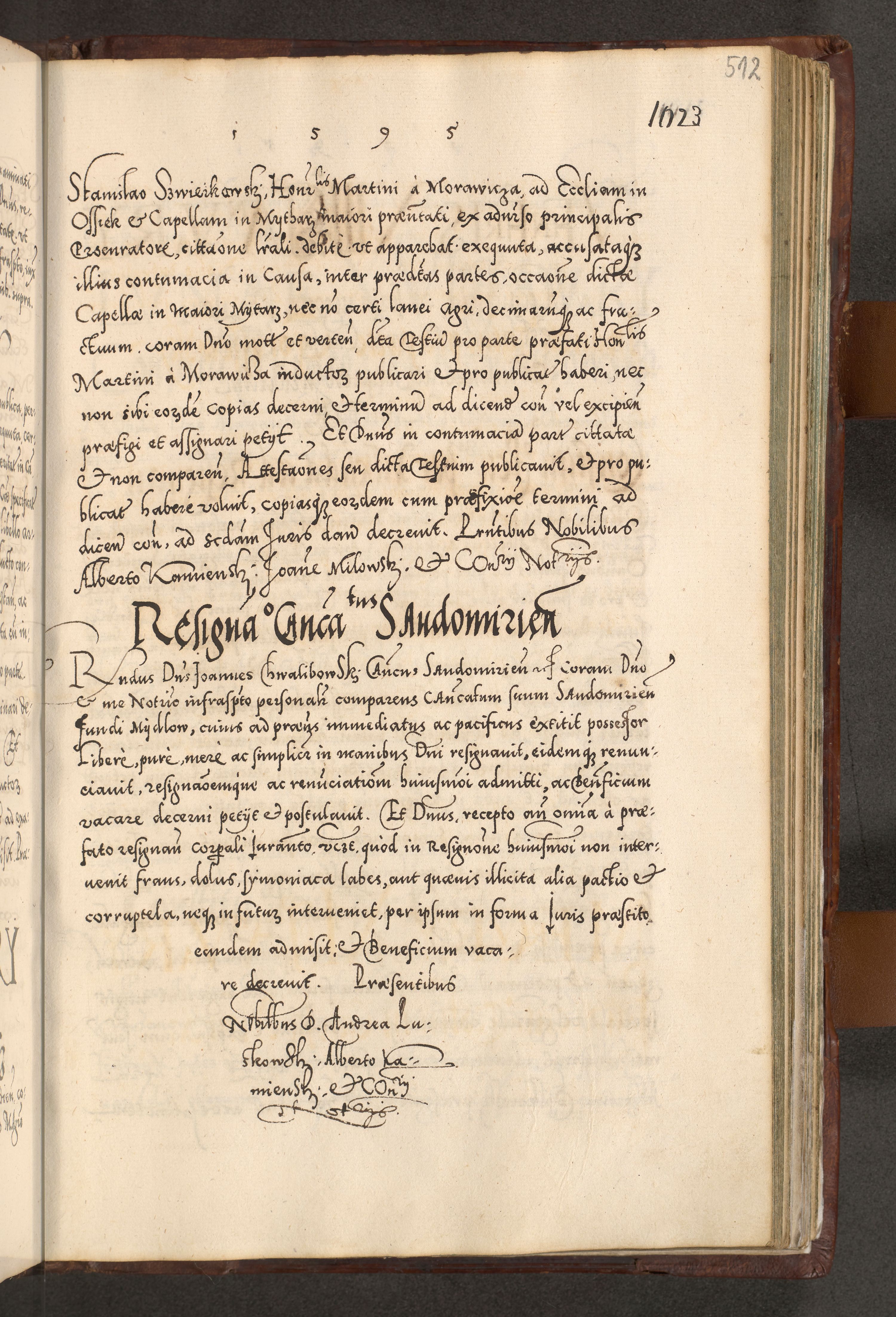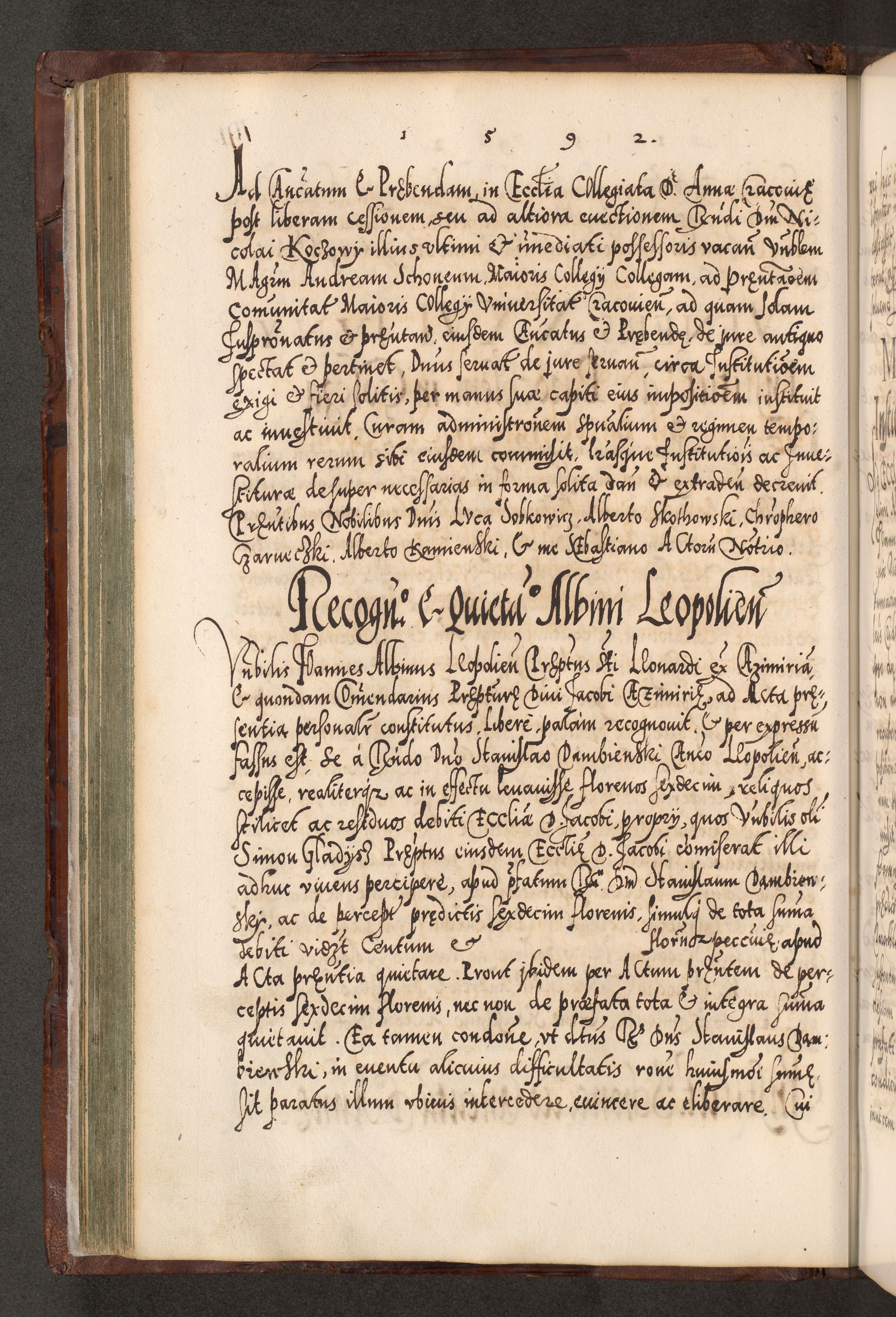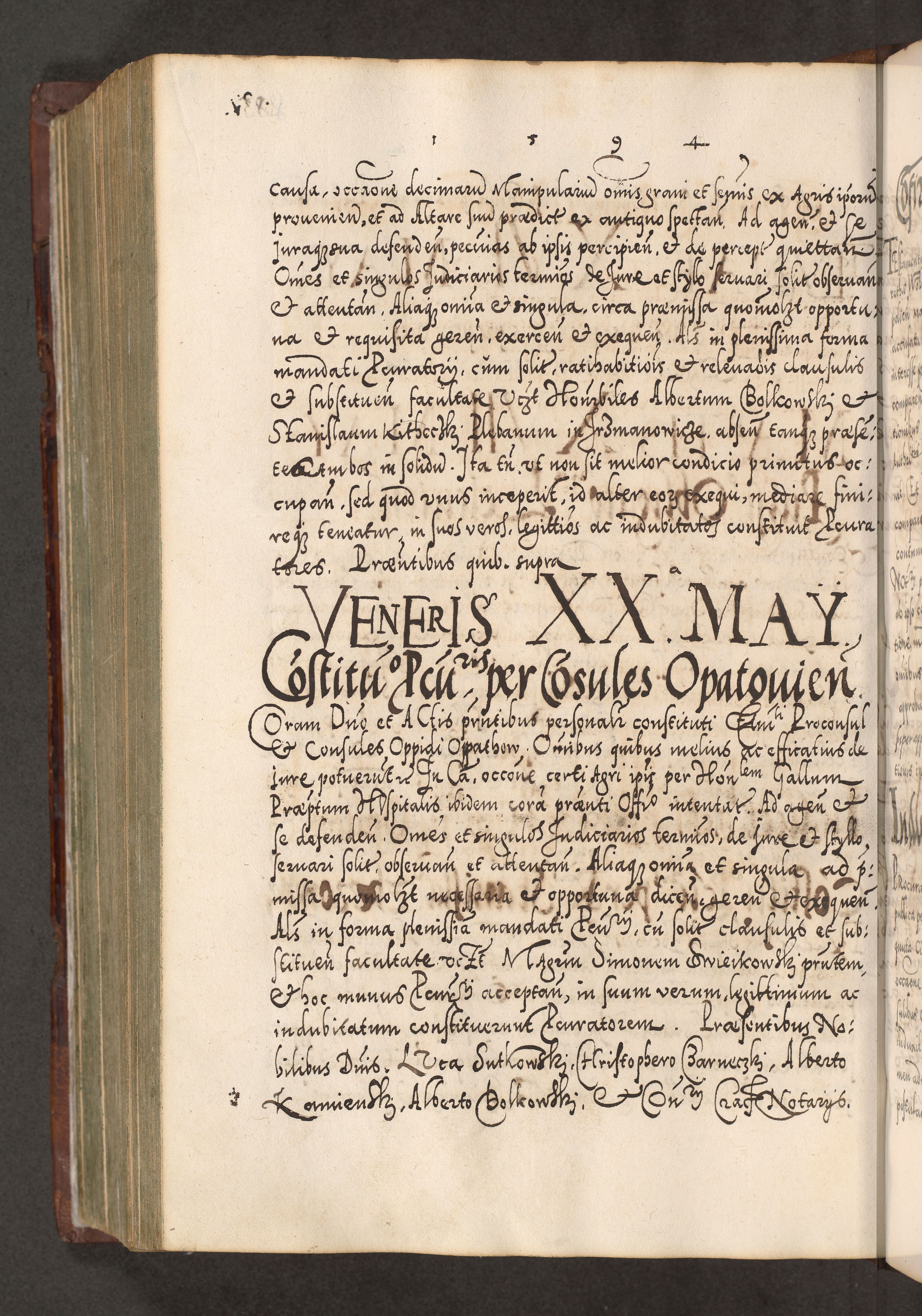 Illistrissimo et revedissimo in Christo Patre Domino Domino Georgio Rzadziwił Miserone Divina Sacrostae R. E. Tituli S. Sixti Presbitero Cardinali Duce in Olyka et Niesswiesz ad Gubernacula Ecclessiae Cracoviensis cuius administratorialem a Sancta Sede Apostolica obtinverat feliciter sedente. Acta actorum, causarum, sententiarum tam deffinitivarum quam interloquutoriarum decretorum, obligationum, quietationum, recognitionum, constitutionum procuratorum etc. coram Reverendo Domino Stanislao Crassinskz de Crasne Archidiacono Cracoviensis, Scholastico Gnesnesis, Custode Plocensis etc. Vicario et Officiali Generali Cracoviensi in Ano Domini Millesimo Quingentesimo Nonagesimo Primo cuius indictio quarta pontificatus SS. Domini Nostri Gregorii XIIII Anno I psius prio feliciter incipiut