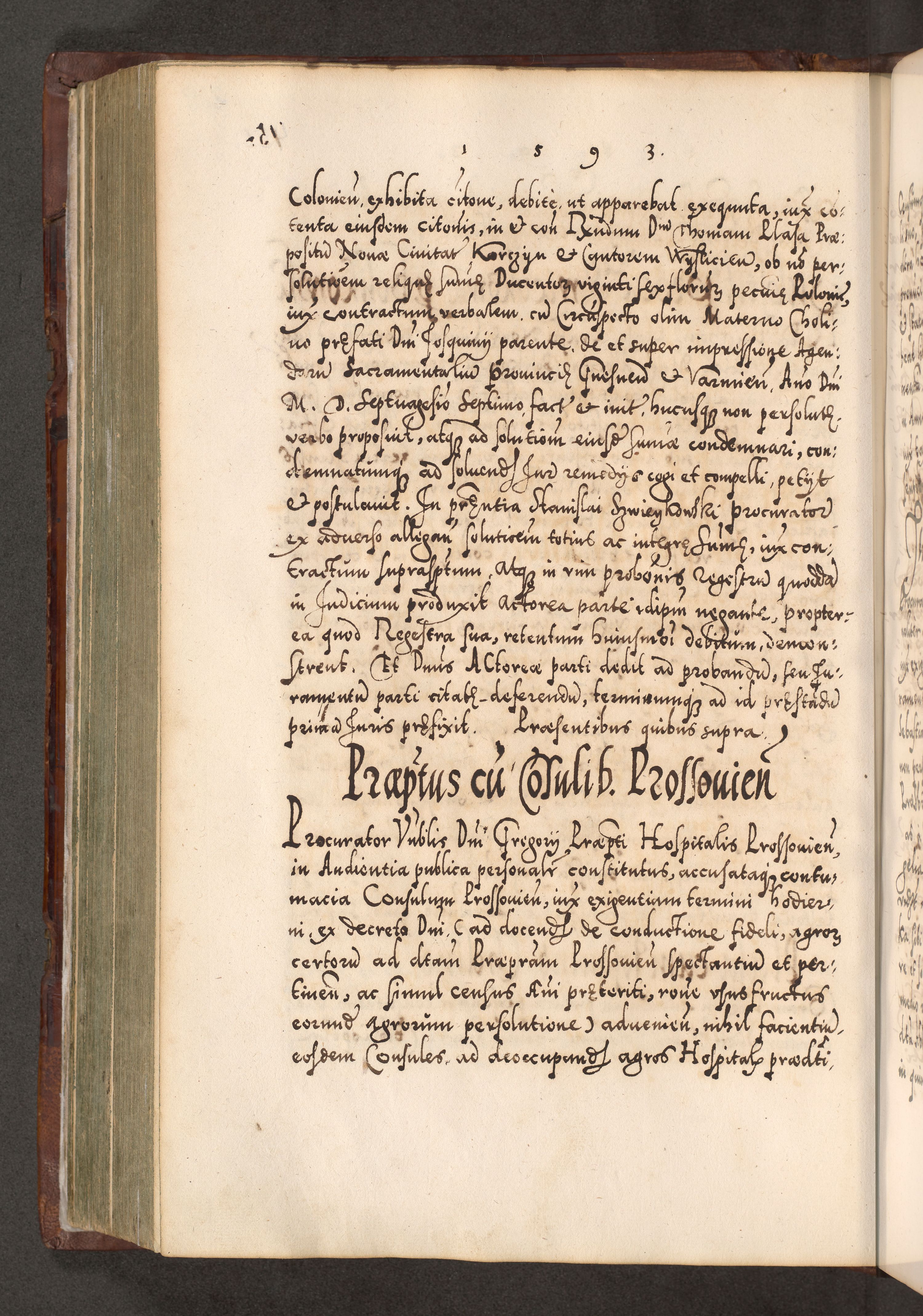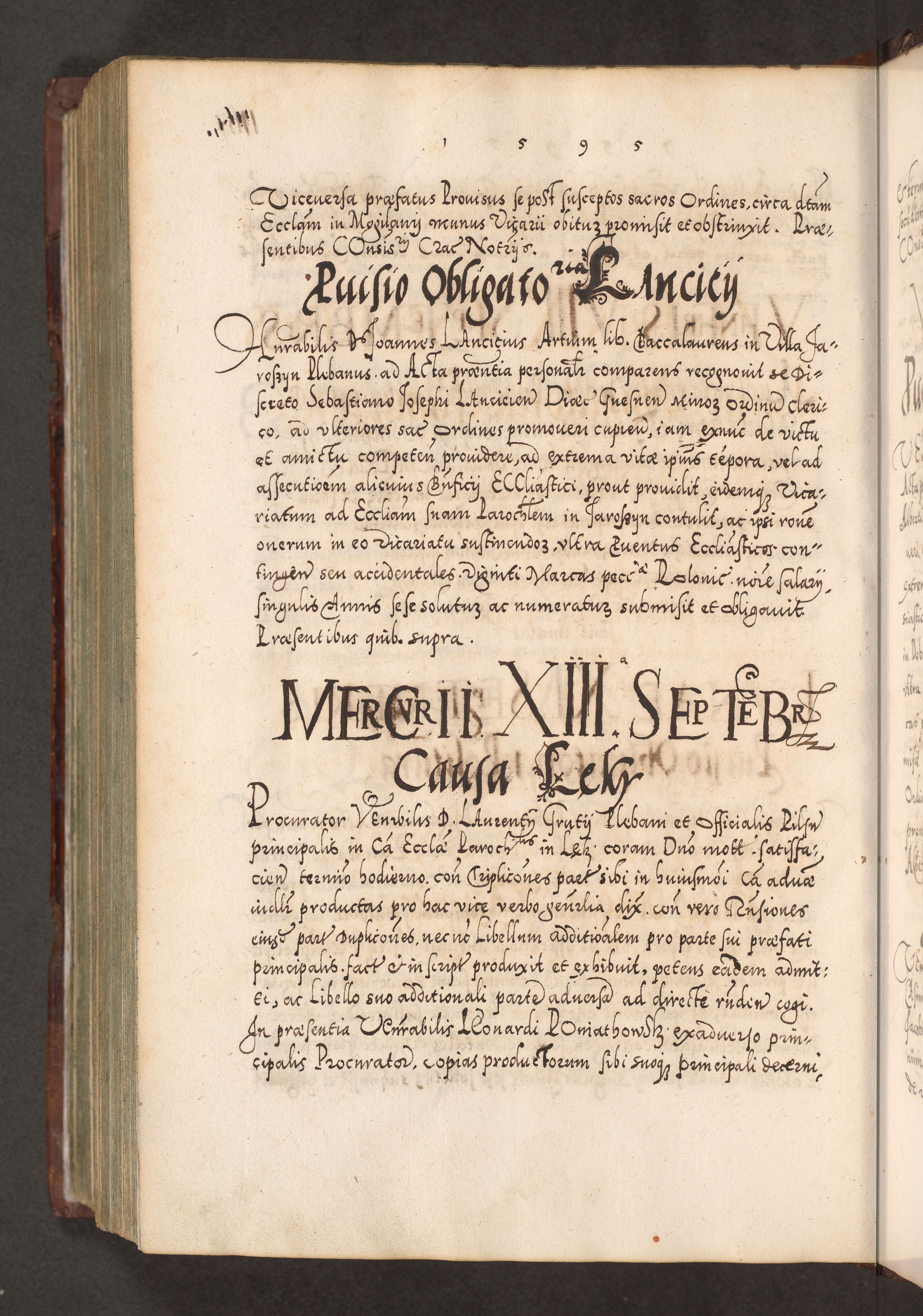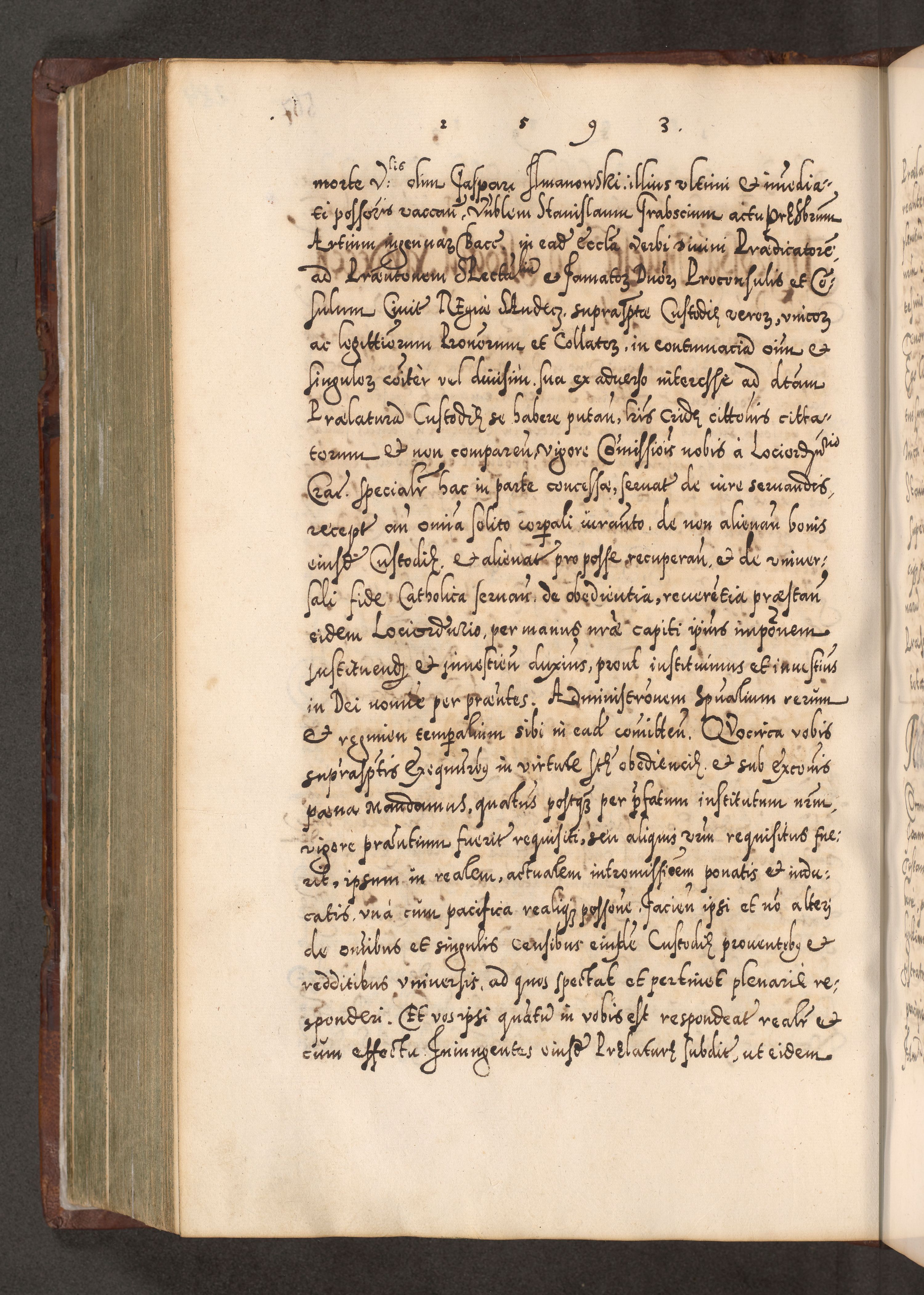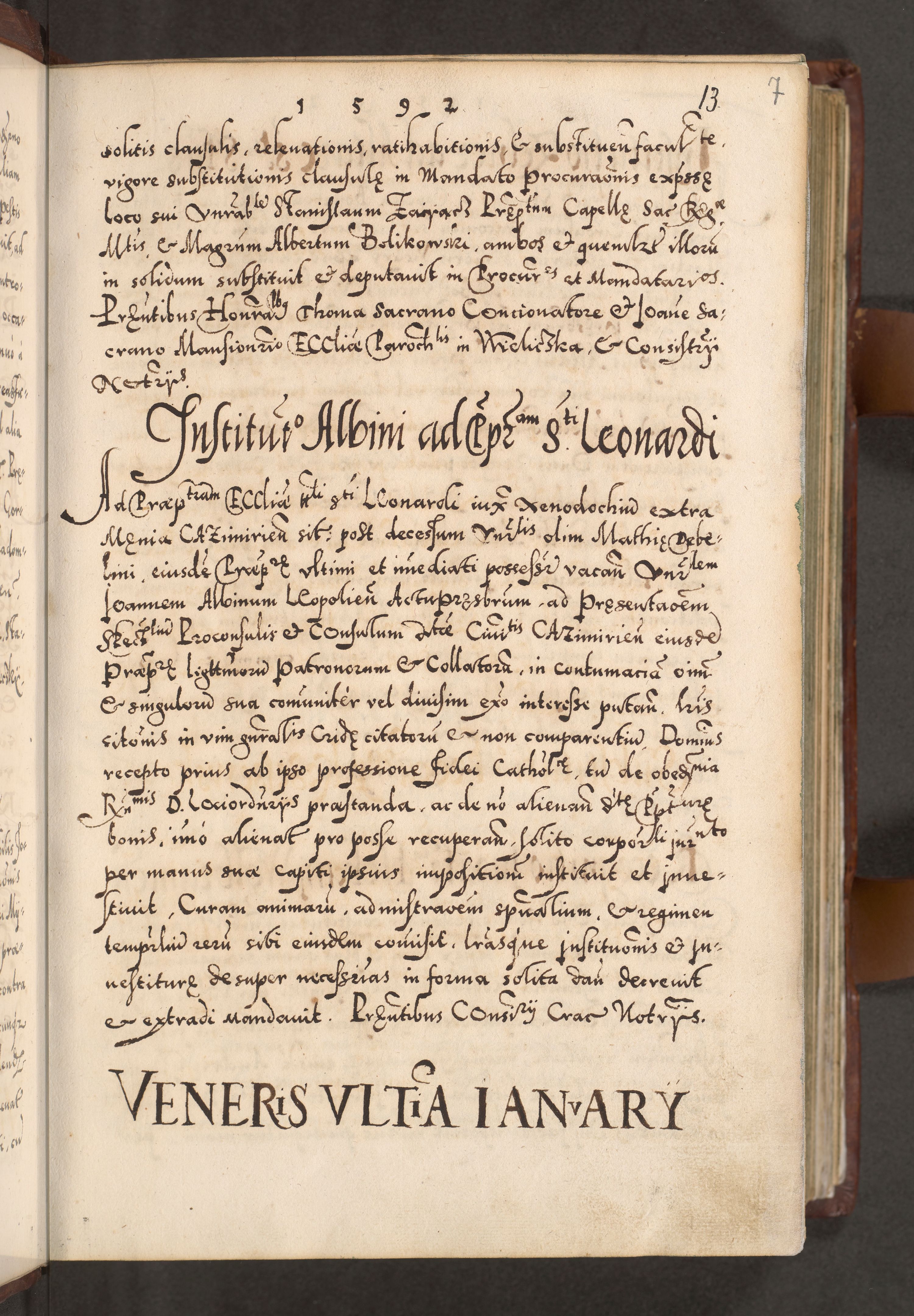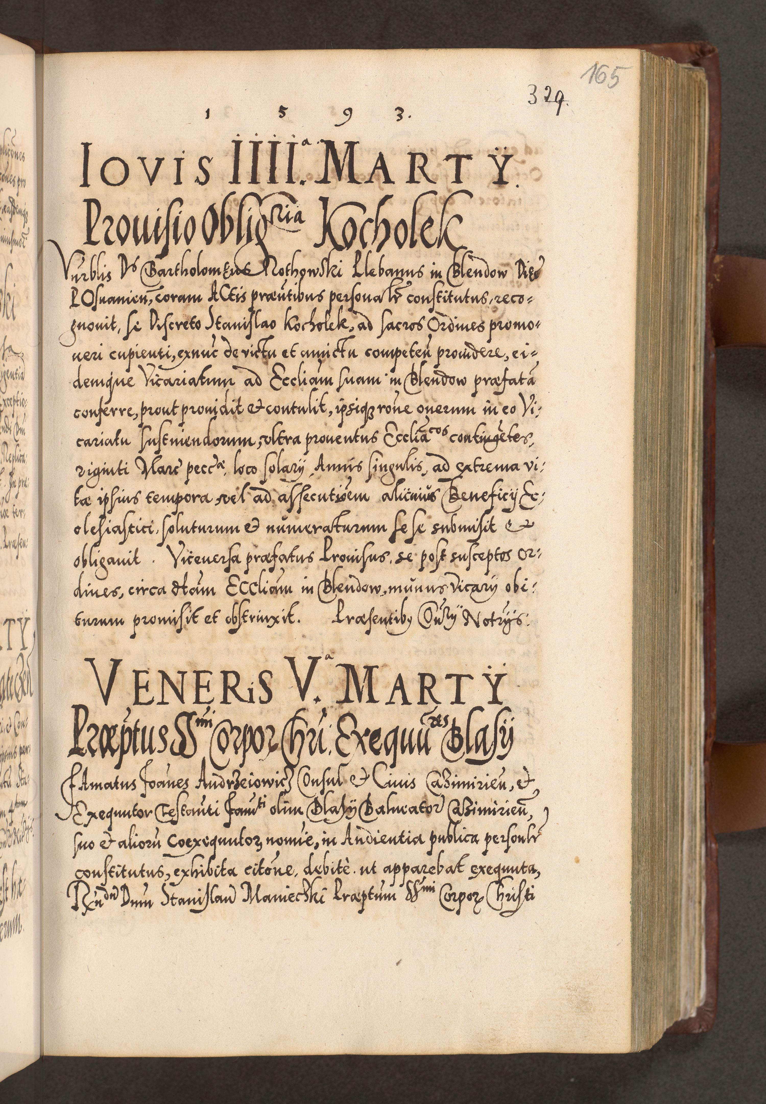 Illistrissimo et revedissimo in Christo Patre Domino Domino Georgio Rzadziwił Miserone Divina Sacrostae R. E. Tituli S. Sixti Presbitero Cardinali Duce in Olyka et Niesswiesz ad Gubernacula Ecclessiae Cracoviensis cuius administratorialem a Sancta Sede Apostolica obtinverat feliciter sedente. Acta actorum, causarum, sententiarum tam deffinitivarum quam interloquutoriarum decretorum, obligationum, quietationum, recognitionum, constitutionum procuratorum etc. coram Reverendo Domino Stanislao Crassinskz de Crasne Archidiacono Cracoviensis, Scholastico Gnesnesis, Custode Plocensis etc. Vicario et Officiali Generali Cracoviensi in Ano Domini Millesimo Quingentesimo Nonagesimo Primo cuius indictio quarta pontificatus SS. Domini Nostri Gregorii XIIII Anno I psius prio feliciter incipiut