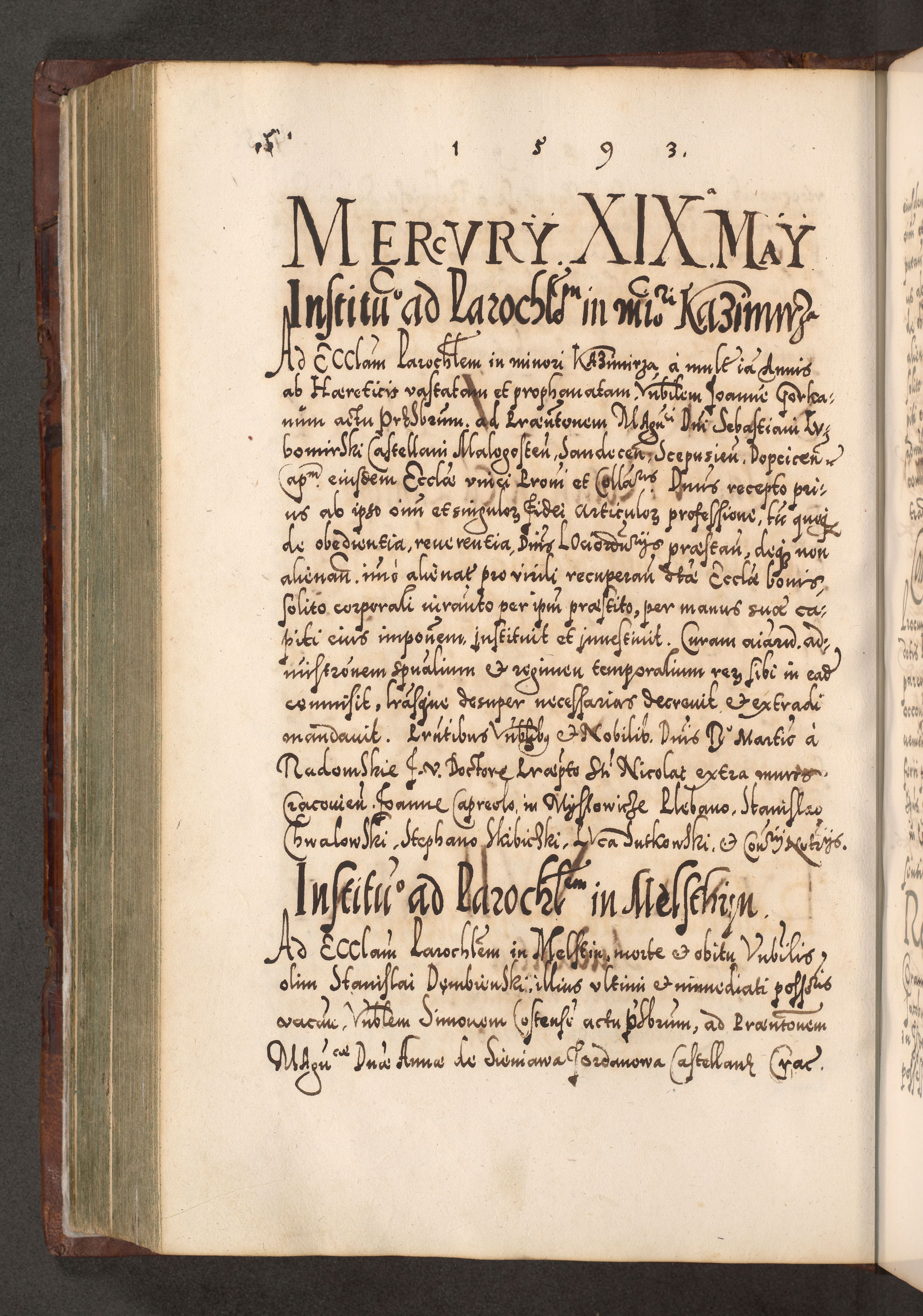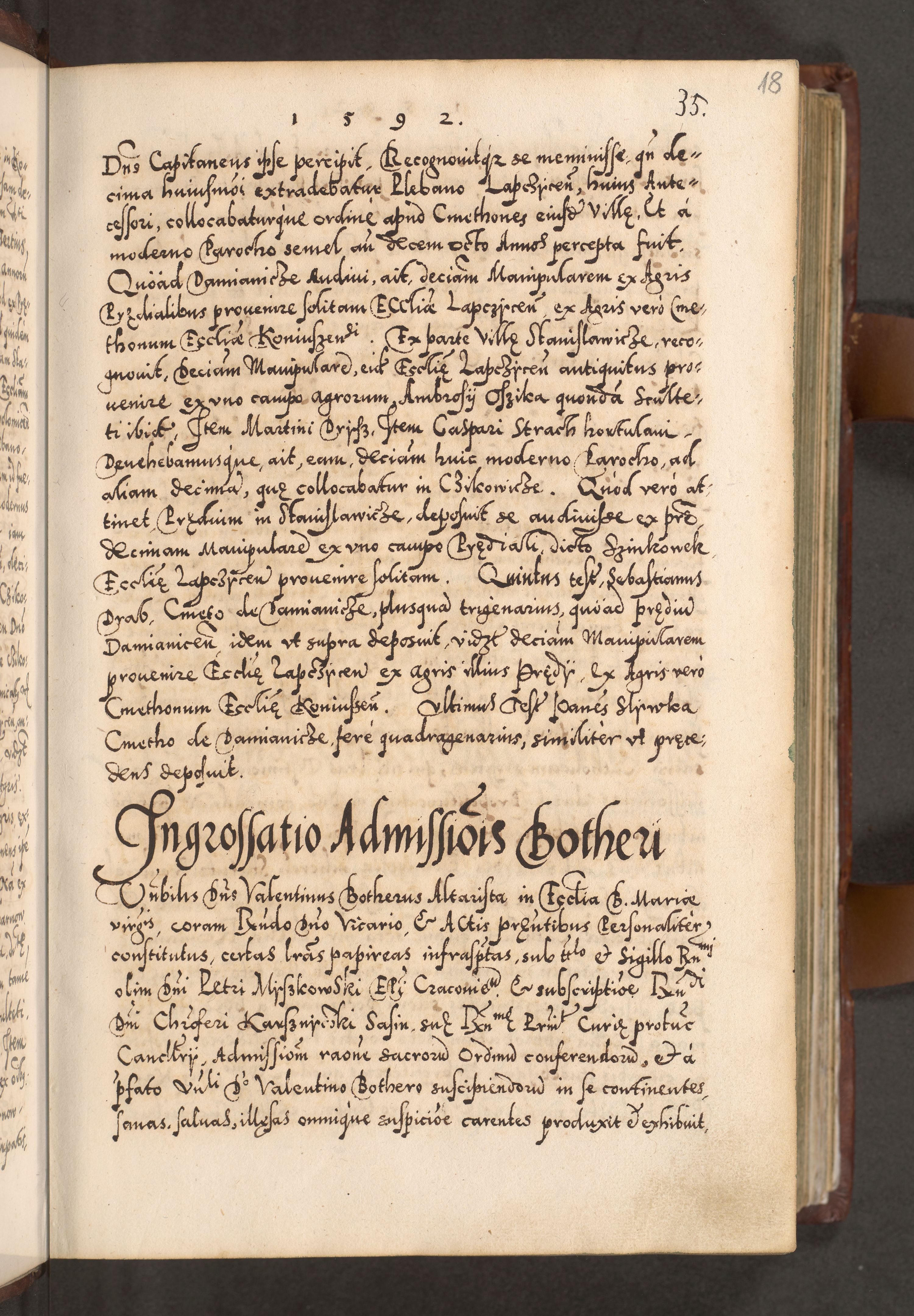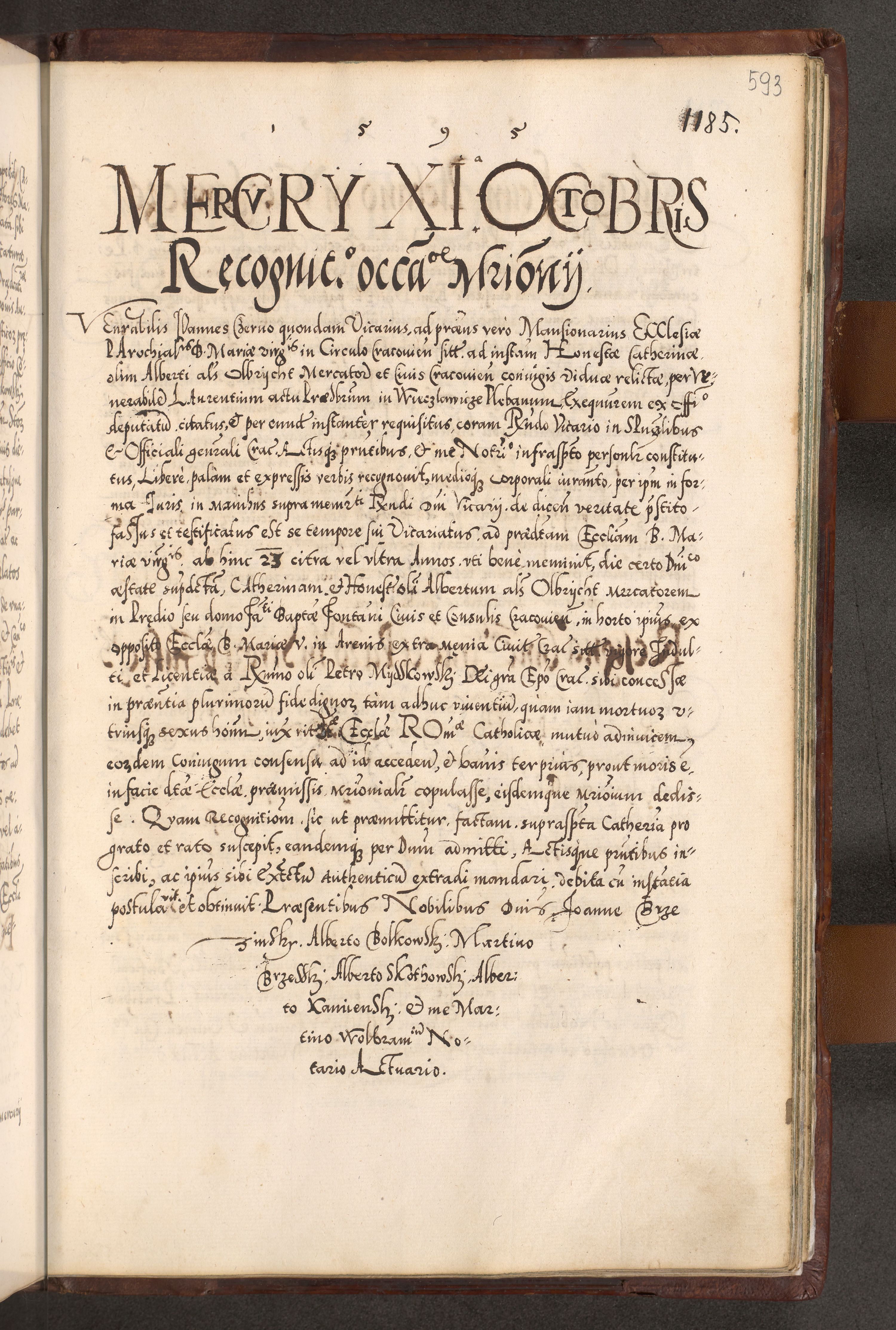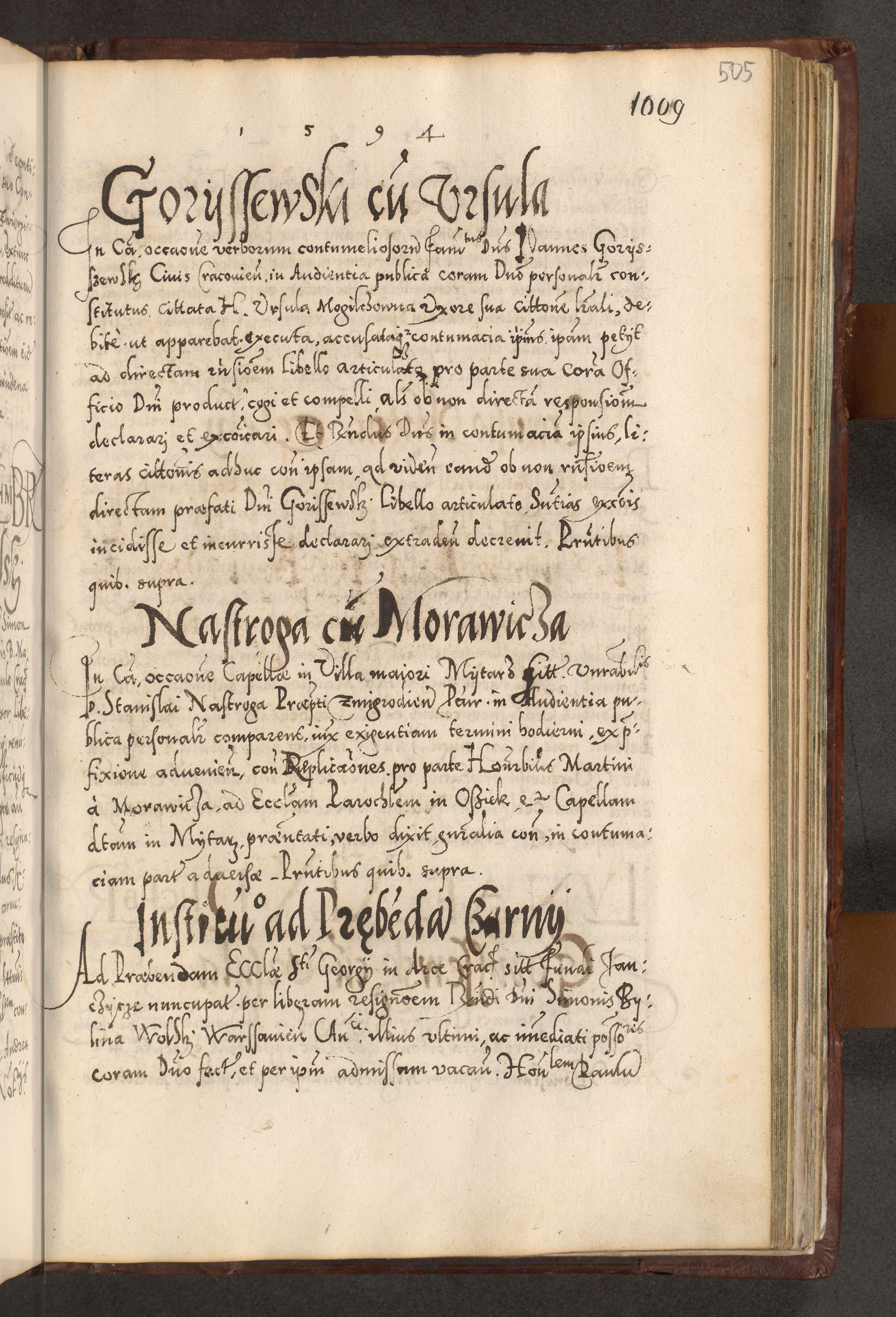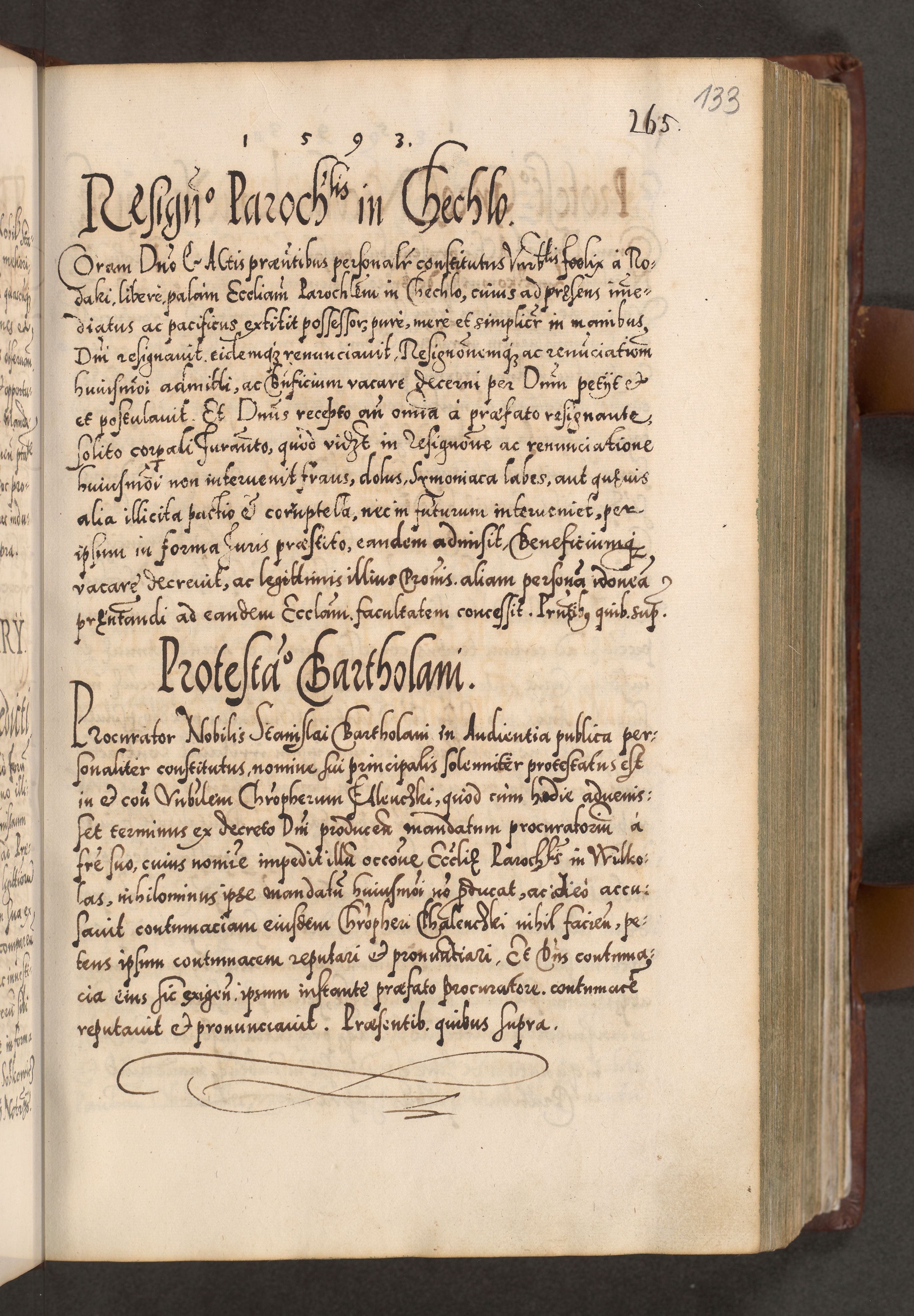 Illistrissimo et revedissimo in Christo Patre Domino Domino Georgio Rzadziwił Miserone Divina Sacrostae R. E. Tituli S. Sixti Presbitero Cardinali Duce in Olyka et Niesswiesz ad Gubernacula Ecclessiae Cracoviensis cuius administratorialem a Sancta Sede Apostolica obtinverat feliciter sedente. Acta actorum, causarum, sententiarum tam deffinitivarum quam interloquutoriarum decretorum, obligationum, quietationum, recognitionum, constitutionum procuratorum etc. coram Reverendo Domino Stanislao Crassinskz de Crasne Archidiacono Cracoviensis, Scholastico Gnesnesis, Custode Plocensis etc. Vicario et Officiali Generali Cracoviensi in Ano Domini Millesimo Quingentesimo Nonagesimo Primo cuius indictio quarta pontificatus SS. Domini Nostri Gregorii XIIII Anno I psius prio feliciter incipiut