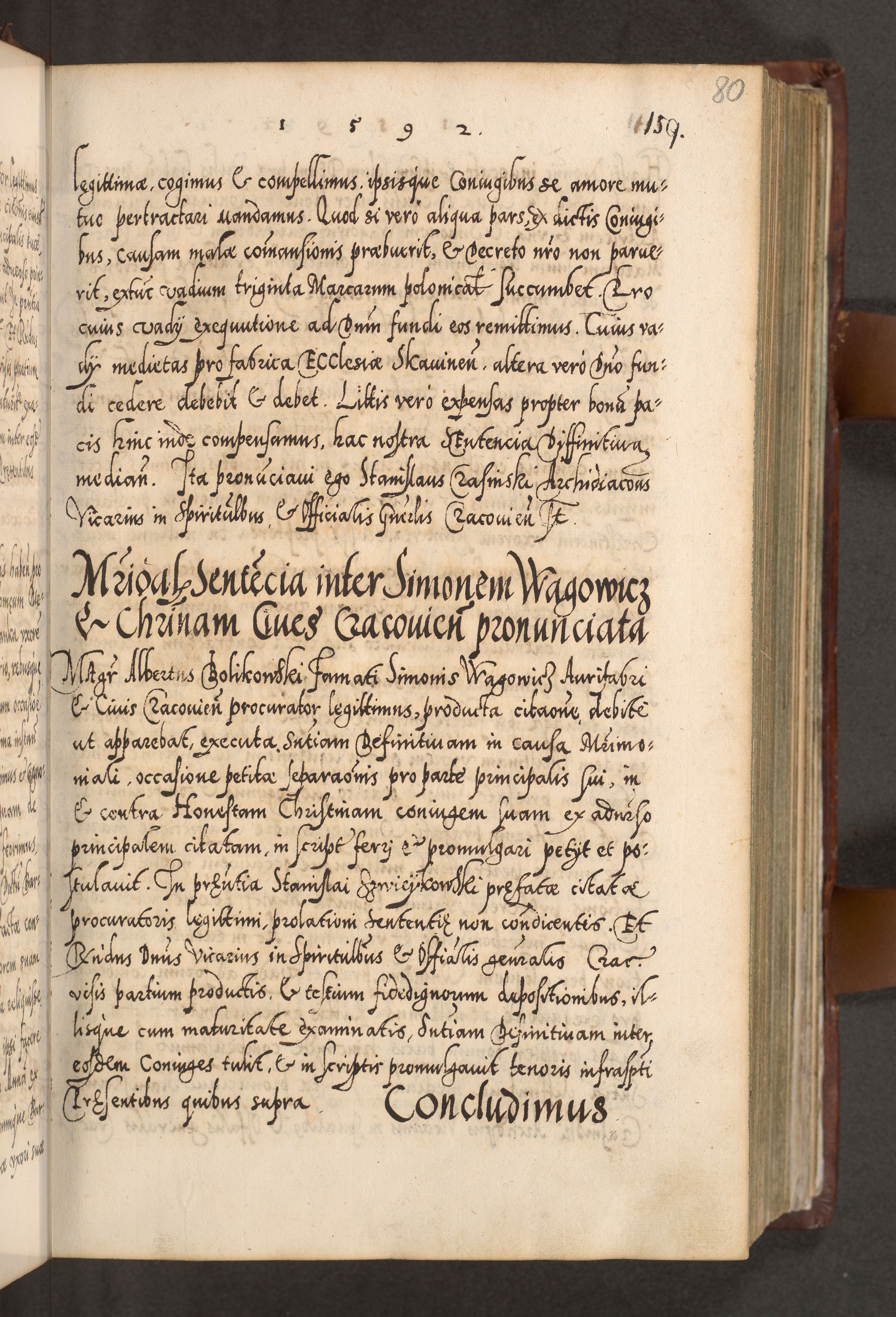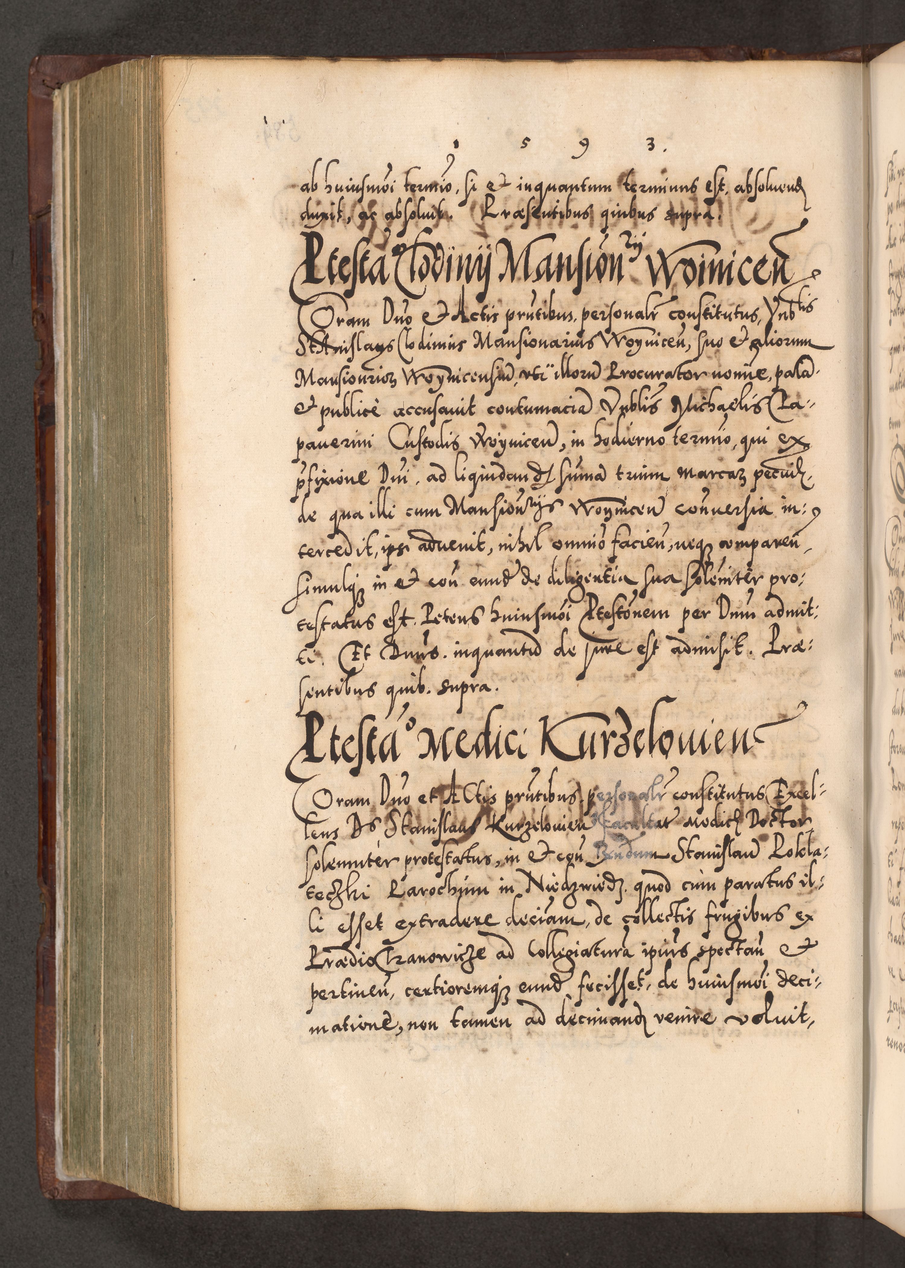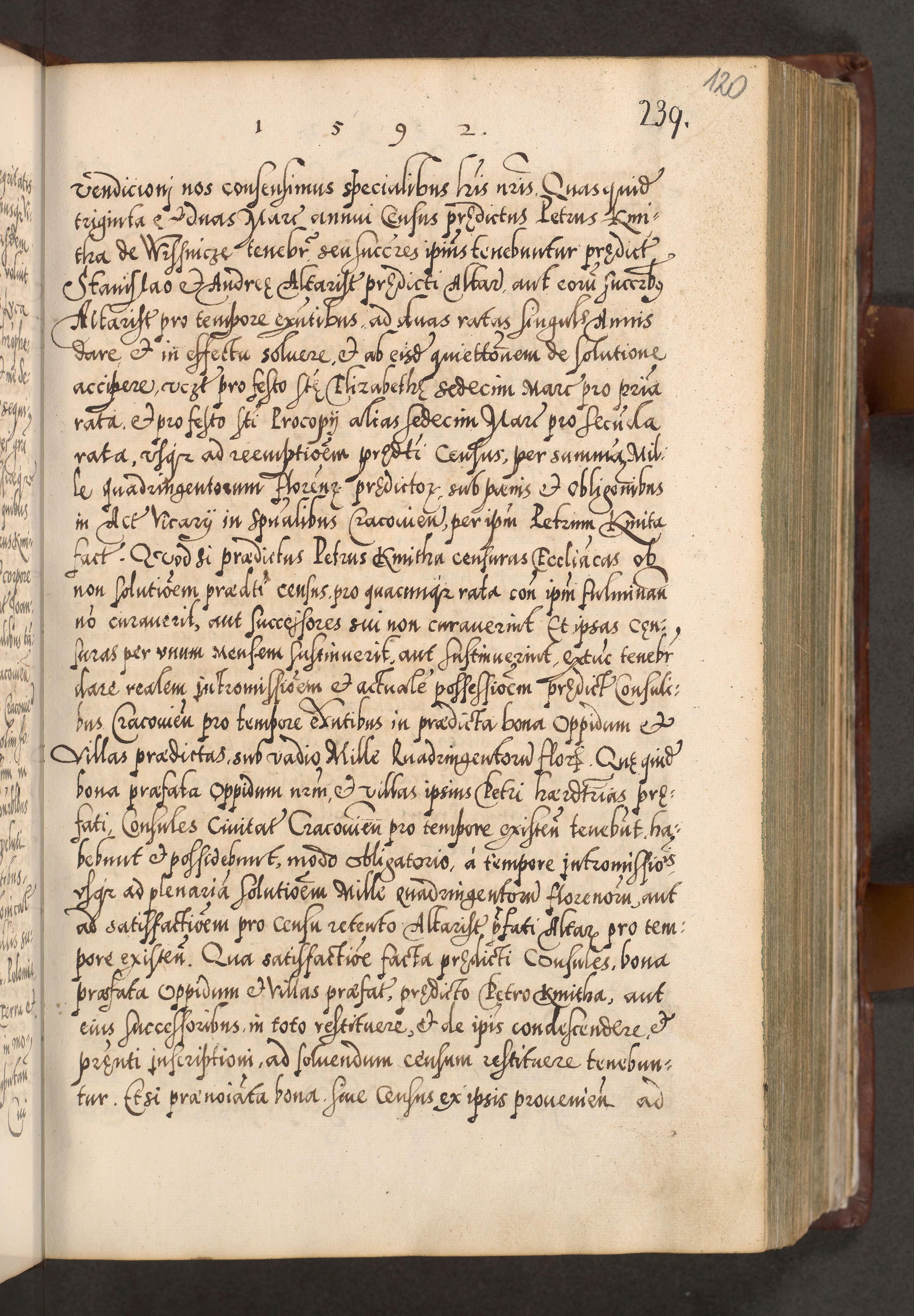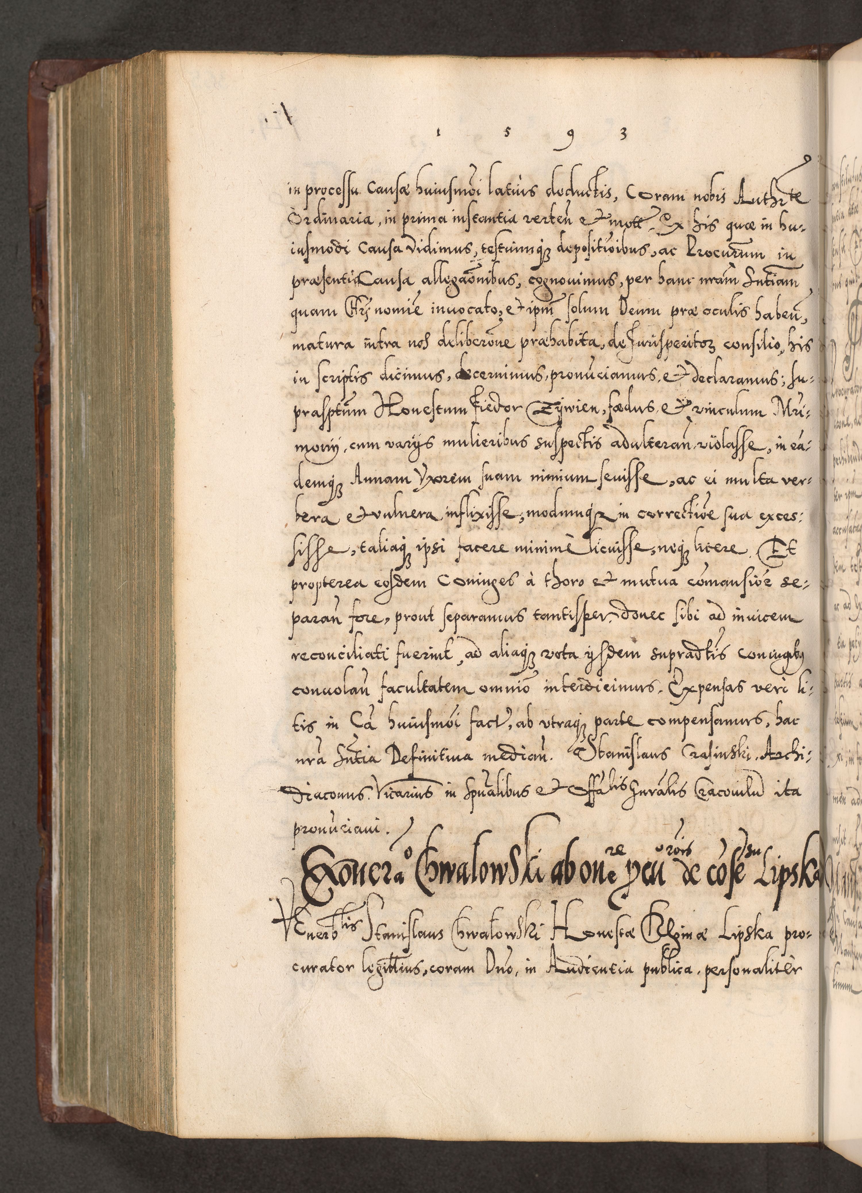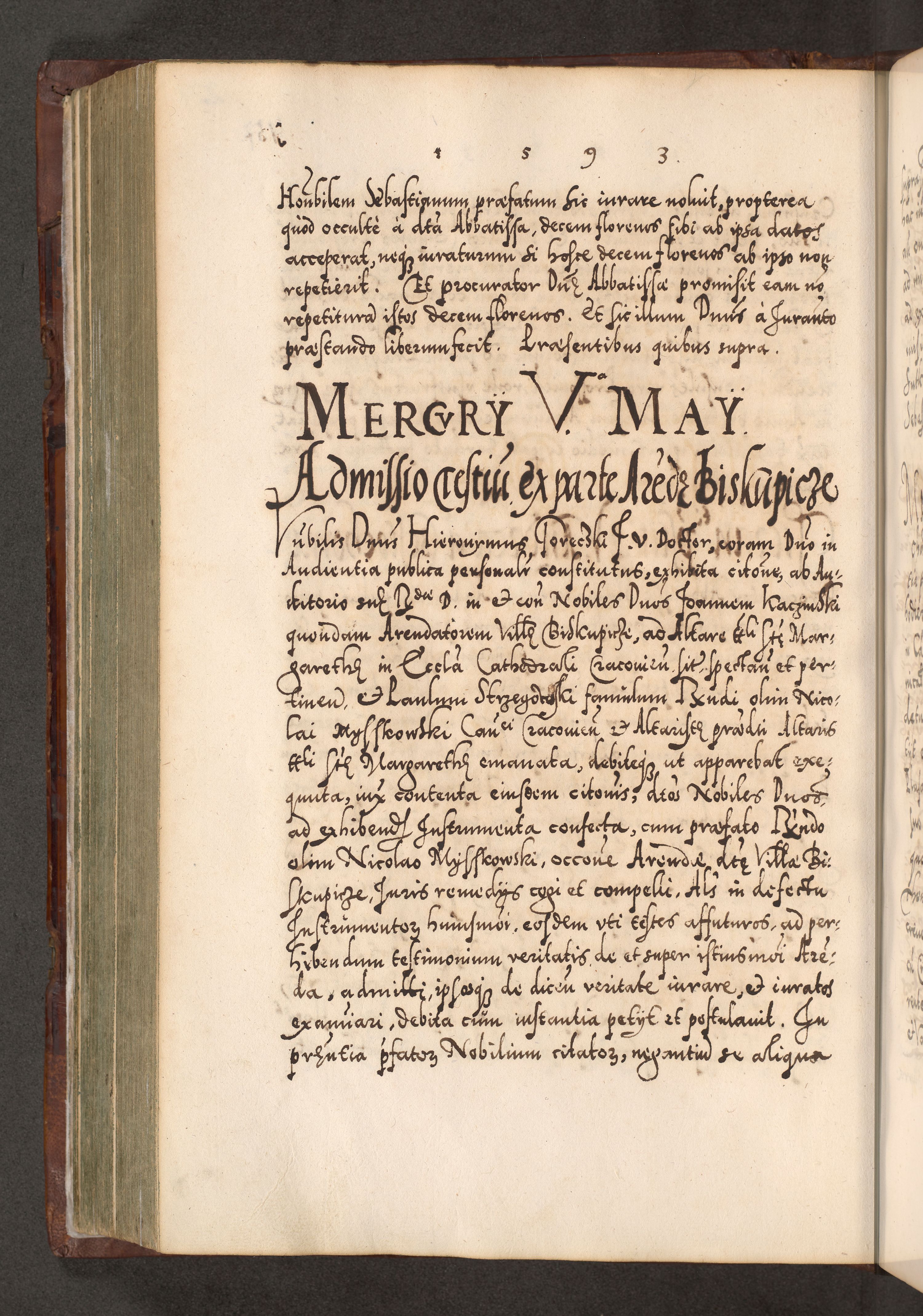 Illistrissimo et revedissimo in Christo Patre Domino Domino Georgio Rzadziwił Miserone Divina Sacrostae R. E. Tituli S. Sixti Presbitero Cardinali Duce in Olyka et Niesswiesz ad Gubernacula Ecclessiae Cracoviensis cuius administratorialem a Sancta Sede Apostolica obtinverat feliciter sedente. Acta actorum, causarum, sententiarum tam deffinitivarum quam interloquutoriarum decretorum, obligationum, quietationum, recognitionum, constitutionum procuratorum etc. coram Reverendo Domino Stanislao Crassinskz de Crasne Archidiacono Cracoviensis, Scholastico Gnesnesis, Custode Plocensis etc. Vicario et Officiali Generali Cracoviensi in Ano Domini Millesimo Quingentesimo Nonagesimo Primo cuius indictio quarta pontificatus SS. Domini Nostri Gregorii XIIII Anno I psius prio feliciter incipiut