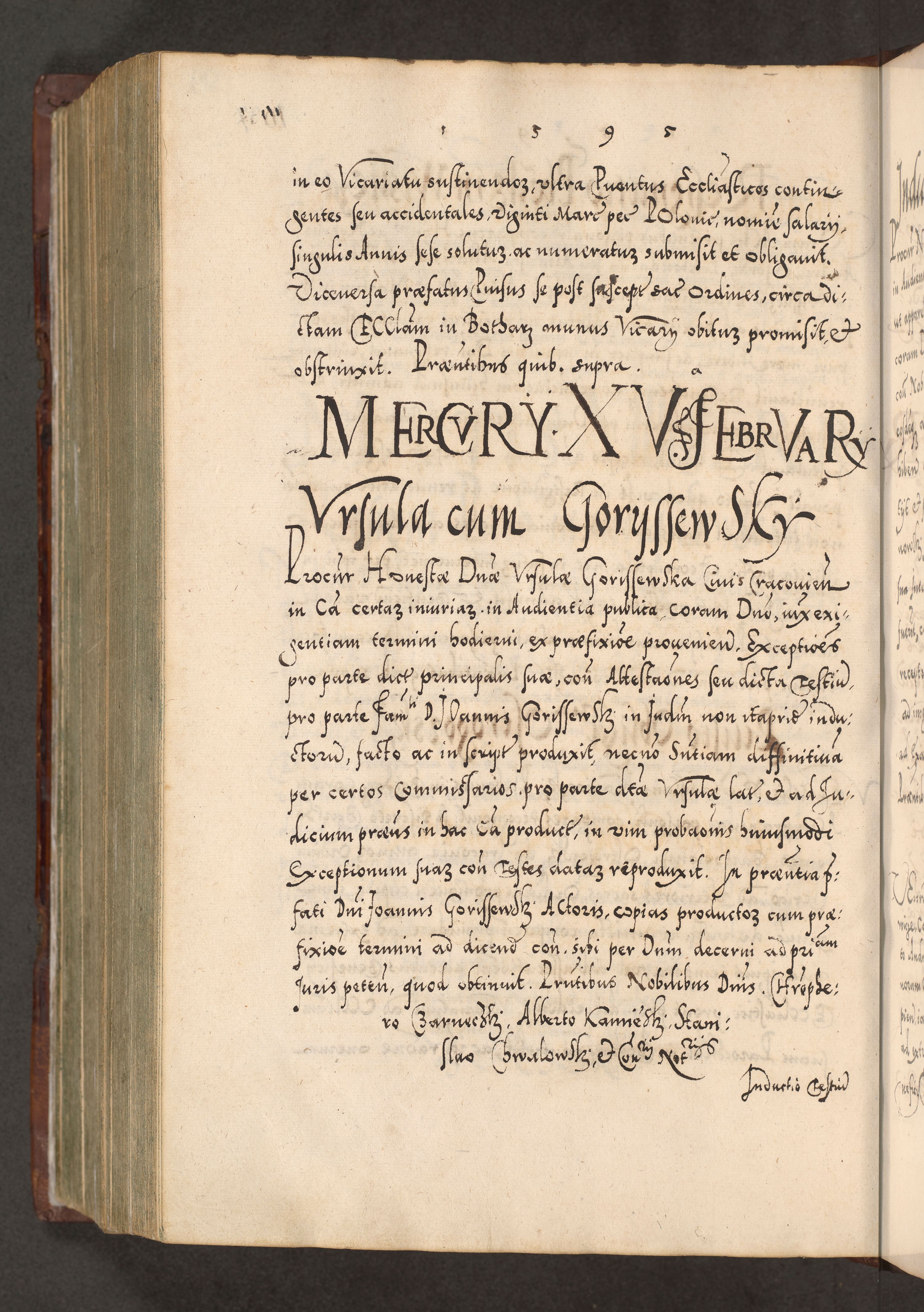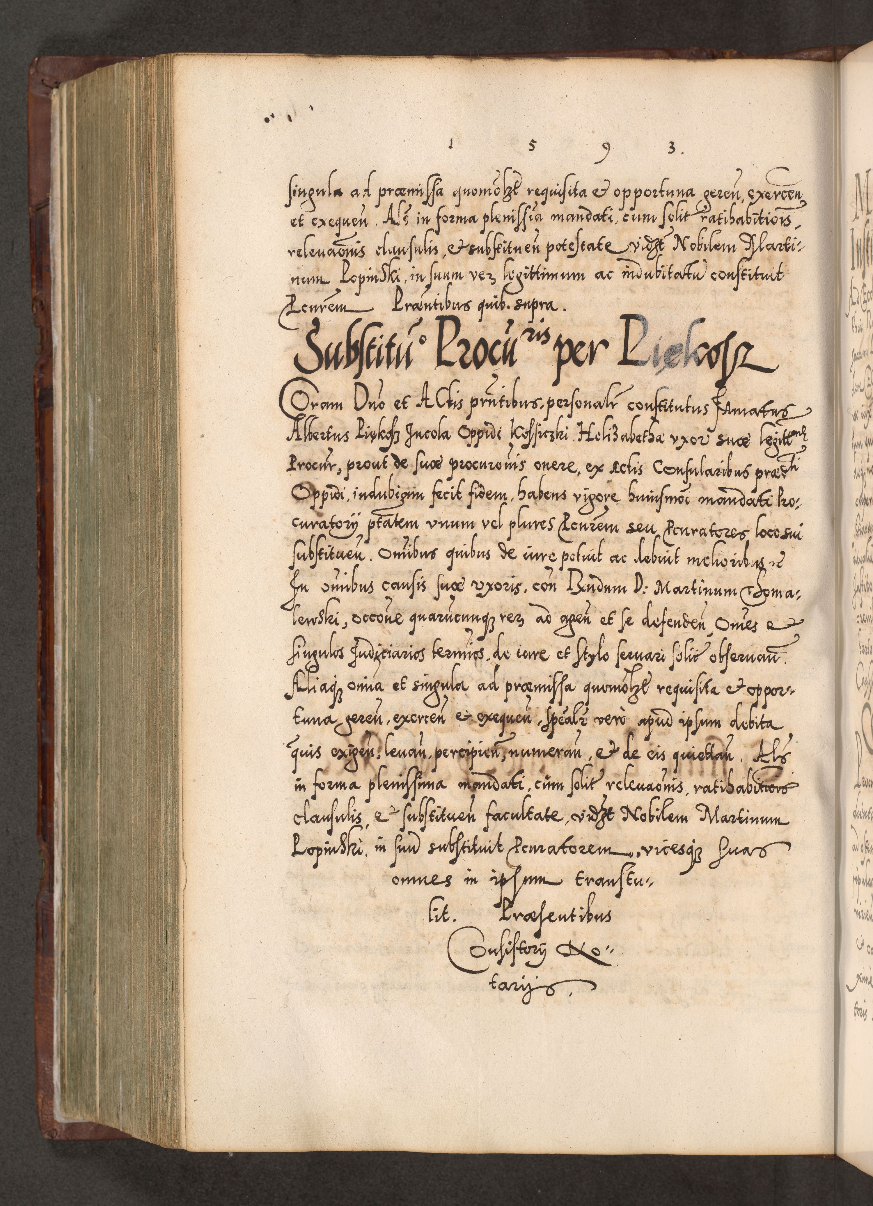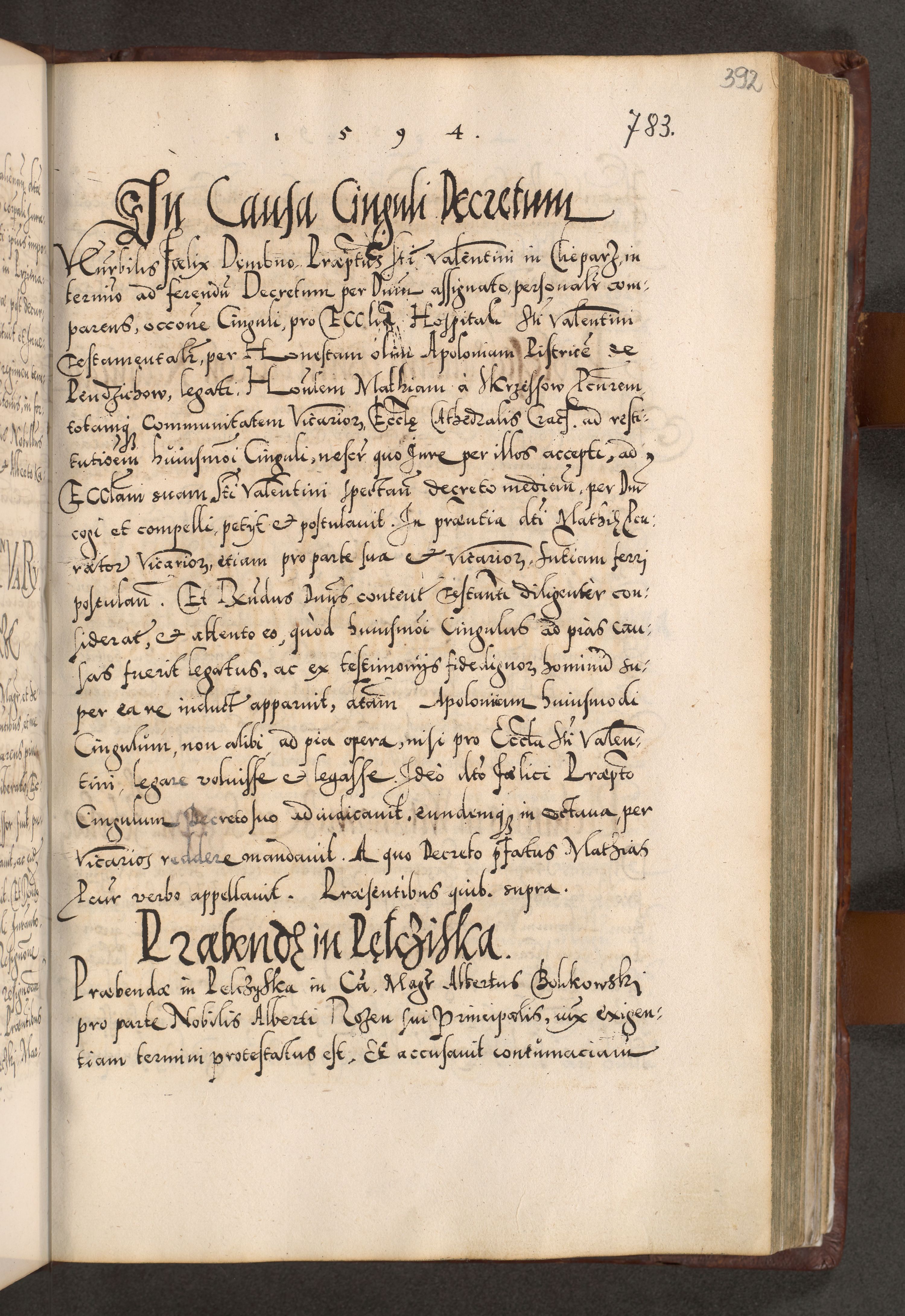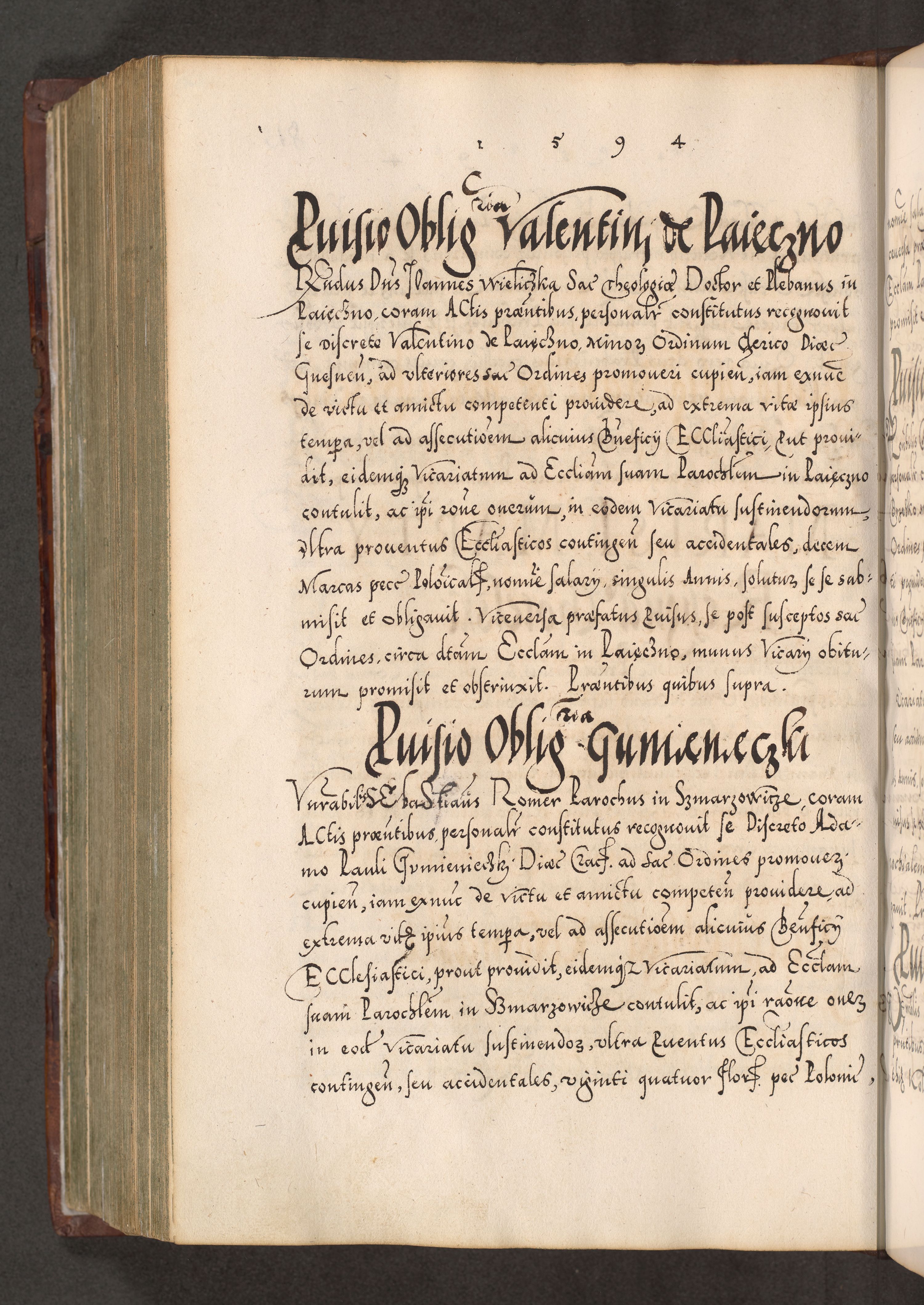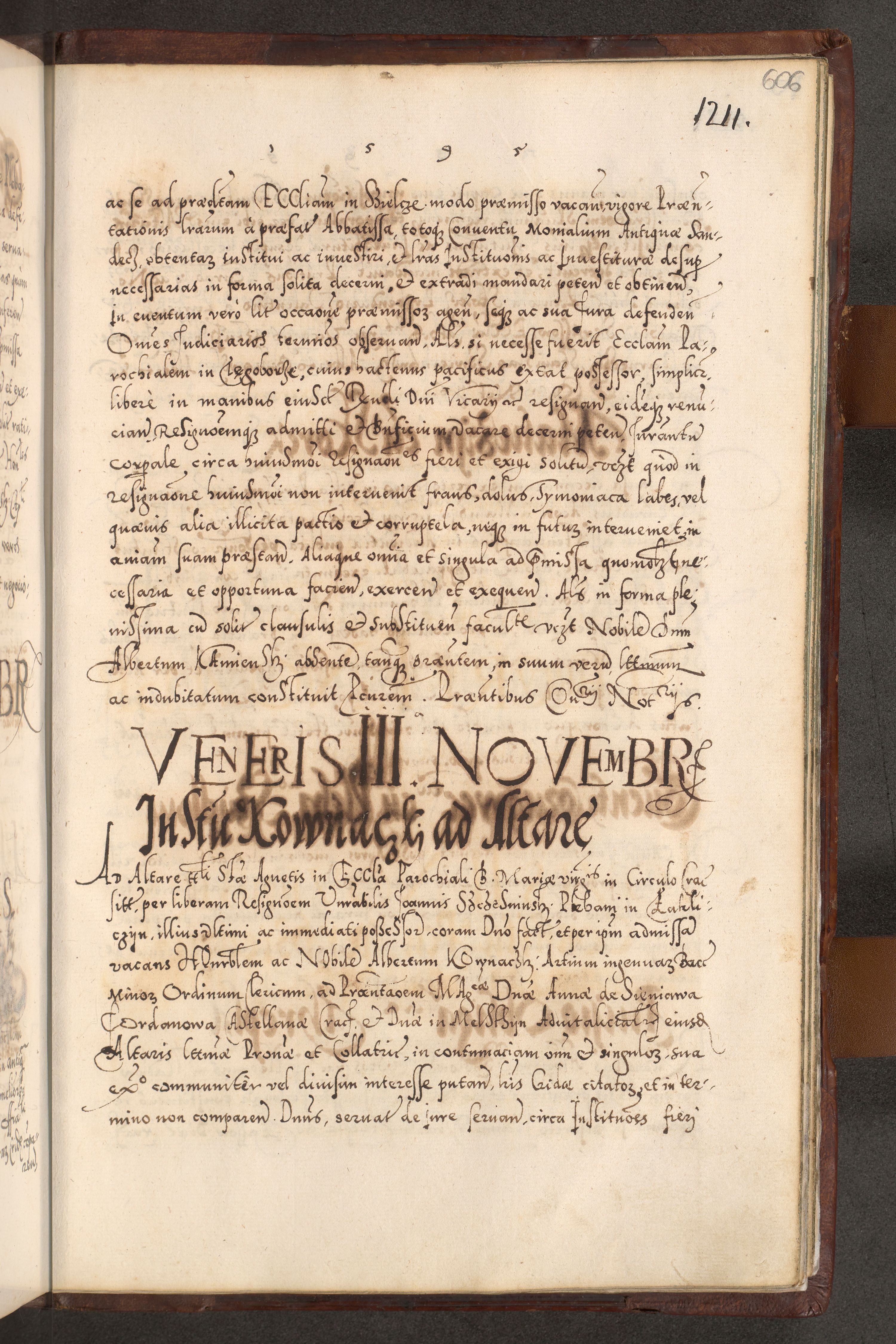 Illistrissimo et revedissimo in Christo Patre Domino Domino Georgio Rzadziwił Miserone Divina Sacrostae R. E. Tituli S. Sixti Presbitero Cardinali Duce in Olyka et Niesswiesz ad Gubernacula Ecclessiae Cracoviensis cuius administratorialem a Sancta Sede Apostolica obtinverat feliciter sedente. Acta actorum, causarum, sententiarum tam deffinitivarum quam interloquutoriarum decretorum, obligationum, quietationum, recognitionum, constitutionum procuratorum etc. coram Reverendo Domino Stanislao Crassinskz de Crasne Archidiacono Cracoviensis, Scholastico Gnesnesis, Custode Plocensis etc. Vicario et Officiali Generali Cracoviensi in Ano Domini Millesimo Quingentesimo Nonagesimo Primo cuius indictio quarta pontificatus SS. Domini Nostri Gregorii XIIII Anno I psius prio feliciter incipiut