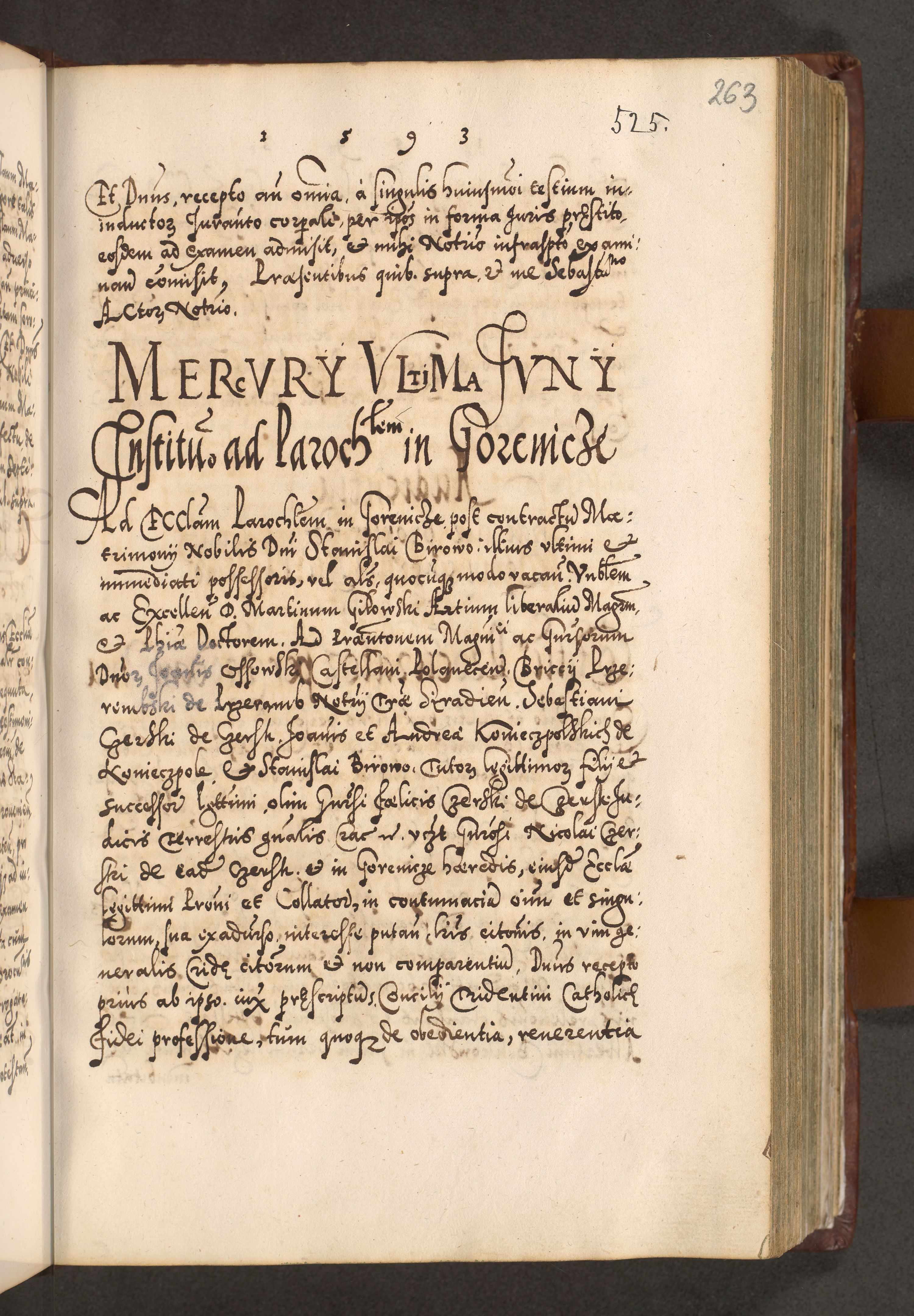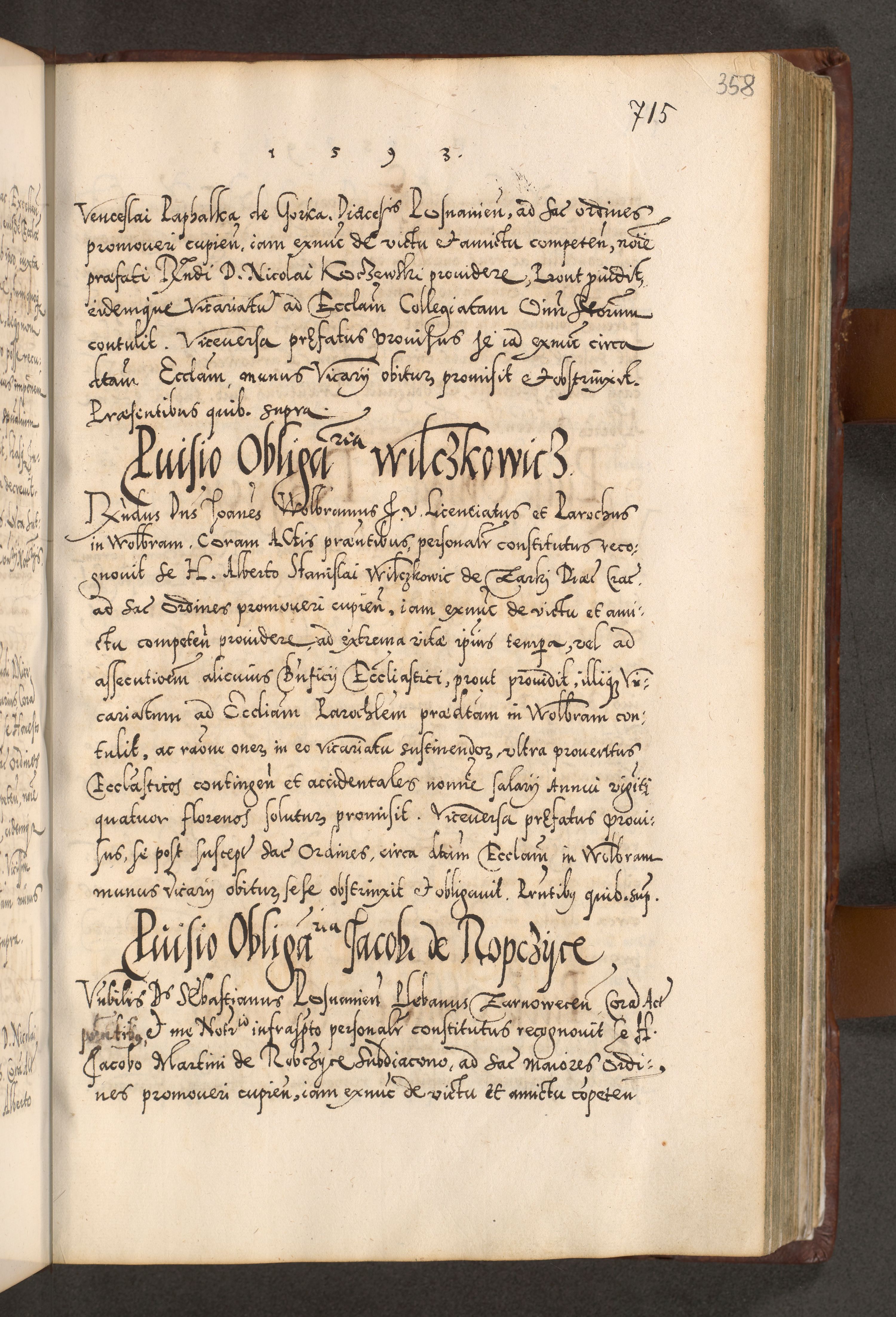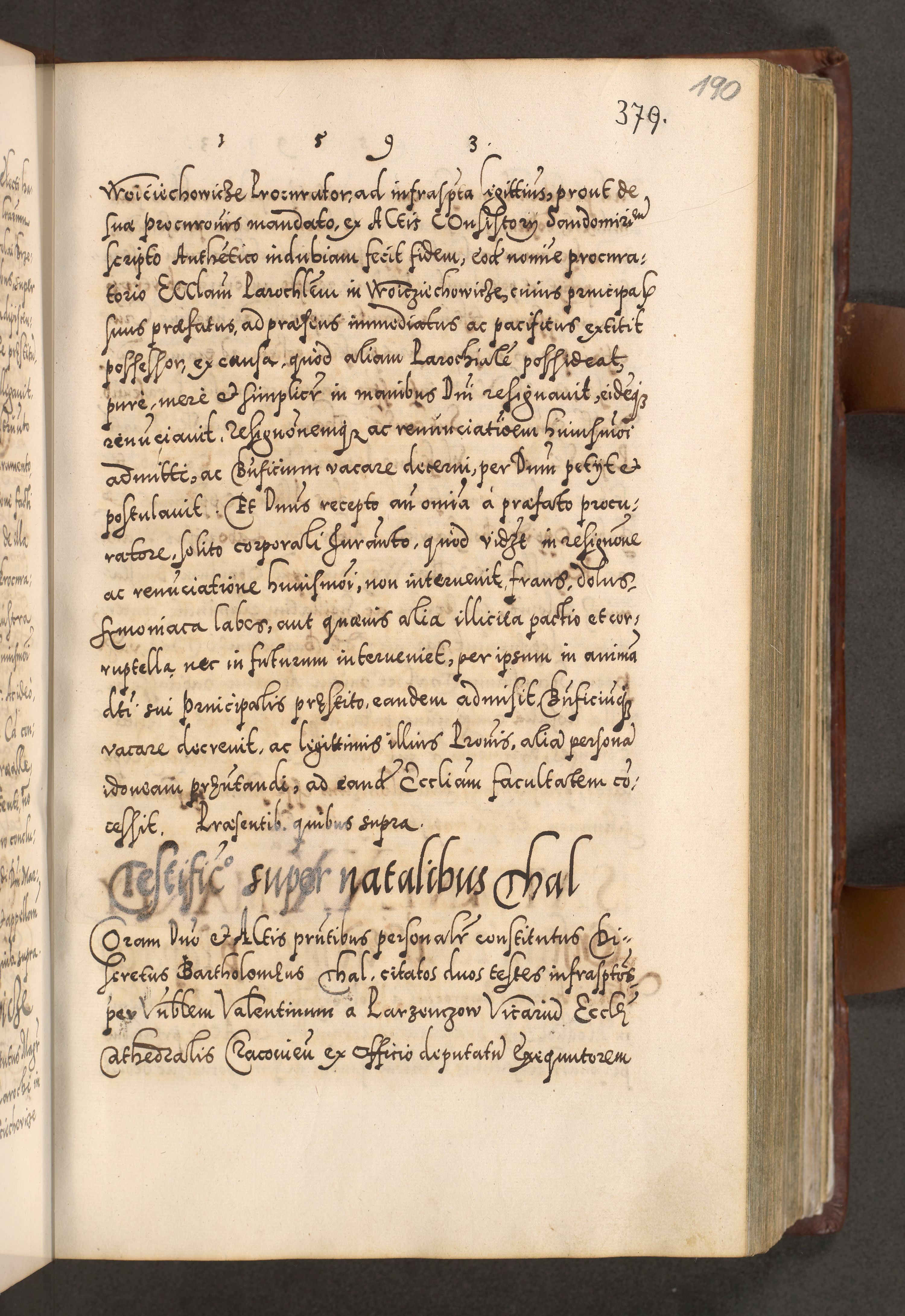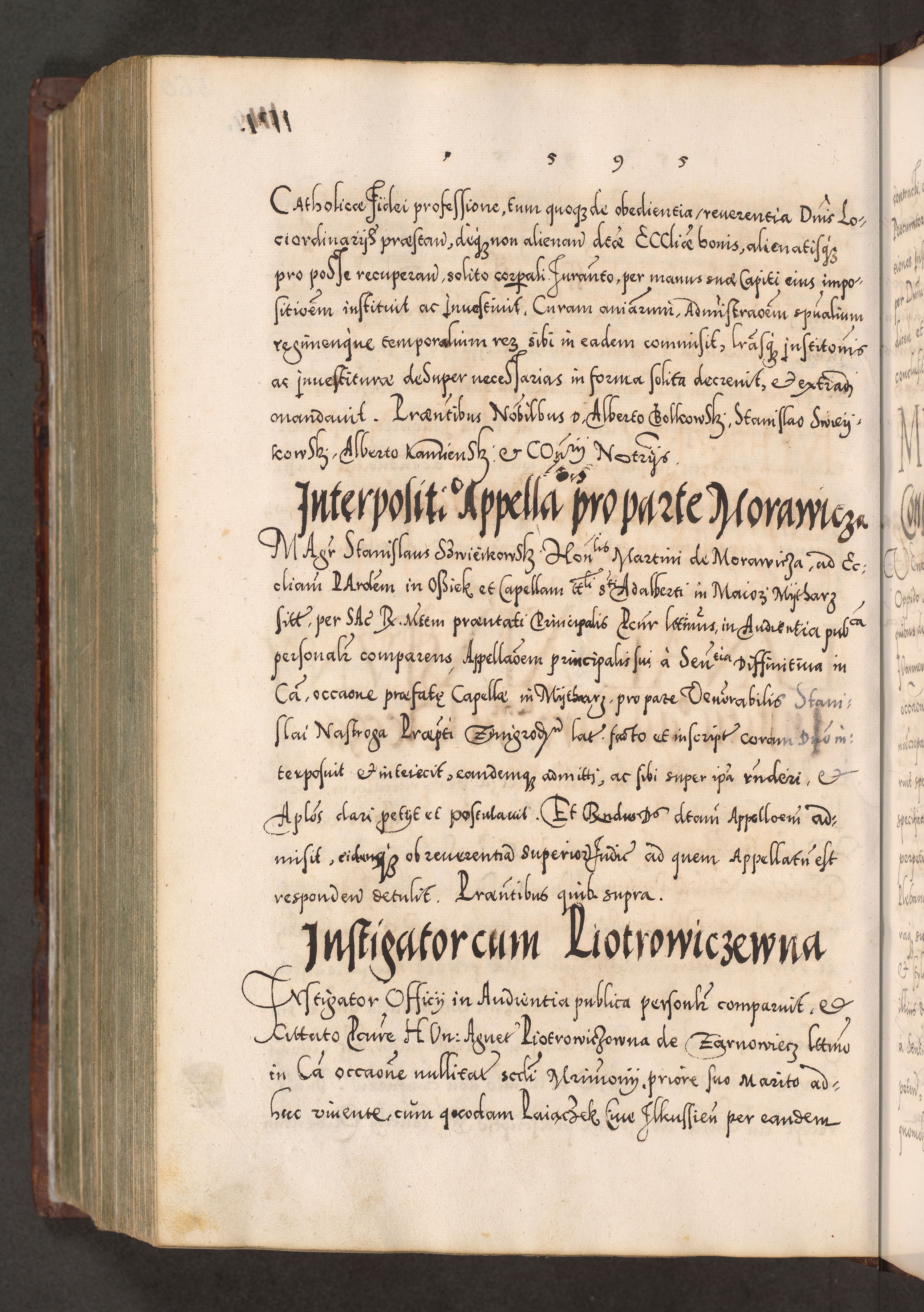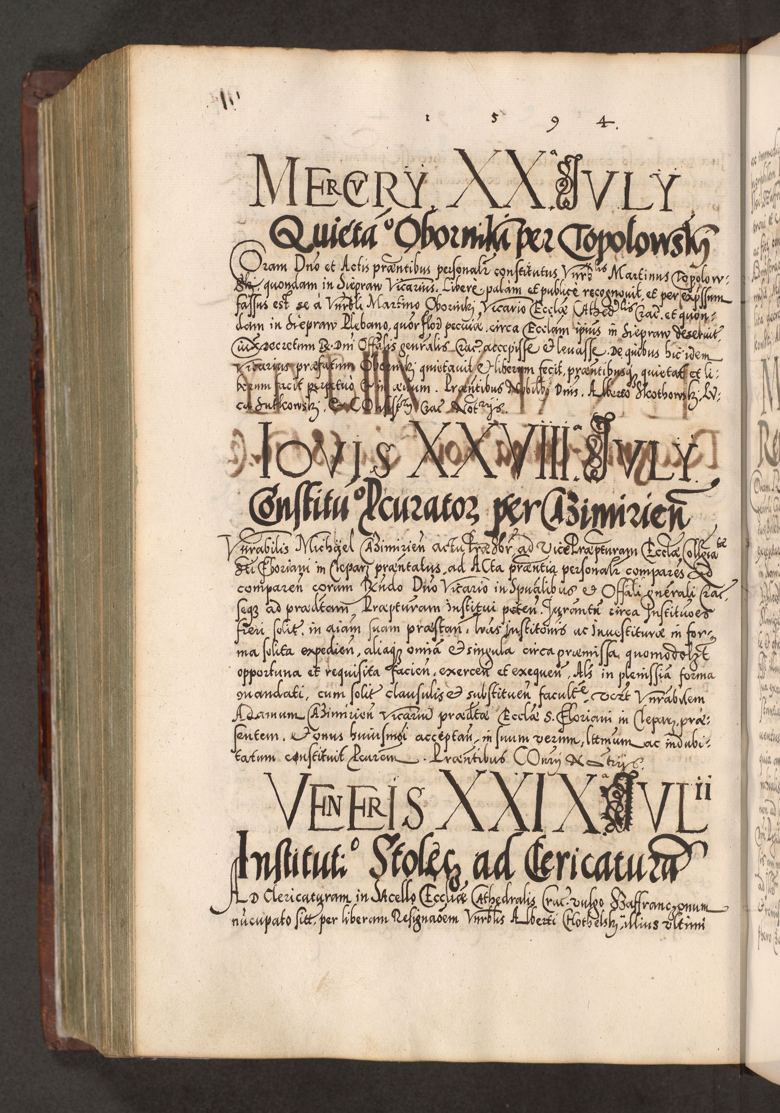 Illistrissimo et revedissimo in Christo Patre Domino Domino Georgio Rzadziwił Miserone Divina Sacrostae R. E. Tituli S. Sixti Presbitero Cardinali Duce in Olyka et Niesswiesz ad Gubernacula Ecclessiae Cracoviensis cuius administratorialem a Sancta Sede Apostolica obtinverat feliciter sedente. Acta actorum, causarum, sententiarum tam deffinitivarum quam interloquutoriarum decretorum, obligationum, quietationum, recognitionum, constitutionum procuratorum etc. coram Reverendo Domino Stanislao Crassinskz de Crasne Archidiacono Cracoviensis, Scholastico Gnesnesis, Custode Plocensis etc. Vicario et Officiali Generali Cracoviensi in Ano Domini Millesimo Quingentesimo Nonagesimo Primo cuius indictio quarta pontificatus SS. Domini Nostri Gregorii XIIII Anno I psius prio feliciter incipiut
