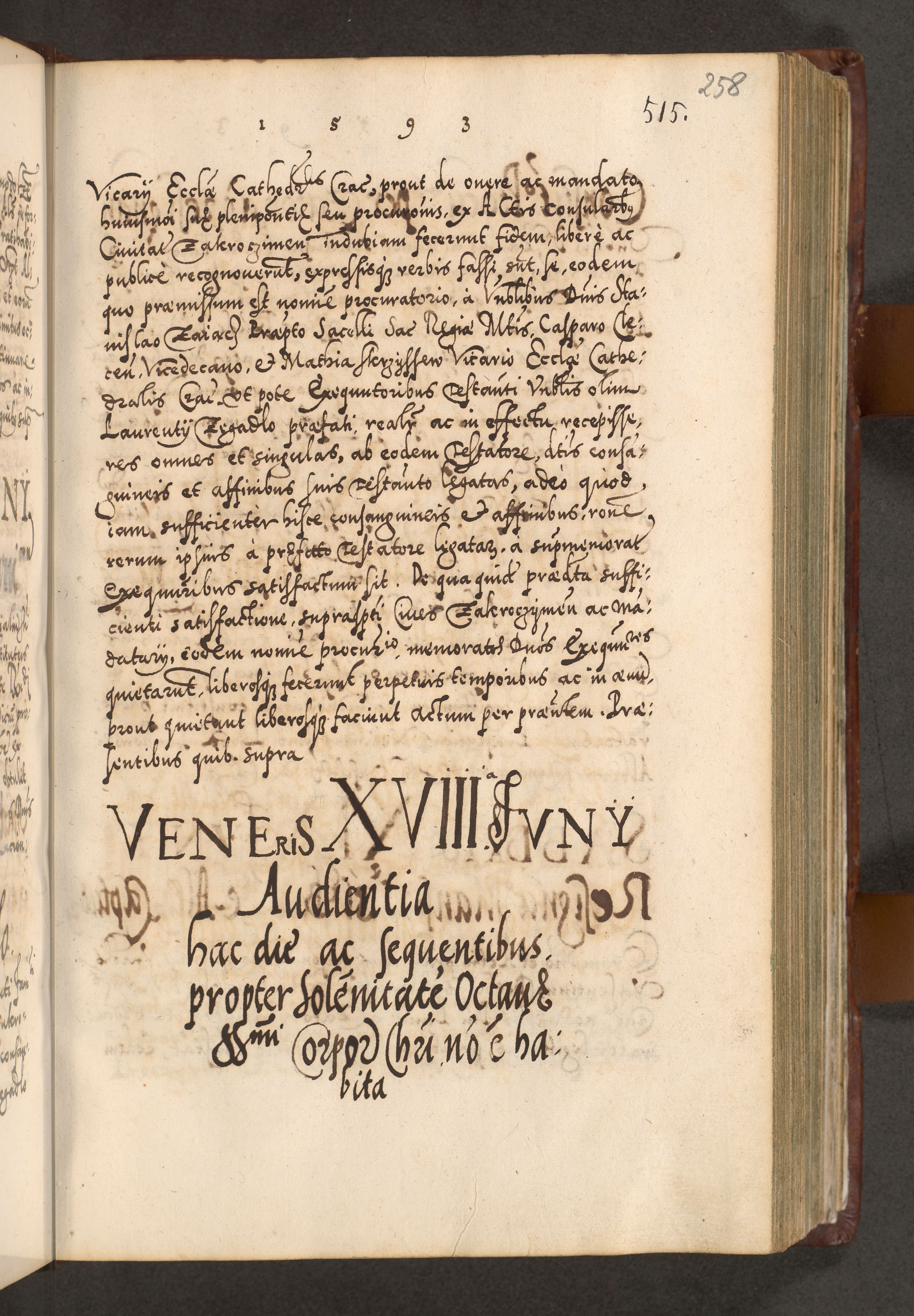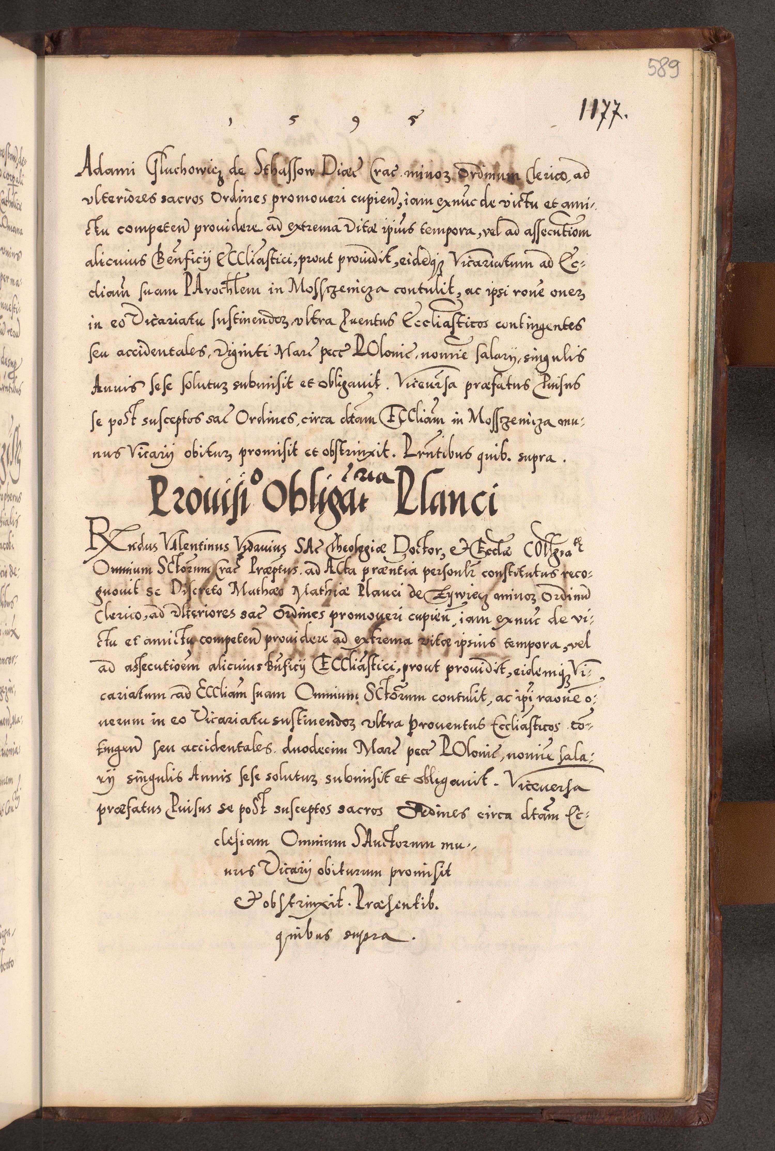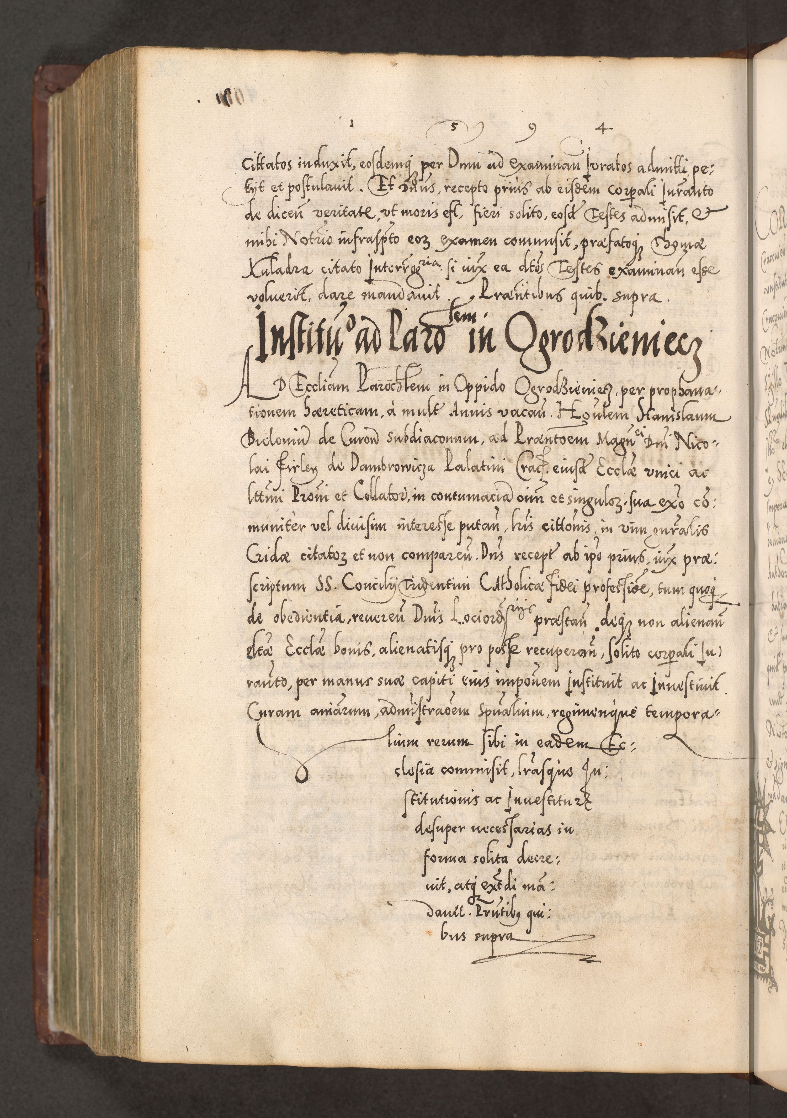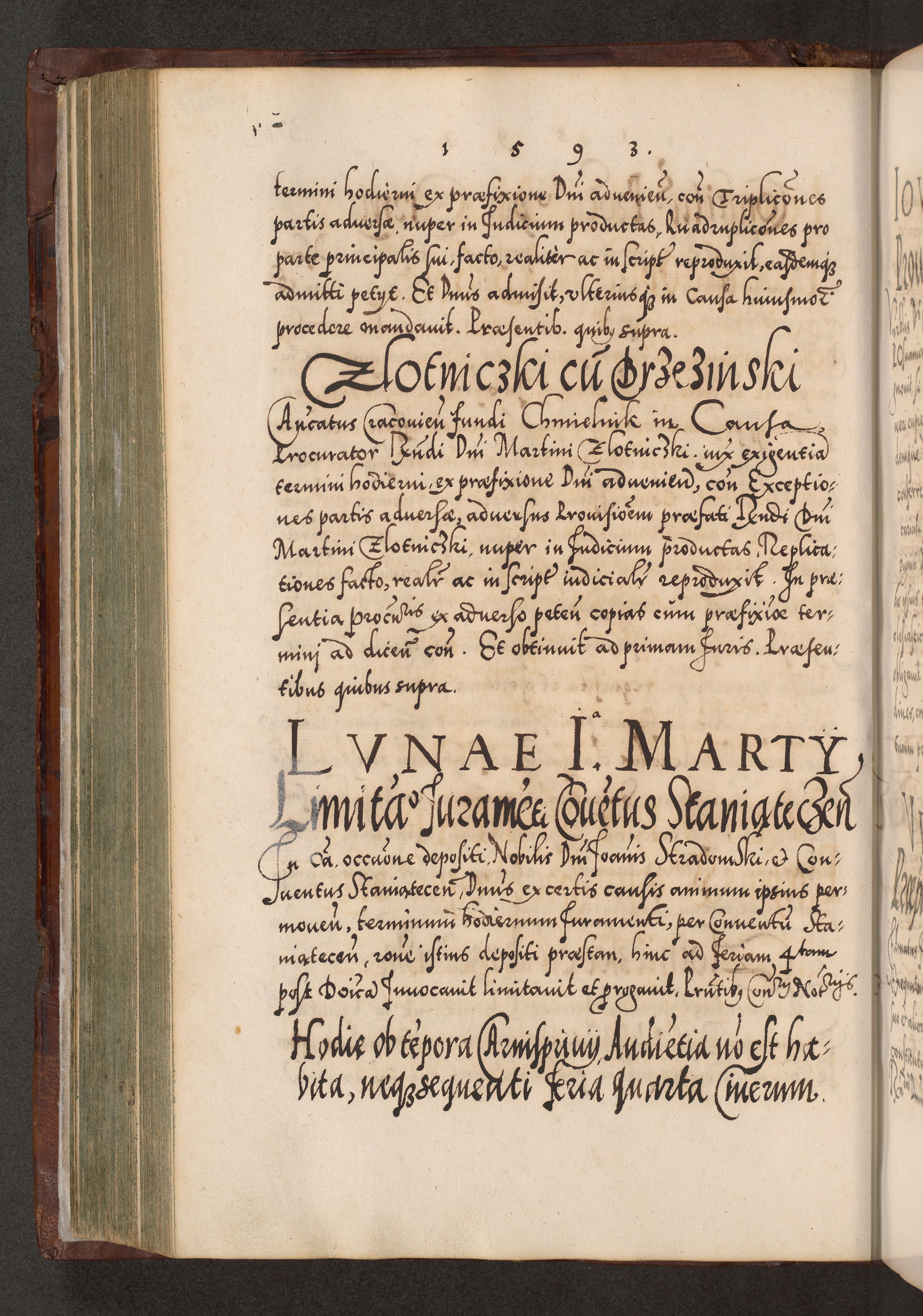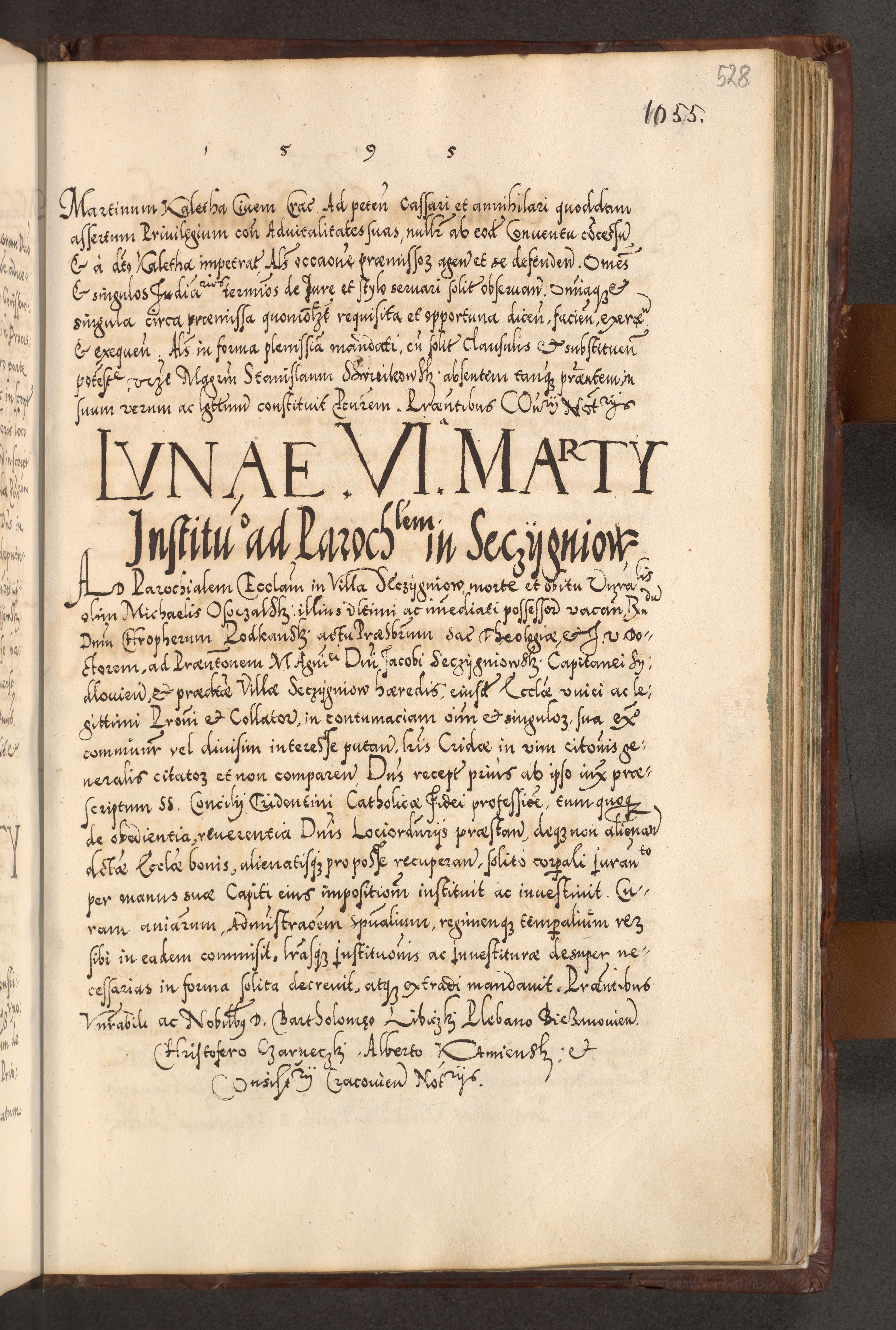 Illistrissimo et revedissimo in Christo Patre Domino Domino Georgio Rzadziwił Miserone Divina Sacrostae R. E. Tituli S. Sixti Presbitero Cardinali Duce in Olyka et Niesswiesz ad Gubernacula Ecclessiae Cracoviensis cuius administratorialem a Sancta Sede Apostolica obtinverat feliciter sedente. Acta actorum, causarum, sententiarum tam deffinitivarum quam interloquutoriarum decretorum, obligationum, quietationum, recognitionum, constitutionum procuratorum etc. coram Reverendo Domino Stanislao Crassinskz de Crasne Archidiacono Cracoviensis, Scholastico Gnesnesis, Custode Plocensis etc. Vicario et Officiali Generali Cracoviensi in Ano Domini Millesimo Quingentesimo Nonagesimo Primo cuius indictio quarta pontificatus SS. Domini Nostri Gregorii XIIII Anno I psius prio feliciter incipiut