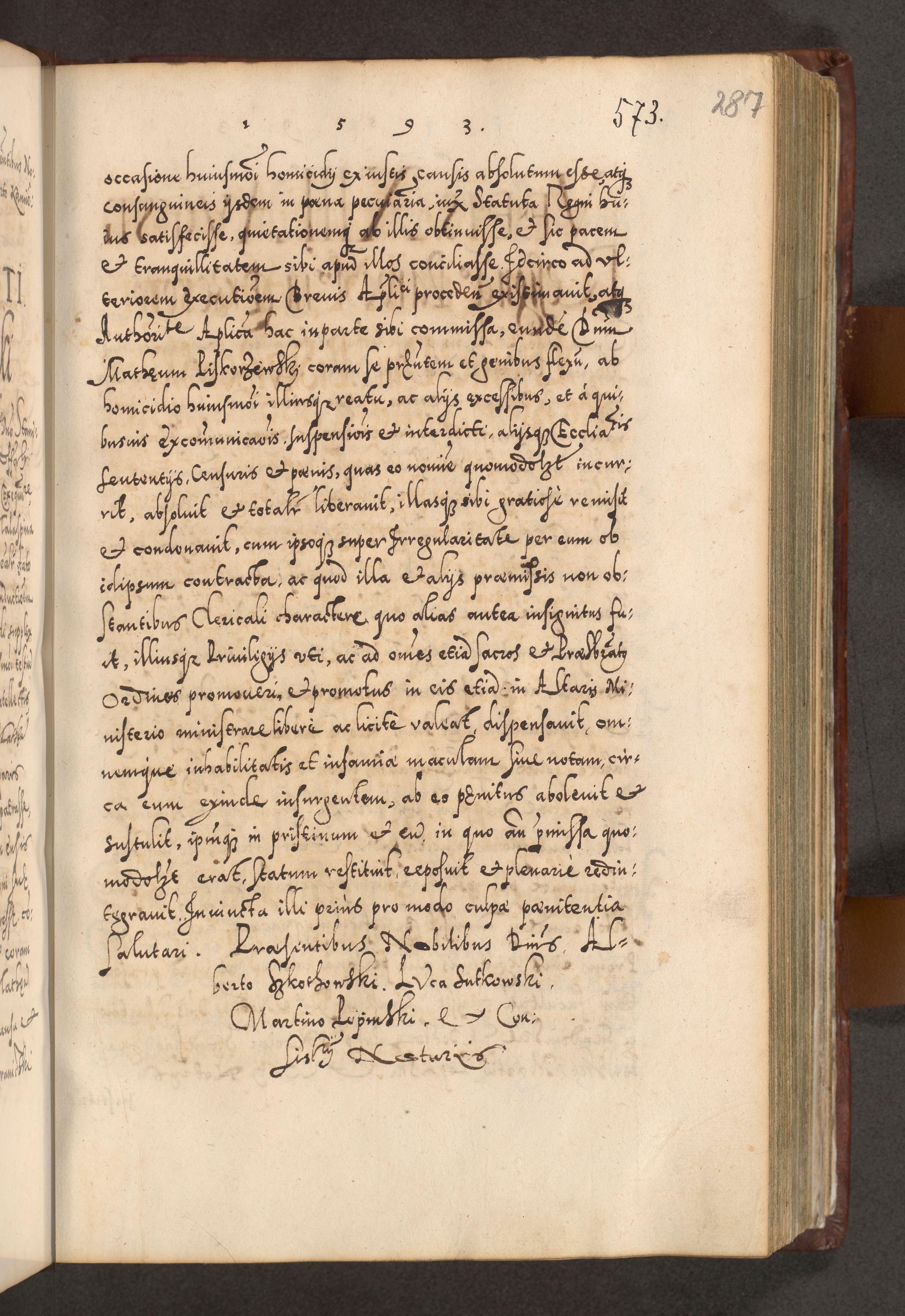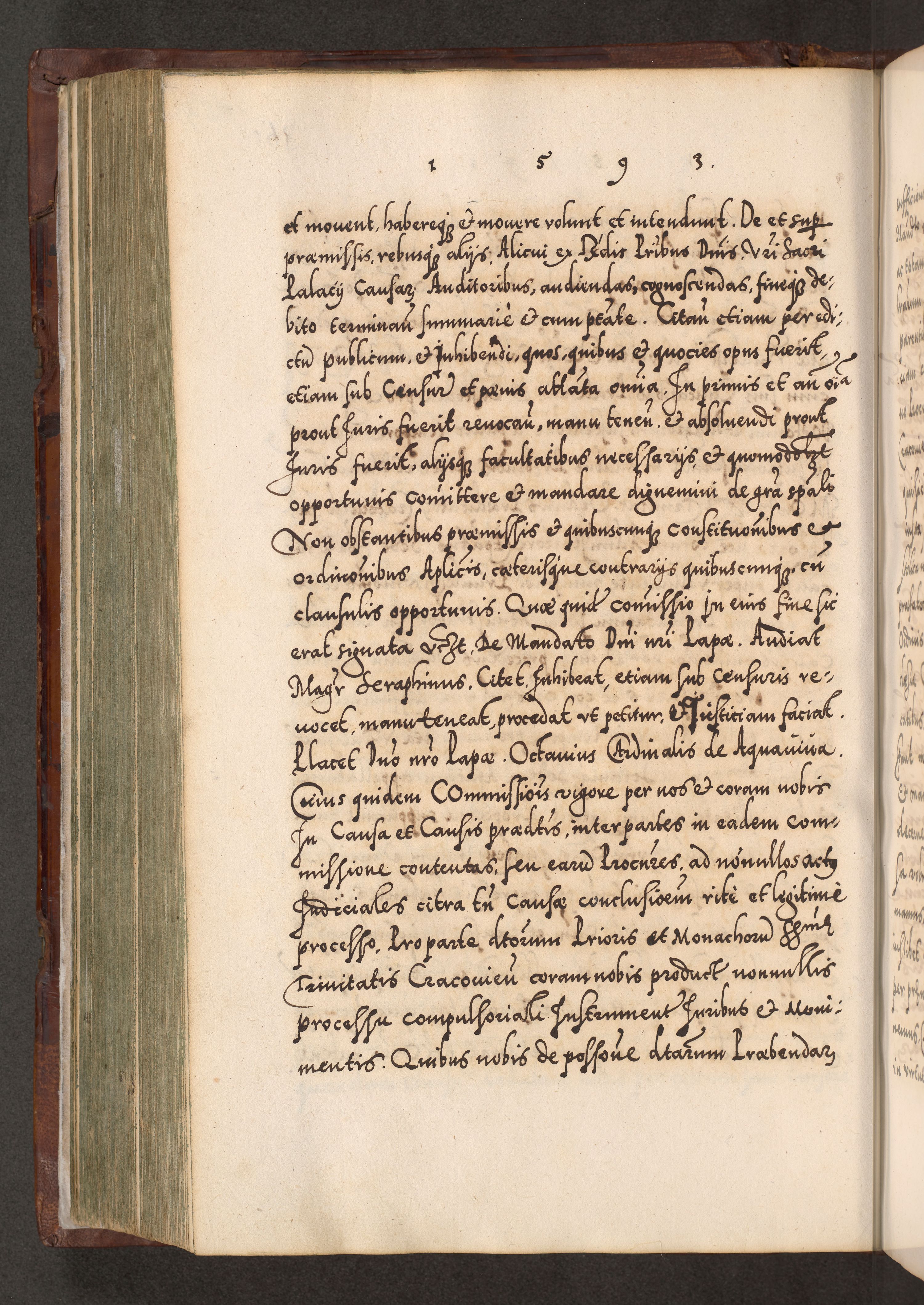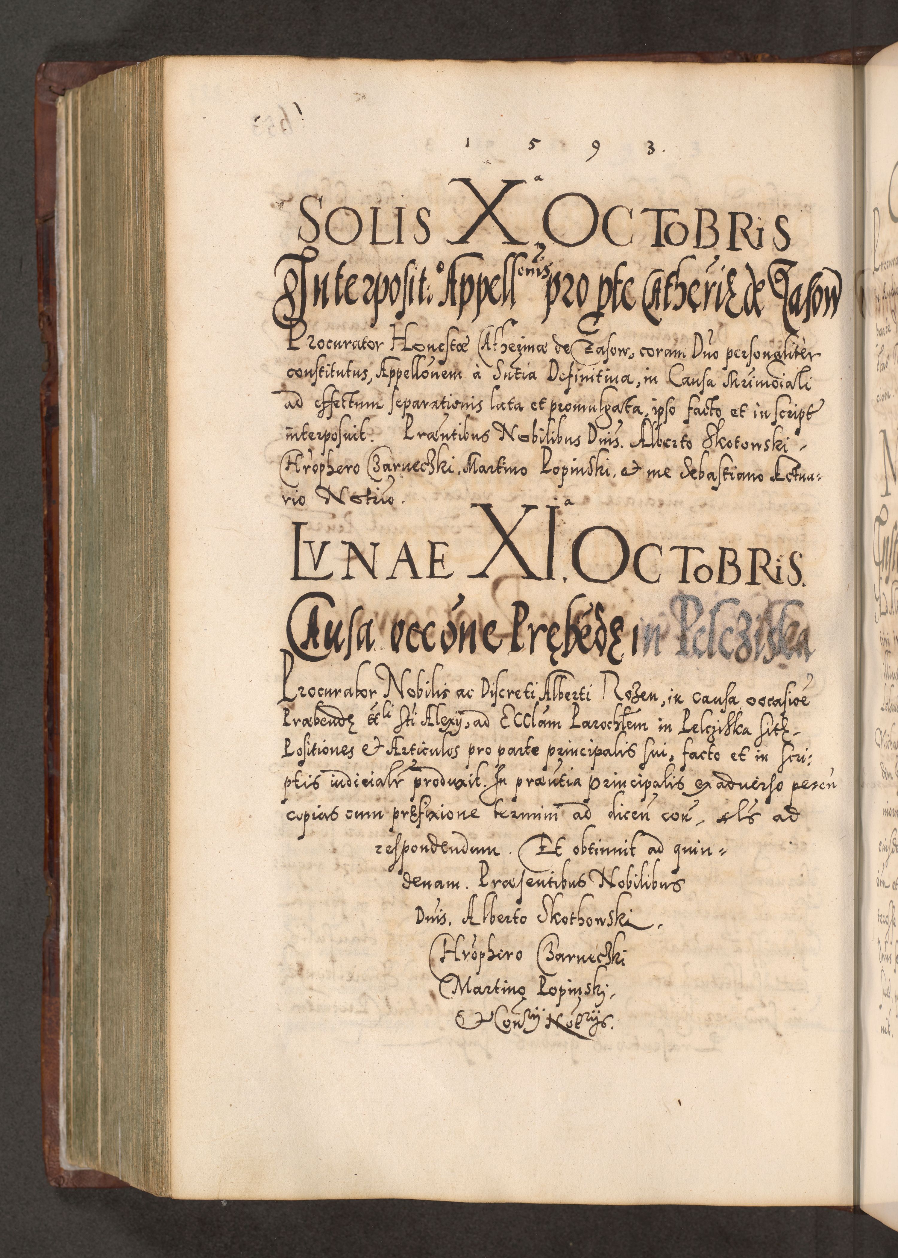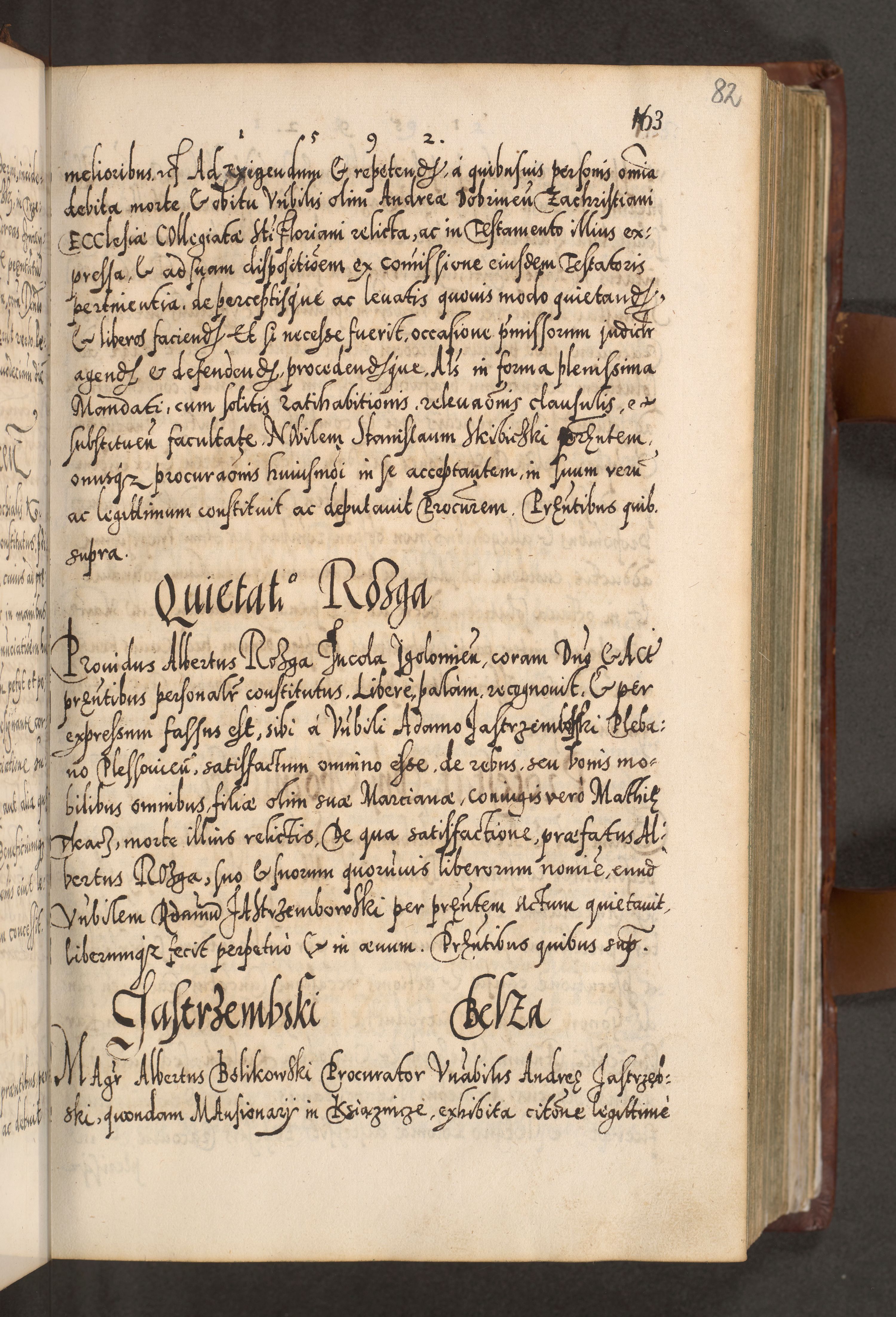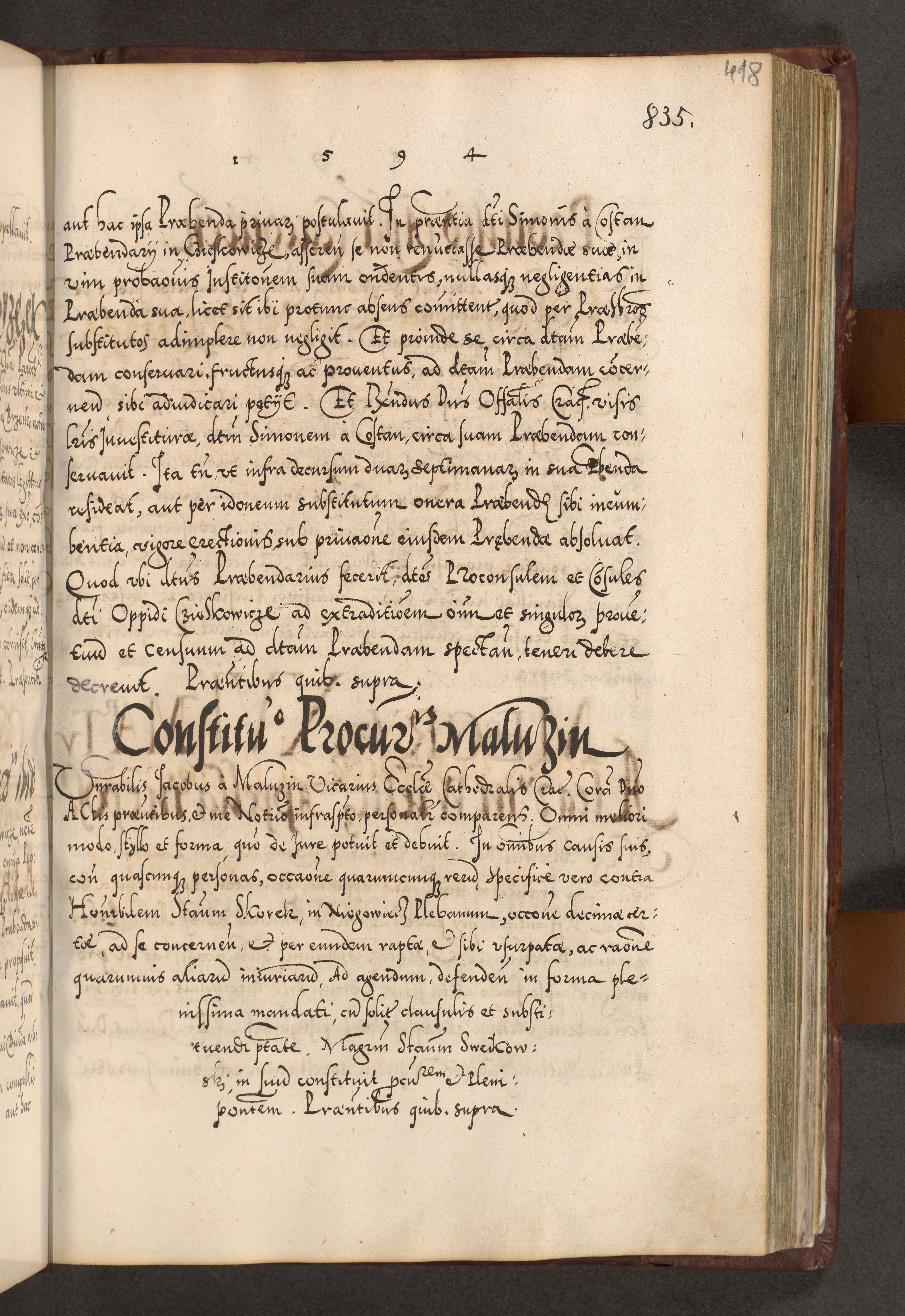 Illistrissimo et revedissimo in Christo Patre Domino Domino Georgio Rzadziwił Miserone Divina Sacrostae R. E. Tituli S. Sixti Presbitero Cardinali Duce in Olyka et Niesswiesz ad Gubernacula Ecclessiae Cracoviensis cuius administratorialem a Sancta Sede Apostolica obtinverat feliciter sedente. Acta actorum, causarum, sententiarum tam deffinitivarum quam interloquutoriarum decretorum, obligationum, quietationum, recognitionum, constitutionum procuratorum etc. coram Reverendo Domino Stanislao Crassinskz de Crasne Archidiacono Cracoviensis, Scholastico Gnesnesis, Custode Plocensis etc. Vicario et Officiali Generali Cracoviensi in Ano Domini Millesimo Quingentesimo Nonagesimo Primo cuius indictio quarta pontificatus SS. Domini Nostri Gregorii XIIII Anno I psius prio feliciter incipiut