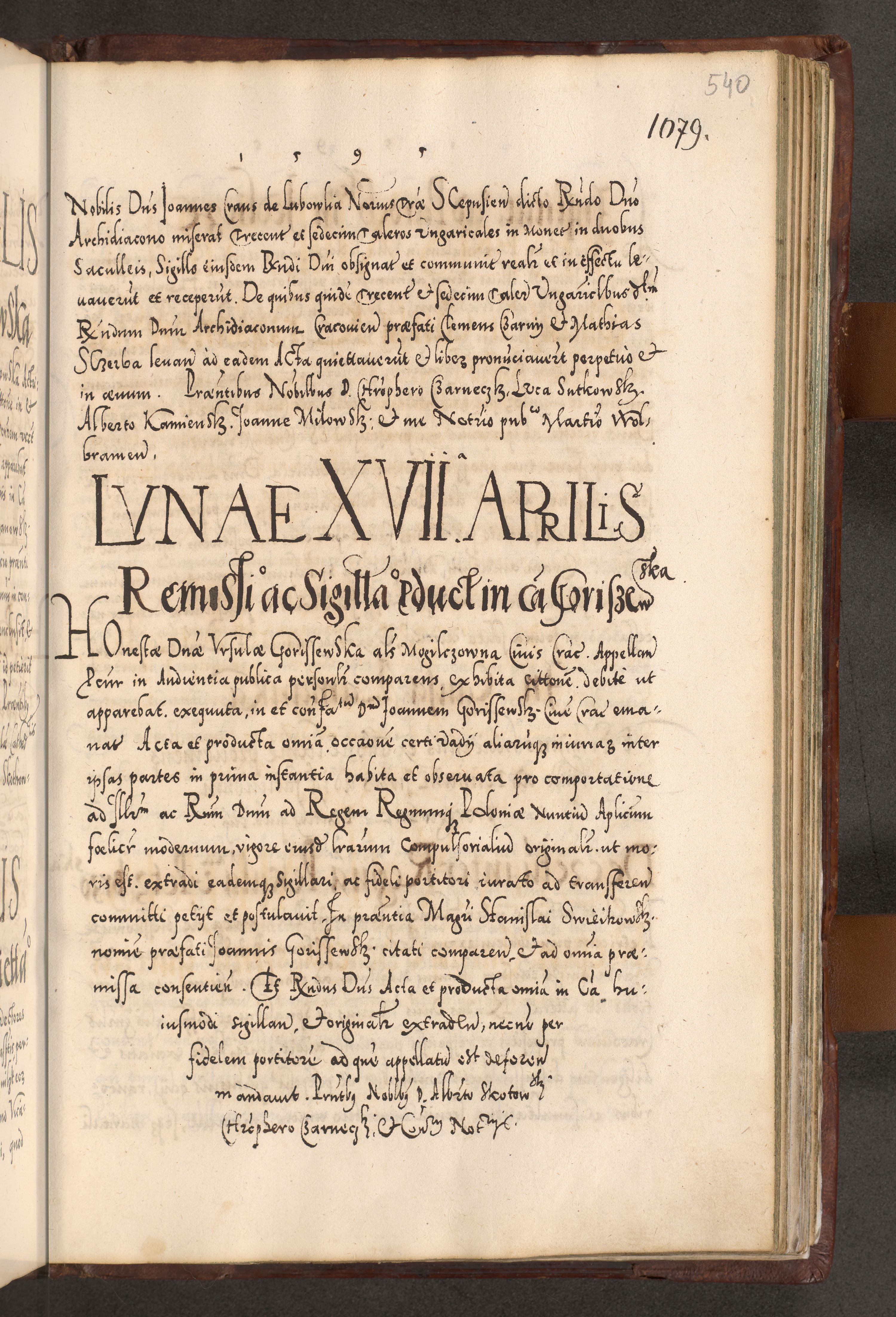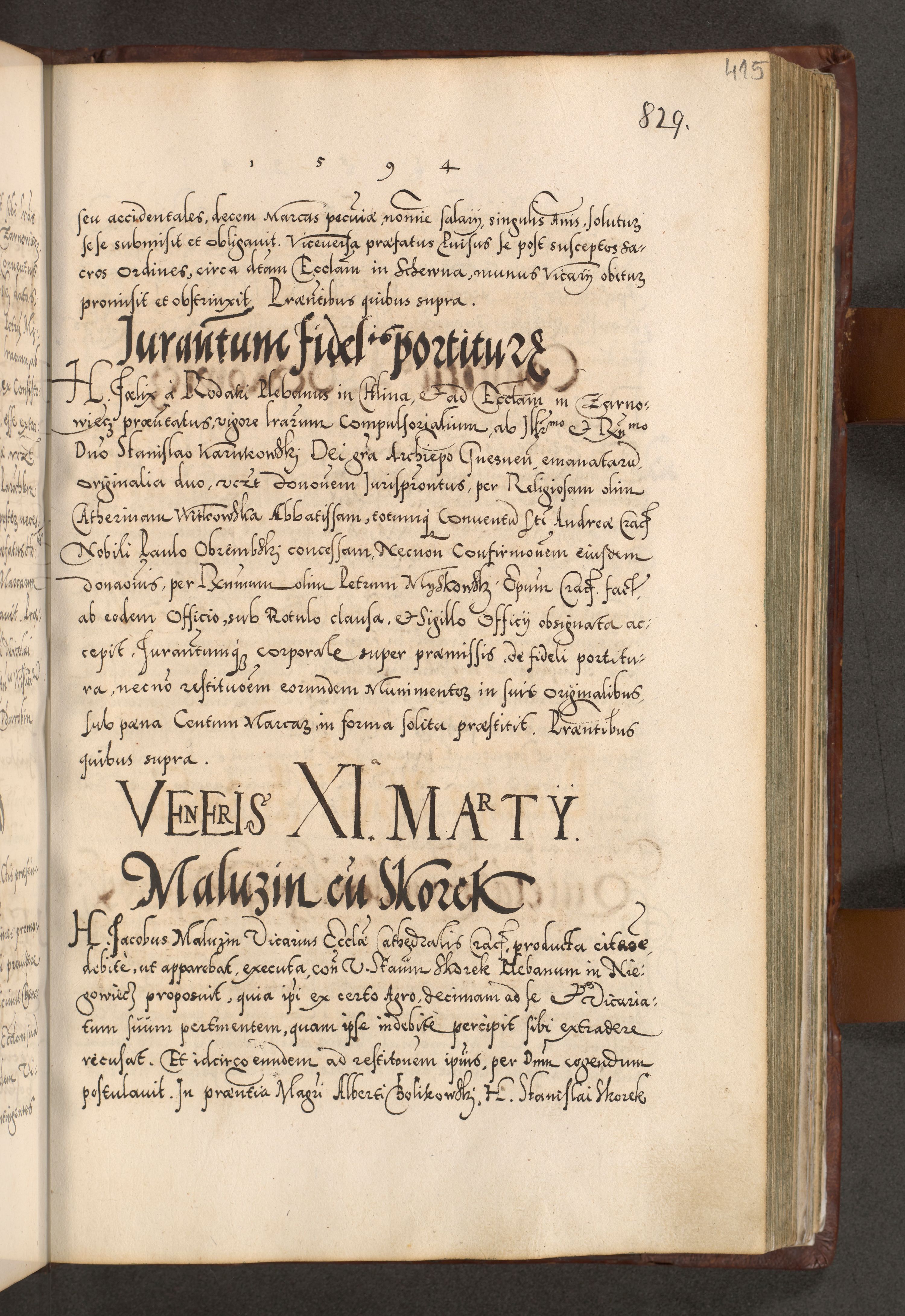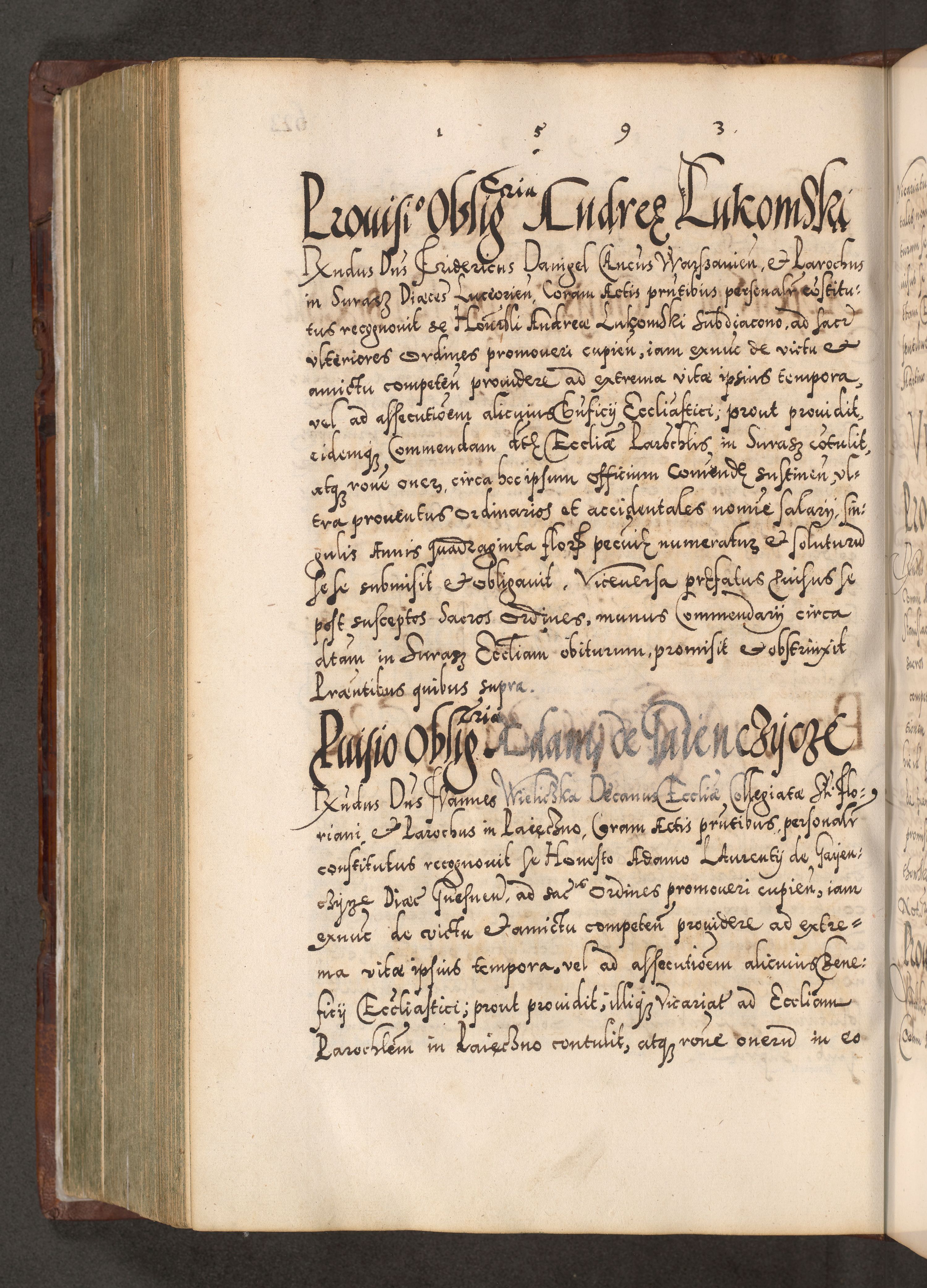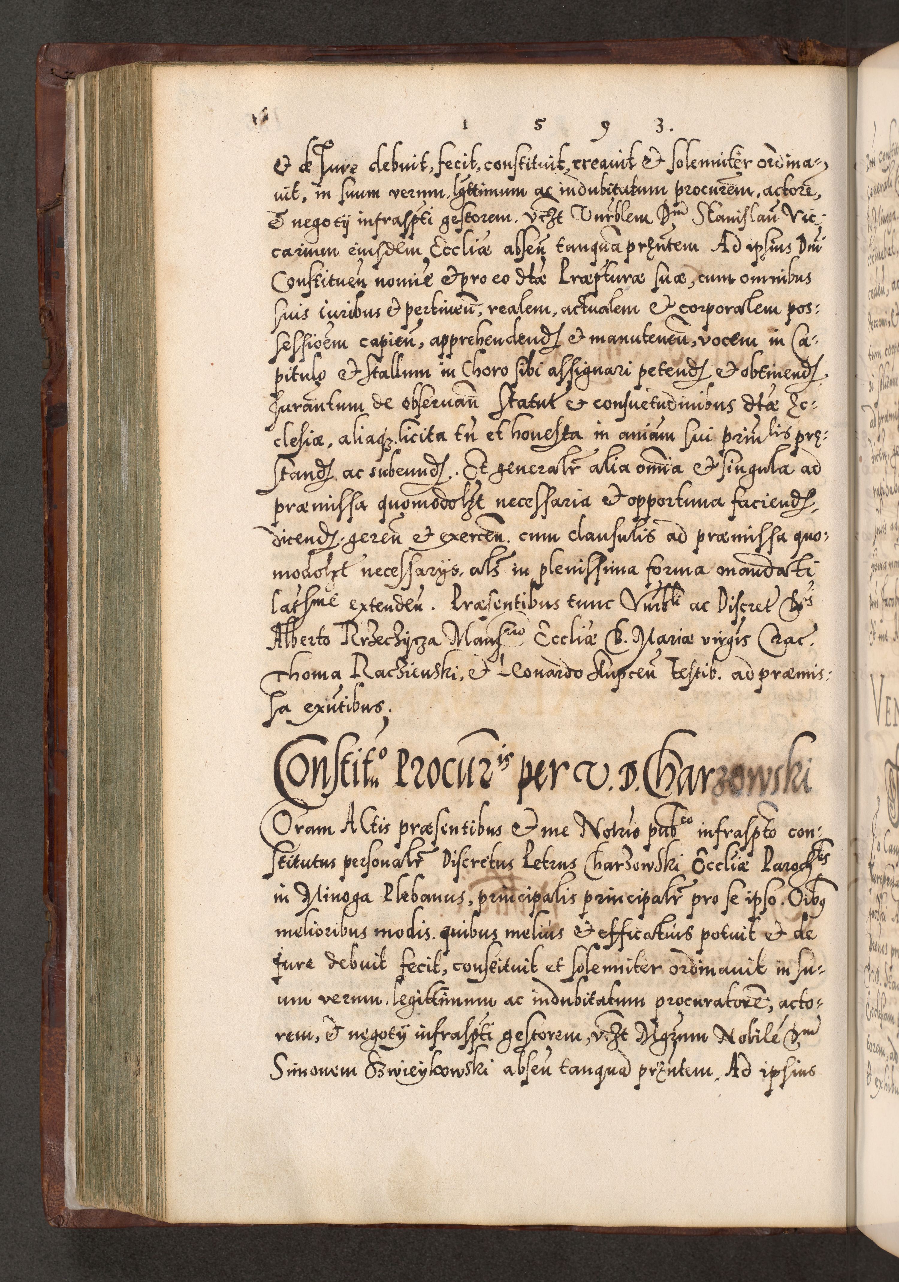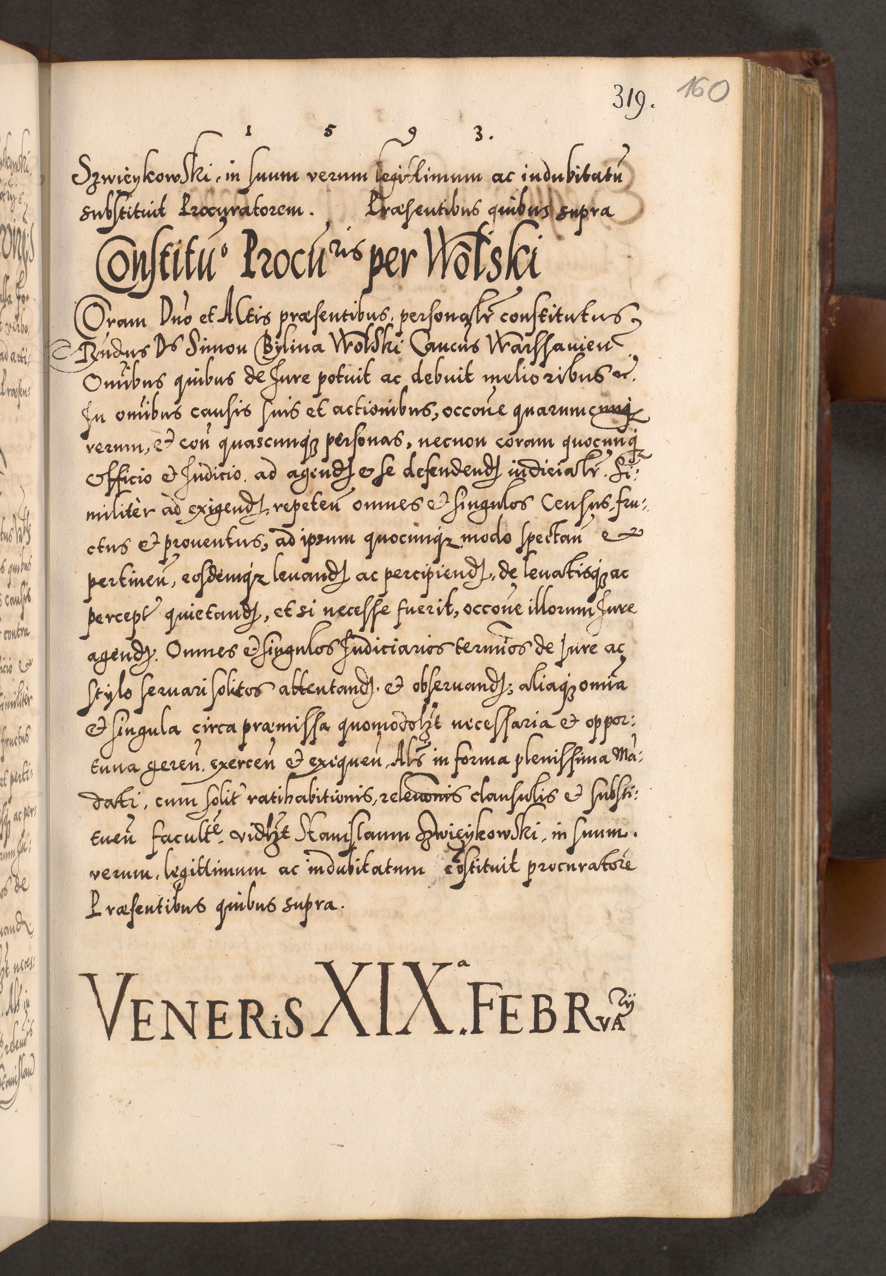 Illistrissimo et revedissimo in Christo Patre Domino Domino Georgio Rzadziwił Miserone Divina Sacrostae R. E. Tituli S. Sixti Presbitero Cardinali Duce in Olyka et Niesswiesz ad Gubernacula Ecclessiae Cracoviensis cuius administratorialem a Sancta Sede Apostolica obtinverat feliciter sedente. Acta actorum, causarum, sententiarum tam deffinitivarum quam interloquutoriarum decretorum, obligationum, quietationum, recognitionum, constitutionum procuratorum etc. coram Reverendo Domino Stanislao Crassinskz de Crasne Archidiacono Cracoviensis, Scholastico Gnesnesis, Custode Plocensis etc. Vicario et Officiali Generali Cracoviensi in Ano Domini Millesimo Quingentesimo Nonagesimo Primo cuius indictio quarta pontificatus SS. Domini Nostri Gregorii XIIII Anno I psius prio feliciter incipiut