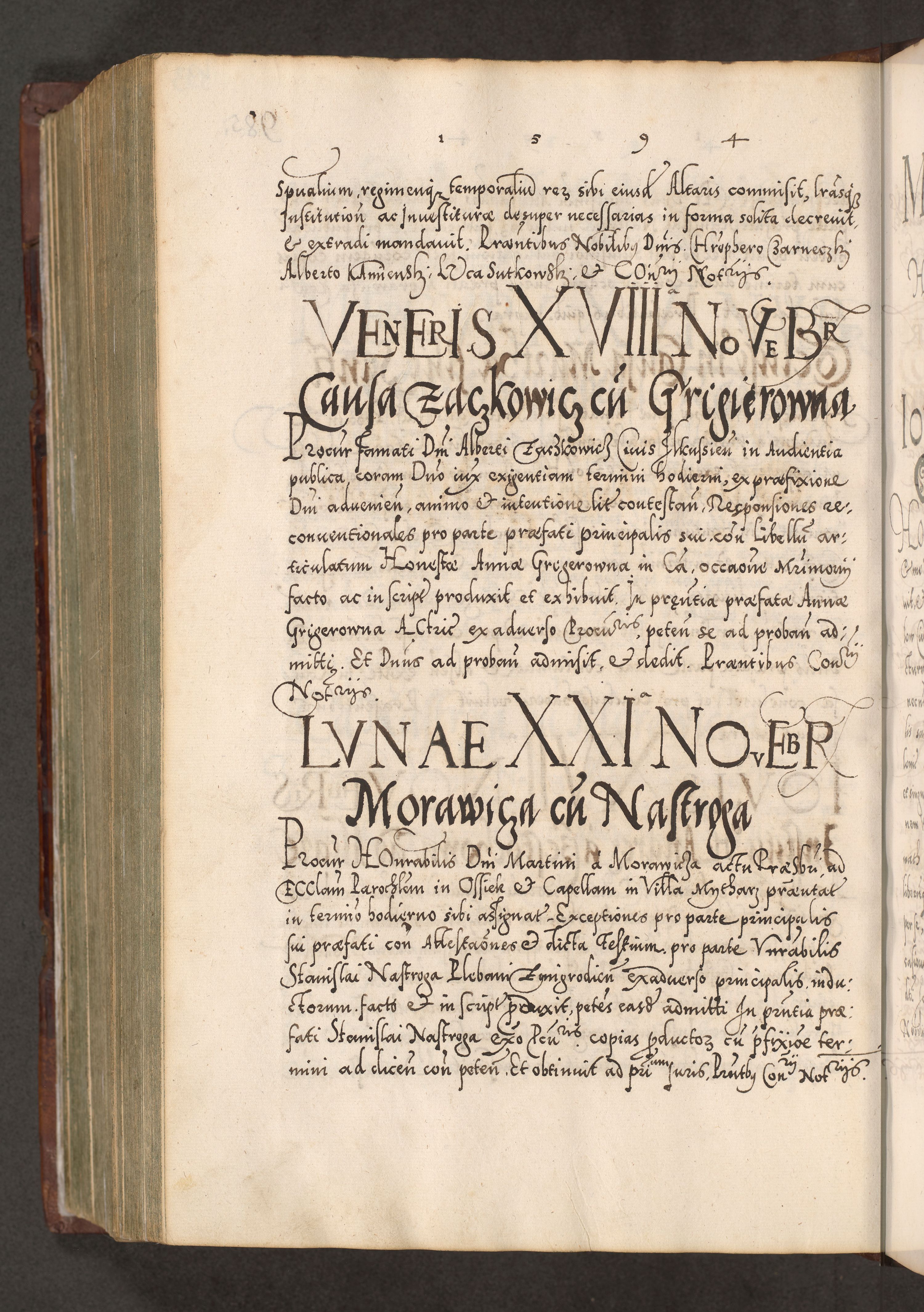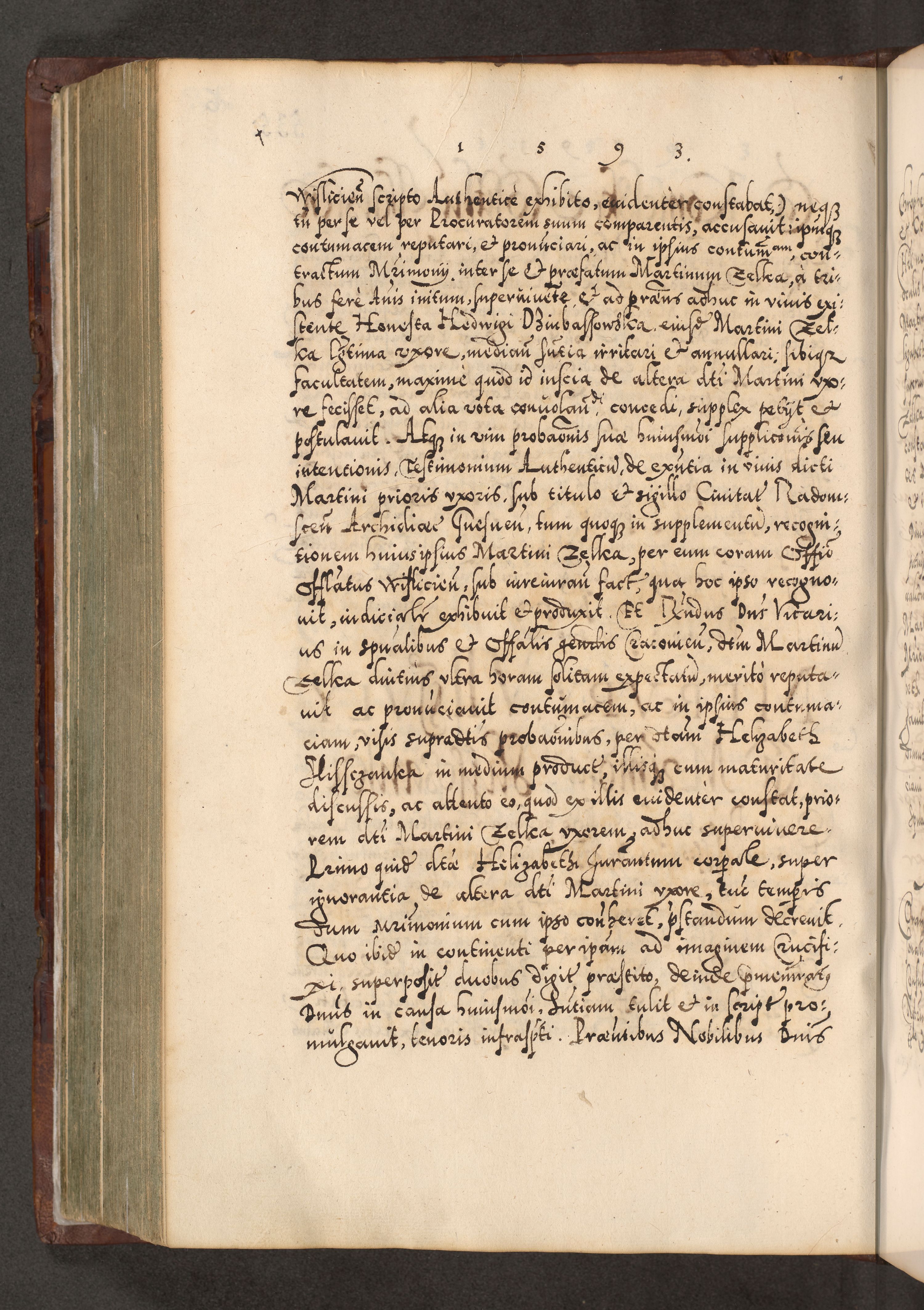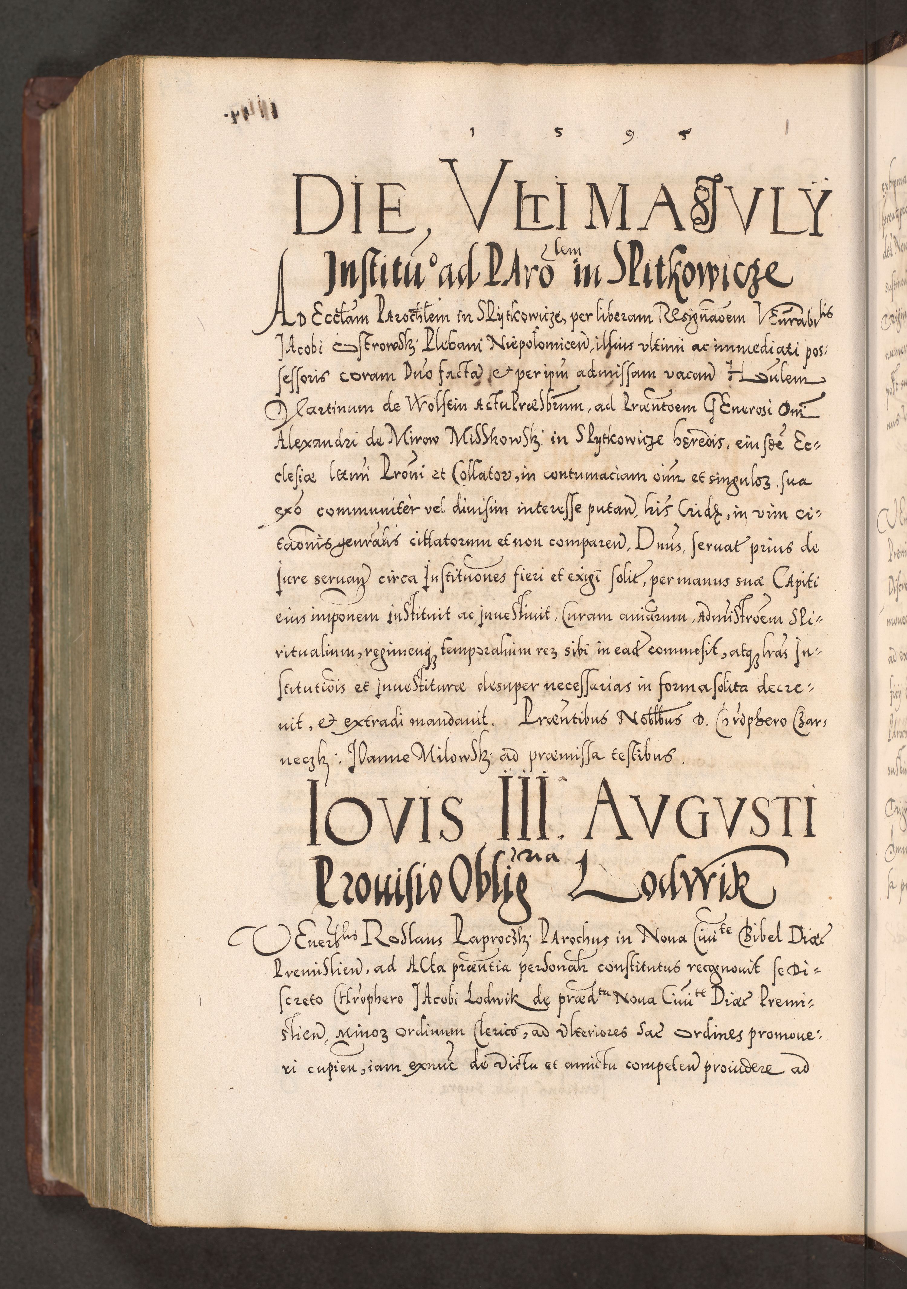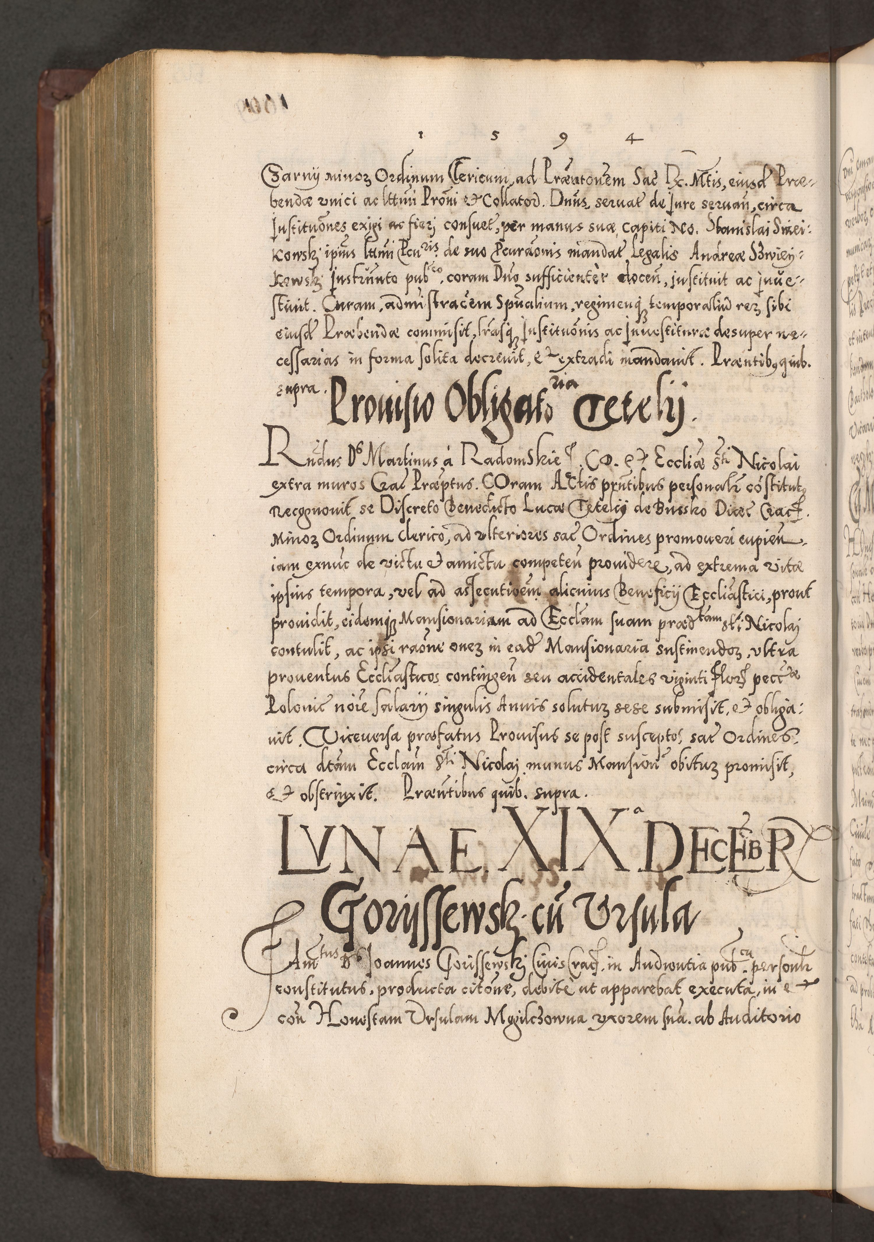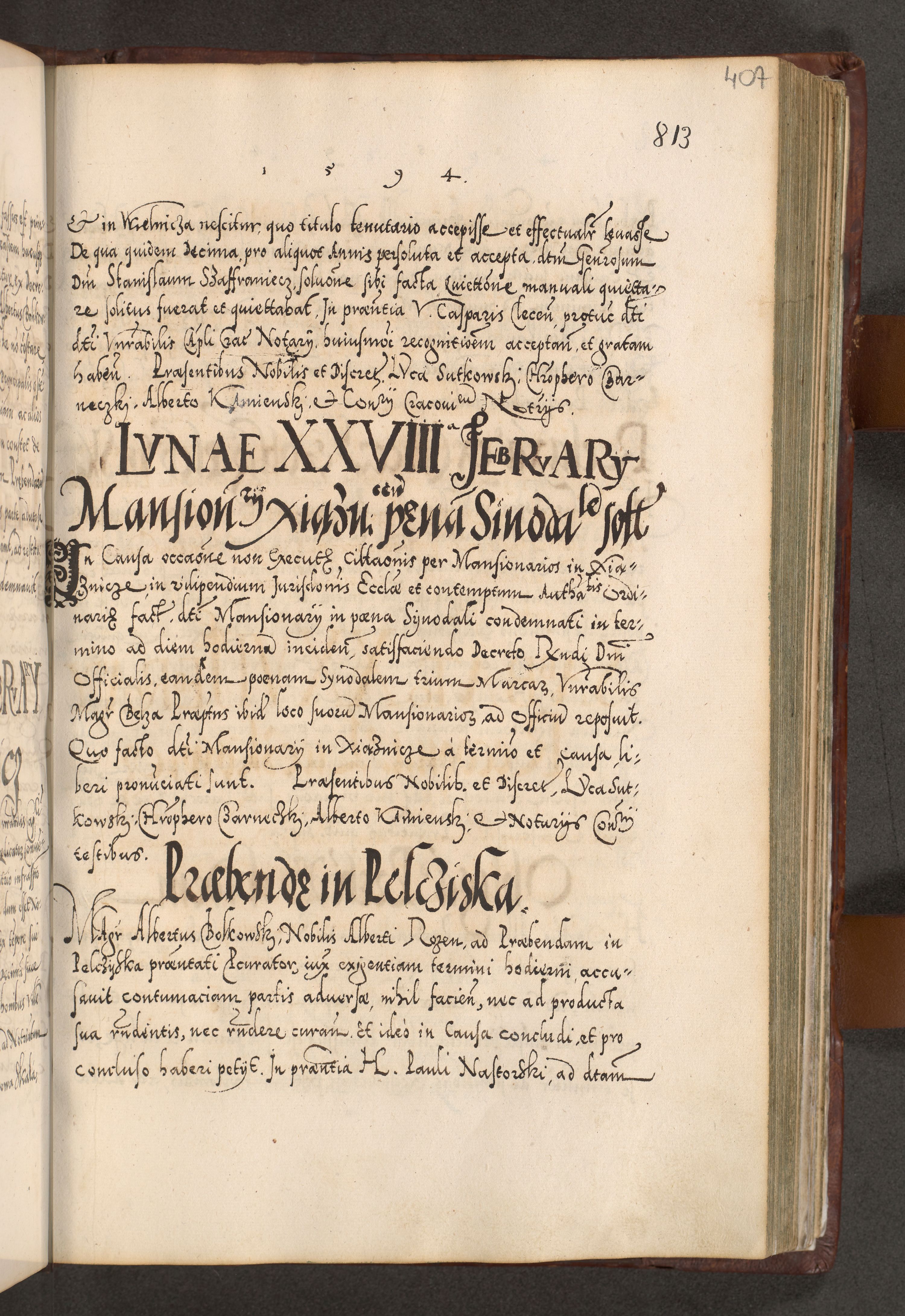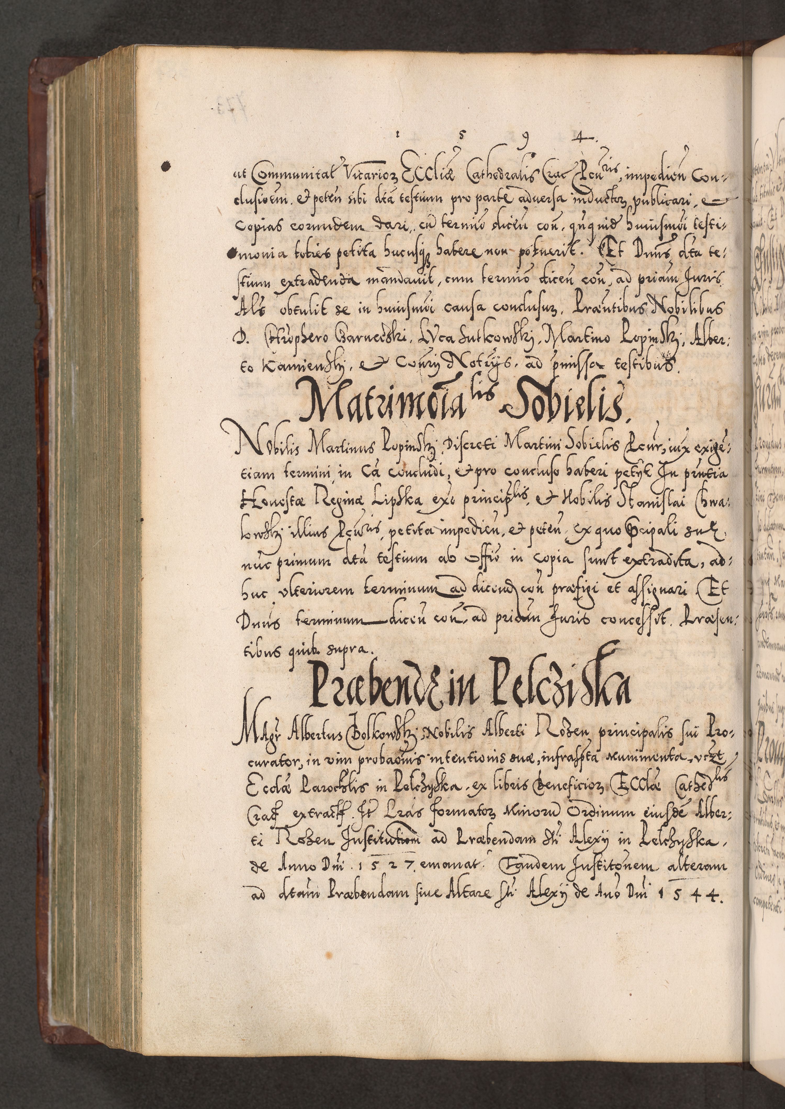Illistrissimo et revedissimo in Christo Patre Domino Domino Georgio Rzadziwił Miserone Divina Sacrostae R. E. Tituli S. Sixti Presbitero Cardinali Duce in Olyka et Niesswiesz ad Gubernacula Ecclessiae Cracoviensis cuius administratorialem a Sancta Sede Apostolica obtinverat feliciter sedente. Acta actorum, causarum, sententiarum tam deffinitivarum quam interloquutoriarum decretorum, obligationum, quietationum, recognitionum, constitutionum procuratorum etc. coram Reverendo Domino Stanislao Crassinskz de Crasne Archidiacono Cracoviensis, Scholastico Gnesnesis, Custode Plocensis etc. Vicario et Officiali Generali Cracoviensi in Ano Domini Millesimo Quingentesimo Nonagesimo Primo cuius indictio quarta pontificatus SS. Domini Nostri Gregorii XIIII Anno I psius prio feliciter incipiut