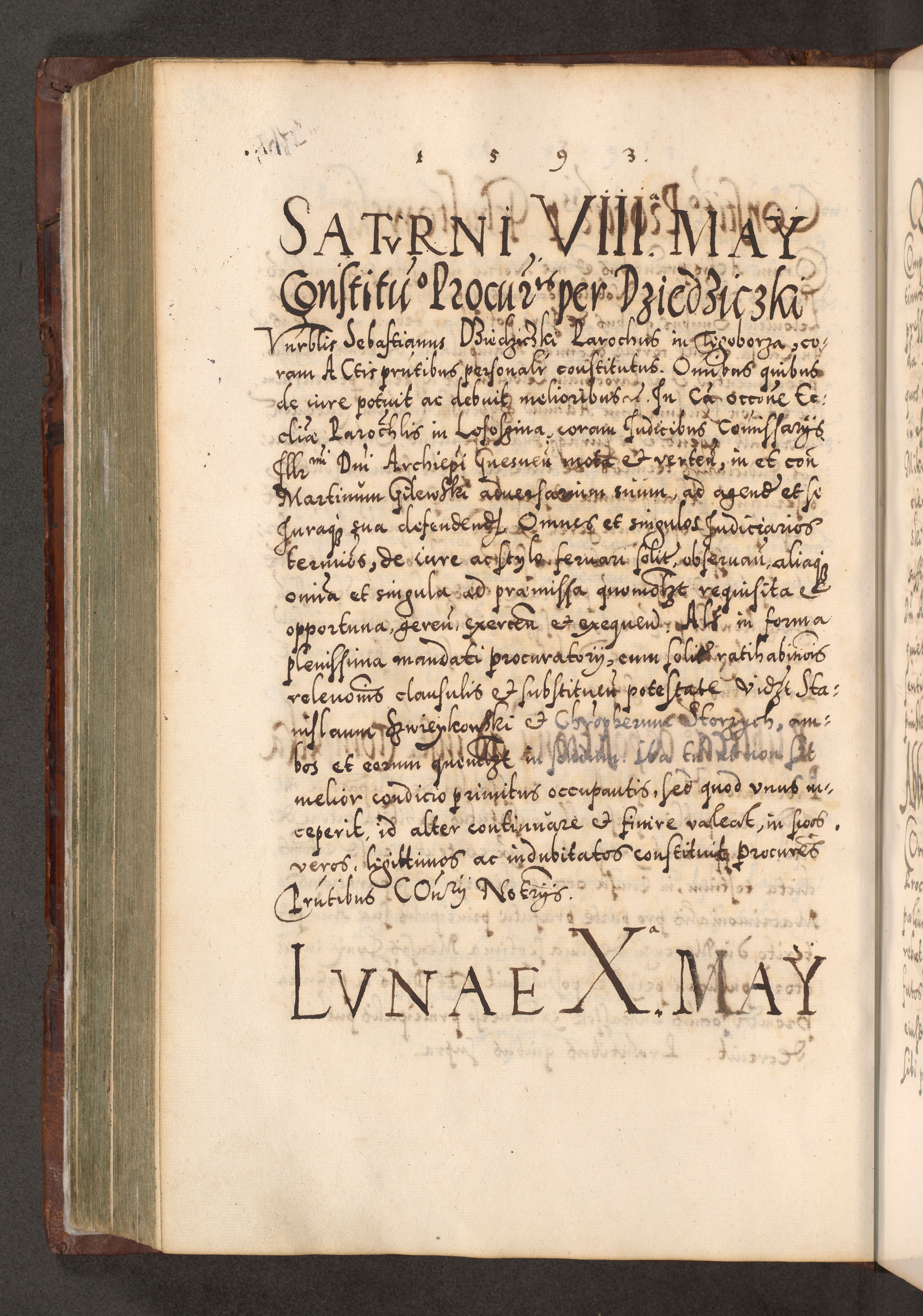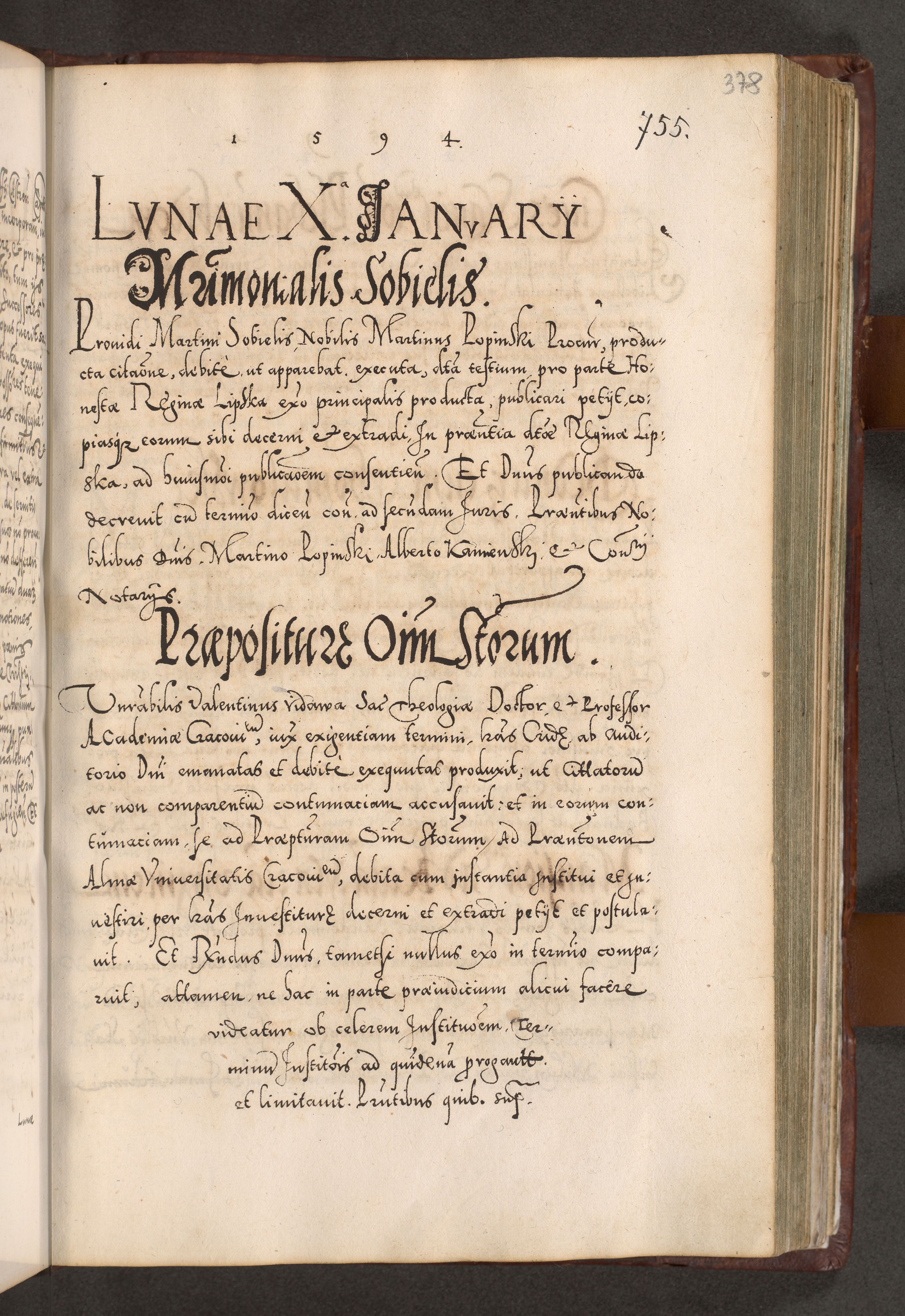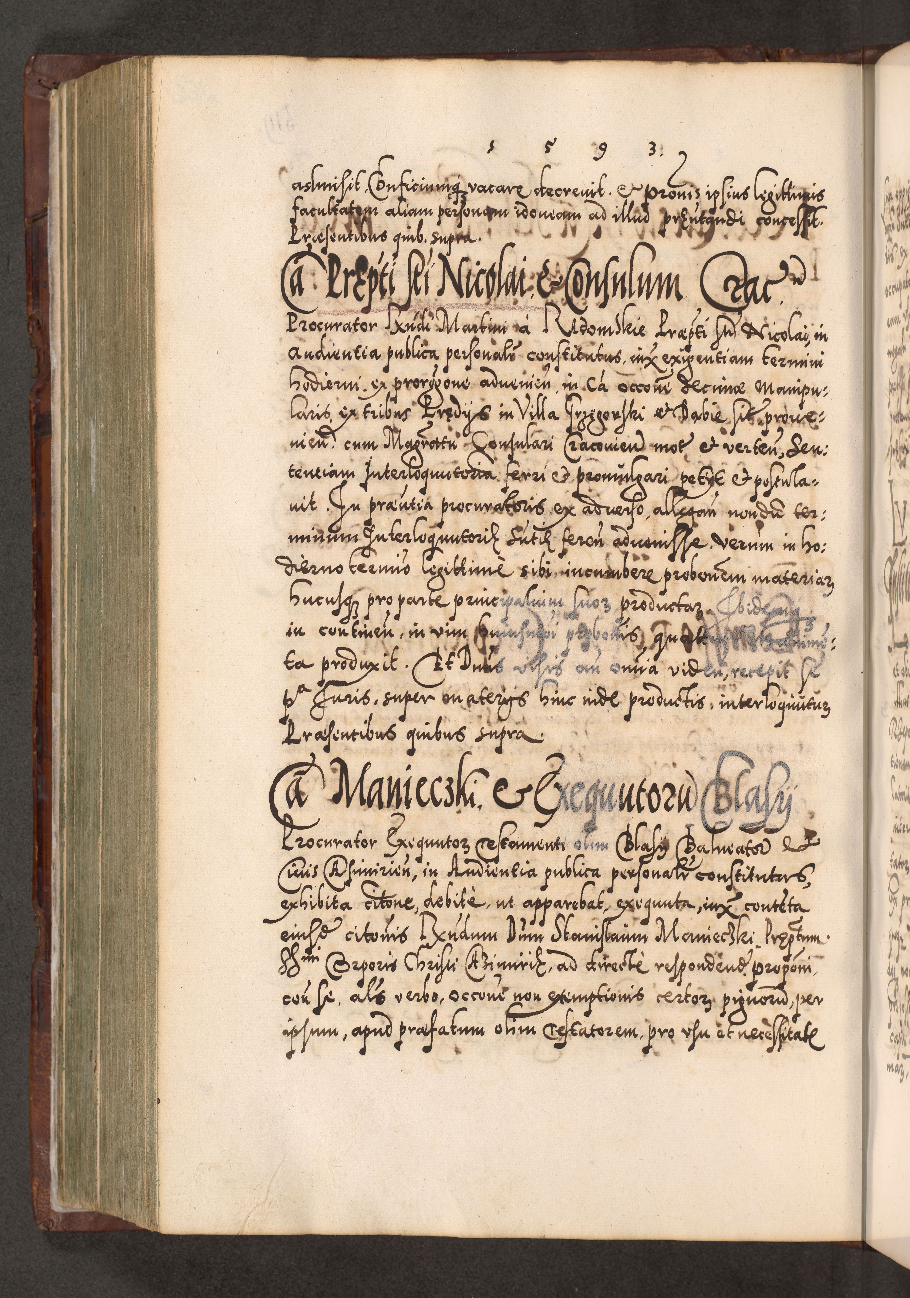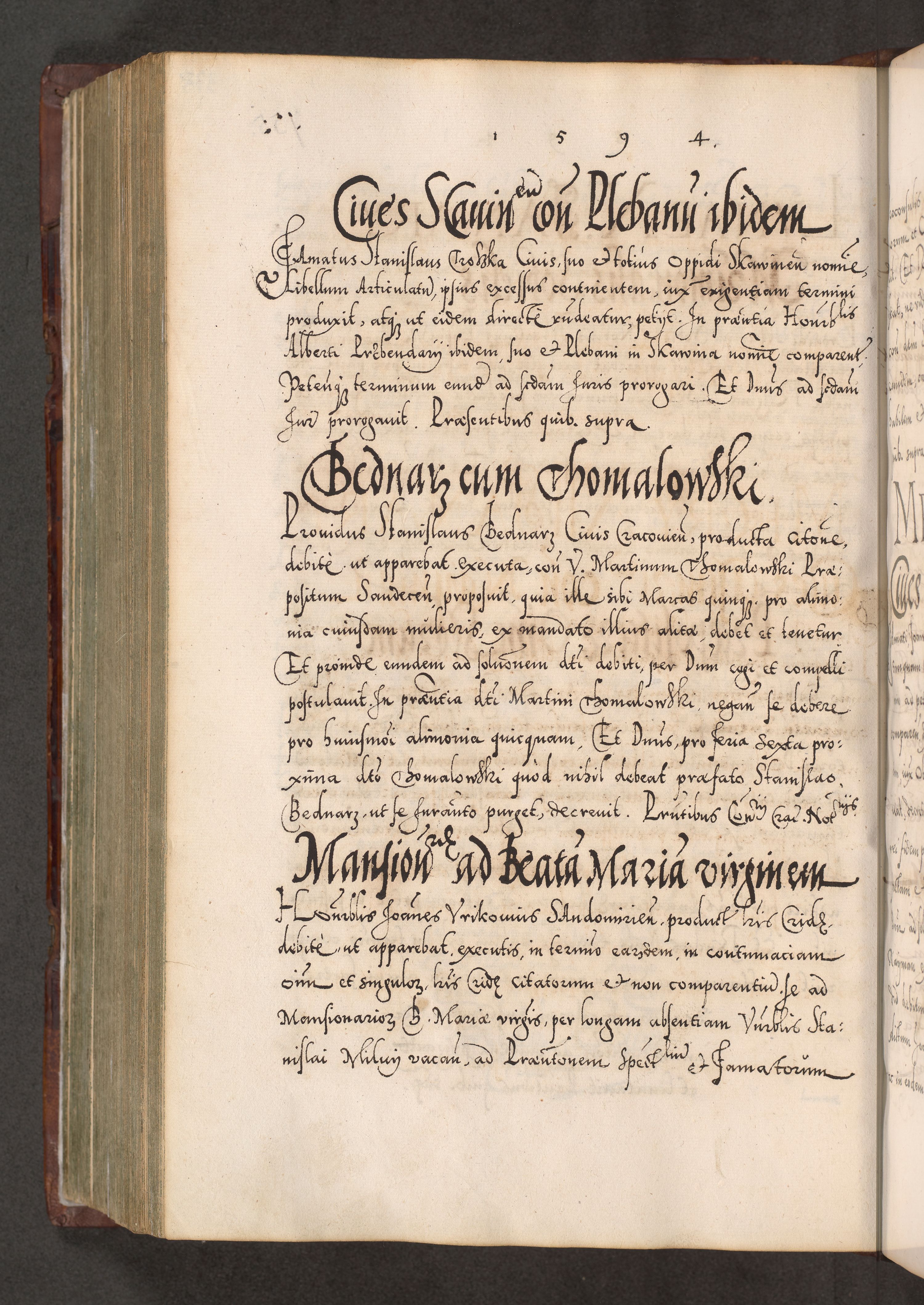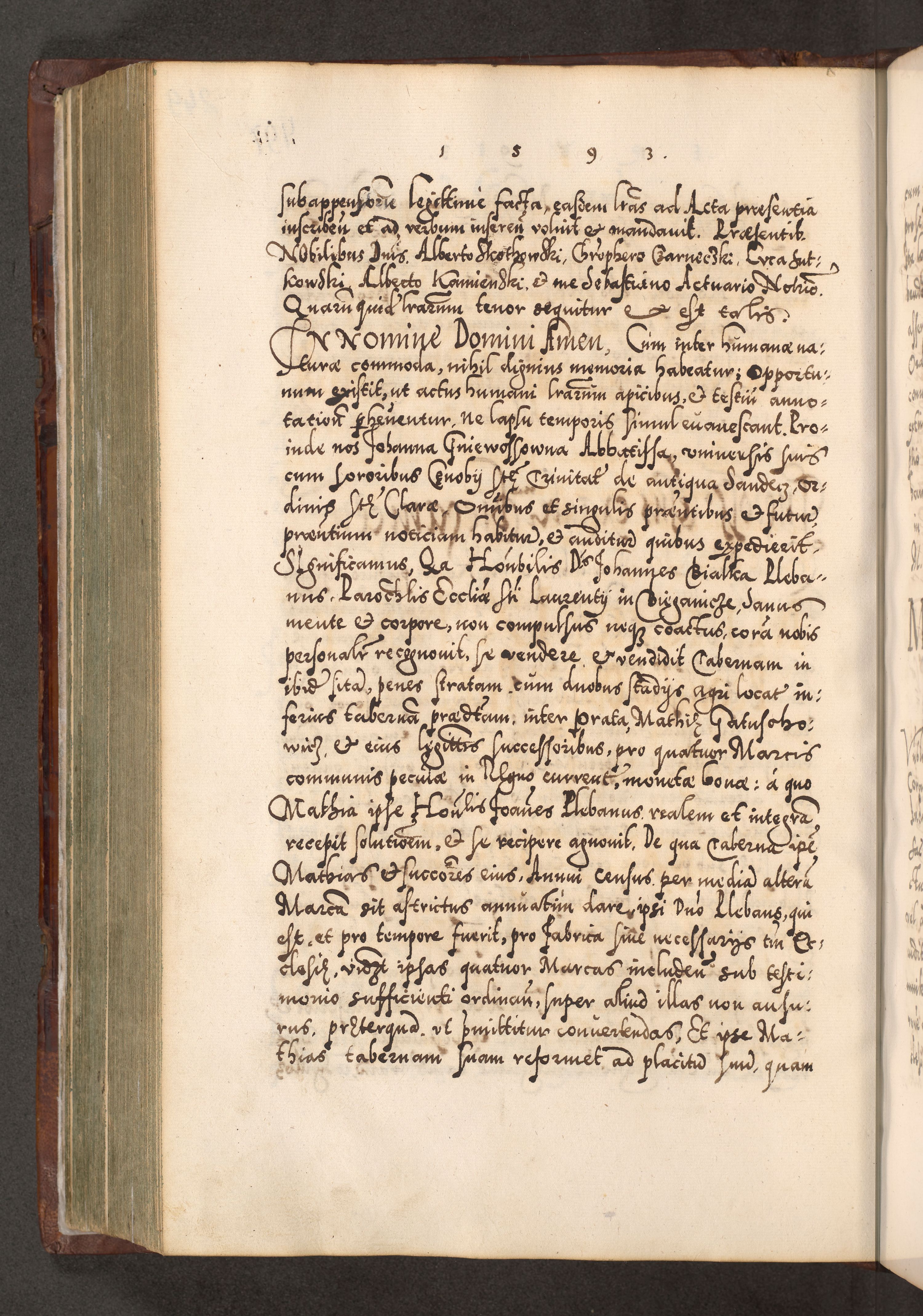 Illistrissimo et revedissimo in Christo Patre Domino Domino Georgio Rzadziwił Miserone Divina Sacrostae R. E. Tituli S. Sixti Presbitero Cardinali Duce in Olyka et Niesswiesz ad Gubernacula Ecclessiae Cracoviensis cuius administratorialem a Sancta Sede Apostolica obtinverat feliciter sedente. Acta actorum, causarum, sententiarum tam deffinitivarum quam interloquutoriarum decretorum, obligationum, quietationum, recognitionum, constitutionum procuratorum etc. coram Reverendo Domino Stanislao Crassinskz de Crasne Archidiacono Cracoviensis, Scholastico Gnesnesis, Custode Plocensis etc. Vicario et Officiali Generali Cracoviensi in Ano Domini Millesimo Quingentesimo Nonagesimo Primo cuius indictio quarta pontificatus SS. Domini Nostri Gregorii XIIII Anno I psius prio feliciter incipiut