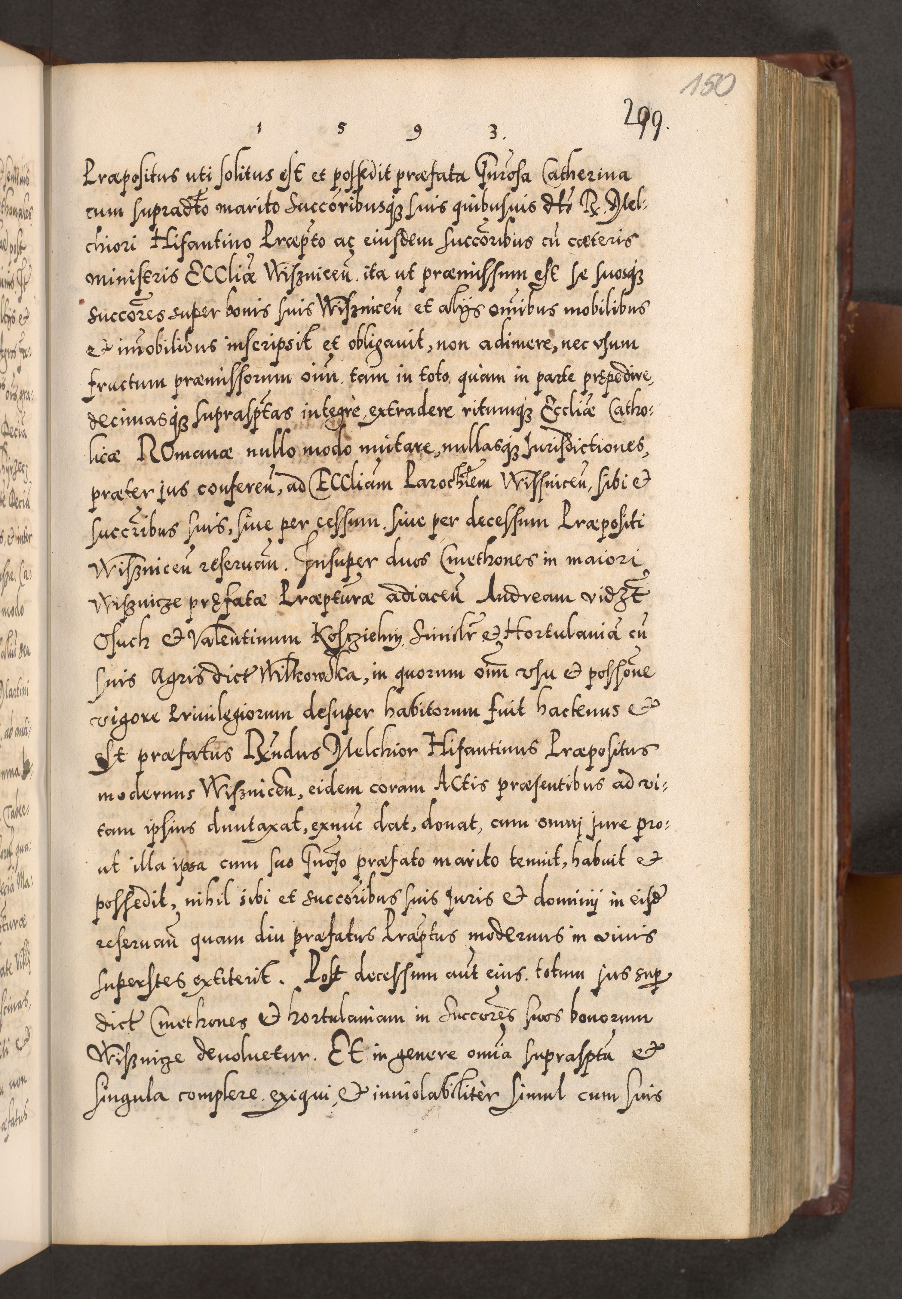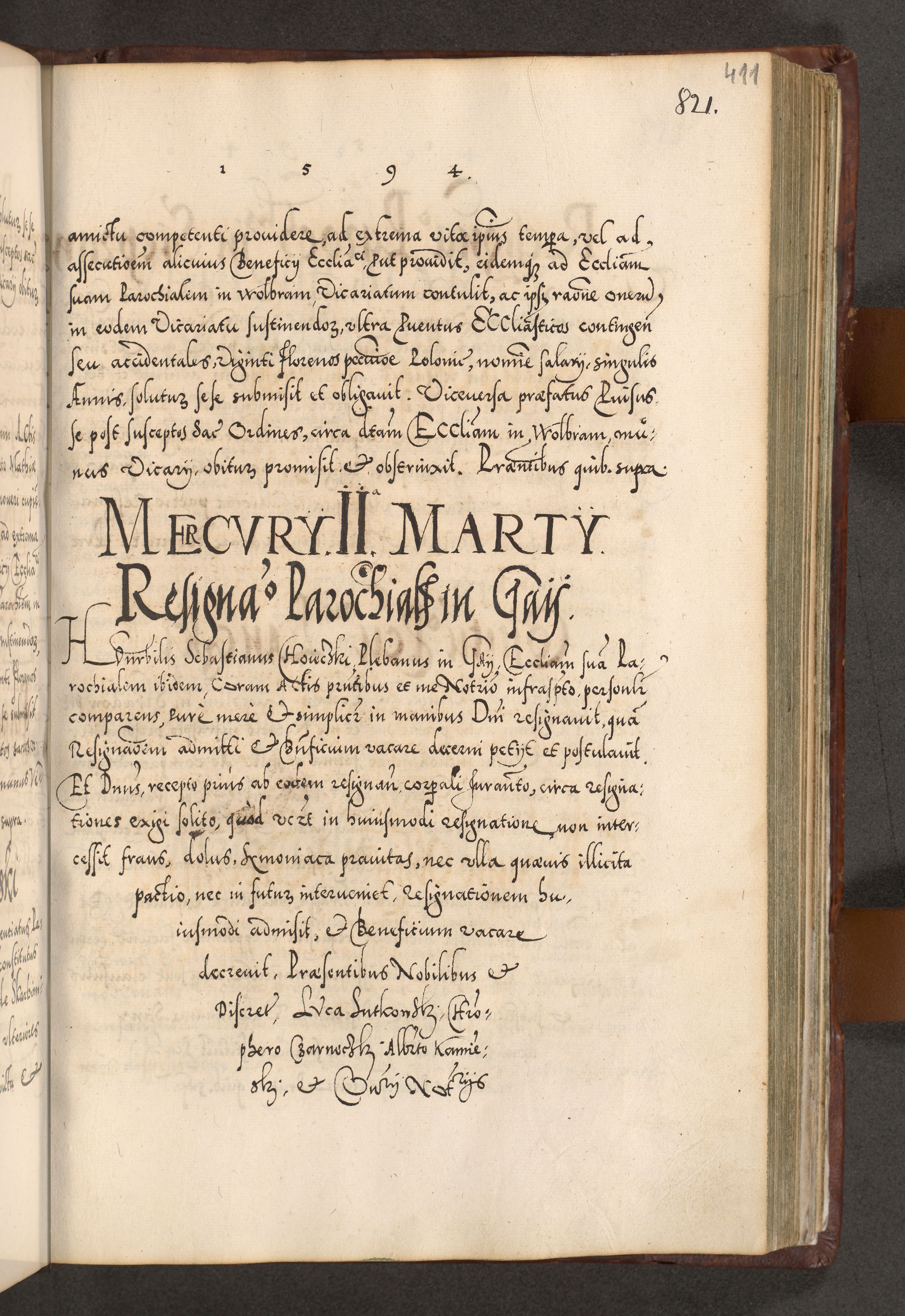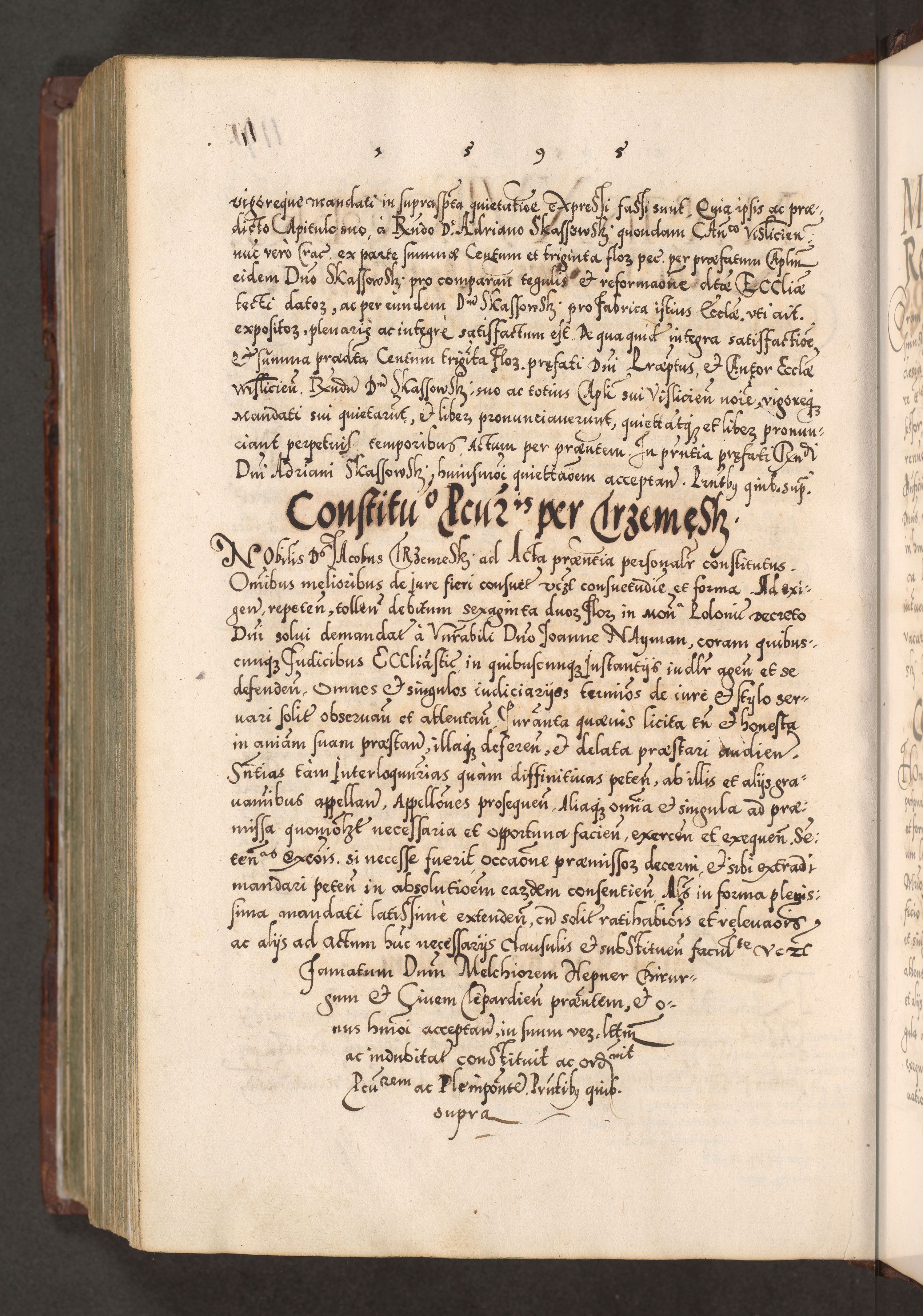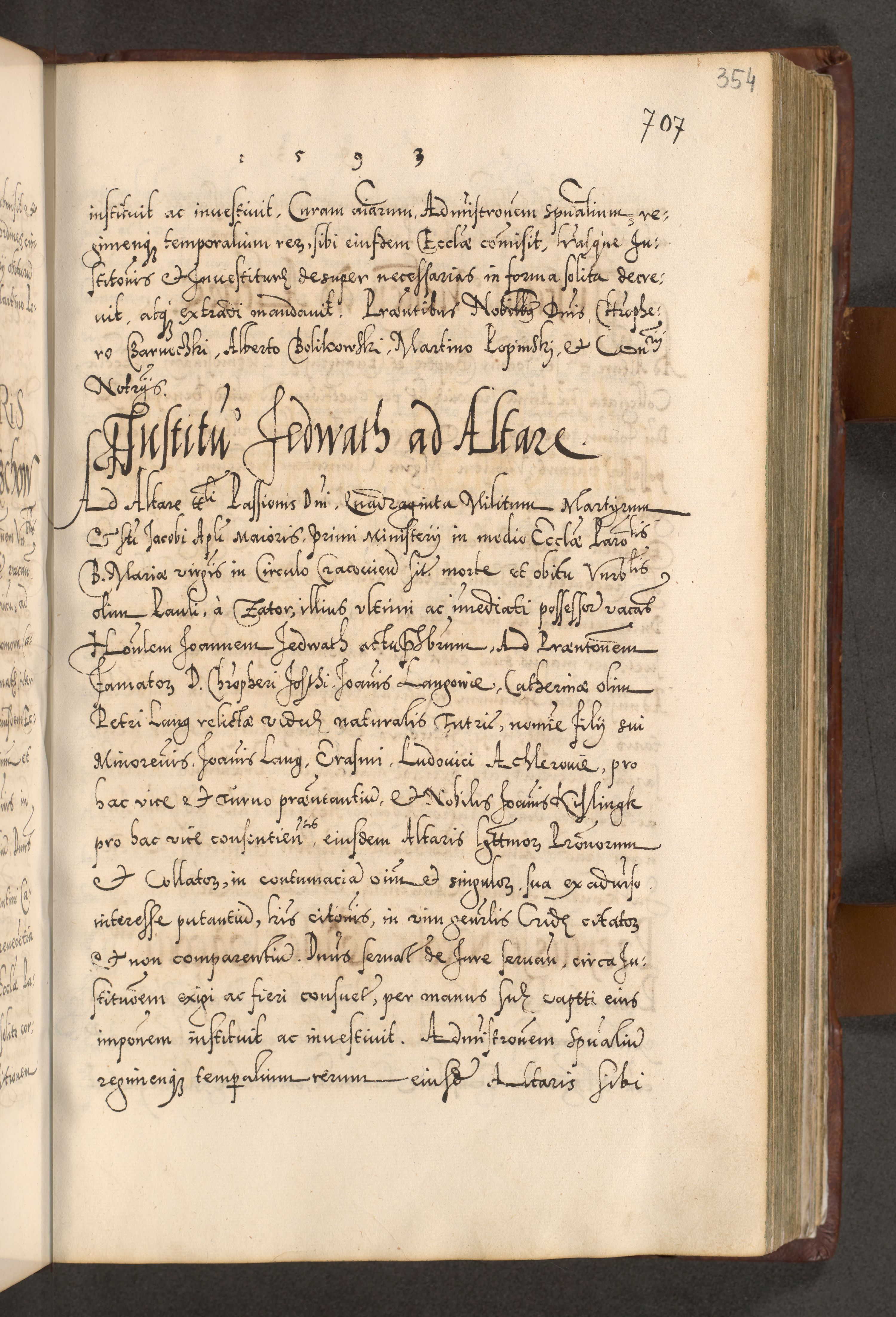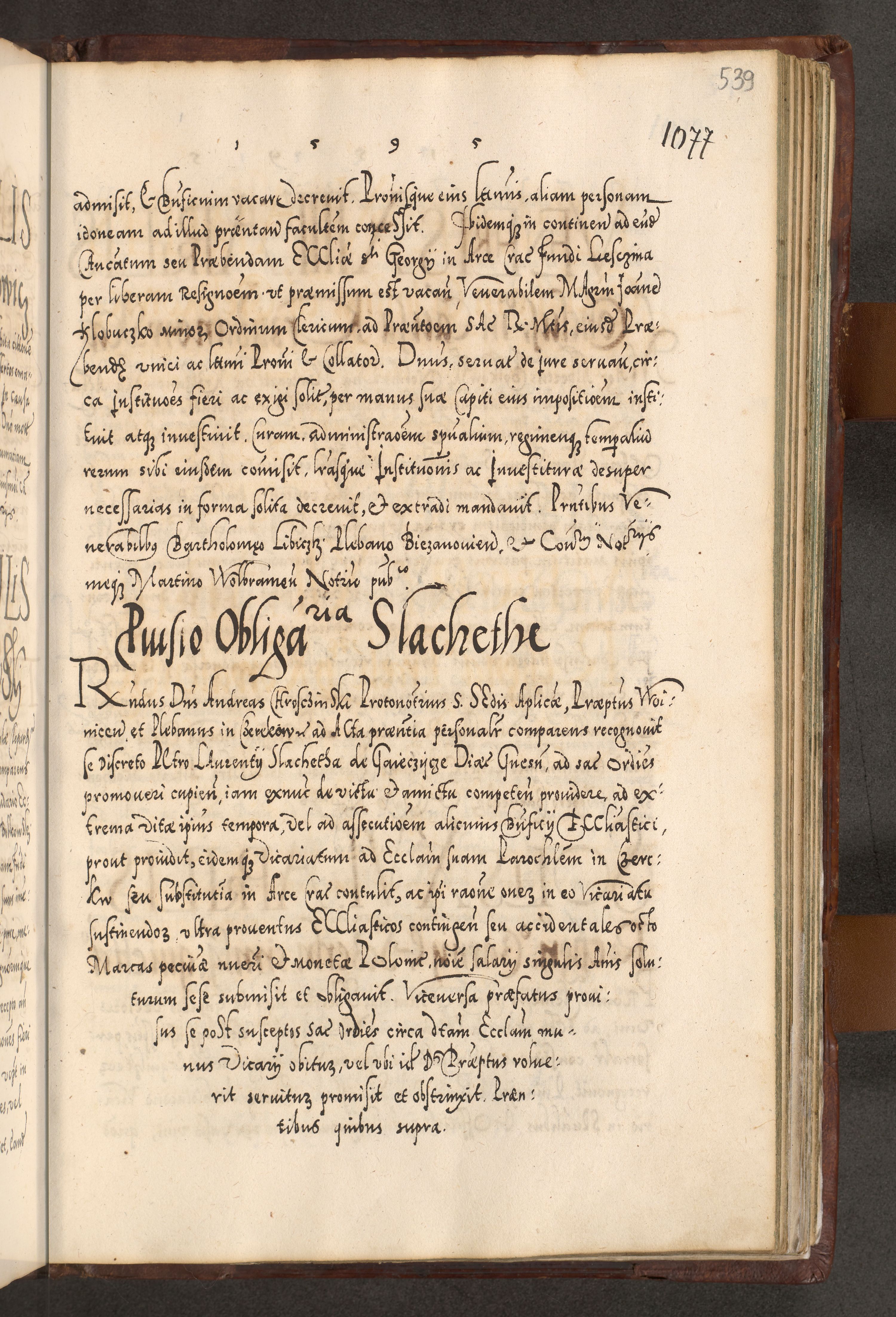 Illistrissimo et revedissimo in Christo Patre Domino Domino Georgio Rzadziwił Miserone Divina Sacrostae R. E. Tituli S. Sixti Presbitero Cardinali Duce in Olyka et Niesswiesz ad Gubernacula Ecclessiae Cracoviensis cuius administratorialem a Sancta Sede Apostolica obtinverat feliciter sedente. Acta actorum, causarum, sententiarum tam deffinitivarum quam interloquutoriarum decretorum, obligationum, quietationum, recognitionum, constitutionum procuratorum etc. coram Reverendo Domino Stanislao Crassinskz de Crasne Archidiacono Cracoviensis, Scholastico Gnesnesis, Custode Plocensis etc. Vicario et Officiali Generali Cracoviensi in Ano Domini Millesimo Quingentesimo Nonagesimo Primo cuius indictio quarta pontificatus SS. Domini Nostri Gregorii XIIII Anno I psius prio feliciter incipiut