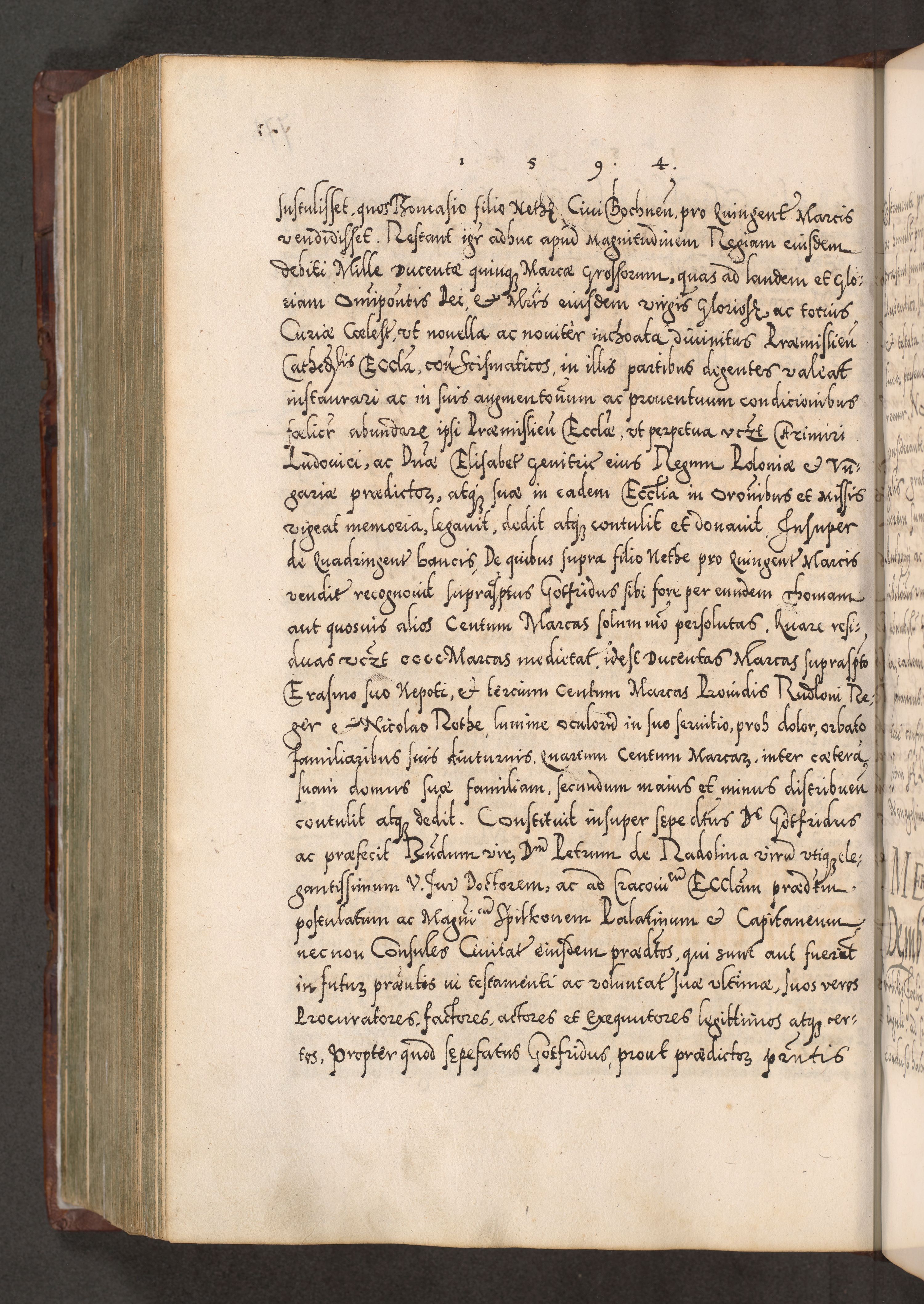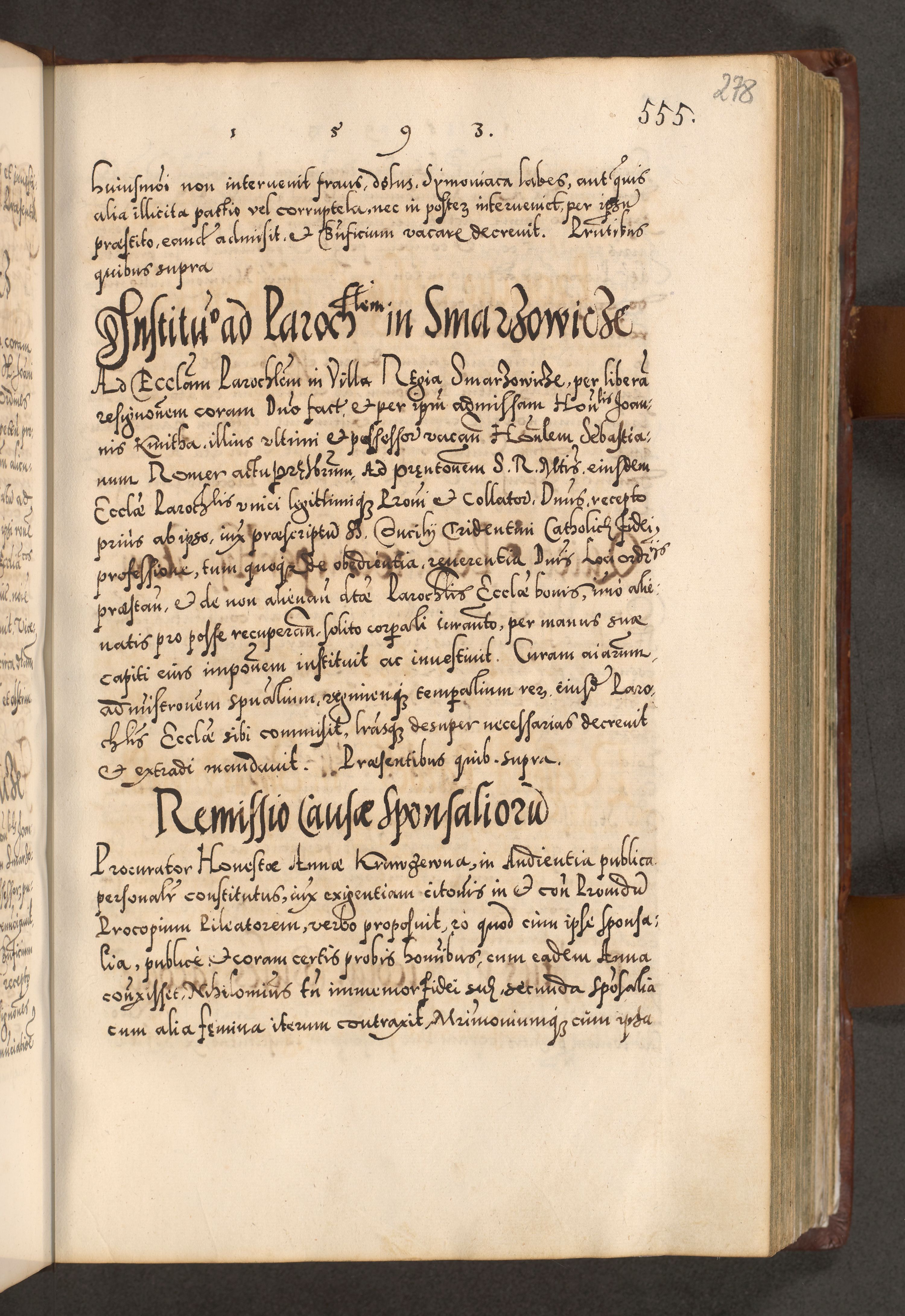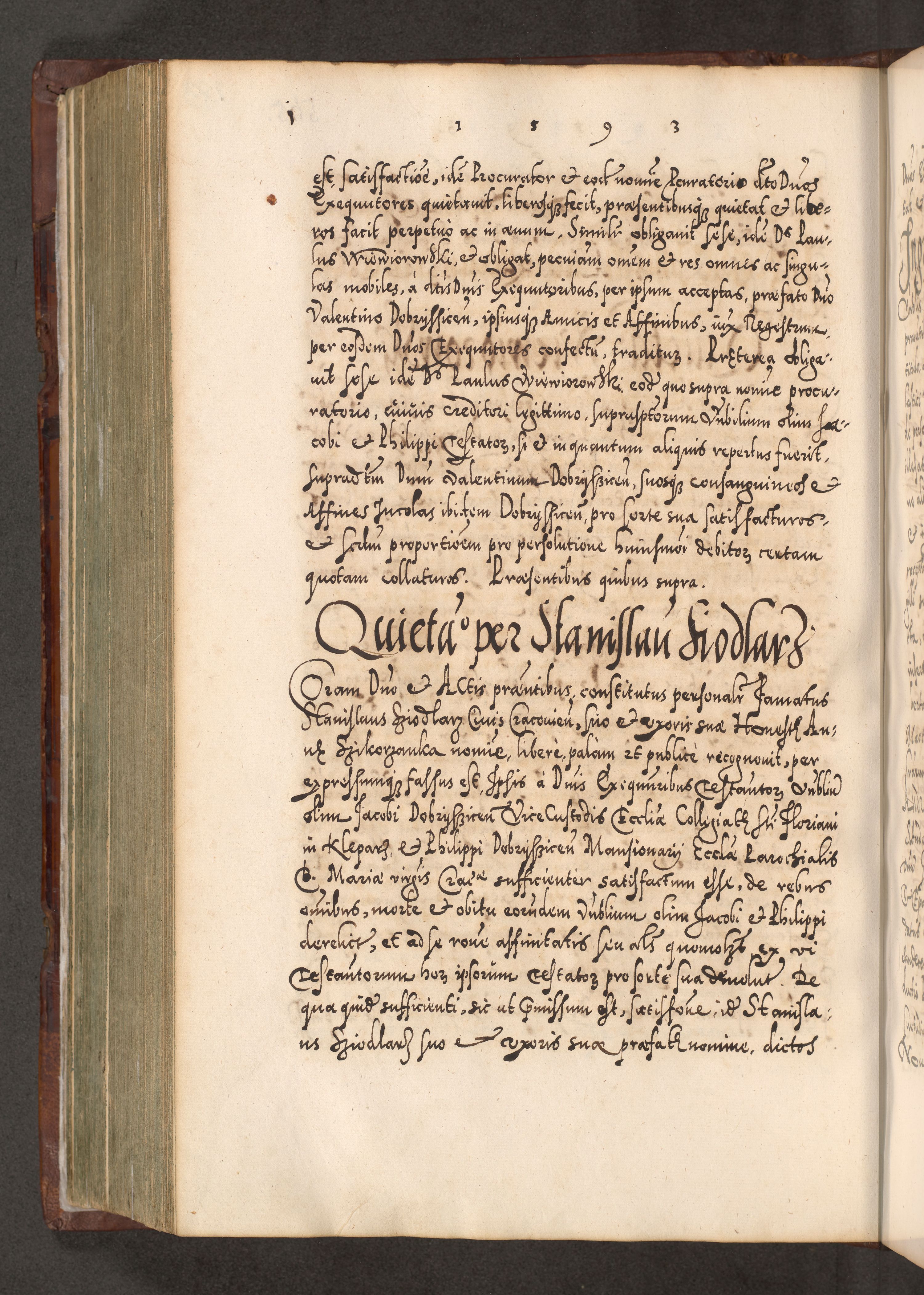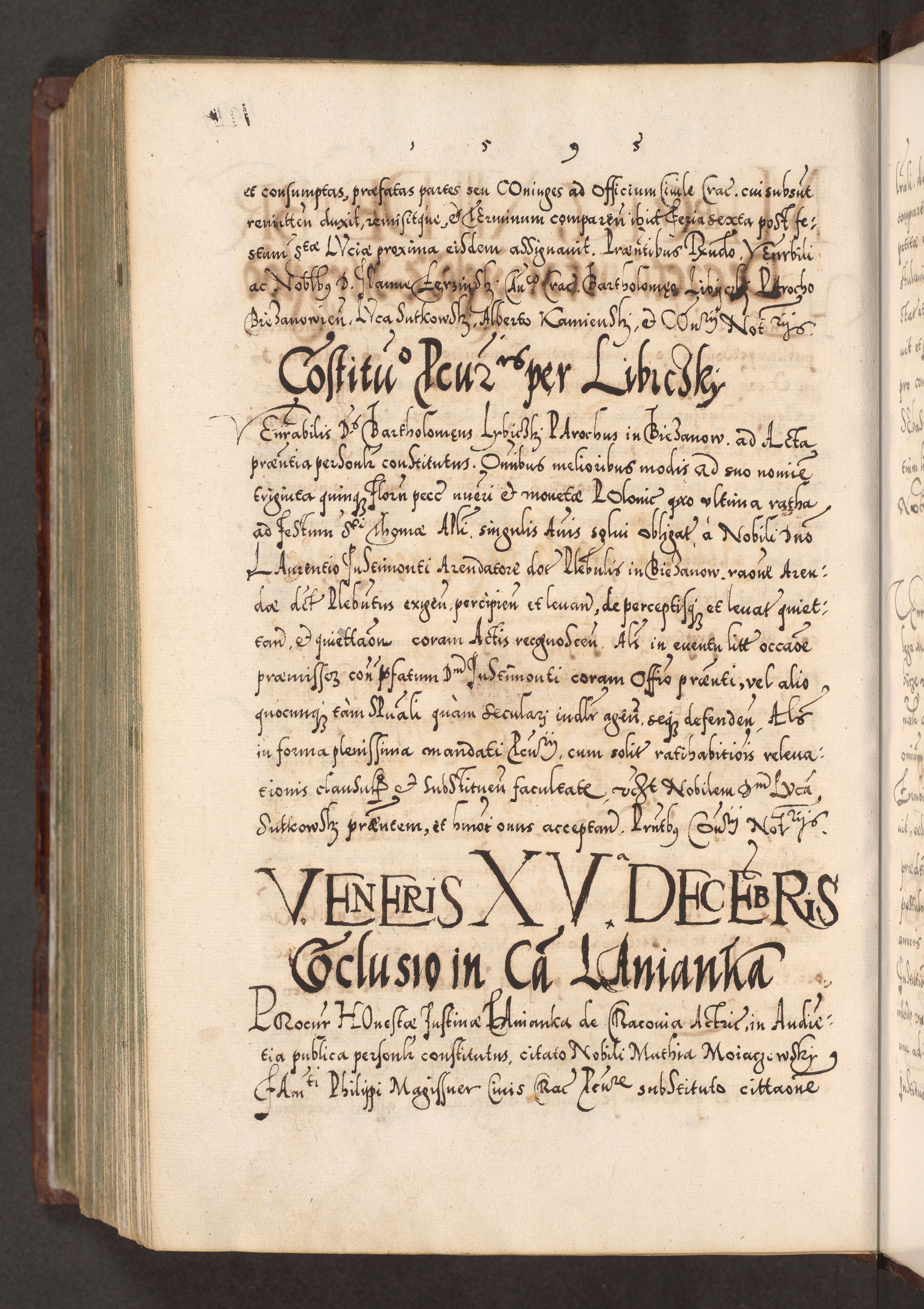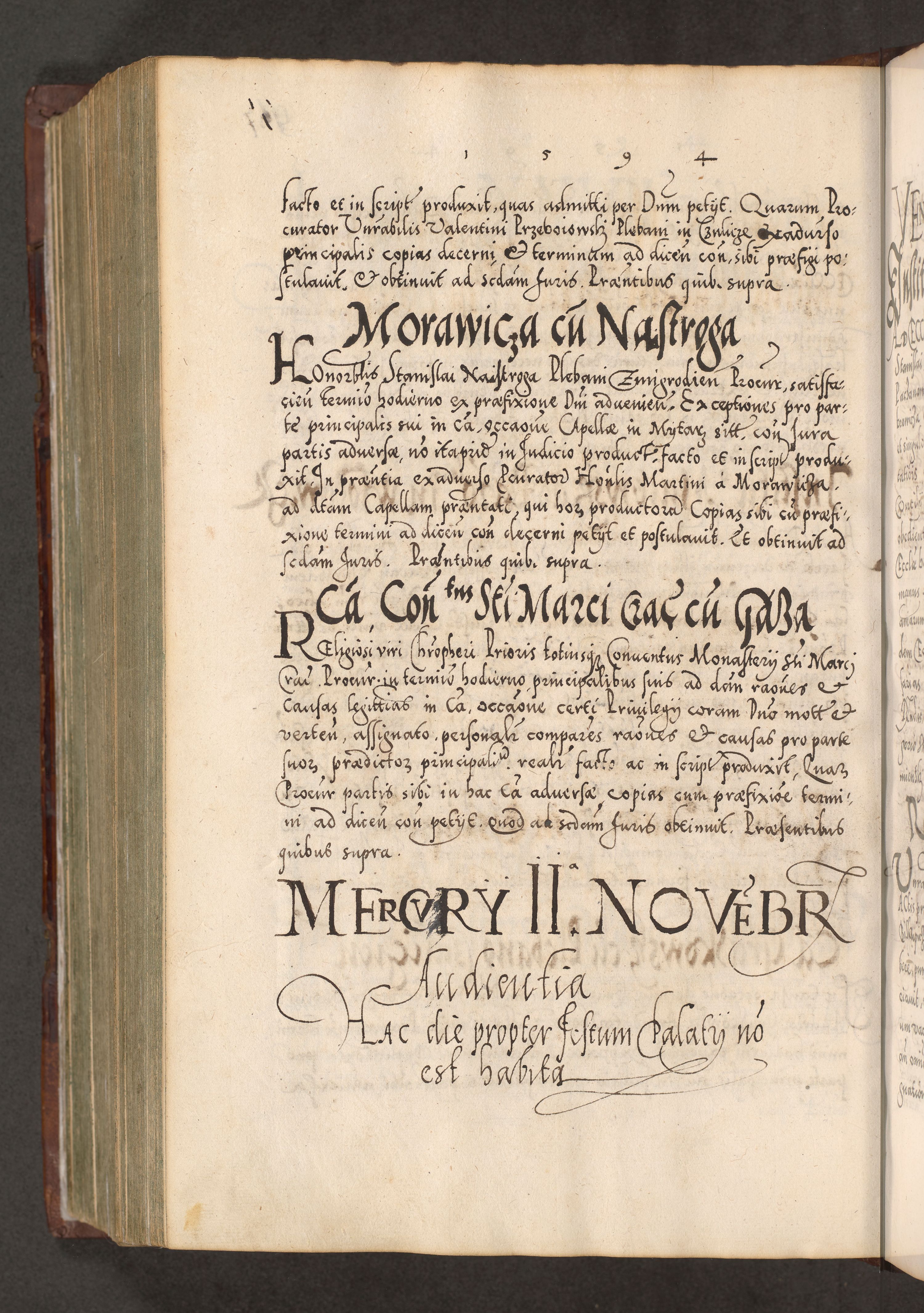 Illistrissimo et revedissimo in Christo Patre Domino Domino Georgio Rzadziwił Miserone Divina Sacrostae R. E. Tituli S. Sixti Presbitero Cardinali Duce in Olyka et Niesswiesz ad Gubernacula Ecclessiae Cracoviensis cuius administratorialem a Sancta Sede Apostolica obtinverat feliciter sedente. Acta actorum, causarum, sententiarum tam deffinitivarum quam interloquutoriarum decretorum, obligationum, quietationum, recognitionum, constitutionum procuratorum etc. coram Reverendo Domino Stanislao Crassinskz de Crasne Archidiacono Cracoviensis, Scholastico Gnesnesis, Custode Plocensis etc. Vicario et Officiali Generali Cracoviensi in Ano Domini Millesimo Quingentesimo Nonagesimo Primo cuius indictio quarta pontificatus SS. Domini Nostri Gregorii XIIII Anno I psius prio feliciter incipiut