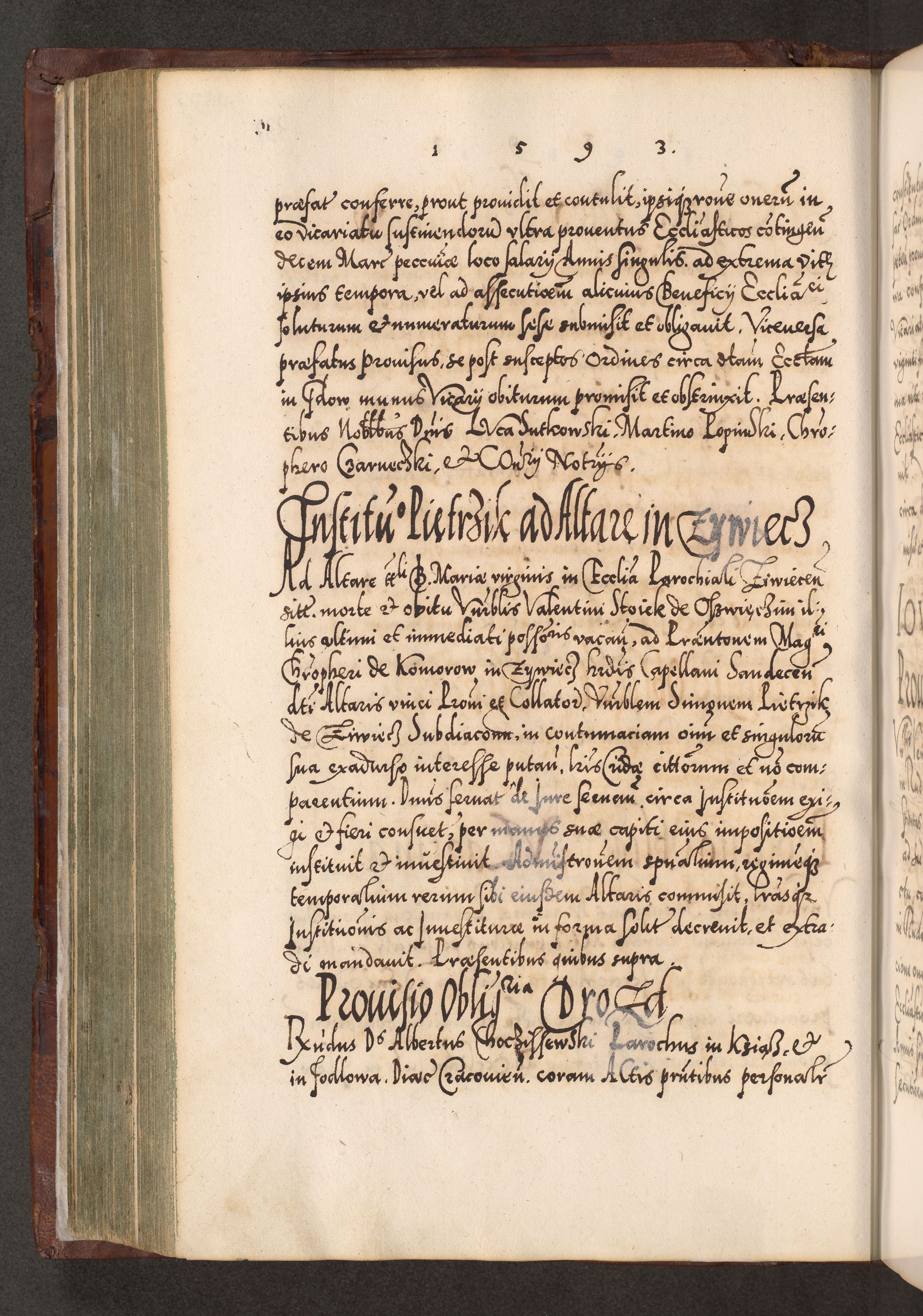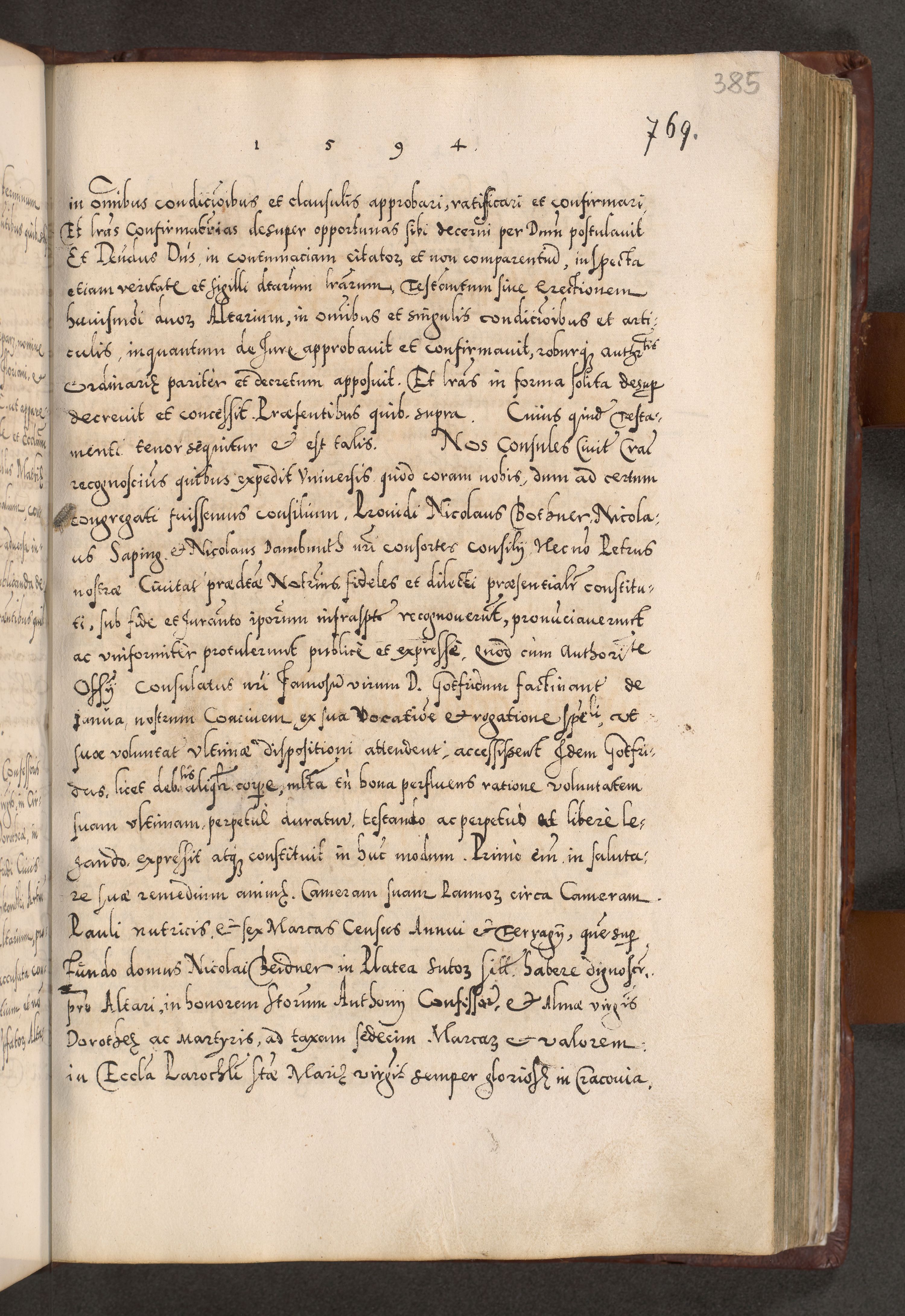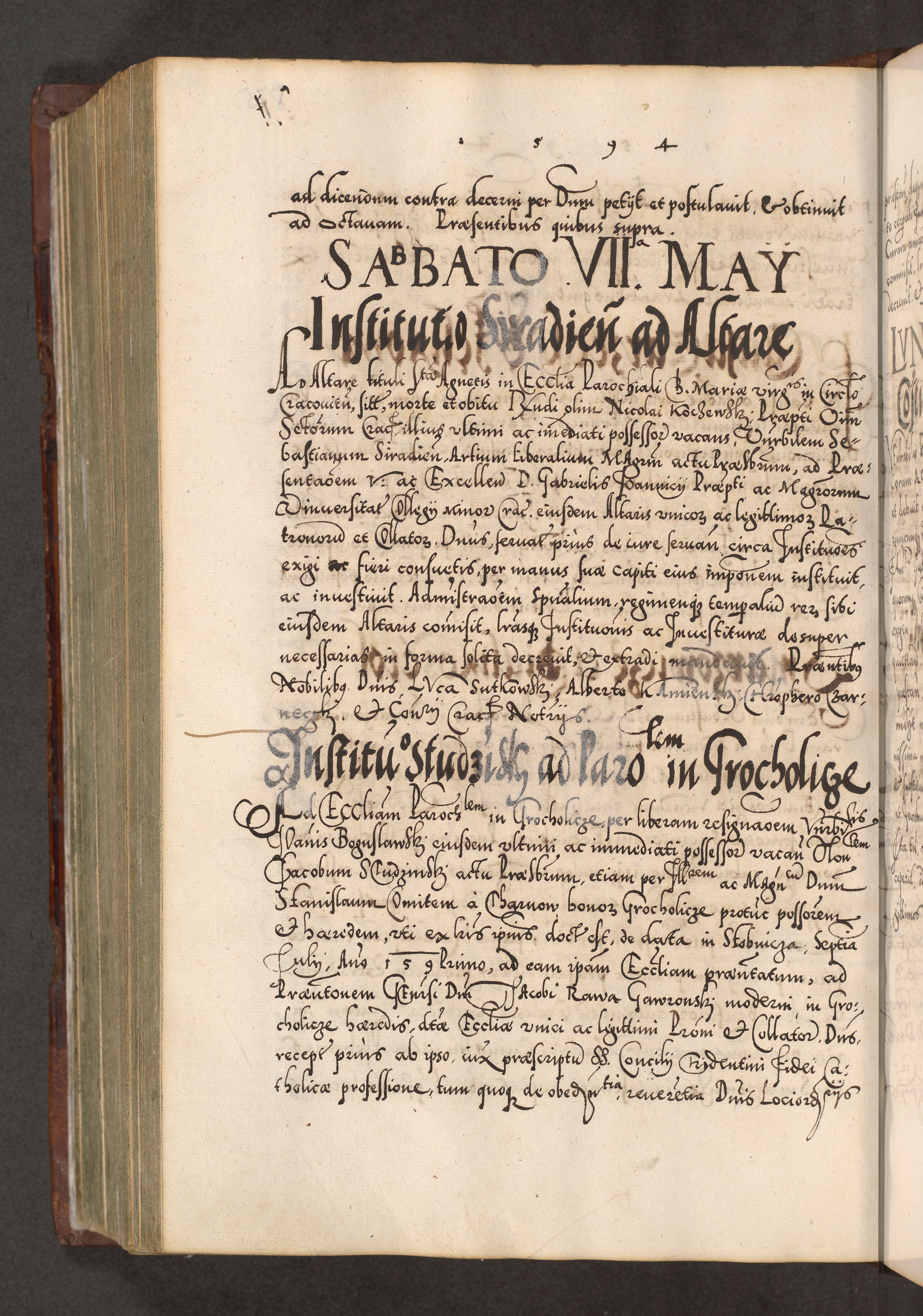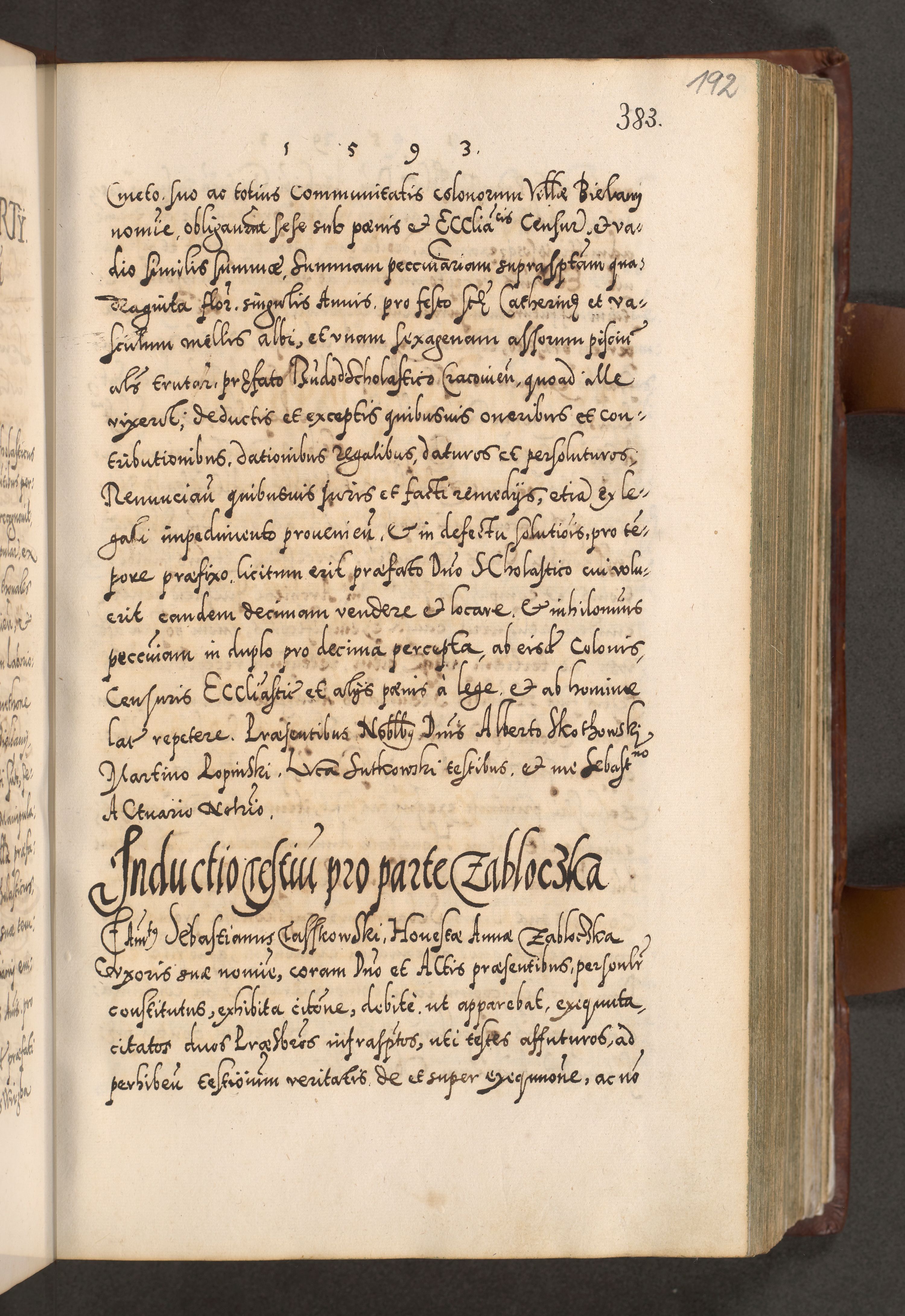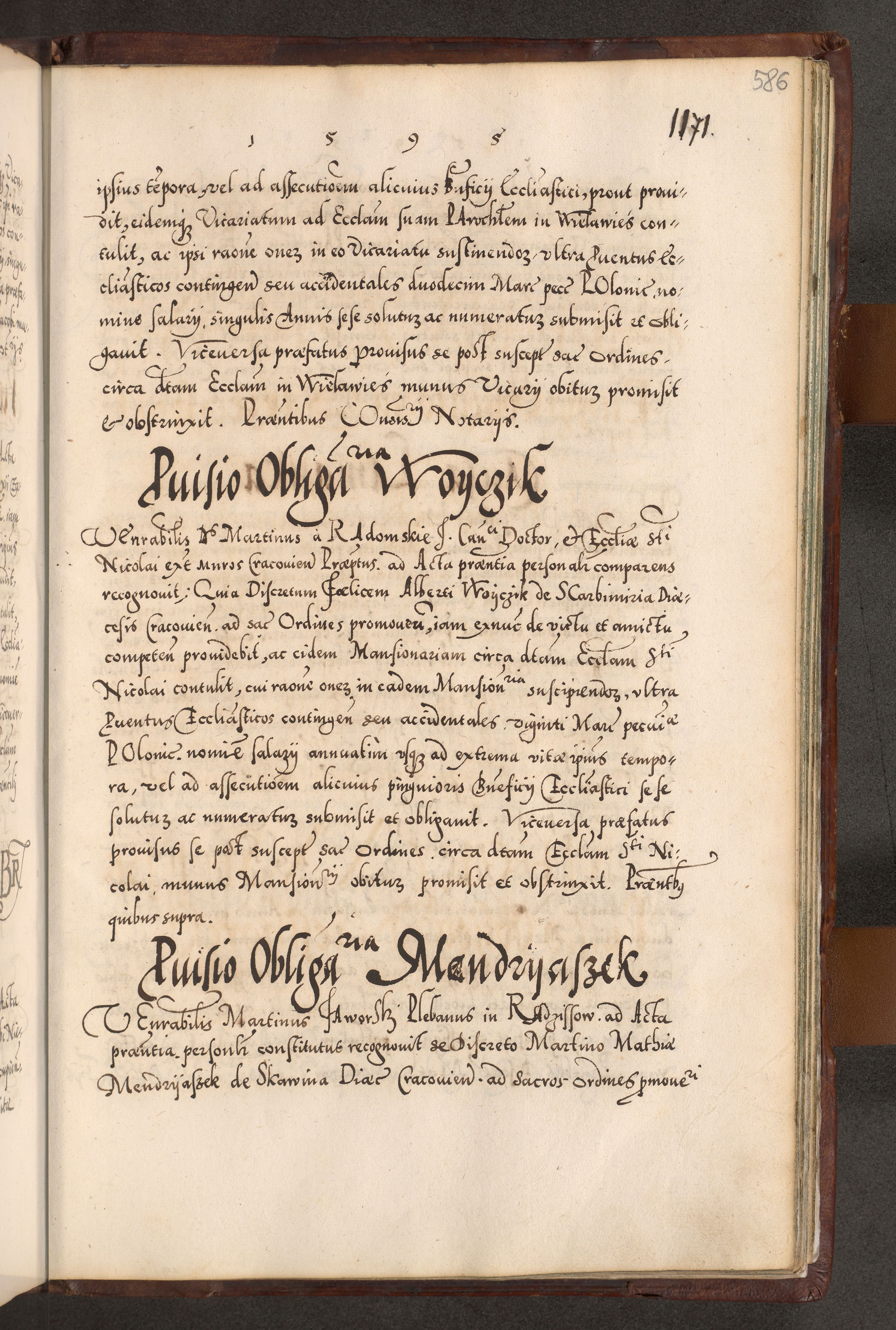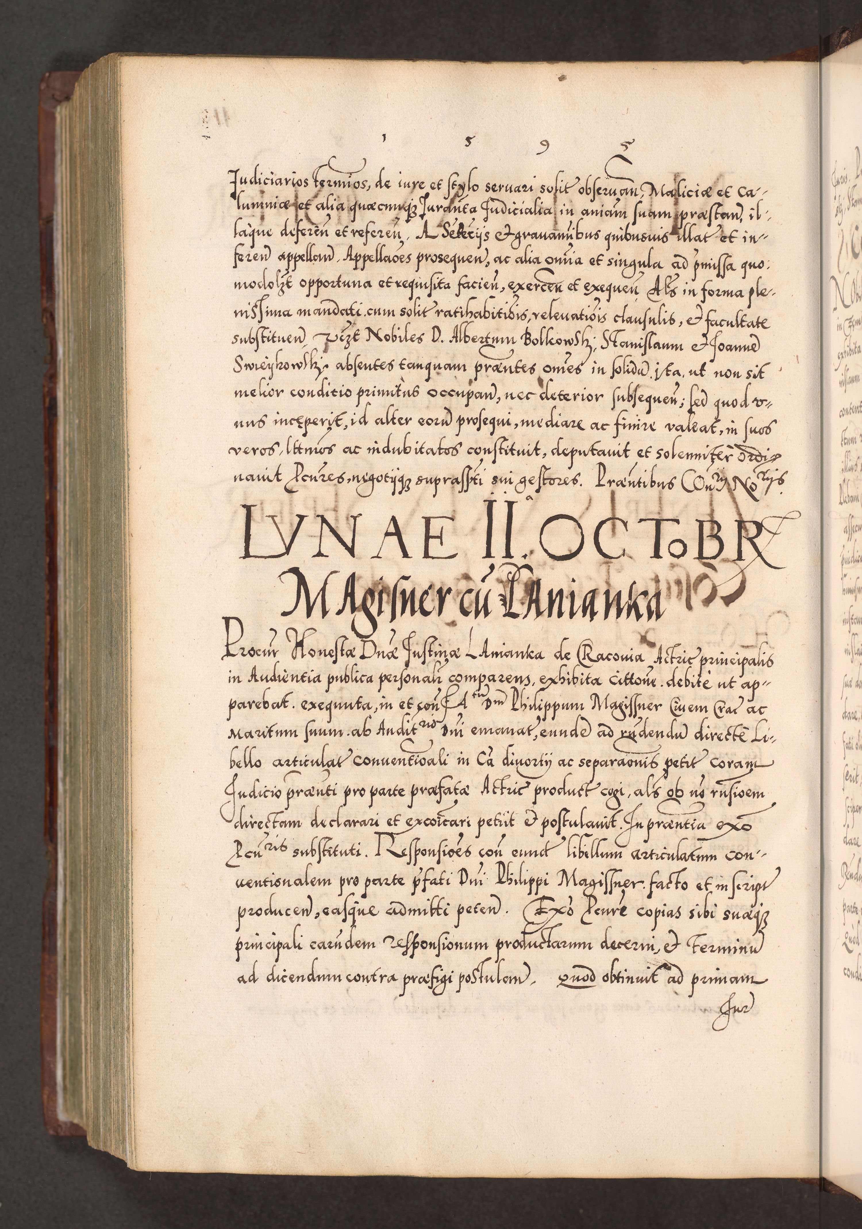 Illistrissimo et revedissimo in Christo Patre Domino Domino Georgio Rzadziwił Miserone Divina Sacrostae R. E. Tituli S. Sixti Presbitero Cardinali Duce in Olyka et Niesswiesz ad Gubernacula Ecclessiae Cracoviensis cuius administratorialem a Sancta Sede Apostolica obtinverat feliciter sedente. Acta actorum, causarum, sententiarum tam deffinitivarum quam interloquutoriarum decretorum, obligationum, quietationum, recognitionum, constitutionum procuratorum etc. coram Reverendo Domino Stanislao Crassinskz de Crasne Archidiacono Cracoviensis, Scholastico Gnesnesis, Custode Plocensis etc. Vicario et Officiali Generali Cracoviensi in Ano Domini Millesimo Quingentesimo Nonagesimo Primo cuius indictio quarta pontificatus SS. Domini Nostri Gregorii XIIII Anno I psius prio feliciter incipiut