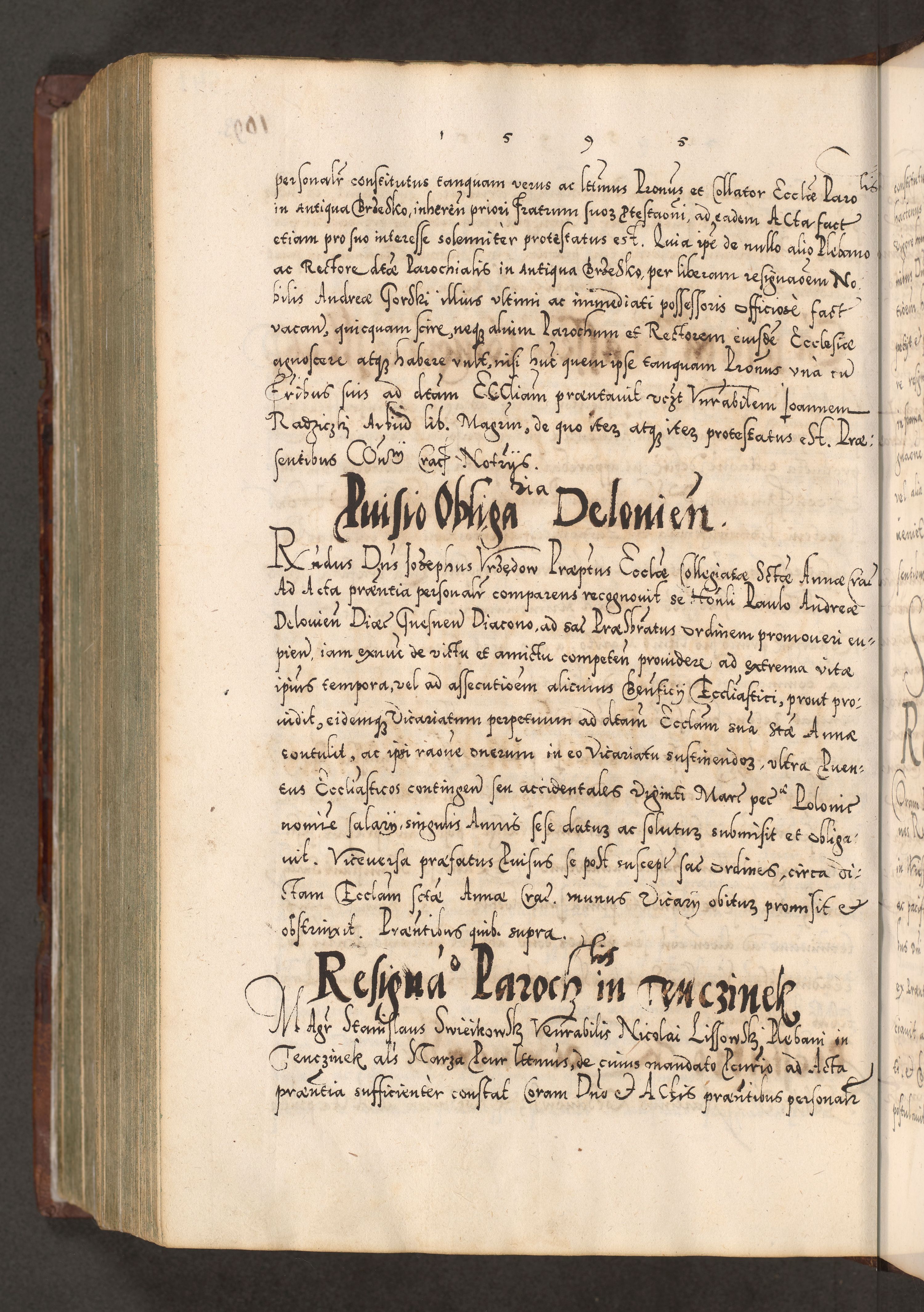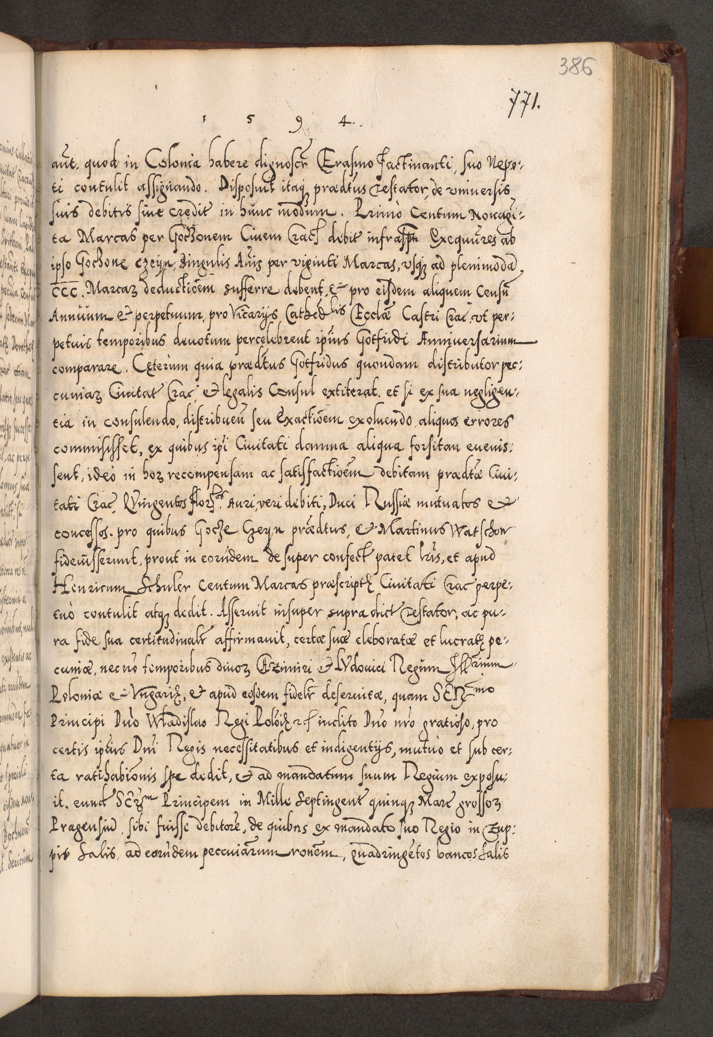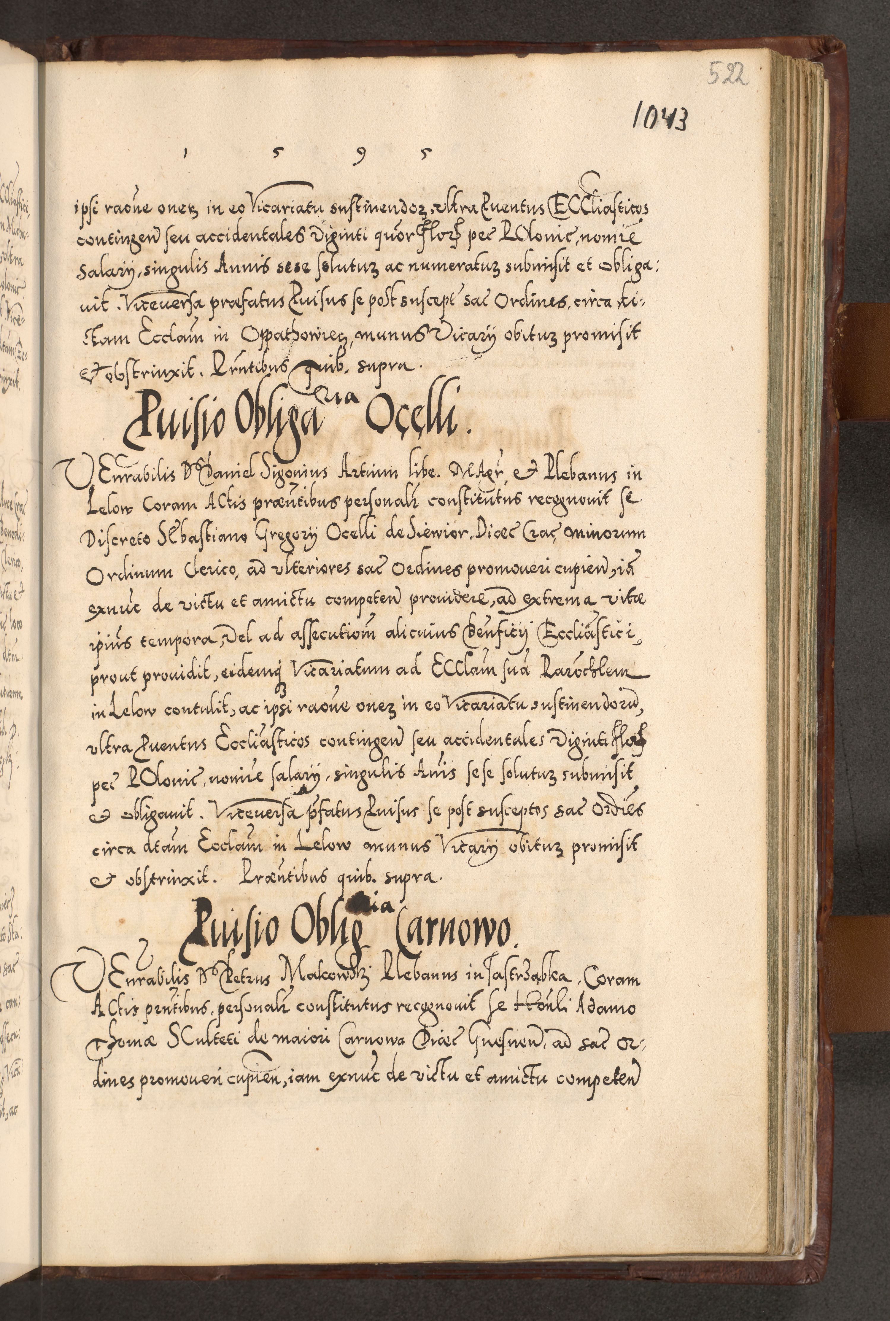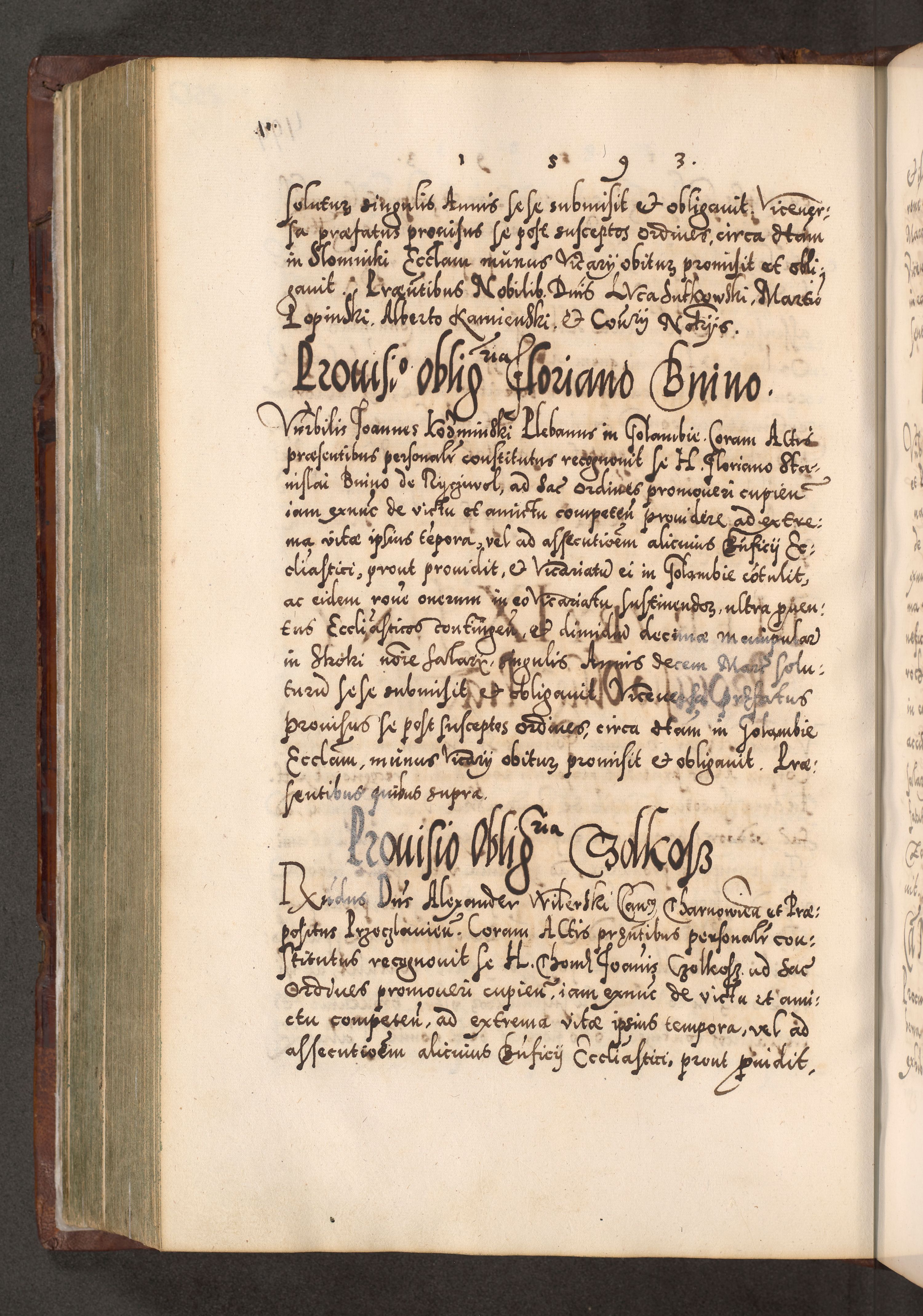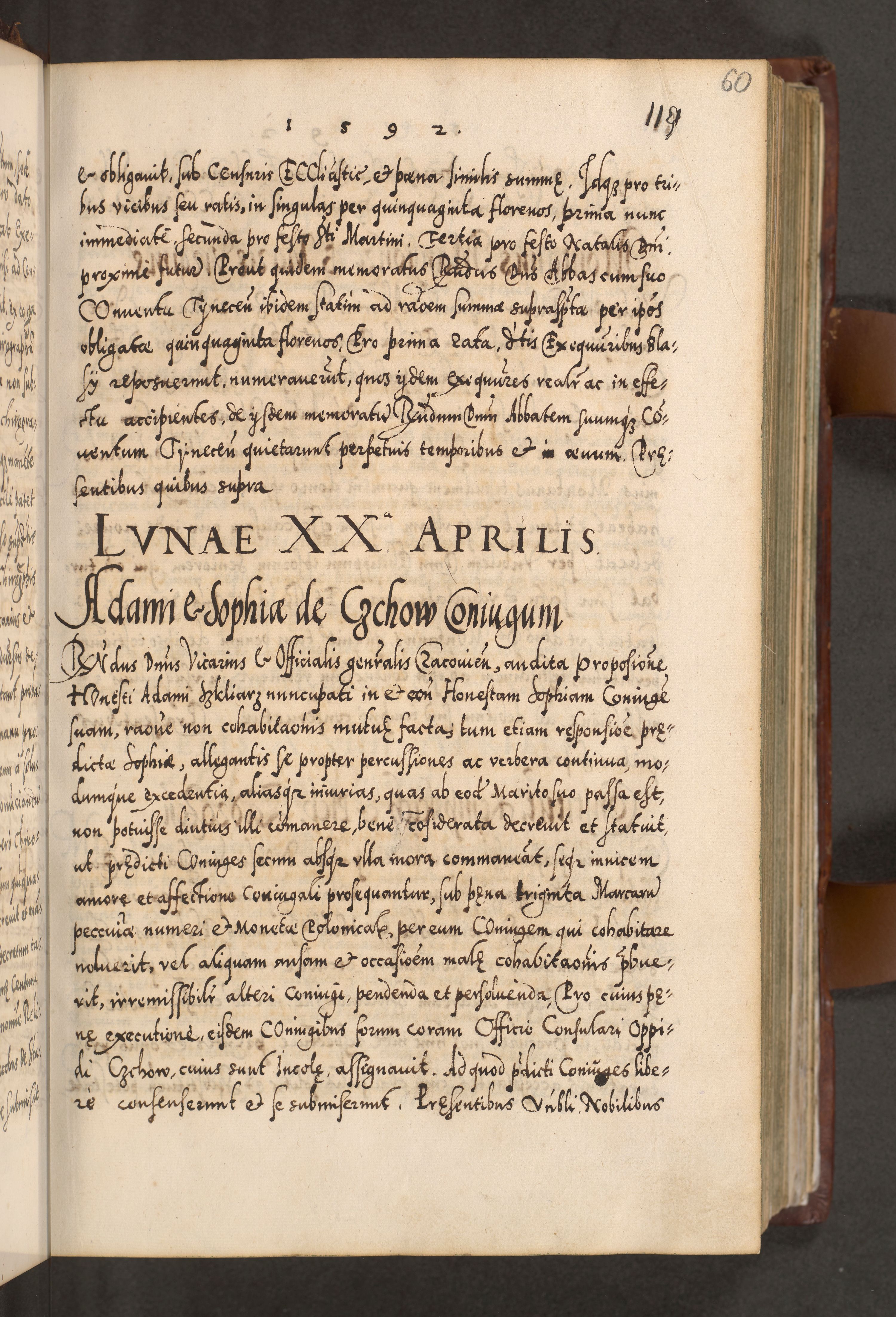 Illistrissimo et revedissimo in Christo Patre Domino Domino Georgio Rzadziwił Miserone Divina Sacrostae R. E. Tituli S. Sixti Presbitero Cardinali Duce in Olyka et Niesswiesz ad Gubernacula Ecclessiae Cracoviensis cuius administratorialem a Sancta Sede Apostolica obtinverat feliciter sedente. Acta actorum, causarum, sententiarum tam deffinitivarum quam interloquutoriarum decretorum, obligationum, quietationum, recognitionum, constitutionum procuratorum etc. coram Reverendo Domino Stanislao Crassinskz de Crasne Archidiacono Cracoviensis, Scholastico Gnesnesis, Custode Plocensis etc. Vicario et Officiali Generali Cracoviensi in Ano Domini Millesimo Quingentesimo Nonagesimo Primo cuius indictio quarta pontificatus SS. Domini Nostri Gregorii XIIII Anno I psius prio feliciter incipiut