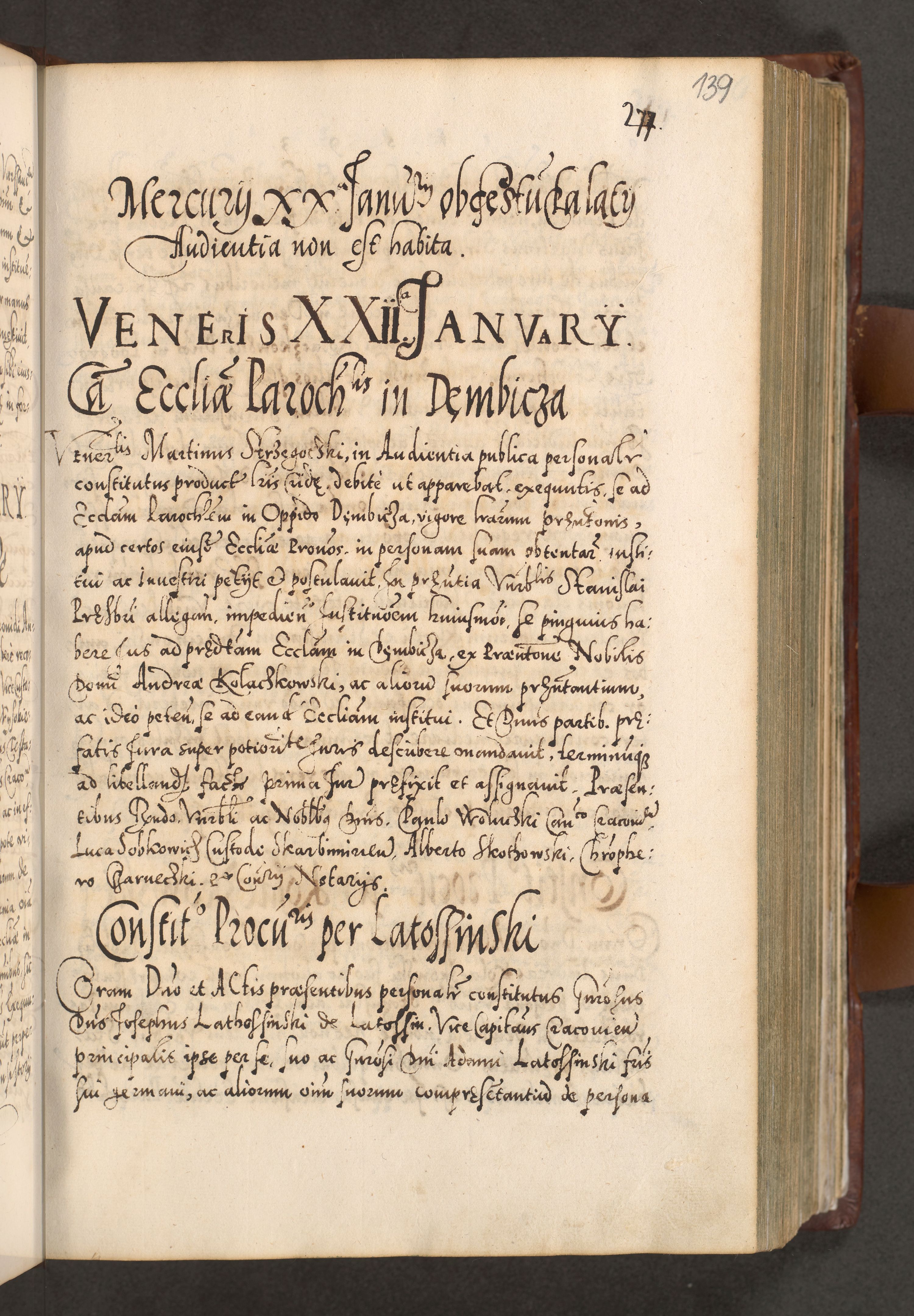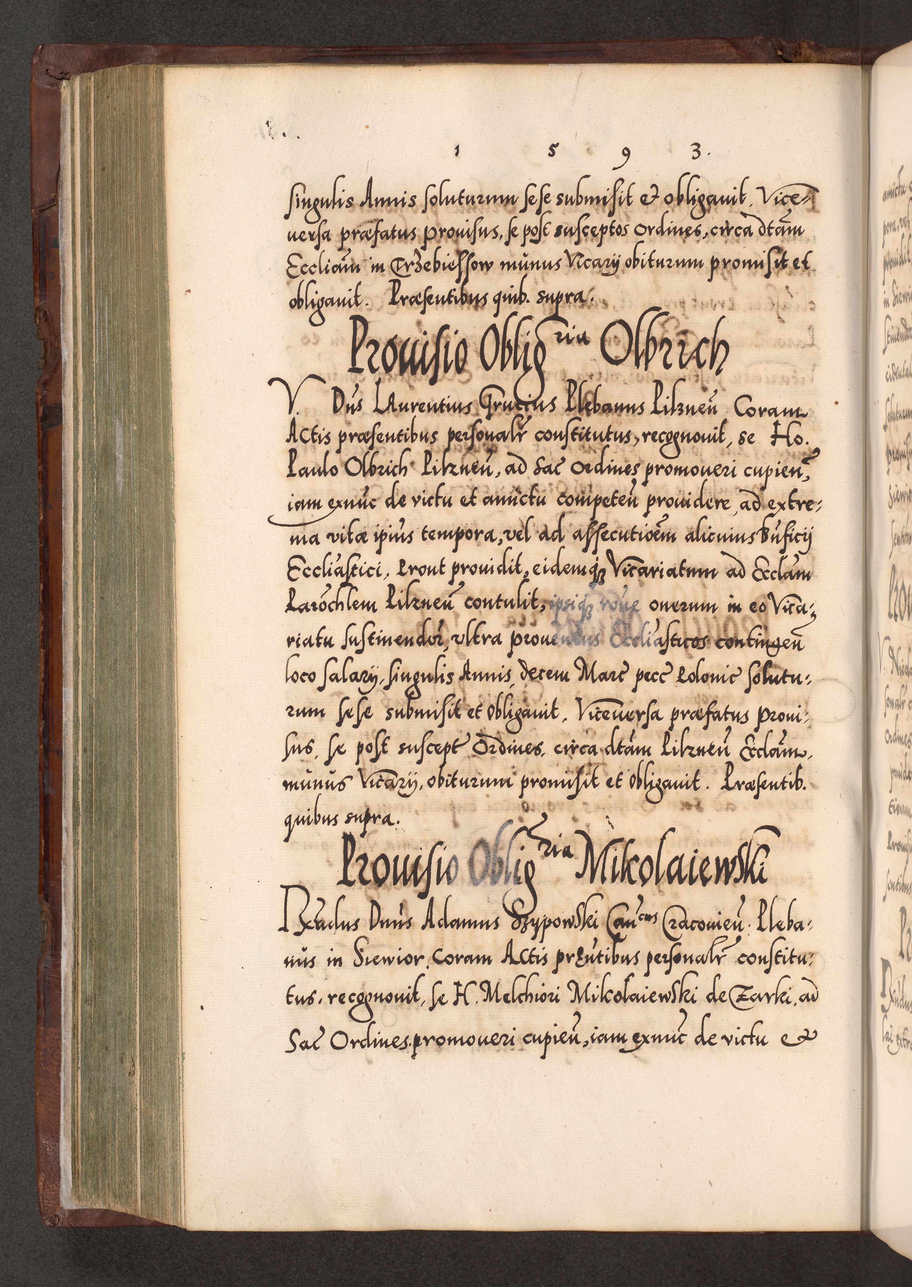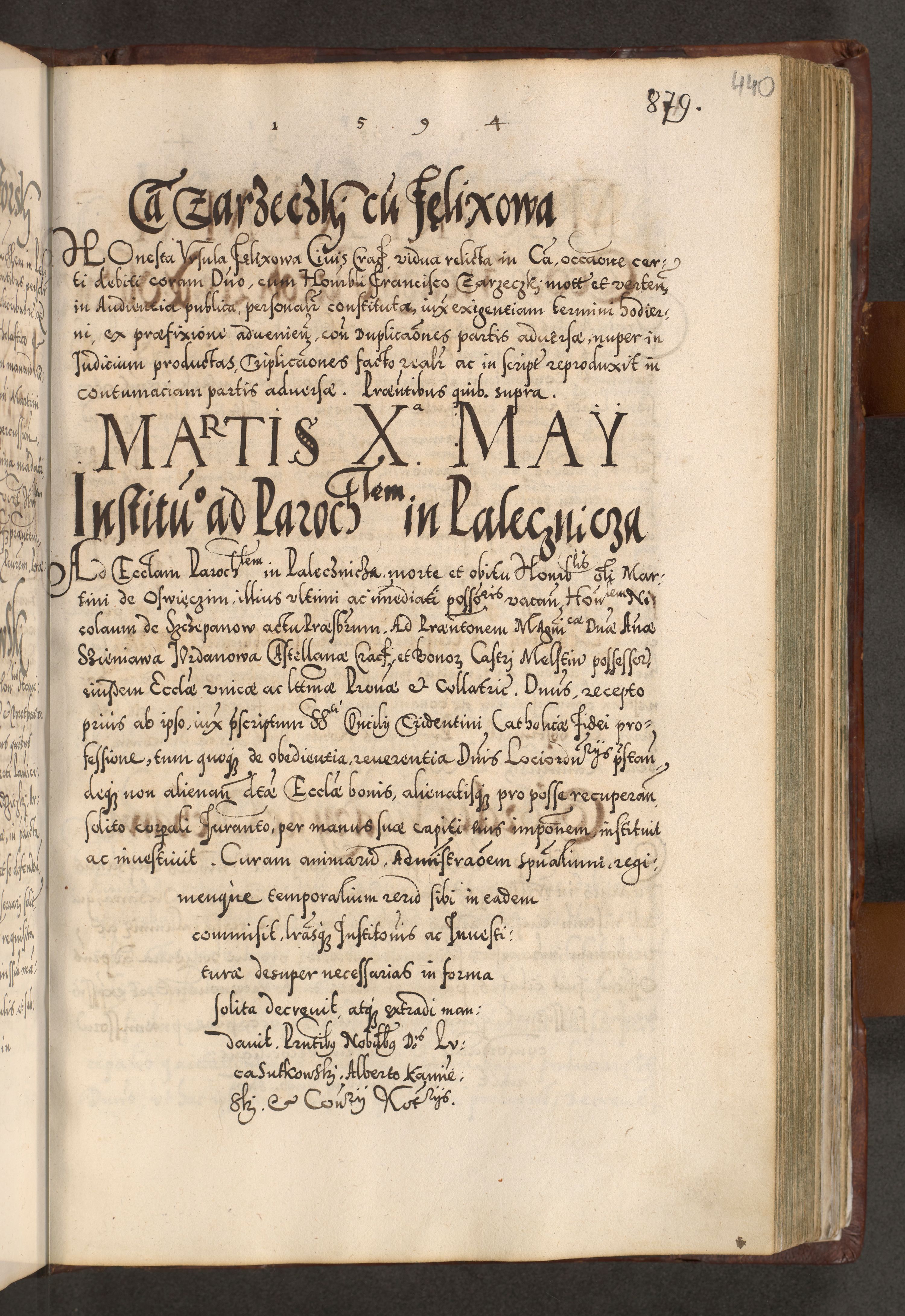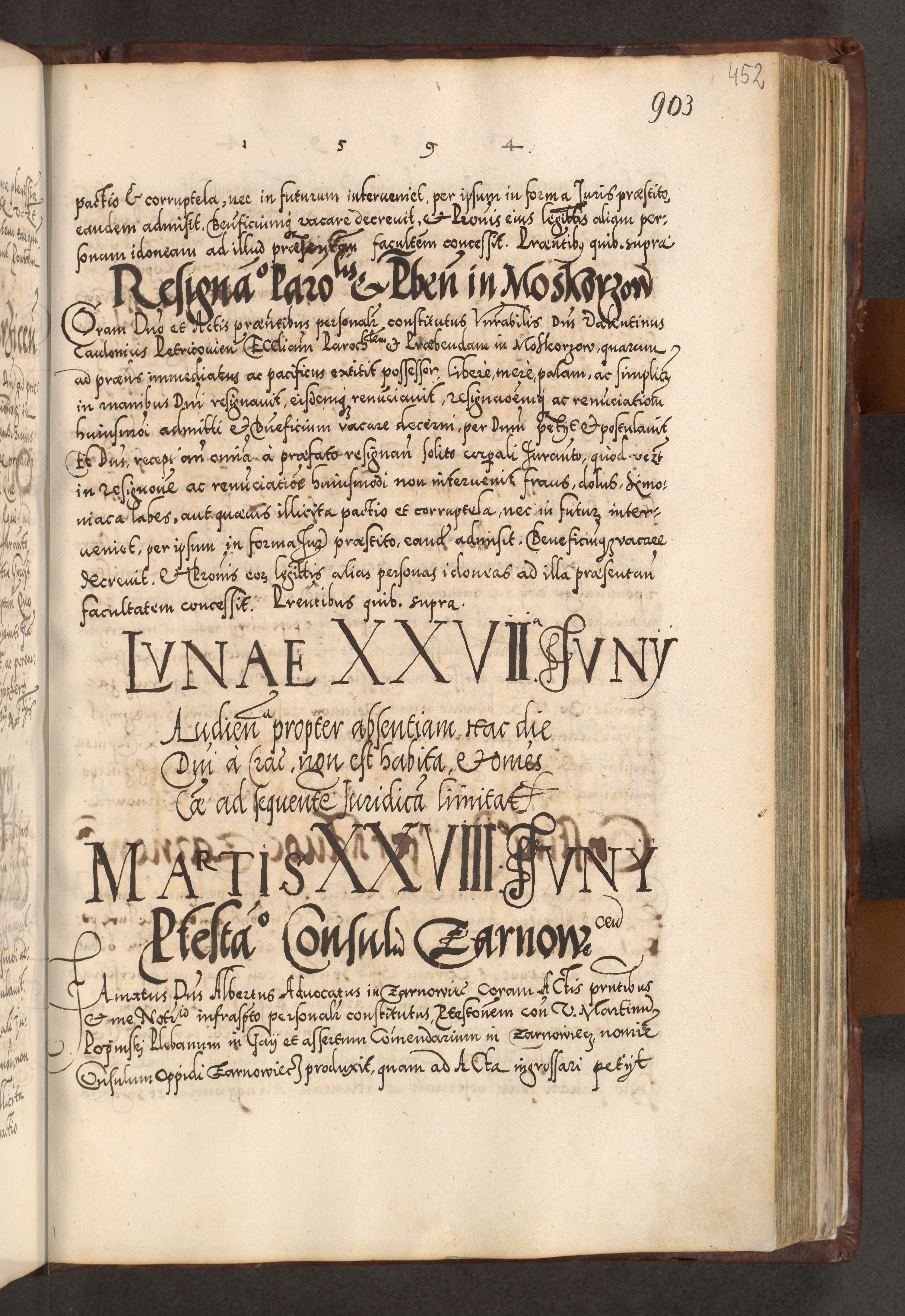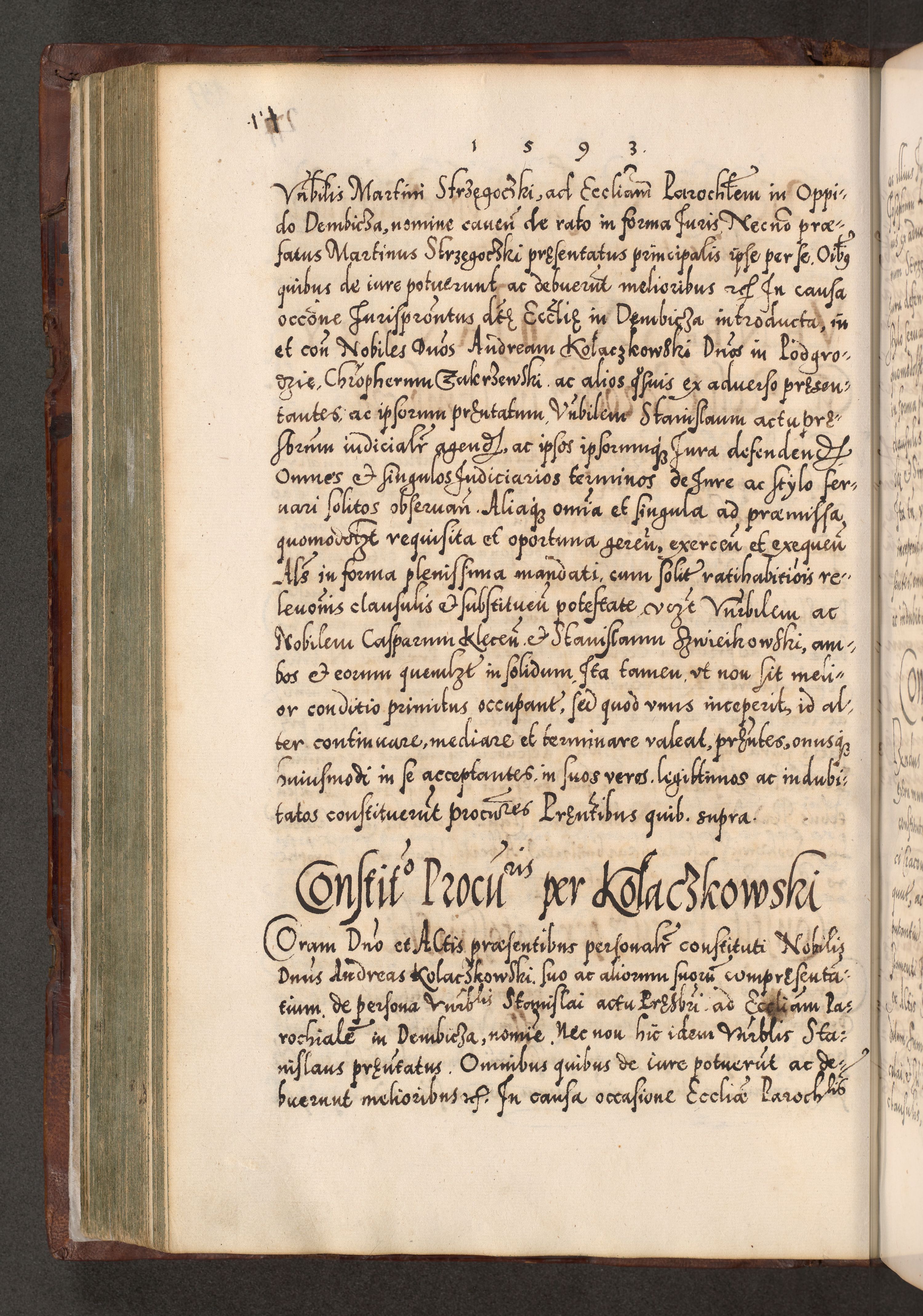 Illistrissimo et revedissimo in Christo Patre Domino Domino Georgio Rzadziwił Miserone Divina Sacrostae R. E. Tituli S. Sixti Presbitero Cardinali Duce in Olyka et Niesswiesz ad Gubernacula Ecclessiae Cracoviensis cuius administratorialem a Sancta Sede Apostolica obtinverat feliciter sedente. Acta actorum, causarum, sententiarum tam deffinitivarum quam interloquutoriarum decretorum, obligationum, quietationum, recognitionum, constitutionum procuratorum etc. coram Reverendo Domino Stanislao Crassinskz de Crasne Archidiacono Cracoviensis, Scholastico Gnesnesis, Custode Plocensis etc. Vicario et Officiali Generali Cracoviensi in Ano Domini Millesimo Quingentesimo Nonagesimo Primo cuius indictio quarta pontificatus SS. Domini Nostri Gregorii XIIII Anno I psius prio feliciter incipiut
