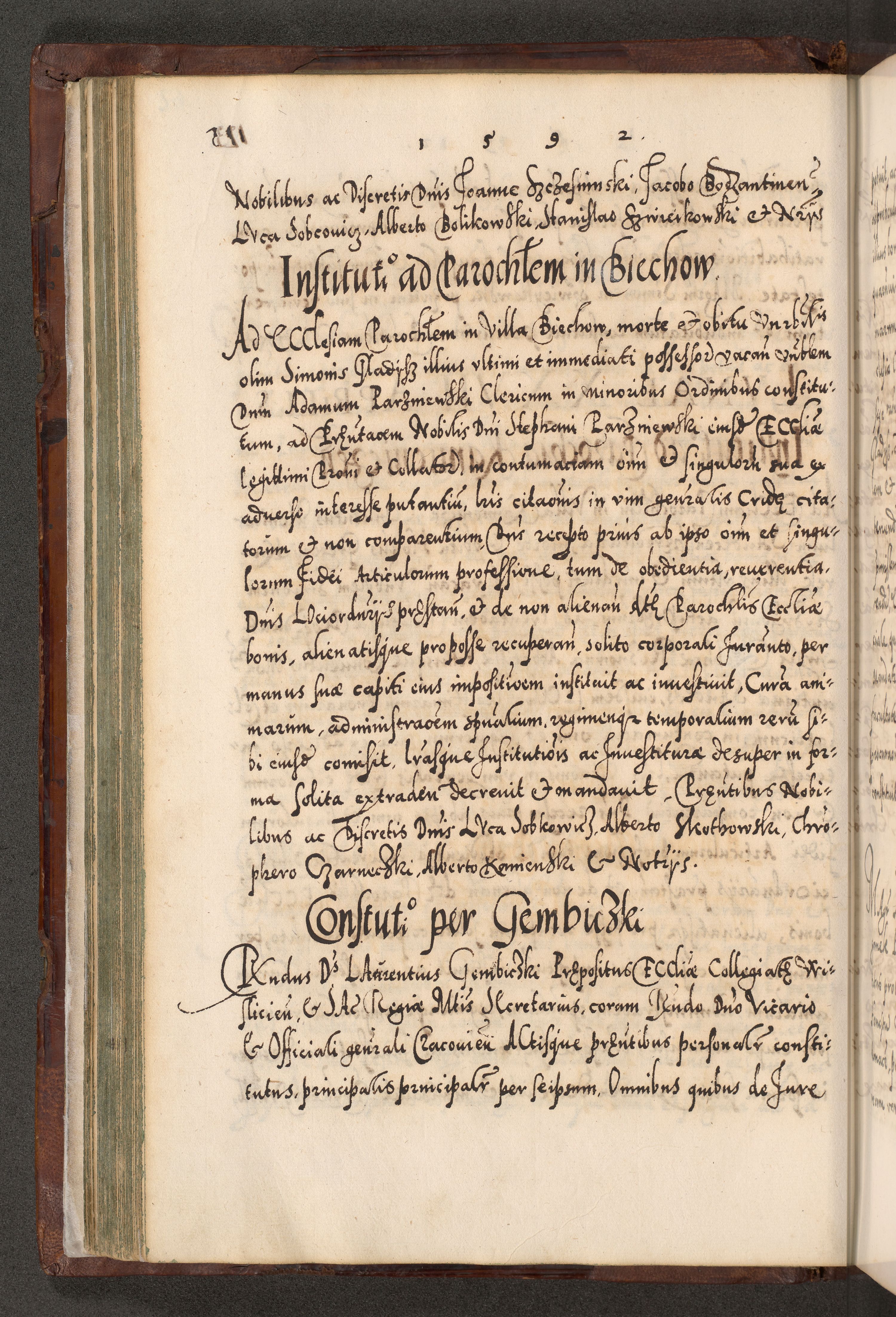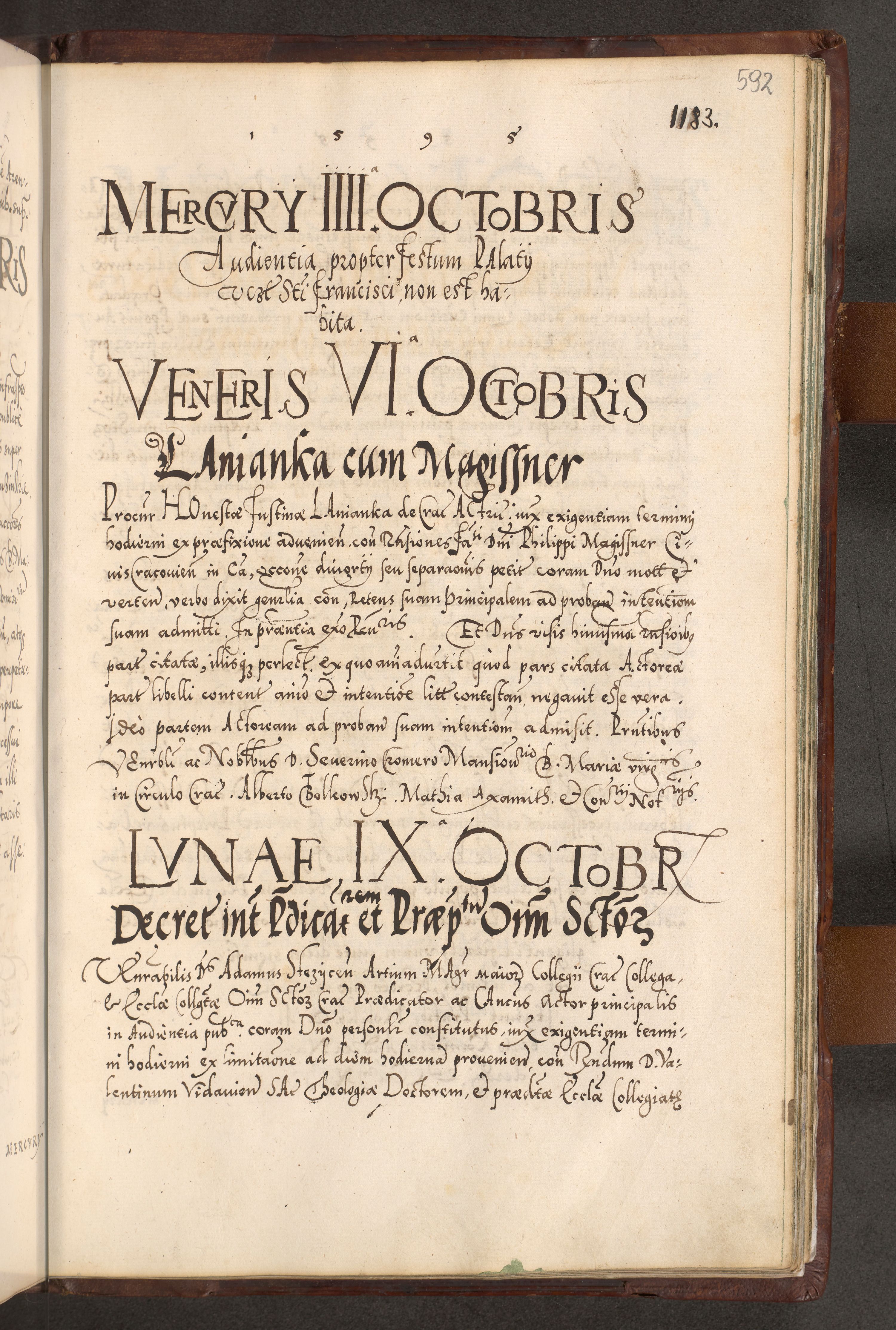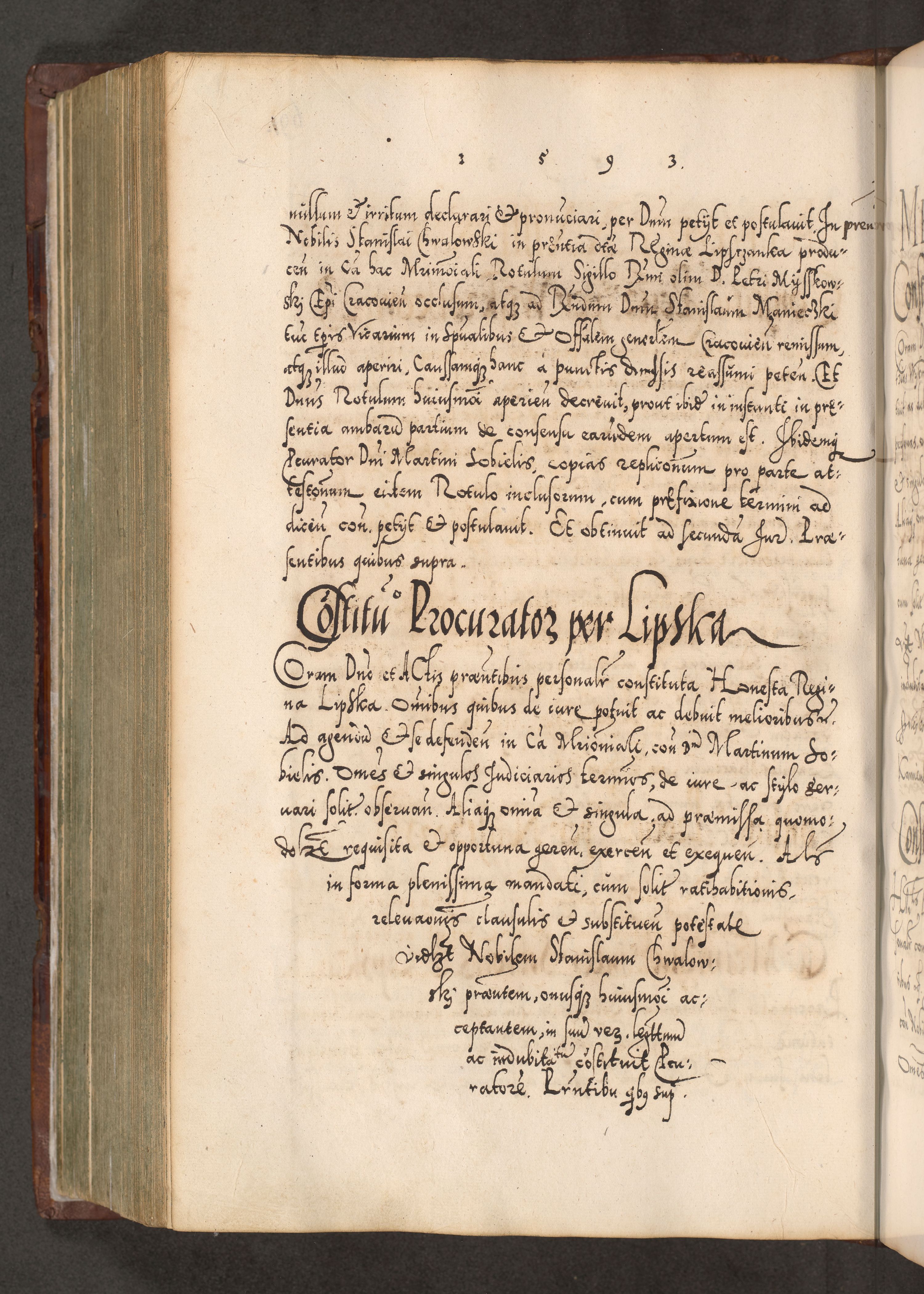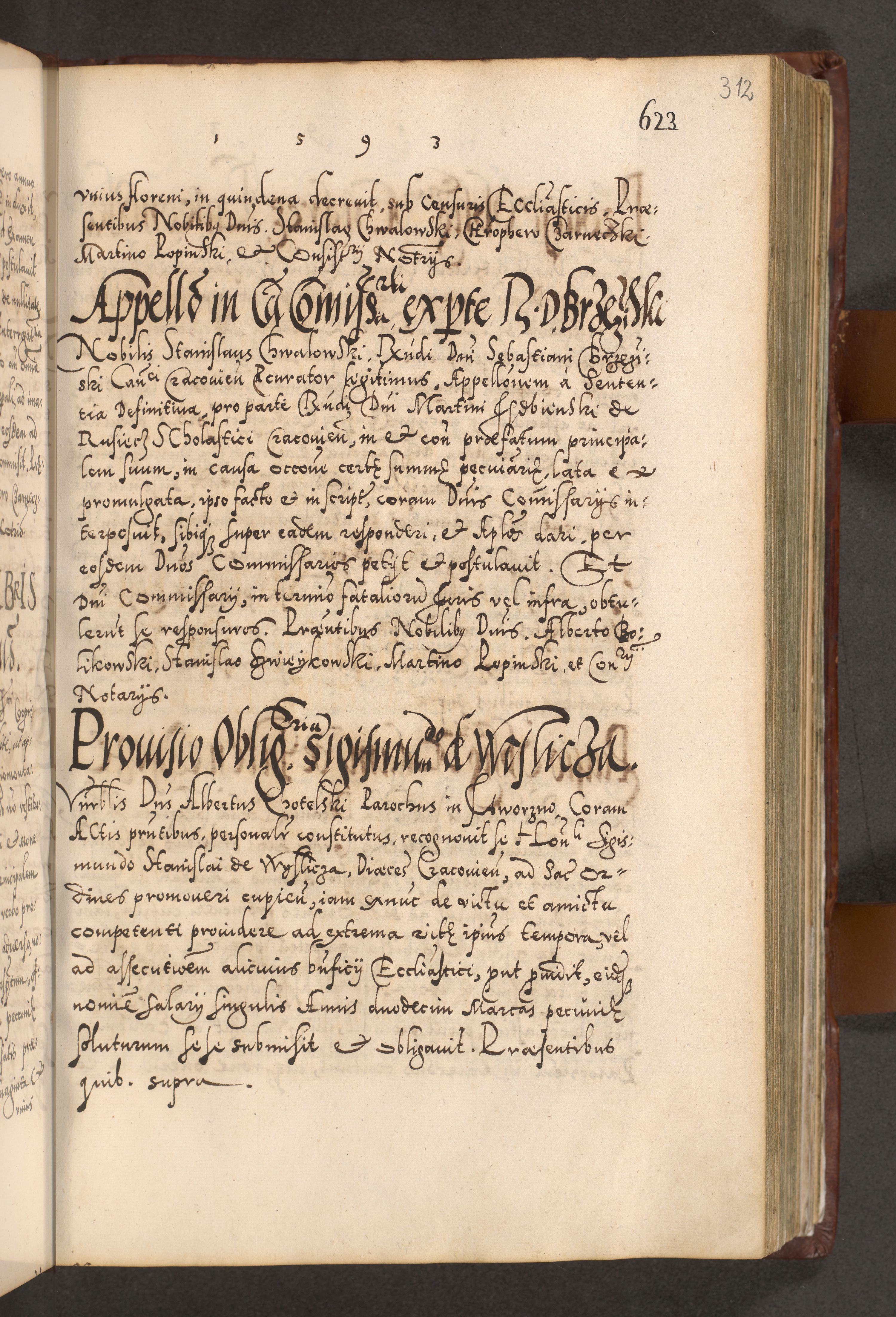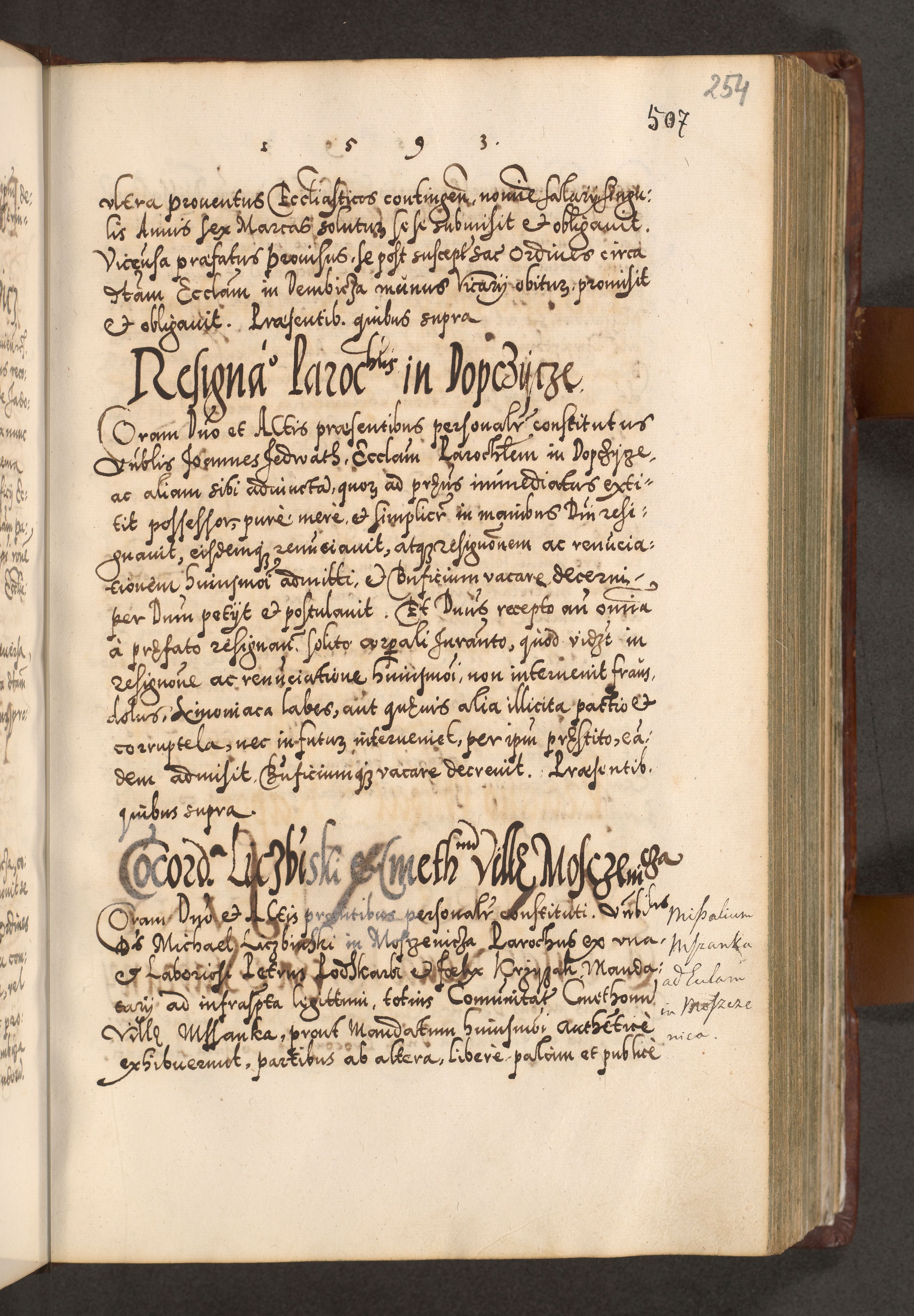 Illistrissimo et revedissimo in Christo Patre Domino Domino Georgio Rzadziwił Miserone Divina Sacrostae R. E. Tituli S. Sixti Presbitero Cardinali Duce in Olyka et Niesswiesz ad Gubernacula Ecclessiae Cracoviensis cuius administratorialem a Sancta Sede Apostolica obtinverat feliciter sedente. Acta actorum, causarum, sententiarum tam deffinitivarum quam interloquutoriarum decretorum, obligationum, quietationum, recognitionum, constitutionum procuratorum etc. coram Reverendo Domino Stanislao Crassinskz de Crasne Archidiacono Cracoviensis, Scholastico Gnesnesis, Custode Plocensis etc. Vicario et Officiali Generali Cracoviensi in Ano Domini Millesimo Quingentesimo Nonagesimo Primo cuius indictio quarta pontificatus SS. Domini Nostri Gregorii XIIII Anno I psius prio feliciter incipiut